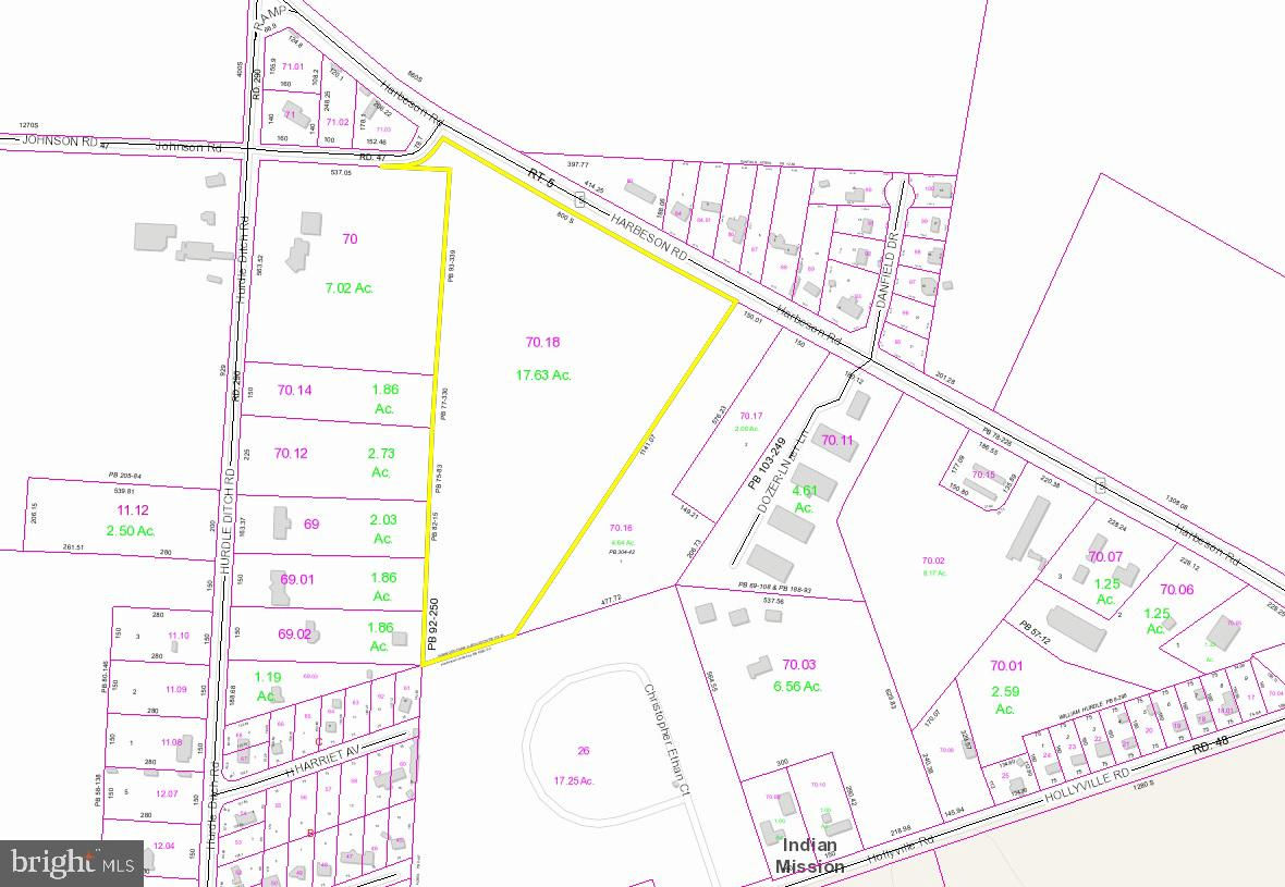 (Tax Map: 234-10.00-70.18) Huge development opportunity! Favorable SELLER FINANCING TERMS WILL BE CONSIDERED. These 17.63 acres are just steps away from the RT5 Business Center and the Independence Complex by Schell Brothers. Located on RT 5 (Harbeson Road) at the intersection with Johnson Road, just north of Hollyville Road, this could an incredible site for an upscale housing development, business center, or for a farmer wishing to expand his/her portfolio. Chesapeake Utilities is running new gas lines through the area that will service this property, making it that much more attractive for development. The very popular Schell Brothers Homes did well with their Independence Complex just down the street, highlighting the area's desirability and demand for additional upscale housing.