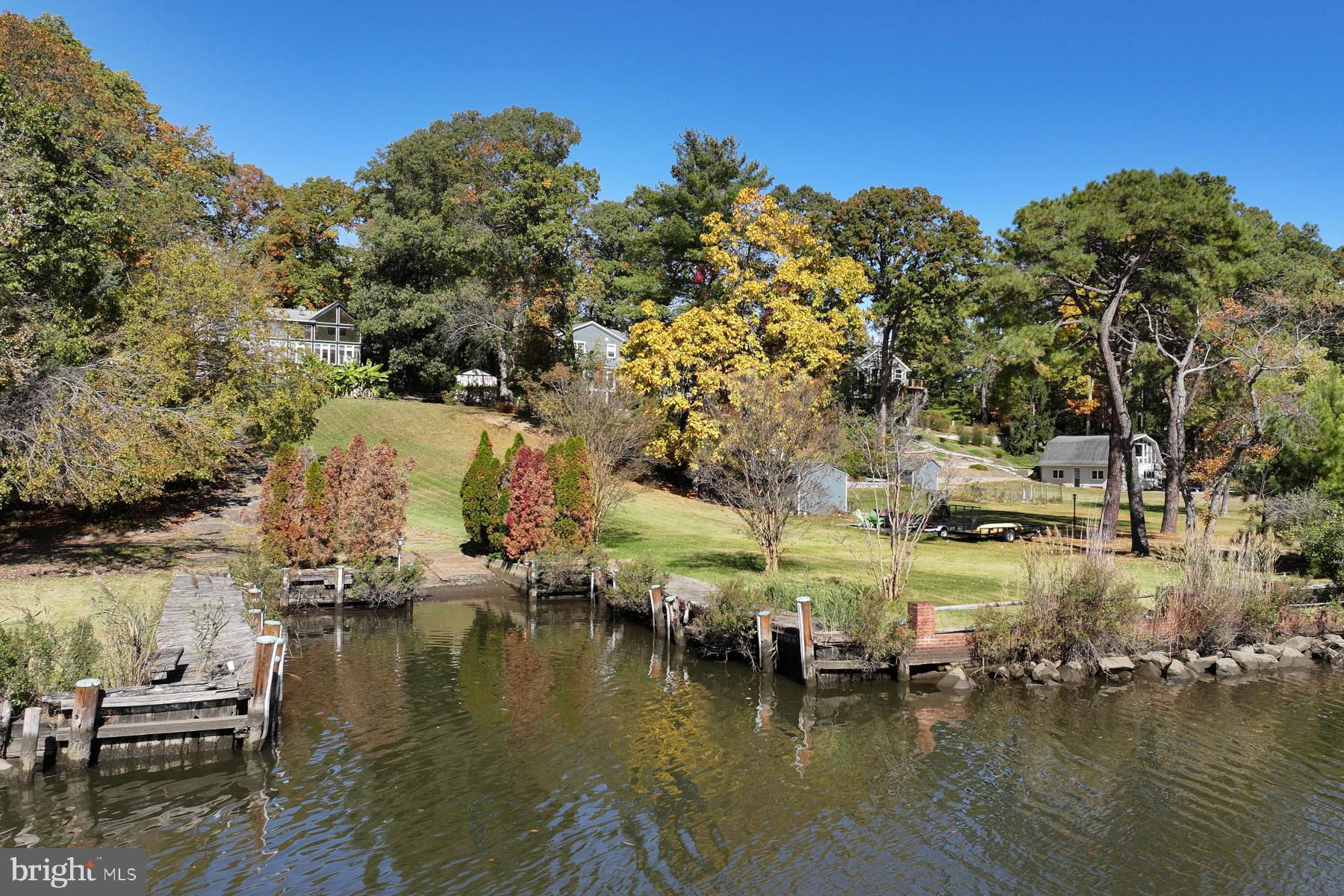 Discover one of Severna Park’s most private waterfront settings. Set on a .69 acre lot at the end of a quiet cul-de-sac in the Longmeadow community, this Tudor-style home offers exceptional indoor–outdoor living, peaceful water views, and privacy on Cypress Creek.The Tudor home’s two-story foyer is distinctive, with beautiful wood detailing and terrazzo flooring. On the waterside beyond the entry, the spacious kitchen opens directly to the family room. The space is anchored by a two-story wall of windows overlooking the water, creating the central gathering space of the home. Step out onto a large deck from the family room for seamless indoor-outdoor entertaining and enjoy an easy stroll down to the water. A formal dining room with hardwood floors leads to the adjoining living room with a wood-burning fireplace. The rooms are graciously proportioned. A den at the front of the home provides a quiet workspace with peaceful views of the front yard.The bedroom layout offers valuable versatility. The primary suite, with ensuite bathroom and balcony overlook, and two additional bedrooms are located together on the upper level above the foyer. An additional bedroom is accessed by its own staircase off the living room, making it ideal for guests, in-laws, or an au pair. The fully finished walkout lower level includes a full bathroom, large recreation room, and a potential additional bedroom. It extends the living space even further and connects directly to the waterside patio.Mature trees, thoughtful landscaping, and Cypress Creek waterfrontage create a true waterfront retreat. The gentle slope to the water puts the home at an ideal elevation without making water accessibility a challenge. The private boat ramp is a unique feature and allows the owner to take advantage of launching a boat at their convenience. Even with its extraordinary privacy, the location remains exceptionally convenient. Severna Park schools, Kinder Farm Park, the B&A Trail, and shops and dining are minutes away. Commuters benefit from easy access to Annapolis, Baltimore, and Fort Meade, while boaters will enjoy the quick, scenic run from Cypress Creek to the Magothy River and out to the Chesapeake Bay. This is a rare opportunity to own a classic home in a private setting, with peaceful water views and deep-water access in the heart of Severna Park.