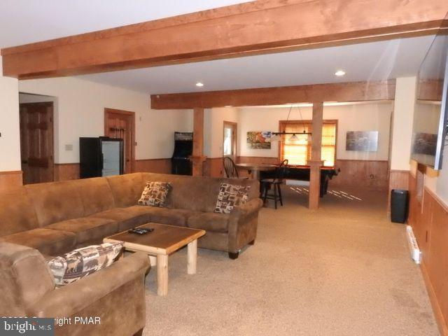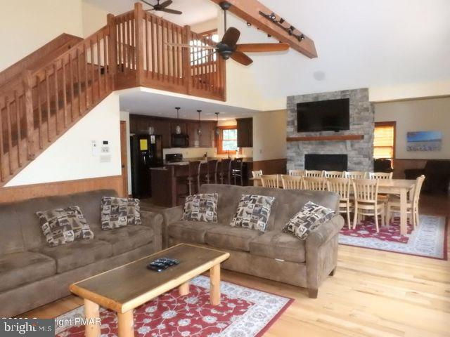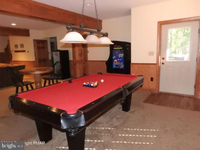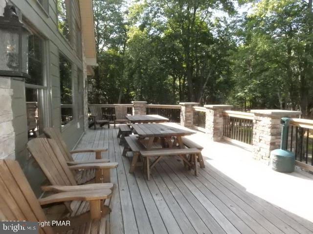 CEDAR SPRING LODGE can fit the ENTIRE Family and they can walk to the lake! Just a few years old, this home features 8 BRs and 5 full baths with a loft! You will be pleased to find that this home has the ideal setup with 2 primary bedrooms and En-suite bathrooms. Soak in the Pocono experience in every room of the house! Handcrafted wood furniture included. Indoor sitting room even has a double-sided gas fireplace! Head downstairs for fun on the pool table. Mini-split AC units to keep cool after a day at the lake. Then enjoy nights by the firepit or take a dip in the private hot tub! Efficient heat pump! Tons of parking! This Lake community and surrounding area offer tons of amenities and a power boat lake! GREAT INCOME-PRODUCING PROPERTY