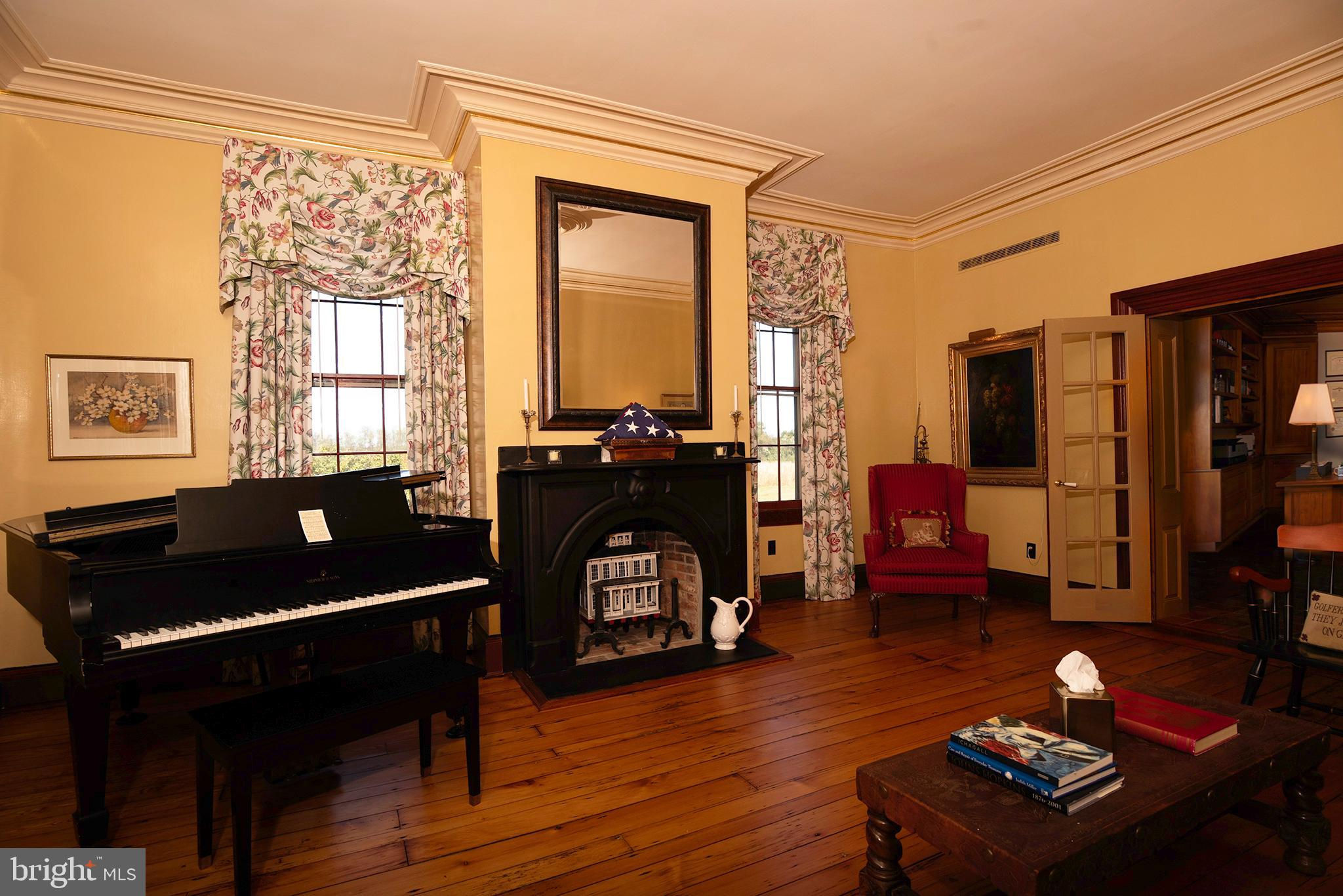 Gobbler Hill, circa 1858 with an addition built in 1989, sits like a jewel atop one of the highest points in Kent County. Listed on the National Historic Registry, the transitional architecture is an excellent example of late Greek Revival to early Italianate. The property consists of four parcels totaling over 65 acres. Wildlife abounds on the fields of native prairie grasses, wild flowers, woods, approximately 20 tilled acres and a large pond. Impeccable attention was payed to maintaining the historic character of both the interior and exterior. From the Lincrusta wall covering, 19th century faux wood finishing, plaster medallions, white and sugar pine wood floors and crown molding on the 11 ft. ceilings to the monumental copper roof, the thoughtful restoration is stunning. The newer addition beautifully blends into the original section adding modern conveniences and natural light. The library boasts black walnut bookshelves constructed by a local craftsman. Well maintained grounds offer gardens, mature trees, a classic poured concrete in ground pool with inlaid tile and stunning views. This unique, lovingly restored piece of Kent County history is now looking for a new steward to guide it into its next chapter.