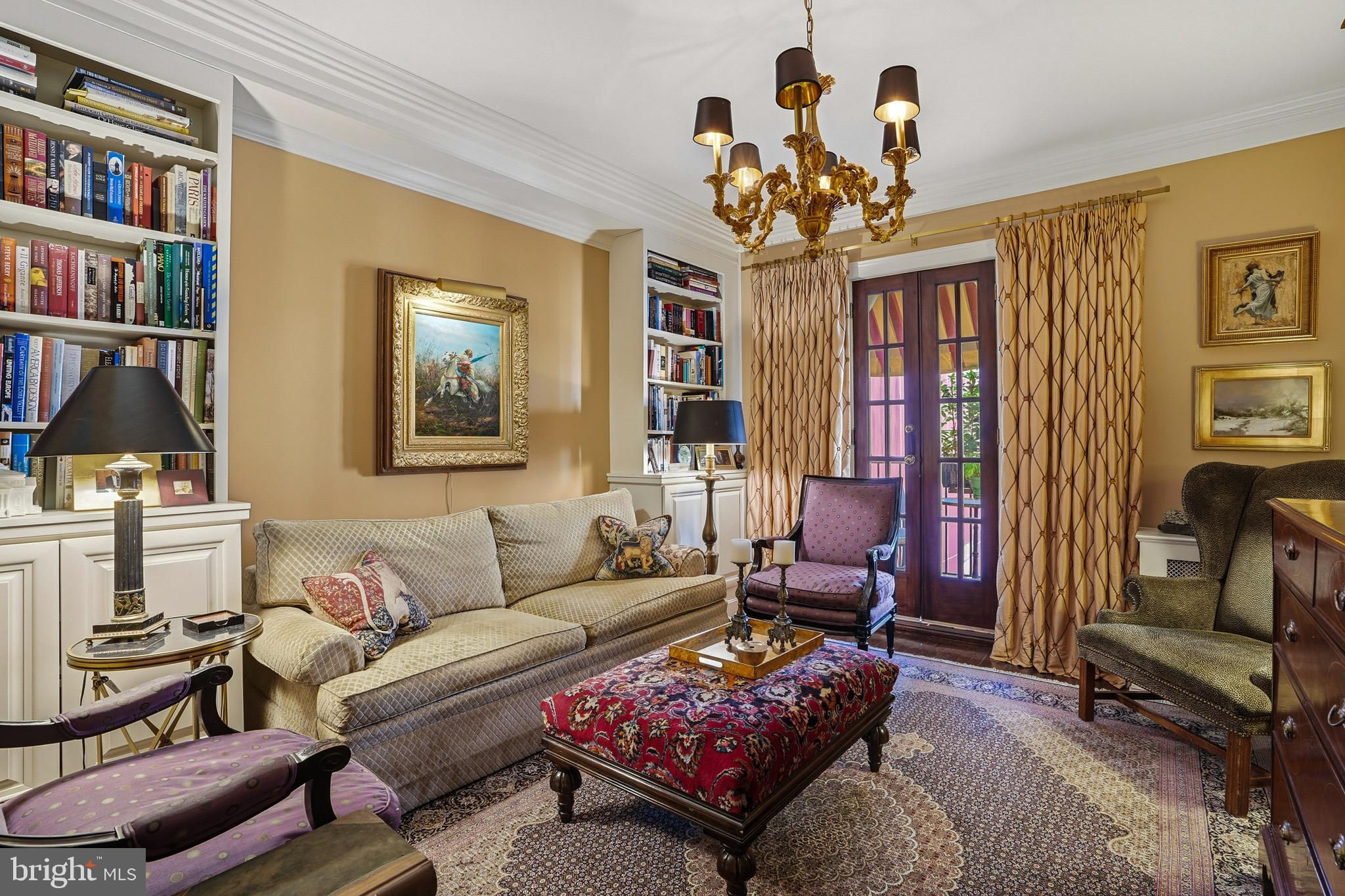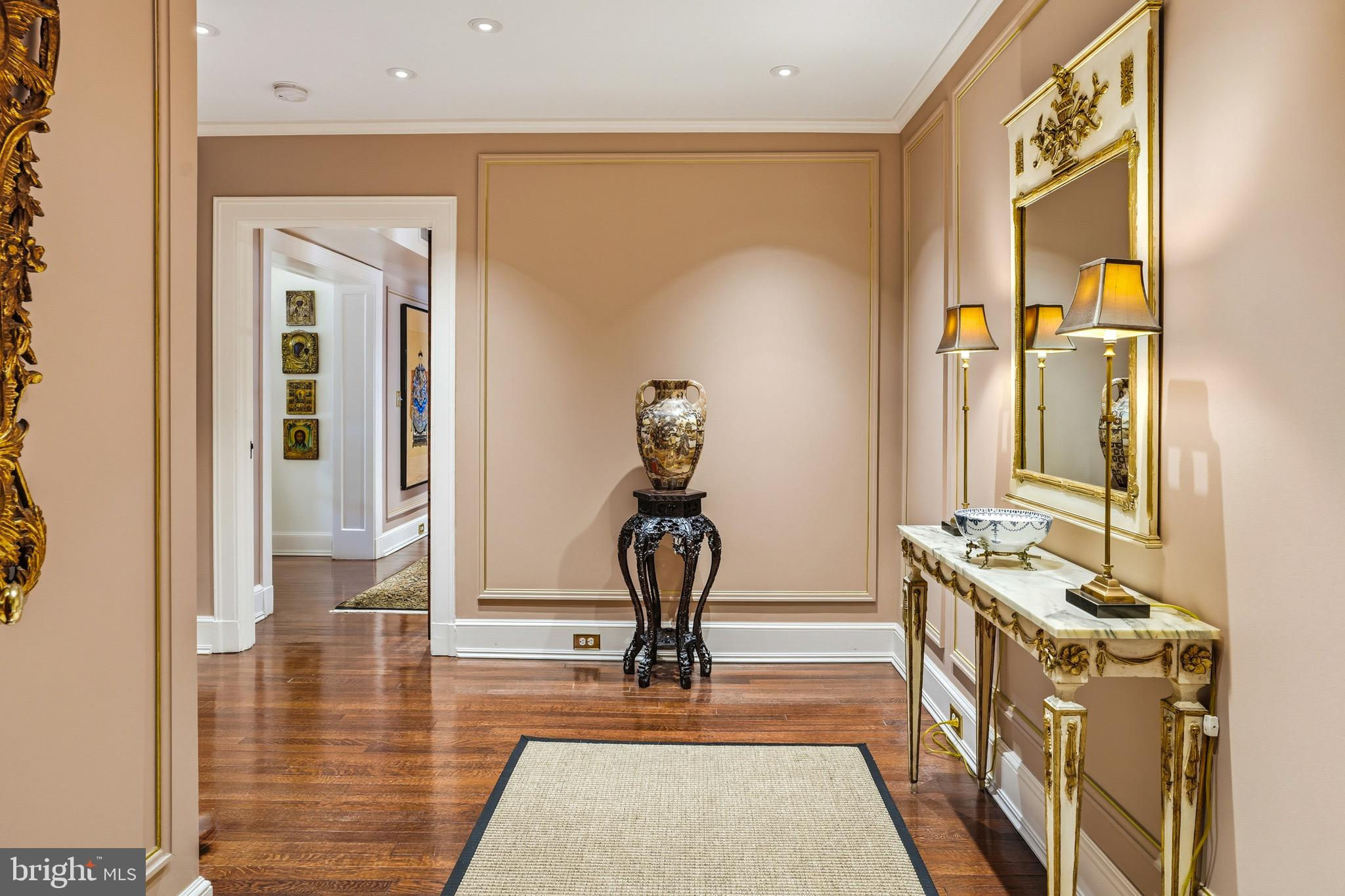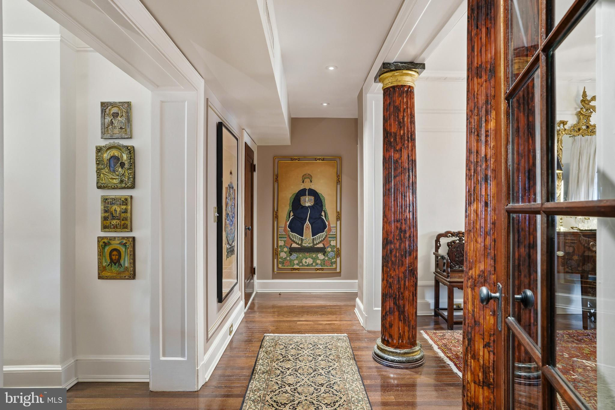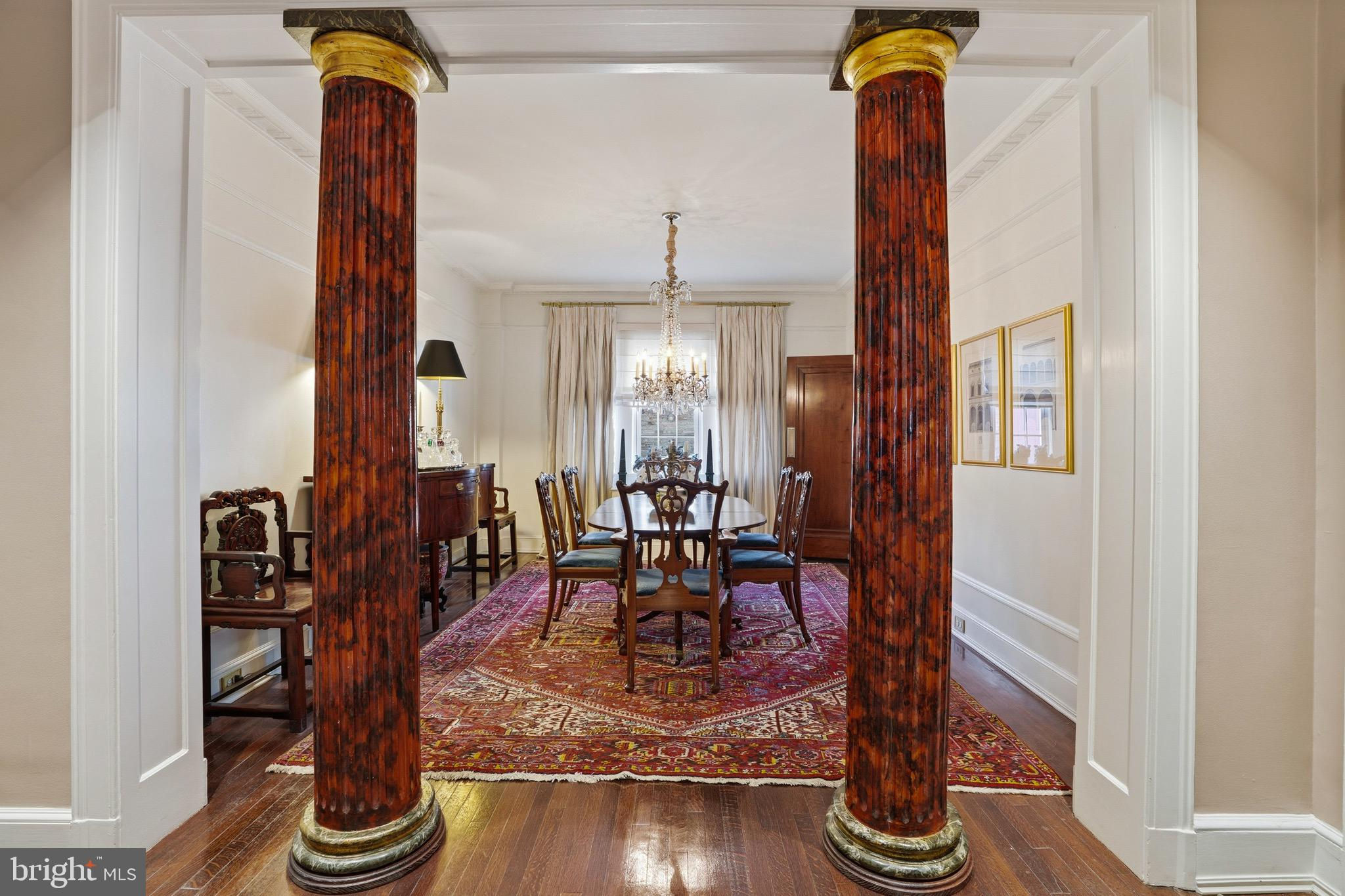 Perched on the top floor of a distinguished corner building just moments from the White House, this rare penthouse co-op offers timeless sophistication and enduring architectural character in one of Washington, D.C.’s most iconic neighborhoods.The stately circular drive and dramatic wrought iron door herald the elegance within: a refined lobby with black-and-white tile flooring and weekday concierge service. The building blends classic residential elegance with mixed-use convenience, offering a uniquely metropolitan lifestyle.Inside, the 2 bedroom, 2 bath home spanning nearly 1,700 SF is rich with original details—high ceilings, plaster ceiling moldings, solid wood doors, and warm hardwood floors throughout. The expansive layout includes a formal dining room framed by graceful columns, a sunlit master suite with a bay window and walk-in closet, and thoughtfully appointed window treatments that elevate each space. The second bedroom includes French doors to a charming balcony for private enjoyment of fresh breezes.The modern stainless gourmet kitchen impresses with top-of-the-line appliances, including a Viking 4-burner range with grill and griddle, a Sub-Zero refrigerator/freezer, and a private back entrance with stair access for added functionality.This elegant residence is served by two elevators and enjoys exceptionally low maintenance. While there is no on-site parking, the unbeatable location places world-class dining, culture, and transit within easy reach.A true Washington classic, offering history, elegance, and cosmopolitan convenience in equal measure.