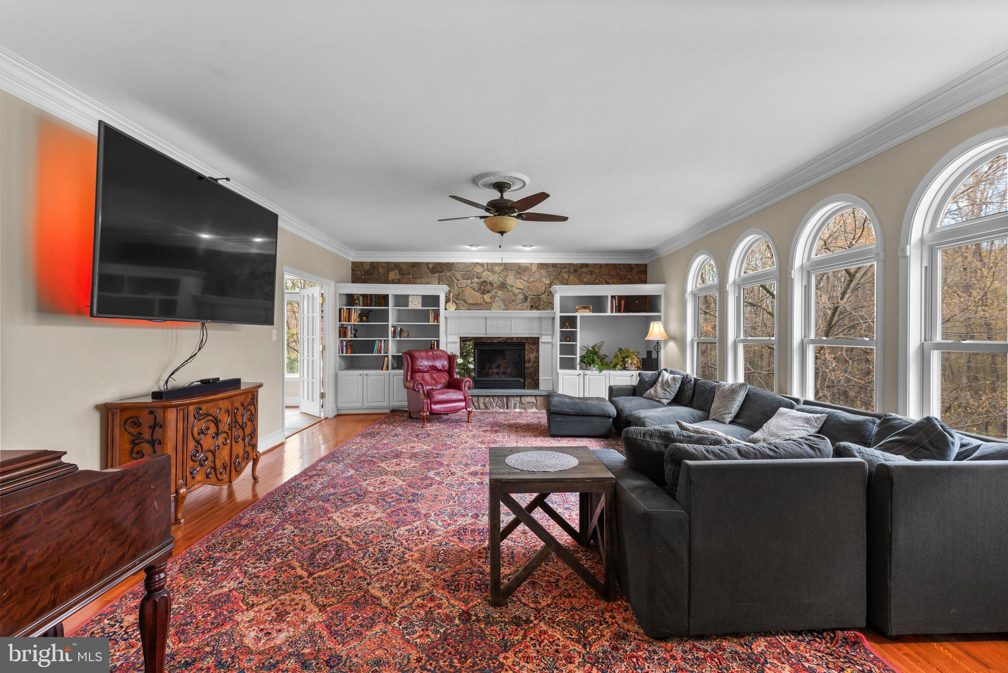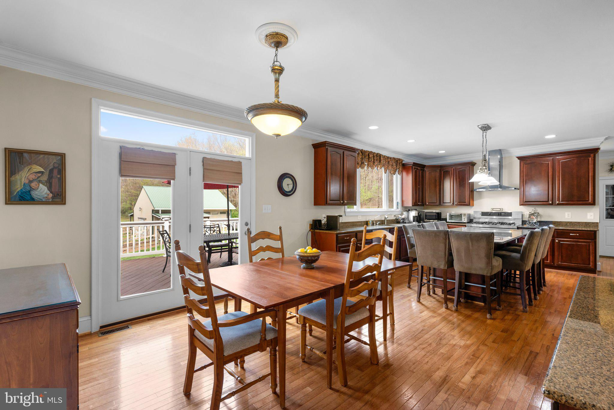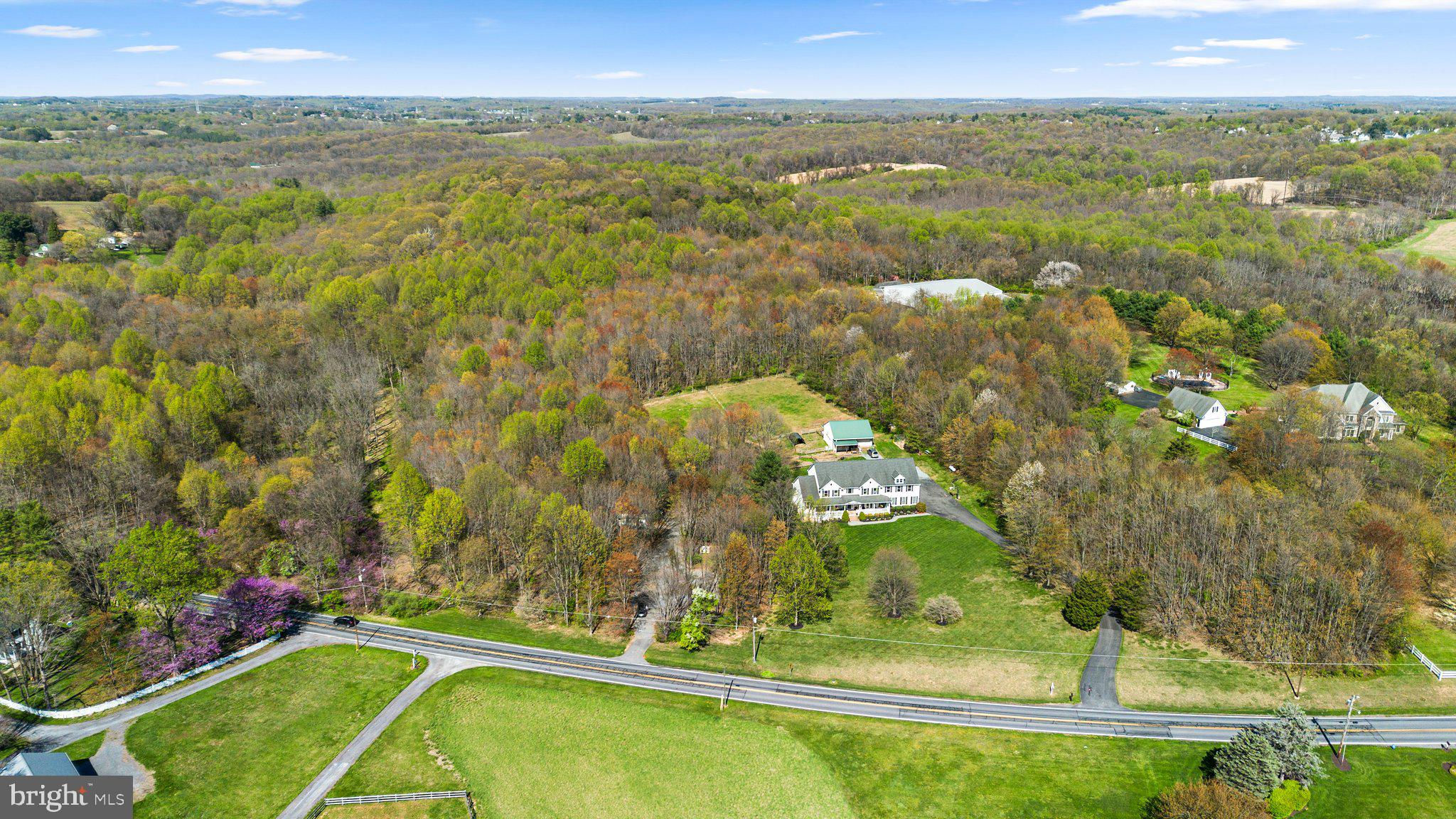This stunning custom-built estate is perfectly situated on a private 5.6-acre lot, backing to hundreds of acres of undeveloped wooded land for ultimate privacy and natural beauty. A sprawling front porch welcomes you with breathtaking rolling countryside views, creating a peaceful retreat while still being conveniently close to shopping, dining, and major commuter routes.With 7,800 sq. ft. of finished living space across three levels, this move-in-ready home offers 8 spacious bedrooms, 5 full bathrooms, and 1 half bath. The gourmet kitchen is a chef’s dream, featuring granite countertops, large island that seats 10 and includes plenty of storage below, stainless steel appliances, a large pantry, and a cozy table space sitting area. The main level also boasts a formal dining room, a sunroom filled with natural light, and a warm and inviting family room complete with built-ins, stone accents, and a gas fireplace. A dedicated laundry room with cabinets, washer, and dryer adds convenience to daily living.Upstairs, the owner’s suite is a true retreat, offering a tray ceiling, a private gas fireplace in sitting room, an enormous walk-in closet, and a luxurious en-suite bathroom with granite countertops, a large step-in shower, and a whirlpool tub. An adjoining bonus room provides the perfect space for a home office, sitting area, or workout space. The upper level also includes three additional generously sized bedrooms one of which has its own full bathroom and all with ample closet space.The fully finished lower level is designed for entertainment and relaxation, featuring a theater room, a large storage room, and 2 additional bedrooms with a full bathroom and gas fireplace and kitchenette with granite countertop and washer dryer hook-up Outside, the property is just as impressive, featuring a 3-car garage, a large driveway with additional parking pad, an additional gravel driveway with field access and additional parking with (2) 30 amp hookups and (1) 50 amp hookup RV pad, beautifully landscaped grounds surrounded by mature trees. The Barn features 2 bedrooms, 1 full bathroom, full kitchen and living area. Whether you’re looking for a peaceful retreat, a multi-generational living space, or a home designed for entertaining, this estate offers it all. Don’t miss this rare opportunity to own a truly one-of-a-kind property—schedule your private showing today!