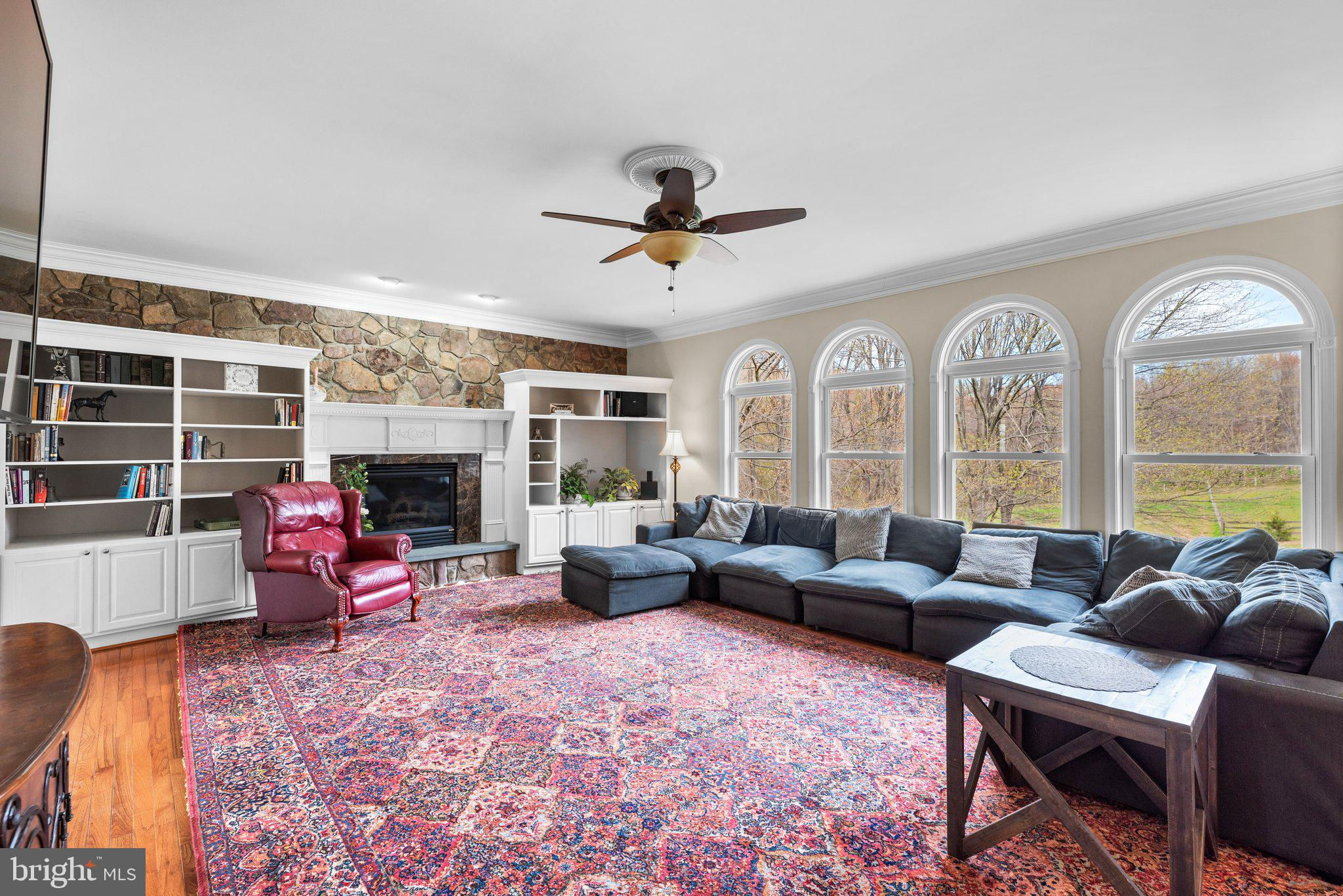 This stunning custom-built estate is perfectly situated on a private 5.6-acre lot, backing to hundreds of acres of undeveloped wooded land for ultimate privacy and natural beauty. A sprawling front porch welcomes you with breathtaking rolling countryside views, creating a peaceful retreat while still being conveniently close to shopping, dining, and major commuter routes.With 7,800 sq. ft. of finished living space across three levels, this move-in-ready home offers 8 spacious bedrooms, 5 full bathrooms, and 1 half bath. The gourmet kitchen is a chef’s dream, featuring granite countertops, large island that seats 10 and includes plenty of storage below, stainless steel appliances, a large pantry, and a cozy table space sitting area. The main level also boasts a formal dining room, a sunroom filled with natural light, and a warm and inviting family room complete with built-ins, stone accents, and a gas fireplace. A dedicated laundry room with cabinets, washer, and dryer adds convenience to daily living.Upstairs, the owner’s suite is a true retreat, offering a tray ceiling, a private gas fireplace in sitting room, an enormous walk-in closet, and a luxurious en-suite bathroom with granite countertops, a large step-in shower, and a whirlpool tub. An adjoining bonus room provides the perfect space for a home office, sitting area, or workout space. The upper level also includes three additional generously sized bedrooms one of which has its own full bathroom and all with ample closet space.The fully finished lower level is designed for entertainment and relaxation, featuring a theater room, a large storage room, and 2 additional bedrooms with a full bathroom and gas fireplace and kitchenette with granite countertop and washer dryer hook-up Outside, the property is just as impressive, featuring a 3-car garage, a large driveway with additional parking pad, an additional gravel driveway with field access and additional parking with (2) 30 amp hookups and (1) 50 amp hookup RV pad, beautifully landscaped grounds surrounded by mature trees. The Barn features 2 bedrooms, 1 full bathroom, full kitchen and living area. Whether you’re looking for a peaceful retreat, a multi-generational living space, or a home designed for entertaining, this estate offers it all. Don’t miss this rare opportunity to own a truly one-of-a-kind property—schedule your private showing today!