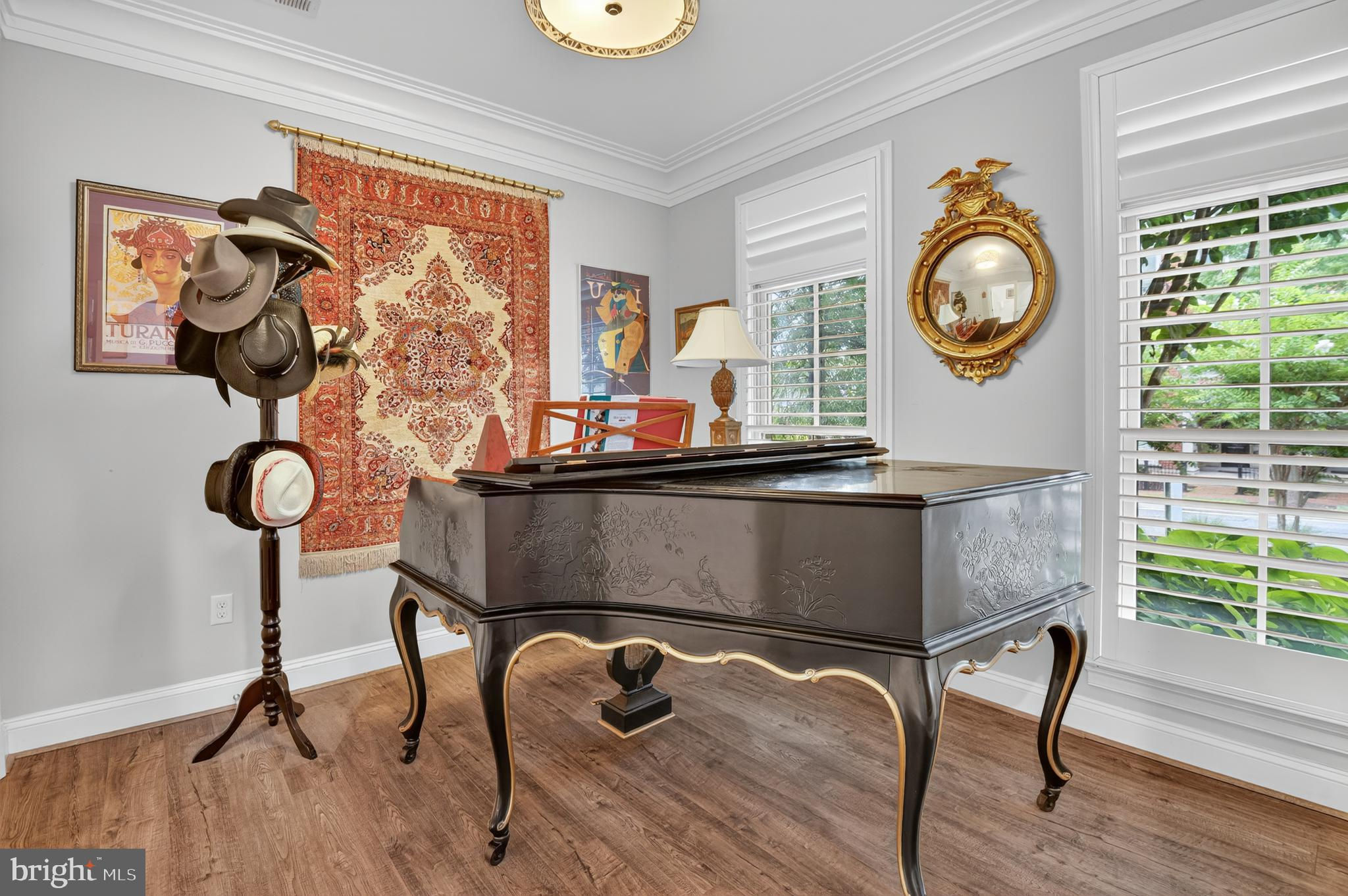 Luxury 4-Story Townhome in Symphony Park at Strathmore.This sophisticated 4-bedroom, 4.5-bath home in the prestigious Symphony Park community offers elegant living just steps from the Strathmore Mansion & Music Center. An elevator provides access to all levels, including the 2-car garage with EV outlet. A spacious open floor plan is adorned with high ceilings, oversized windows, and extensive moldings. Smart home features are seamlessly integrated throughout.The entry level features a private guest bedroom with a full bath, ideal for visitors or a home office. Elegant formal living and dining rooms showcase beautiful coffered ceilings, custom built-ins, and a gas fireplace, creating a sophisticated setting for entertaining. Step outside to the adjacent terrace where you'll find a grill with a built-in gas line for effortless grilling. The gourmet kitchen features Wood-Mode Brookhaven cabinetry and top-tier stainless steel appliances. Upstairs, the primary suite is a true haven with two walk-in closets and a spa-like bath. A secondary bedroom and full bath complete this level. The top floor offers a versatile retreat with a bedroom, loft with wet bar, and an expansive rooftop deck—perfect for both relaxation and entertaining under the stars. Recent updates include a new HVAC system, refrigerator, water line, exterior paint, new decking, and luxury vinyl flooring on the entry level. Meticulously maintained and move-in ready, this residence is ideally located near Grosvenor Metro, I-495/I-270, and the vibrant dining and shopping of Bethesda and Rockville.