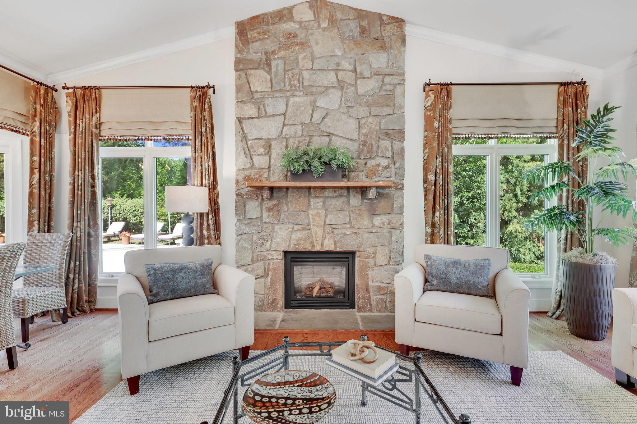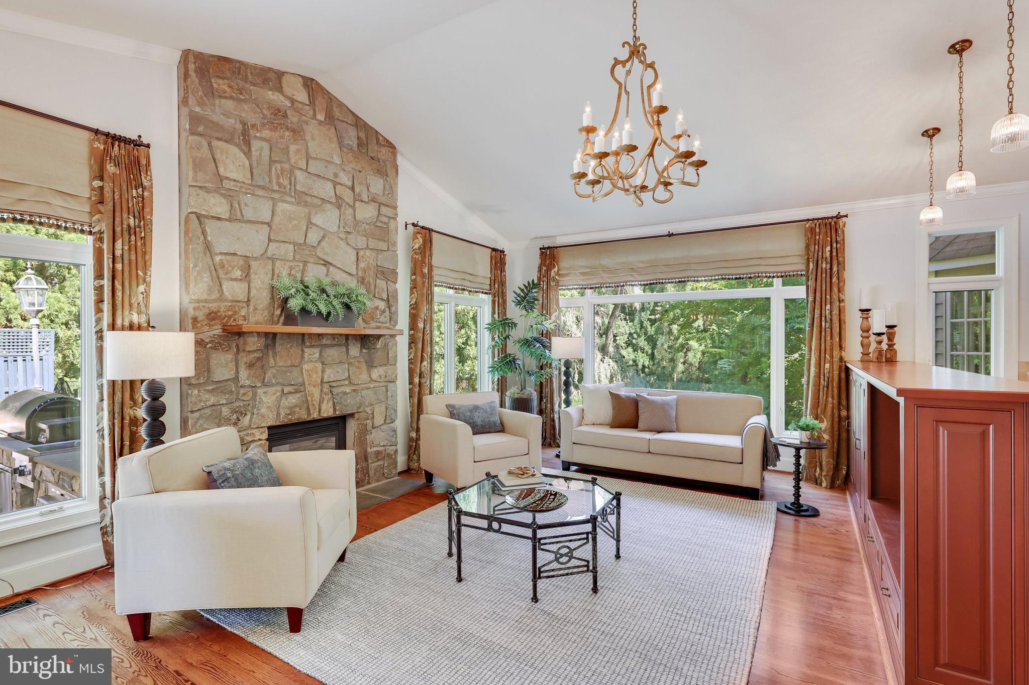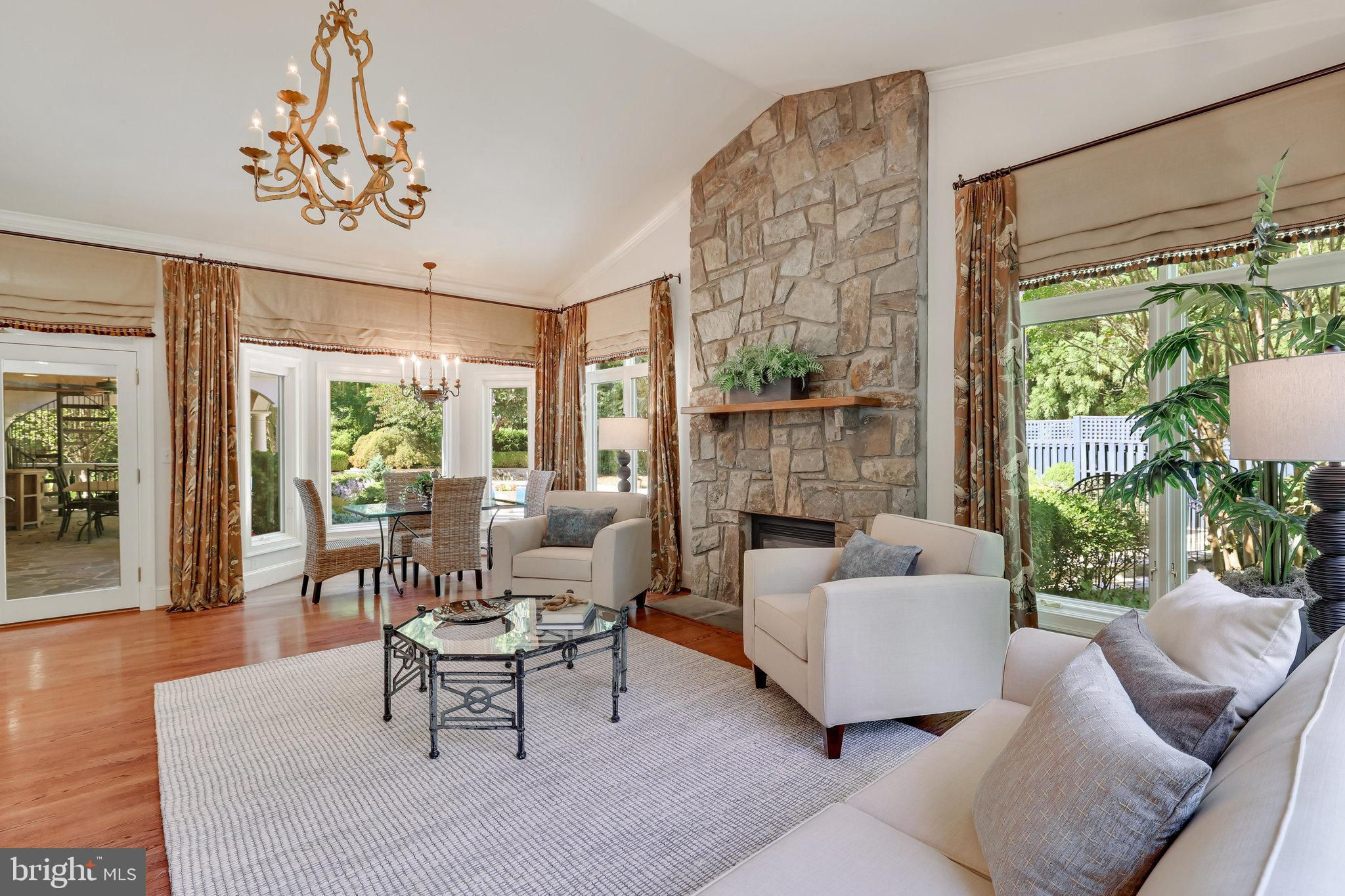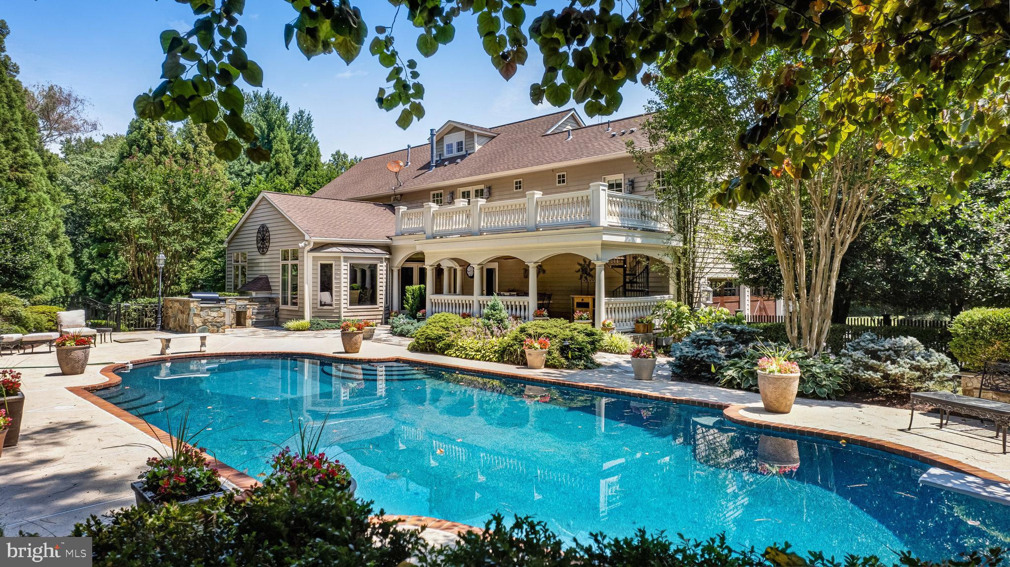 Welcome to 10919 Belgravia Court, a magnificent stone -clad residence offering five bedrooms, four and a half baths, and a sparkling pool, nestled at the end of a private cul-de-sac surrounded by natural woodlands. This home is perfect for those seeking luxury and privacy, with approximately 6508 finished square feet spanning four levels. The main level features a chef’s kitchen, which serves as the heart of the home. This kitchen boasts top-of-the-line appliances and an open layout that flows seamlessly into the stunning family room. Highlighted by a dramatic stone fireplace and vaulted ceiling, the family room is bathed in natural light and offers breathtaking views of the backyard and pool area. The owner’s suite is a luxurious retreat, complete with a sitting room, private balcony overlooking the pool, and spa like bathroom, creating a serene oasis for relaxation. The Versatile fourth level can be utilized as a bedroom, second office or flex space, and includes a full bathroom for added convenience. The bright and inviting lower level exudes abundant light and features a handsome recreation room with wall of built-ins, large wet bar complete with dishwasher and mini fridge, game room, full bathroom with sauna, and a fitness area with exercise flooring. The private backyard is an entertainer’s dream, featuring a sculptured and heated swimming pool, hot tub, outdoor kitchen, veranda, and custom-designed landscaping with paths, patios, elegant boulder steps, and classic rose garden with stone fountain. Enjoy al-fesco dining while taking in the serene, private surroundings and lush landscaping. Additionally, a whole house generator powered by natural gas ensures you never experience a power outage. Situated on a private, park-like 1.93-acre lot, this gorgeous, light-filled home offers stunning views and unparalleled living experience. Don’t miss the opportunity to make this exquisite property your own.