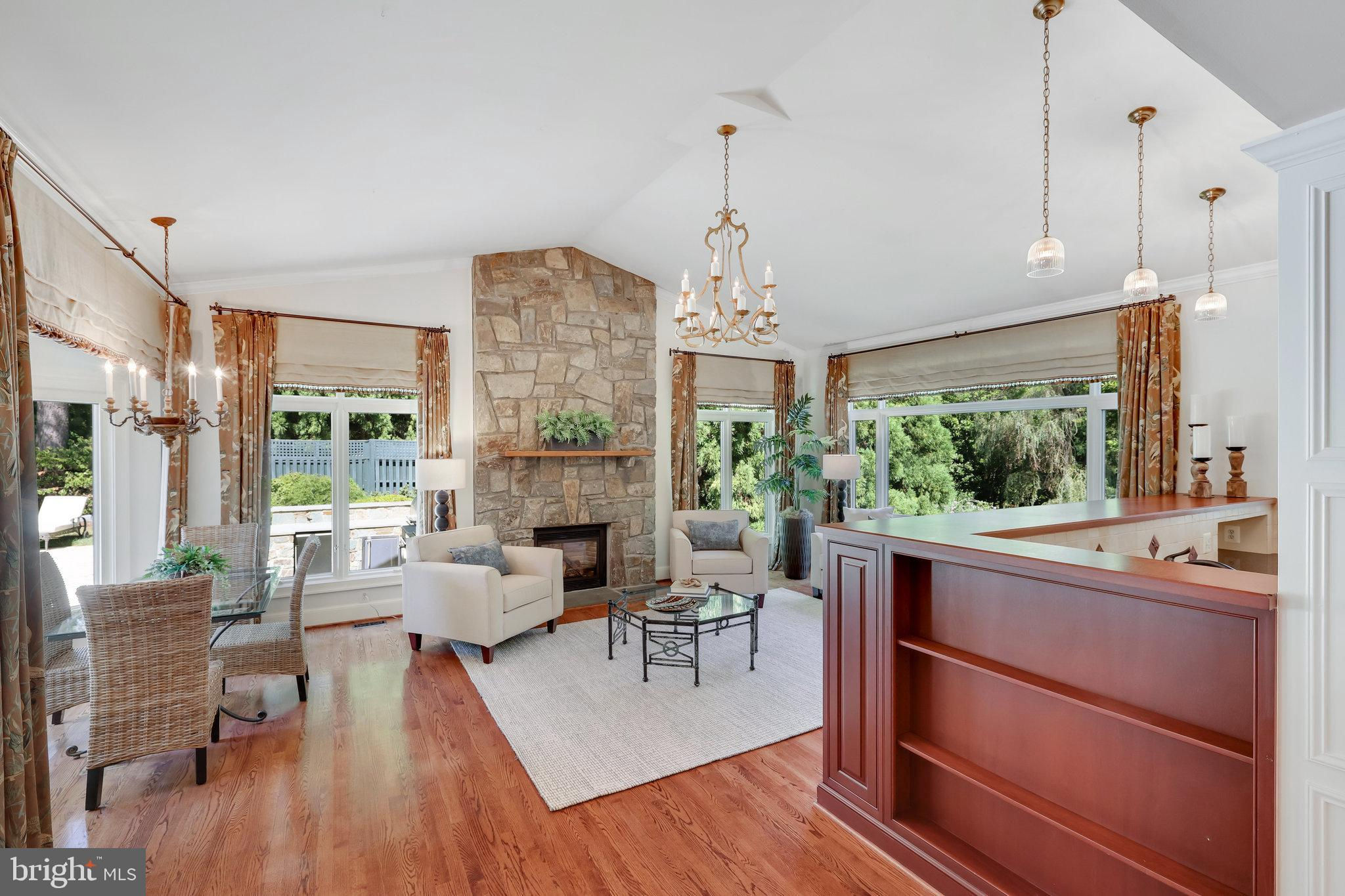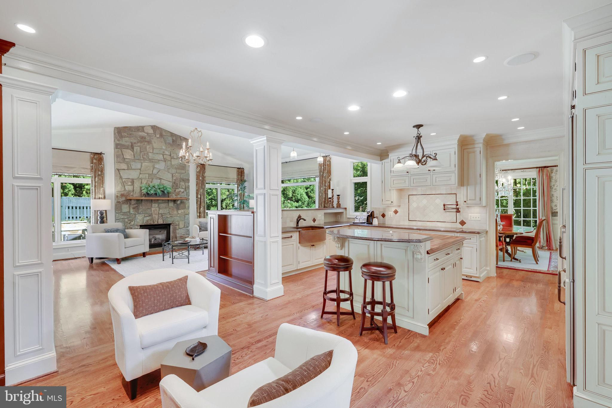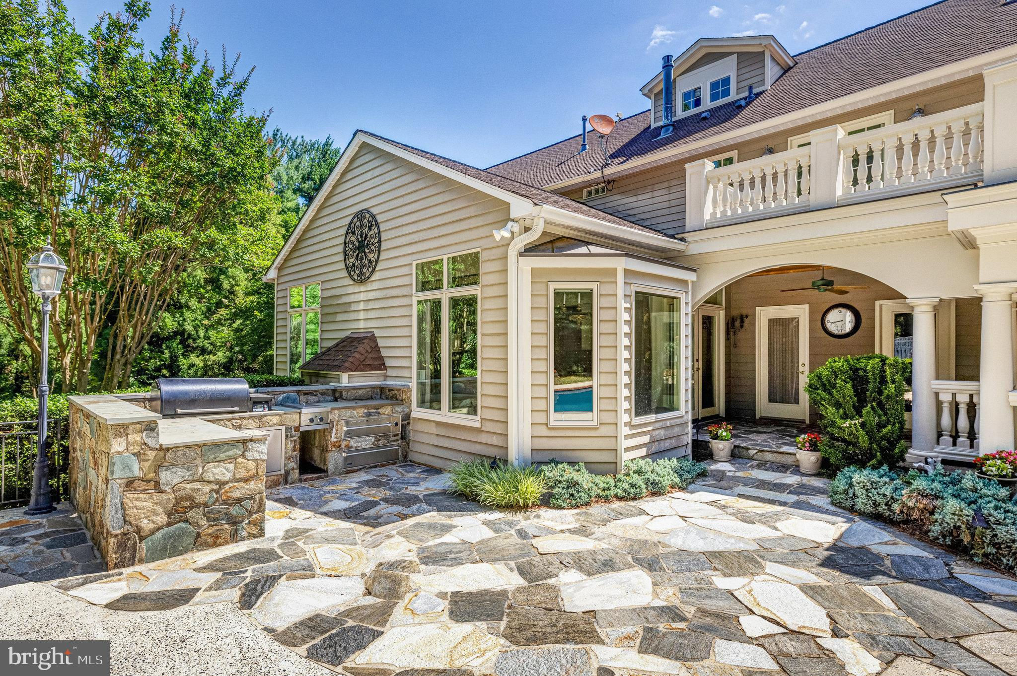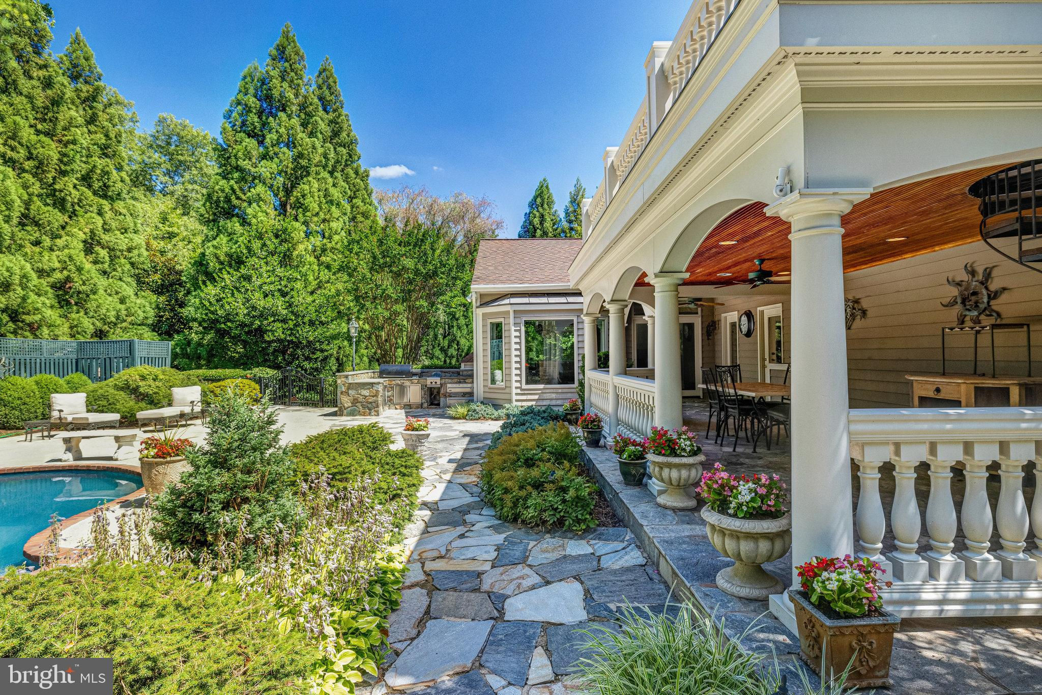Welcome to 10919 Belgravia Court, a magnificent stone -clad residence offering five bedrooms, four and a half baths, and a sparkling pool, nestled at the end of a private cul-de-sac surrounded by natural woodlands. This home is perfect for those seeking luxury and privacy, with approximately 6508 finished square feet spanning four levels. The main level features a chef’s kitchen, which serves as the heart of the home. This kitchen boasts top-of-the-line appliances and an open layout that flows seamlessly into the stunning family room. Highlighted by a dramatic stone fireplace and vaulted ceiling, the family room is bathed in natural light and offers breathtaking views of the backyard and pool area. The owner’s suite is a luxurious retreat, complete with a sitting room, private balcony overlooking the pool, and spa like bathroom, creating a serene oasis for relaxation. The Versatile fourth level can be utilized as a bedroom, second office or flex space, and includes a full bathroom for added convenience. The bright and inviting lower level exudes abundant light and features a handsome recreation room with wall of built-ins, large wet bar complete with dishwasher and mini fridge, game room, full bathroom with sauna, and a fitness area with exercise flooring. The private backyard is an entertainer’s dream, featuring a sculptured and heated swimming pool, hot tub, outdoor kitchen, veranda, and custom-designed landscaping with paths, patios, elegant boulder steps, and classic rose garden with stone fountain. Enjoy al-fesco dining while taking in the serene, private surroundings and lush landscaping. Additionally, a whole house generator powered by natural gas ensures you never experience a power outage. Situated on a private, park-like 1.93-acre lot, this gorgeous, light-filled home offers stunning views and unparalleled living experience. Don’t miss the opportunity to make this exquisite property your own.