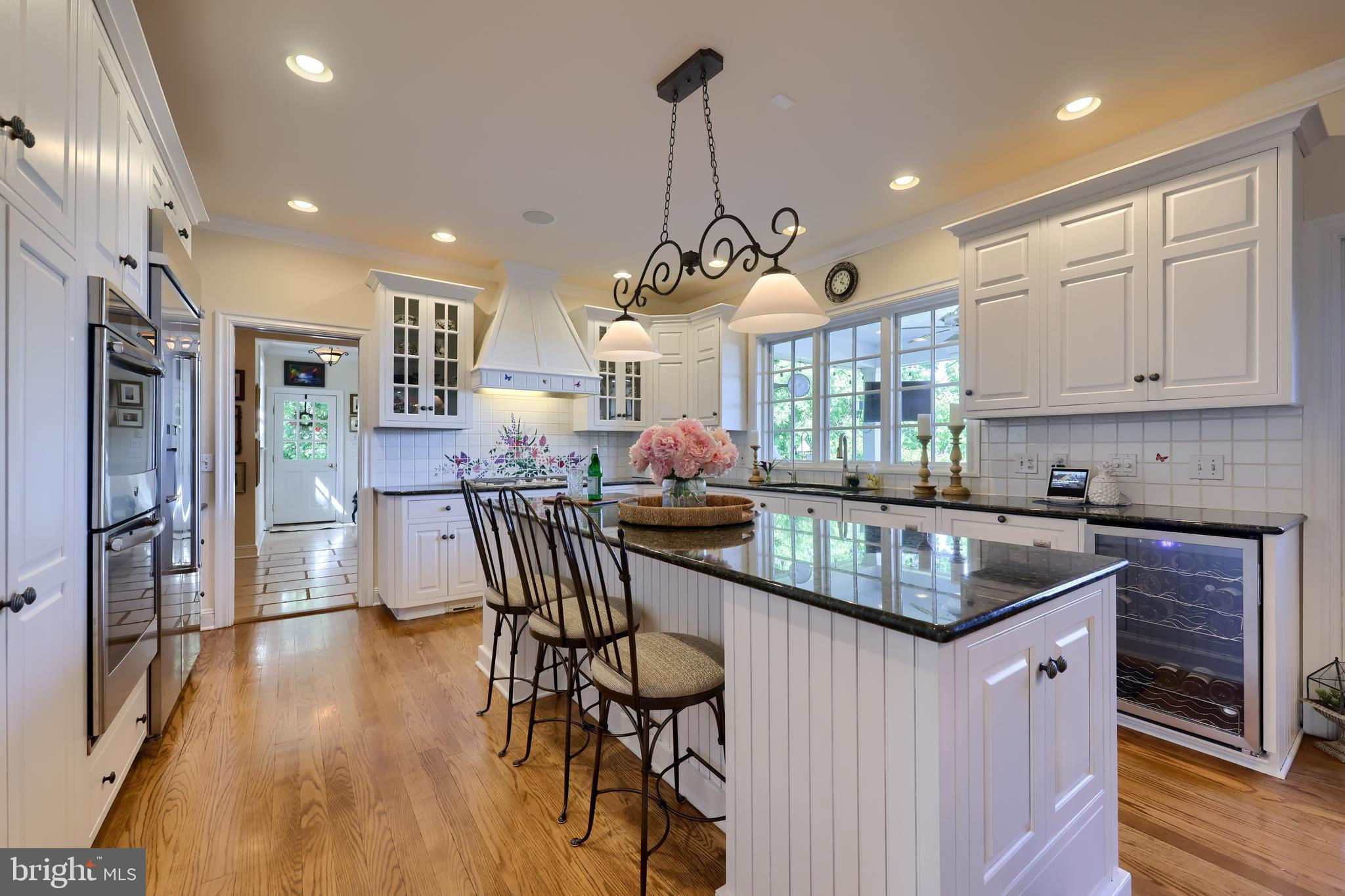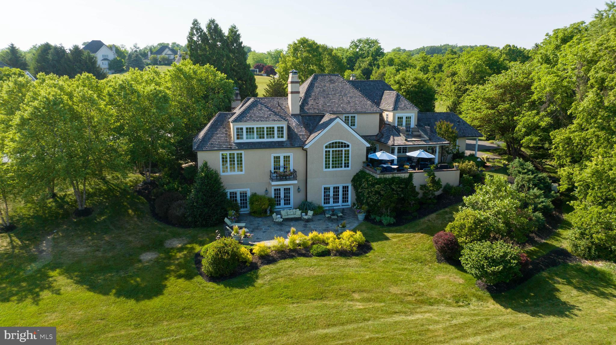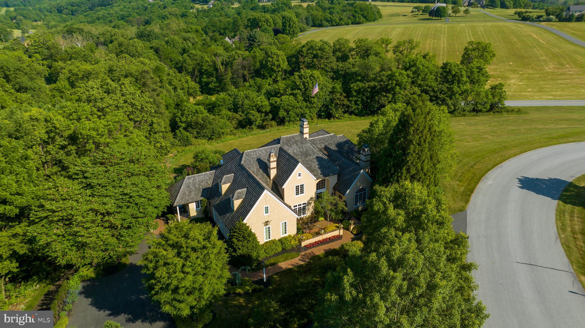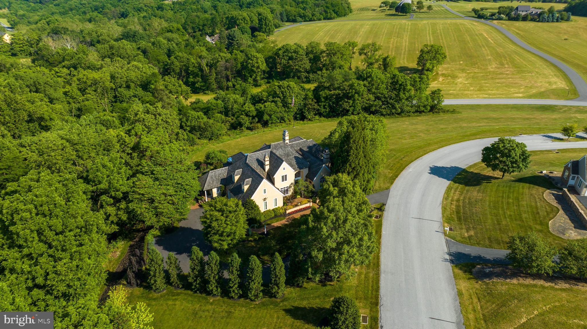 Exquisite five-bedroom custom home tucked away on a beautifully wooded 2.88 acre lot with amazing views of the Susquehanna River in the distance. Located in the private community of Lauxmont Farms sitting high on a hill in historic Wrightsville, Pennsylvania, this property is surrounded by nature and a yard lushly landscaped with an abundance of colorful plants and flowers. You’ll especially love a cutting garden that will give you flower arrangements all season long. From elegant woodwork to vaulted ceilings to picture windows that take in the outdoor views, no detail was missed in the design of this finely crafted residence. A soaring two-story foyer invites you into the home where you’ll find an elegant wood staircase leading to the second floor. The primary bedroom on the main level is a quiet retreat in the back of the home and offers a sitting area with a fireplace and a balcony for enjoying scenic views. The sunrises are stunning! The primary bedroom also hosts two walk-in closets and a private bath with a whirlpool tub, tiled shower, and two sinks. The kitchen/dining/family room opens to a large patio that's an inviting space for entertaining family and friends. The gourmet kitchen includes everything you’ll need, including a gas cooktop, two wall ovens, three Fisher & Paykel dishwasher drawers, a warming oven, wine fridge, pantry cupboards, and an island with seating. You also will appreciate a formal dining room with a fireplace. The second level of the home provides an additional four bedrooms each with attached baths. The finished lower level is complete with a rec room and an office that both open to a patio for enjoying more of the outdoors. In the lower level, you also will find a wet bar, exercise room, game/stage room, and full bath. Rounding out the home is a three-car garage with lots of built-in cabinets. Off the garage is a mud room, powder room, and laundry room. Additional features include a central vacuum system, sound system throughout the home, and a generator for power outages. There's even a switch in the foyer's closet to lower the chandelier for cleaning or bulb changing. With a spectacular home in a peaceful, gorgeous setting, this property is a dream come true, and it’s waiting just for you! Don’t wait to schedule a private tour.