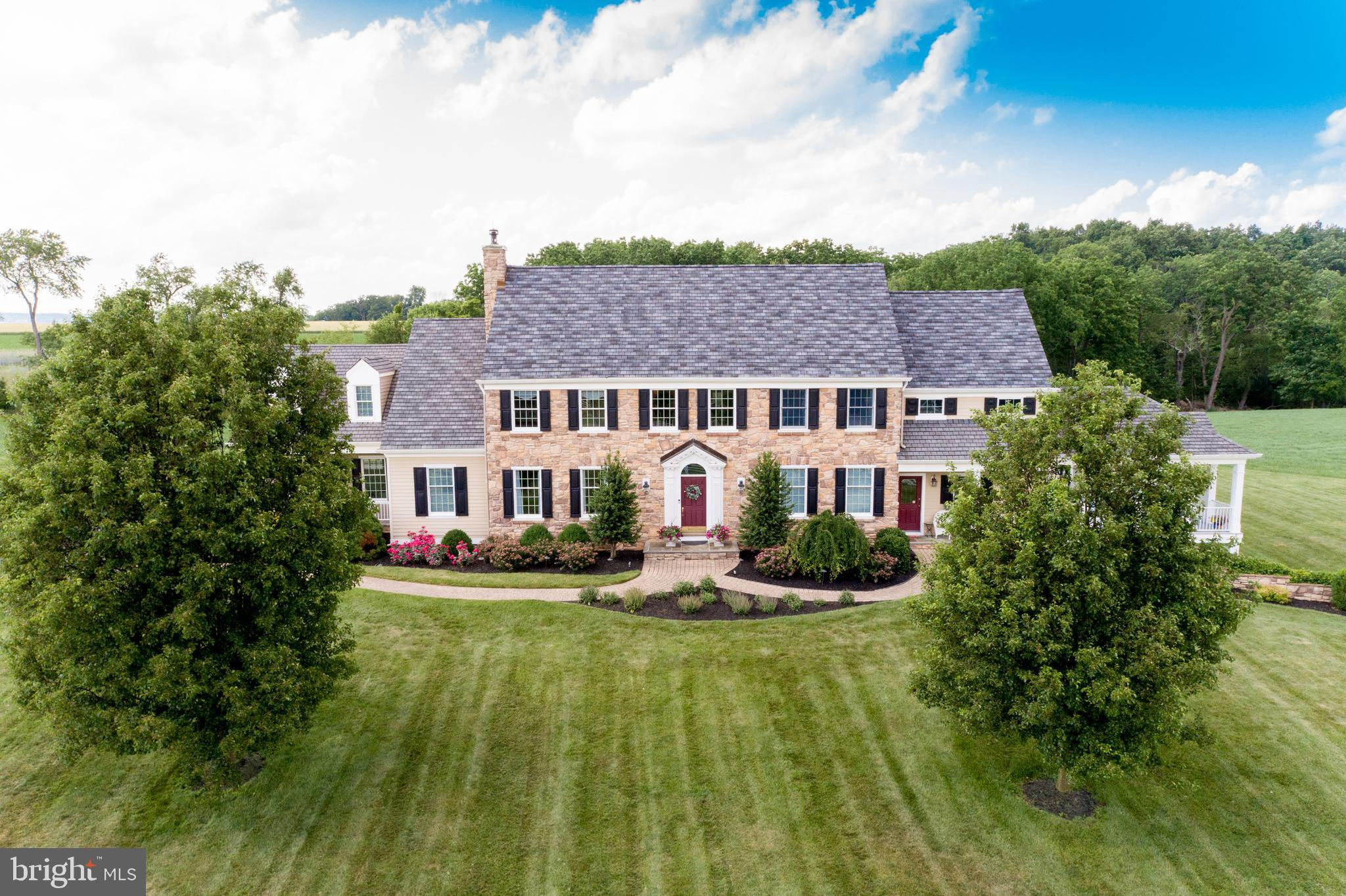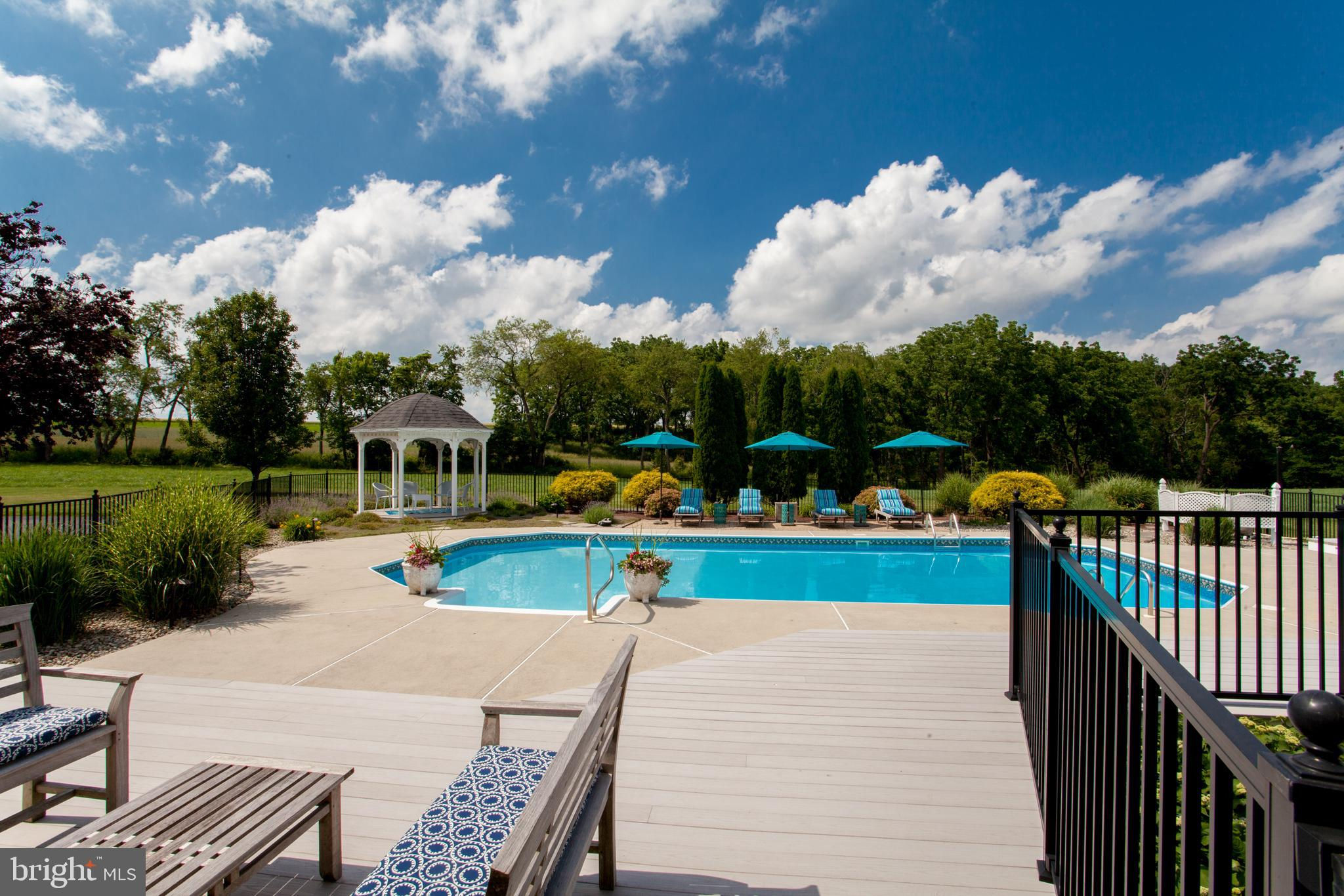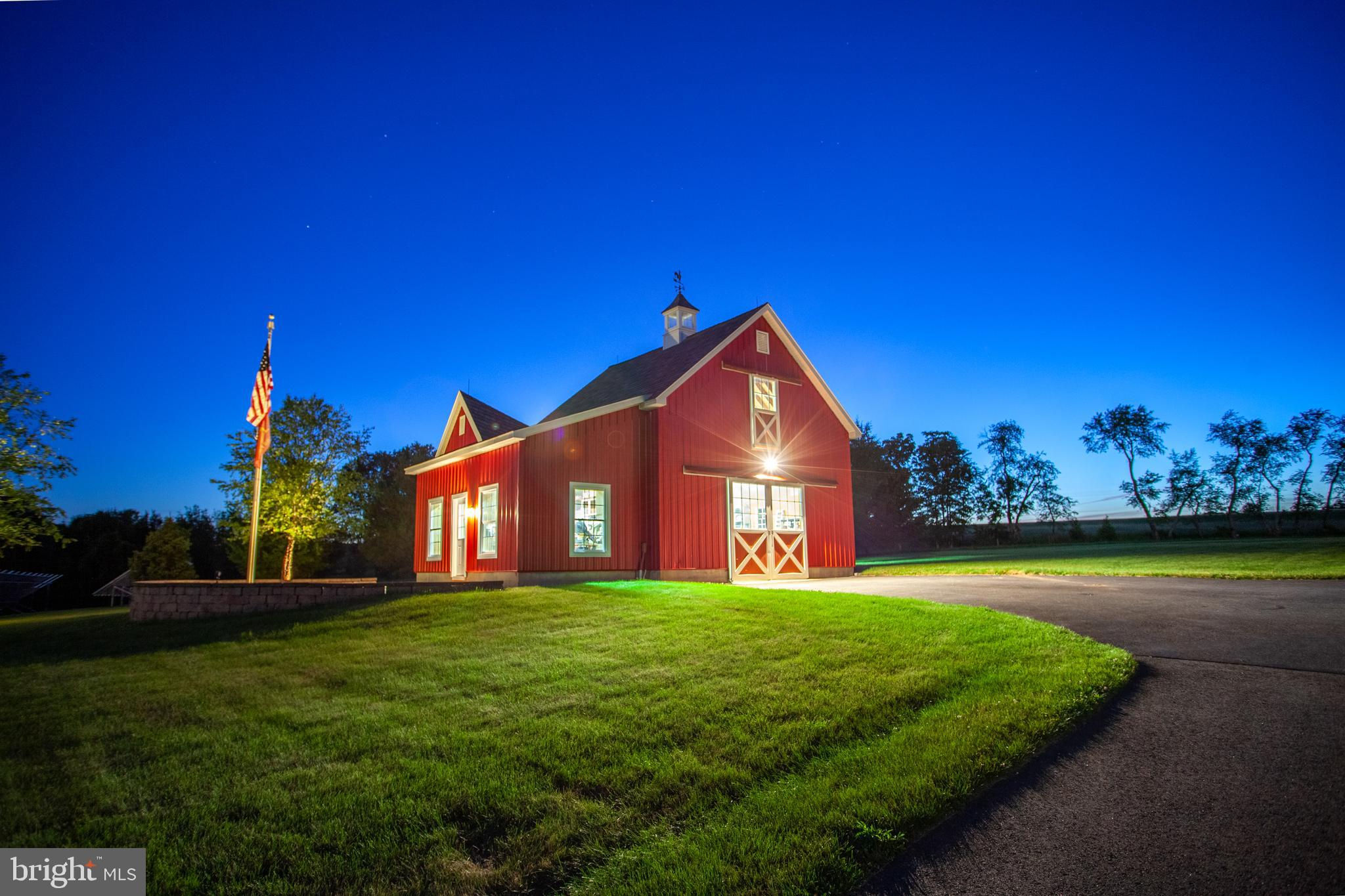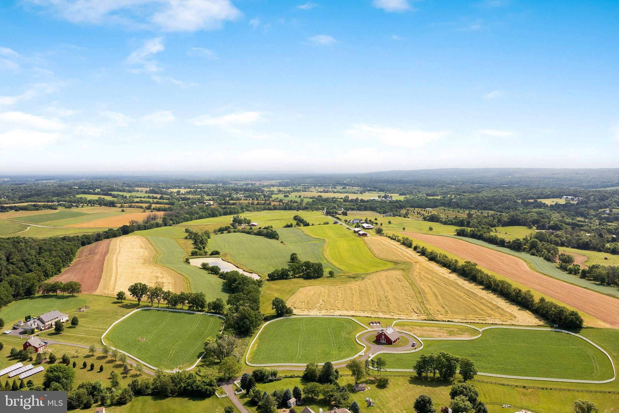 Chestnut Hill Farm is a spectacular property offering a gorgeous custom home, 2 barns, and stunning long-distance views. Sited on 26 acres, and surrounded by over 300 acres of preserved farmland, the driveway leads to a beautiful center hall colonial farmhouse. Enter into the 2-story foyer and notice the custom mill work, pine floors, high-end finishes that extend throughout the home. To the left a large sitting room leads to a home office with private entry. The dining room is framed by architectural pillars and flows into the sunny living room with fireplace surrounded, built-ins and full height windows. The eat-in-kitchen is a chef’s delight and features it's own fireplace, stainless steel appliances including a 6-burner Viking range, a second oven, granite counters, tile backsplash, center island, and access out to the expansive covered porch with vaulted ceiling overlooking sweeping views of the surrounding countryside and rolling hills. This is the perfect spot to enjoy your morning coffee, feel the breeze, and observe the local wildlife. The first floor is completed by a mudroom/ laundry room, powder room and access to the 3-car attached garage. Heading upstairs to the private living quarters there is a large sun-filled landing with window seat . The primary bedroom suite offers a sunny bedroom, ensuite bathroom with freestanding claw-foot tub, double vanity, tiled shower, and a separate dressing / sitting room with fireplace, two walk-in closets, and a second set of stairs that lead down, offering convenient access to the kitchen and porch. Three additional bedrooms with large closets, including additional ensuite, and a full hall bathroom with double vanity complete this level. The walk-out basement with bar and wood burning fireplace is perfect for entertaining and use as additional office space , with double french doors leading outside. Spend your summer sitting beside the beautifully landscaped in-ground pool and gazebo and enjoy stunning sunsets as you dine al fresco. In winter , warm up by the fire-pit after a cross-country ski from your own property. A barn with loft and heated workshop are nearby and add to the charm and amenities. Follow the tree lined driveway toward the quintessential red and white iconic horse barn built by B&D builders. These respected Amish craftsmen have included everything you need to fulfill your country dreams of keeping horses or sheep, collecting antique cars, or having a fabulous place to throw parties! With 2 solar panel arrays both the house and barn have $0 electric bills! The property is situated directly adjacent to the Amwell Valley Trail System, offering direct access to 30+ miles of trails for biking, hiking, horseback riding, and cross-country skiing. Enjoy the best of country living from this stunning estate located 15 minutes to New Hope, Lambertville, and Flemington and an hour from NYC and Philadelphia $0 Utility Bills!!! Home and Barn completely run on solar.
