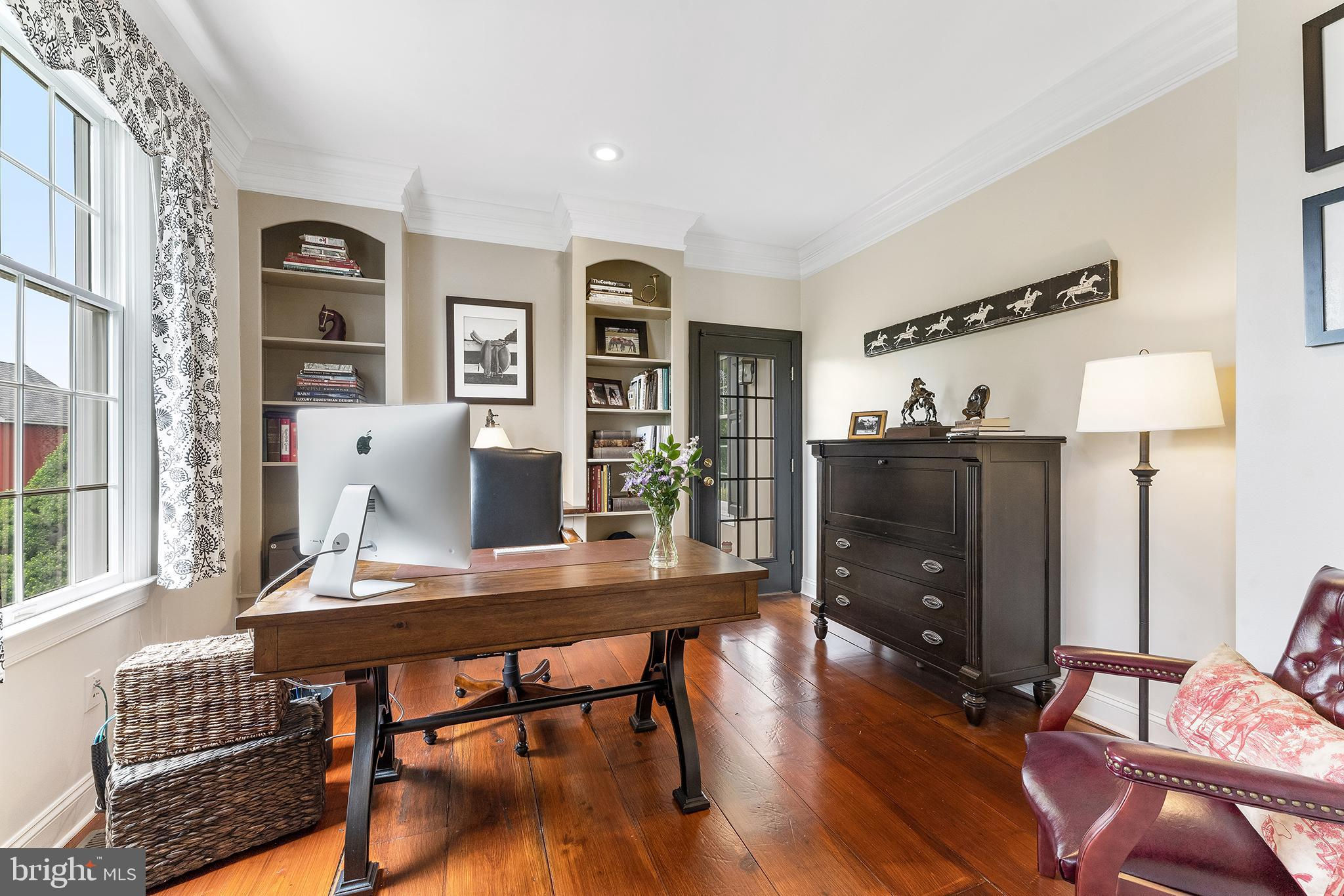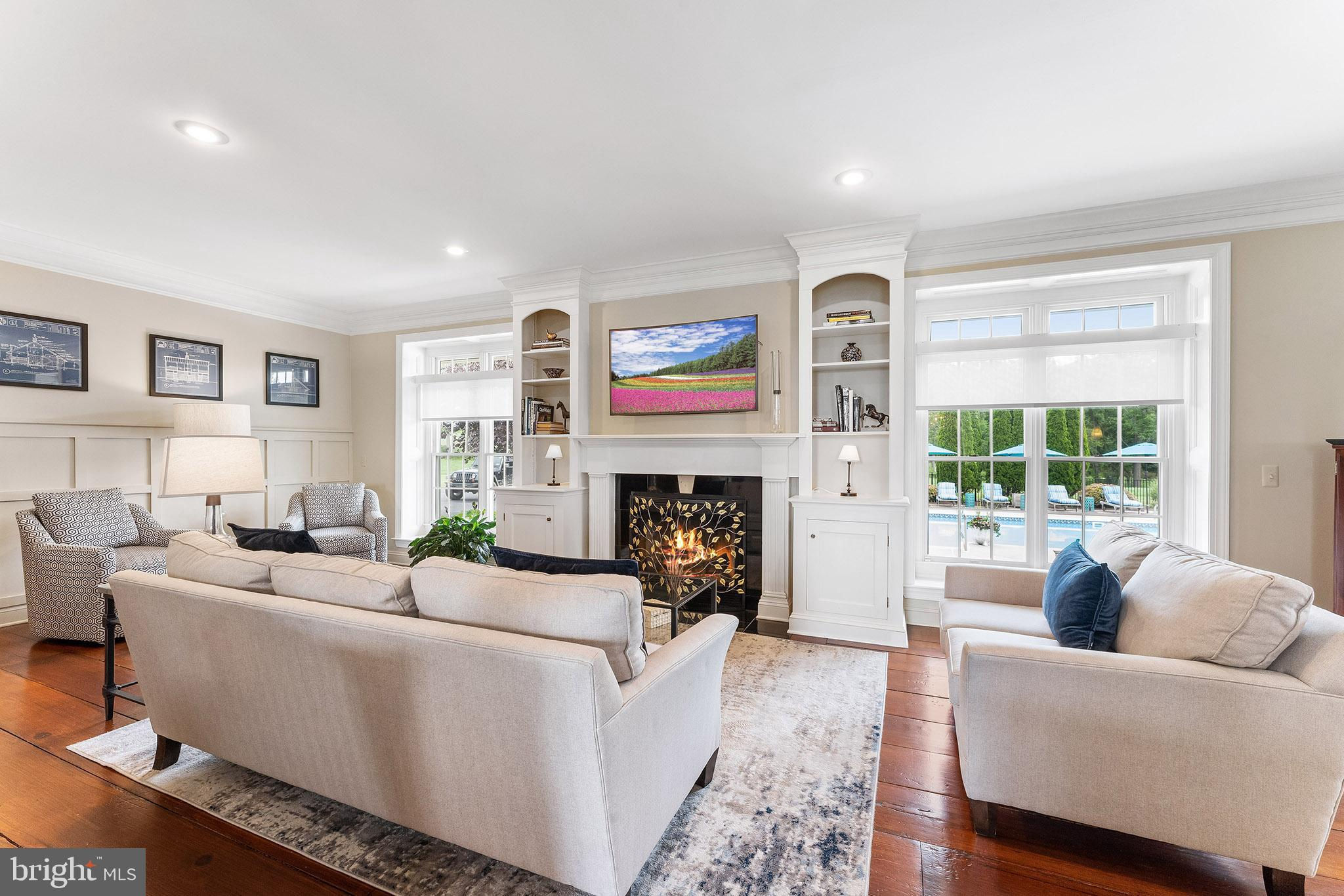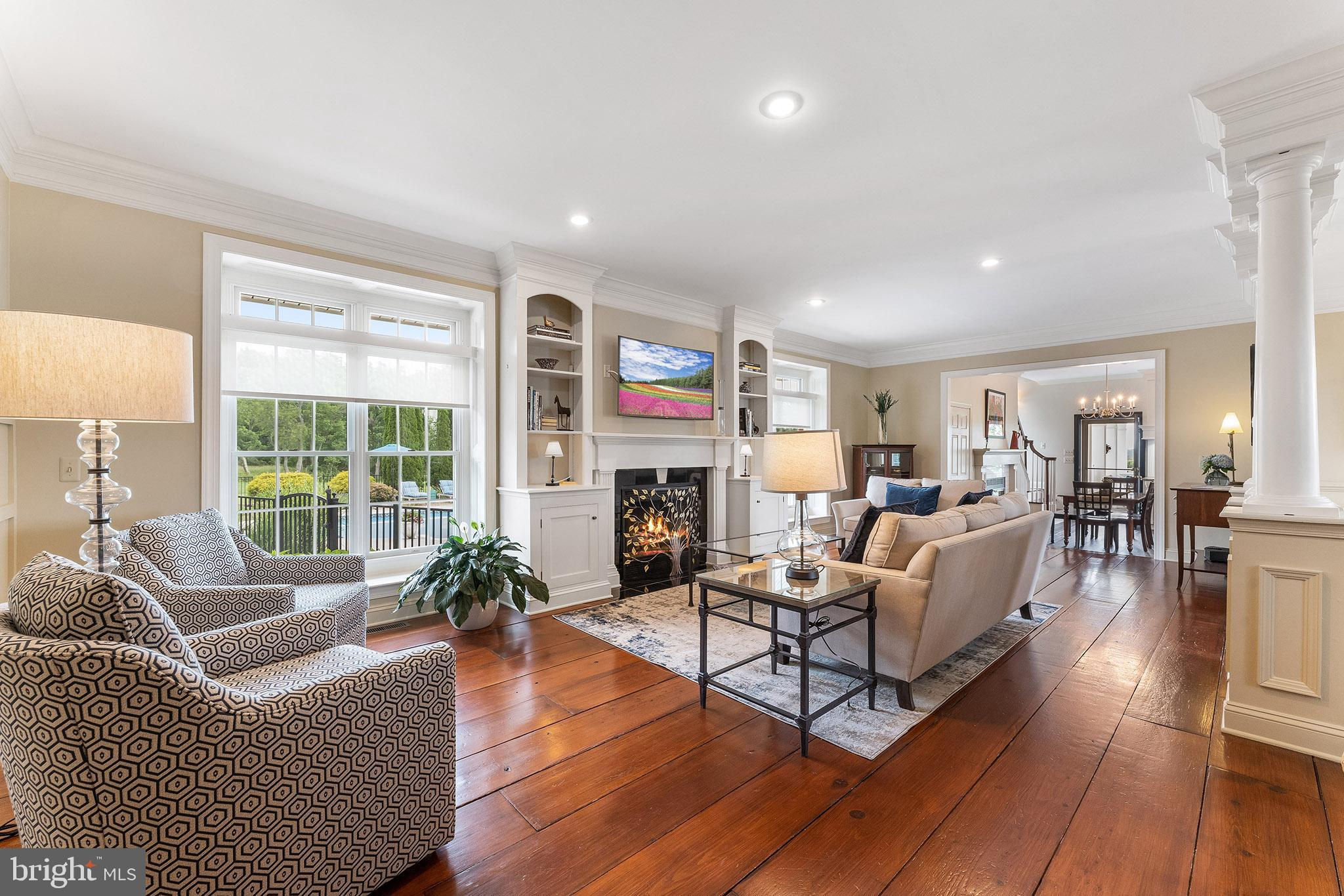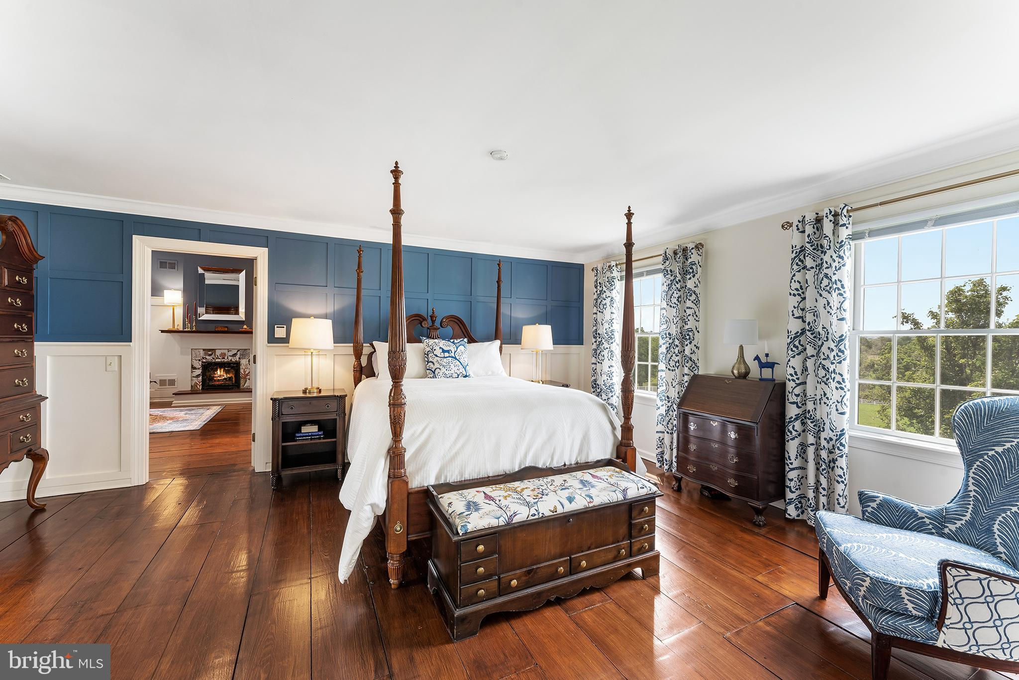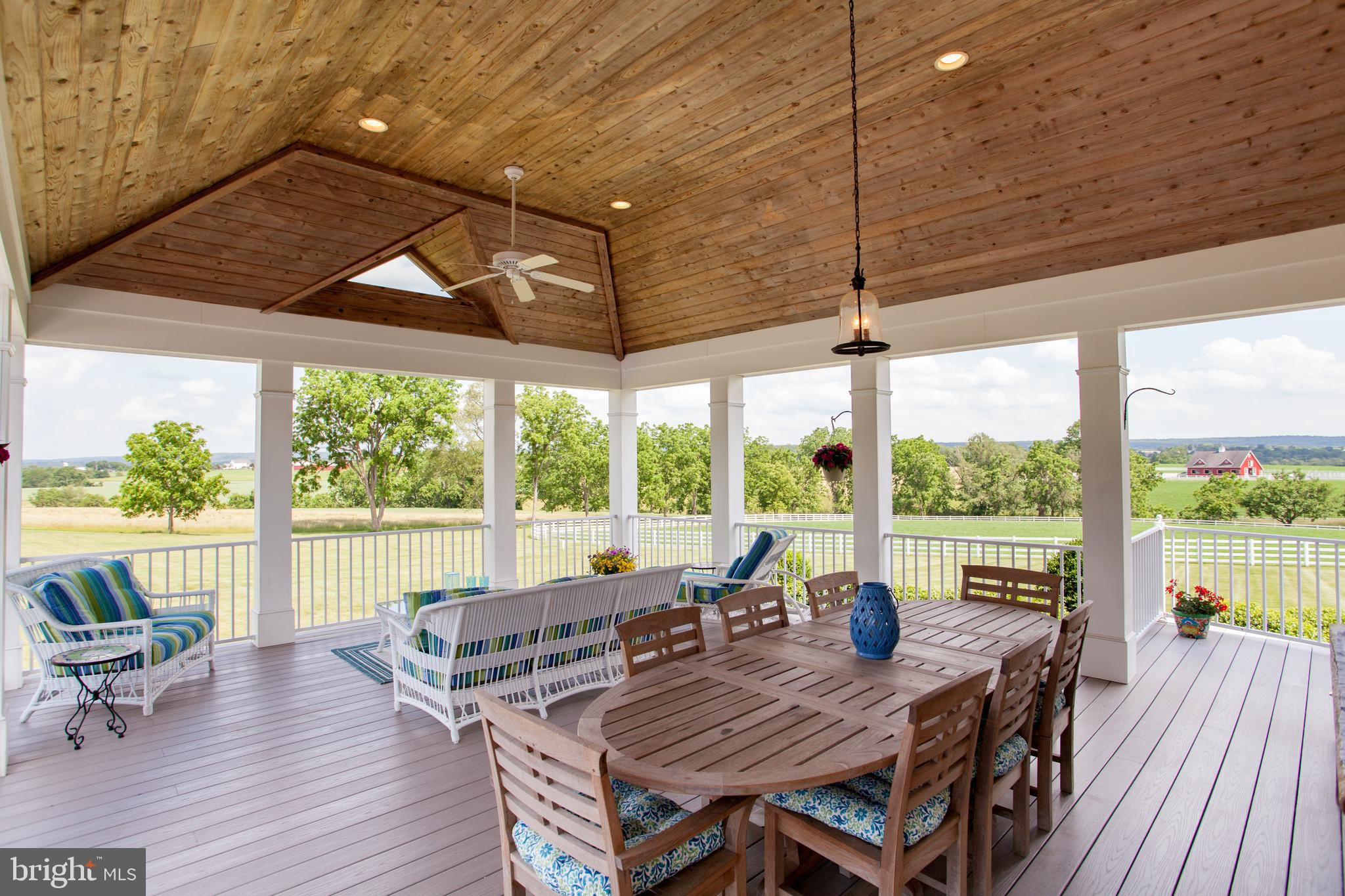 Chestnut Hill Farm is a spectacular property offering a gorgeous custom home, 2 barns, and stunning long-distance views. Sited on 26 acres, and surrounded by over 300 acres of preserved farmland, the driveway leads to a beautiful center hall colonial farmhouse. Enter into the 2-story foyer and notice the custom mill work, pine floors, high-end finishes that extend throughout the home. To the left a large sitting room leads to a home office with private entry. The dining room is framed by architectural pillars and flows into the sunny living room with fireplace surrounded, built-ins and full height windows. The eat-in-kitchen is a chef’s delight and features it's own fireplace, stainless steel appliances including a 6-burner Viking range, a second oven, granite counters, tile backsplash, center island, and access out to the expansive covered porch with vaulted ceiling overlooking sweeping views of the surrounding countryside and rolling hills. This is the perfect spot to enjoy your morning coffee, feel the breeze, and observe the local wildlife. The first floor is completed by a mudroom/ laundry room, powder room and access to the 3-car attached garage. Heading upstairs to the private living quarters there is a large sun-filled landing with window seat . The primary bedroom suite offers a sunny bedroom, ensuite bathroom with freestanding claw-foot tub, double vanity, tiled shower, and a separate dressing / sitting room with fireplace, two walk-in closets, and a second set of stairs that lead down, offering convenient access to the kitchen and porch. Three additional bedrooms with large closets, including additional ensuite, and a full hall bathroom with double vanity complete this level. The walk-out basement with bar and wood burning fireplace is perfect for entertaining and use as additional office space , with double french doors leading outside. Spend your summer sitting beside the beautifully landscaped in-ground pool and gazebo and enjoy stunning sunsets as you dine al fresco. In winter , warm up by the fire-pit after a cross-country ski from your own property. A barn with loft and heated workshop are nearby and add to the charm and amenities. Follow the tree lined driveway toward the quintessential red and white iconic horse barn built by B&D builders. These respected Amish craftsmen have included everything you need to fulfill your country dreams of keeping horses or sheep, collecting antique cars, or having a fabulous place to throw parties! With 2 solar panel arrays both the house and barn have $0 electric bills! The property is situated directly adjacent to the Amwell Valley Trail System, offering direct access to 30+ miles of trails for biking, hiking, horseback riding, and cross-country skiing. Enjoy the best of country living from this stunning estate located 15 minutes to New Hope, Lambertville, and Flemington and an hour from NYC and Philadelphia $0 Utility Bills!!! Home and Barn completely run on solar.