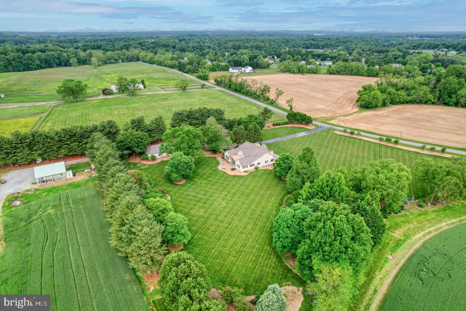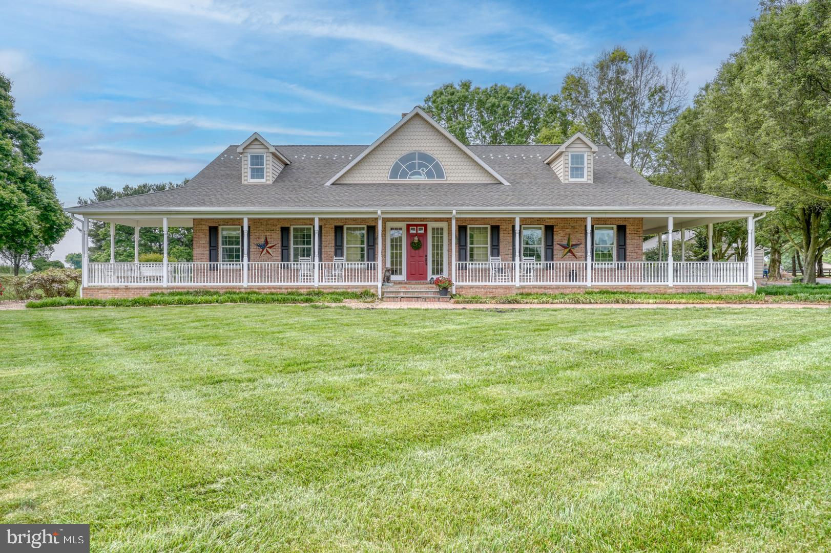 Nestled on 20+ acres of picturesque landscapes, this luxurious 4-bedroom, 4-bathroom home is a serene oasis just minutes from the convenience of 301 and the tax-free delights of Delaware. A private entrance, brick pathway, and beautifully manicured grounds create a sense of seclusion and privacy, inviting you to escape the hustle and bustle of everyday life. Upon entering this stunning home, you are immediately struck by the soaring 18-foot ceilings and inviting brick fireplace, surrounded by rich cherry hardwood floors that exude warmth and sophistication. The great room is bright and open, effortlessly flowing into the gourmet kitchen, which boasts granite countertops and custom backsplashes that showcase the homeowner's attention to detail. The kitchen is a true showstopper, with ample counter space, premium appliances, and a built-in brick grilling area that's perfect for entertaining. The sunny backyard is an extension of the indoor living space, offering a peaceful retreat to relax and unwind. Each of the four bedrooms is a serene sanctuary, with generous closet space and ensuites that are sure to impress. The master bedroom is a true retreat, with a spa-like bathroom, extended sitting room with fireplace and a private patio with breathtaking views of the surrounding landscape. Other notable features of this exceptional home include a convenient mudroom, a spacious laundry room, and a two-car garage that provides ample storage space. In addition to its picturesque surroundings, the home also features an impressive 1800 sf garage, complete with a cedar room, office, and bathroom. The garage offers ample storage space and is perfect for hobbies, workshops, or simply storing your toys. But the true gem of this property is its location. Surrounded by state land and private farms, this farm offers a sense of seclusion and privacy that is hard to find in today's fast-paced world. And with open space stretching as far as the eye can see, the possibilities for outdoor adventure and exploration are endless. Don't miss out on the opportunity to make this incredible property your own. Schedule an appointment and experience the beauty and tranquility of this country farm for yourself. Whether you're looking for a peaceful retreat or a place to pursue your passions, this property is sure to impress.