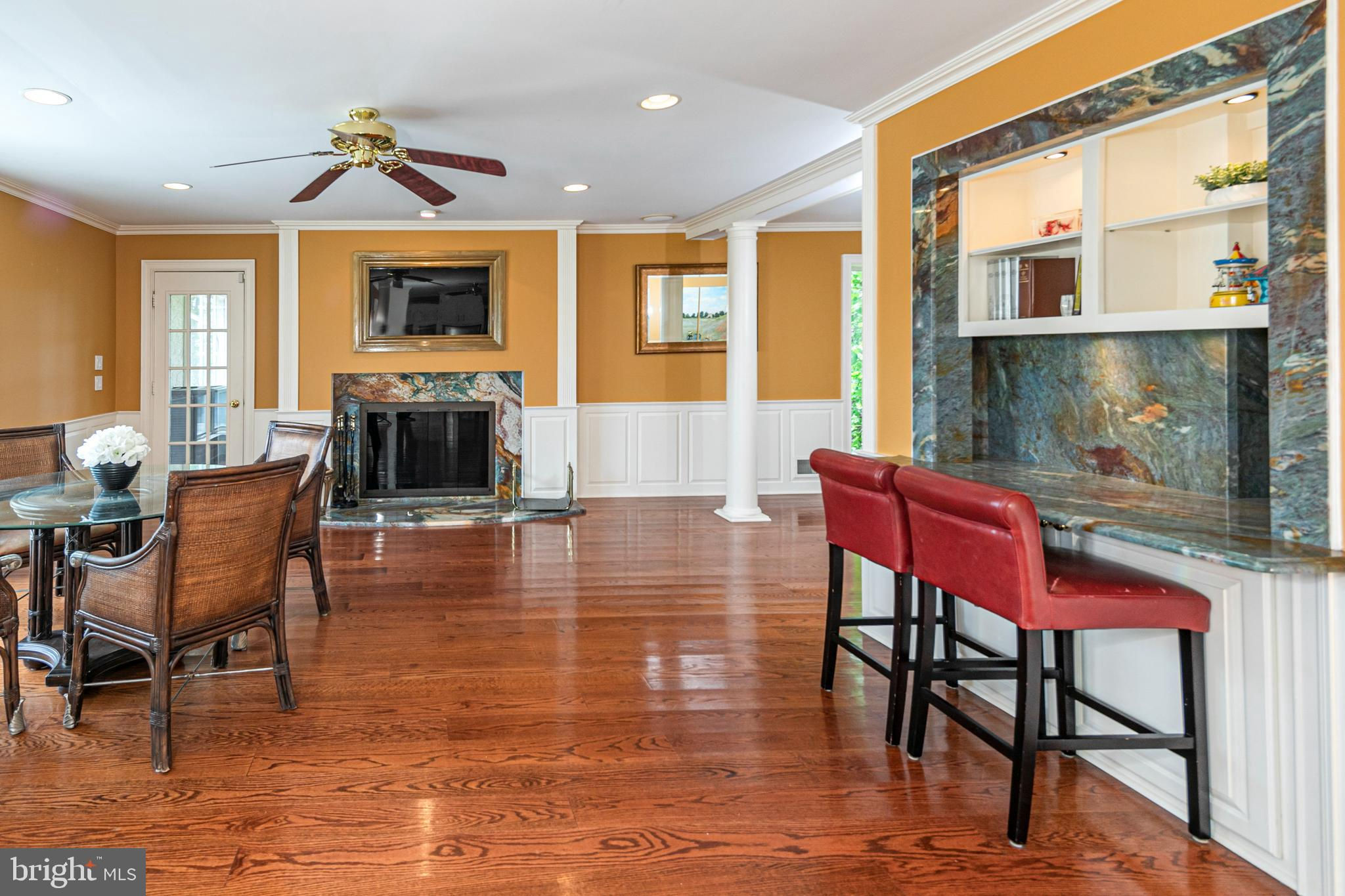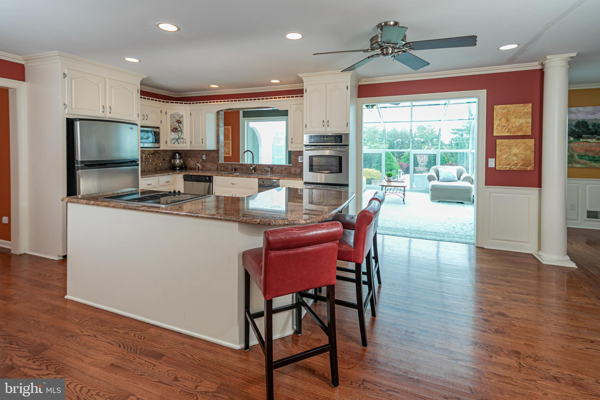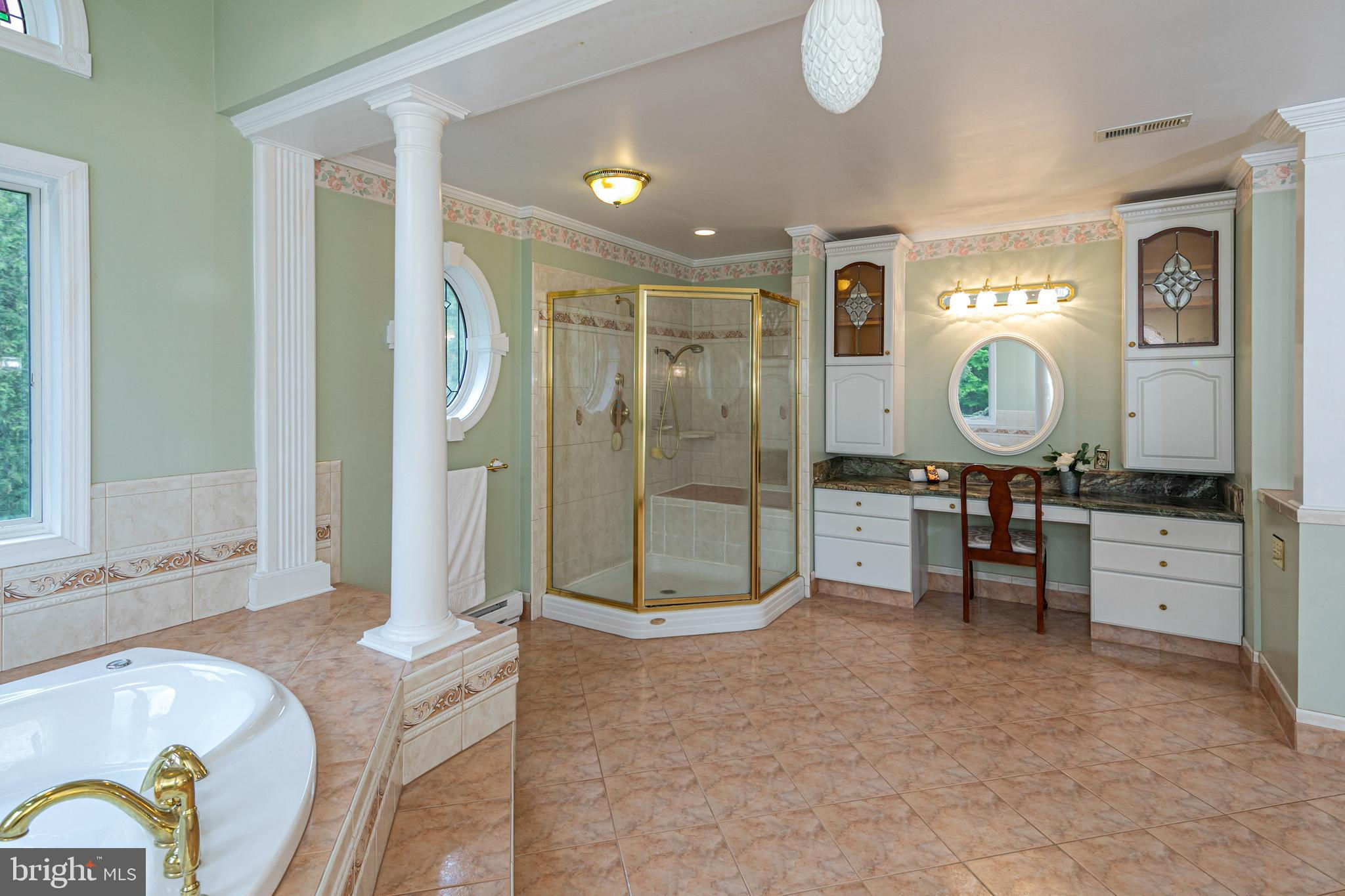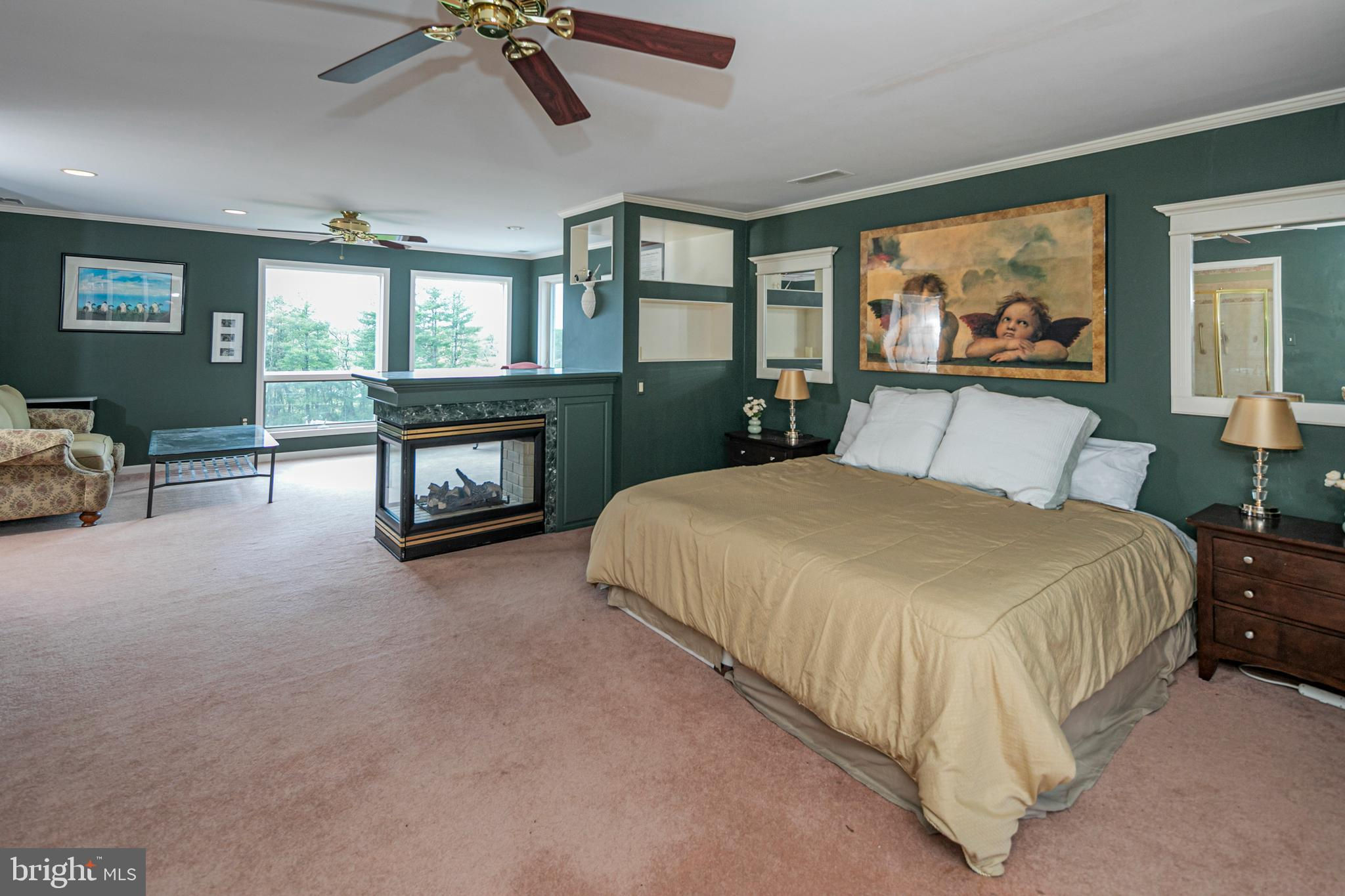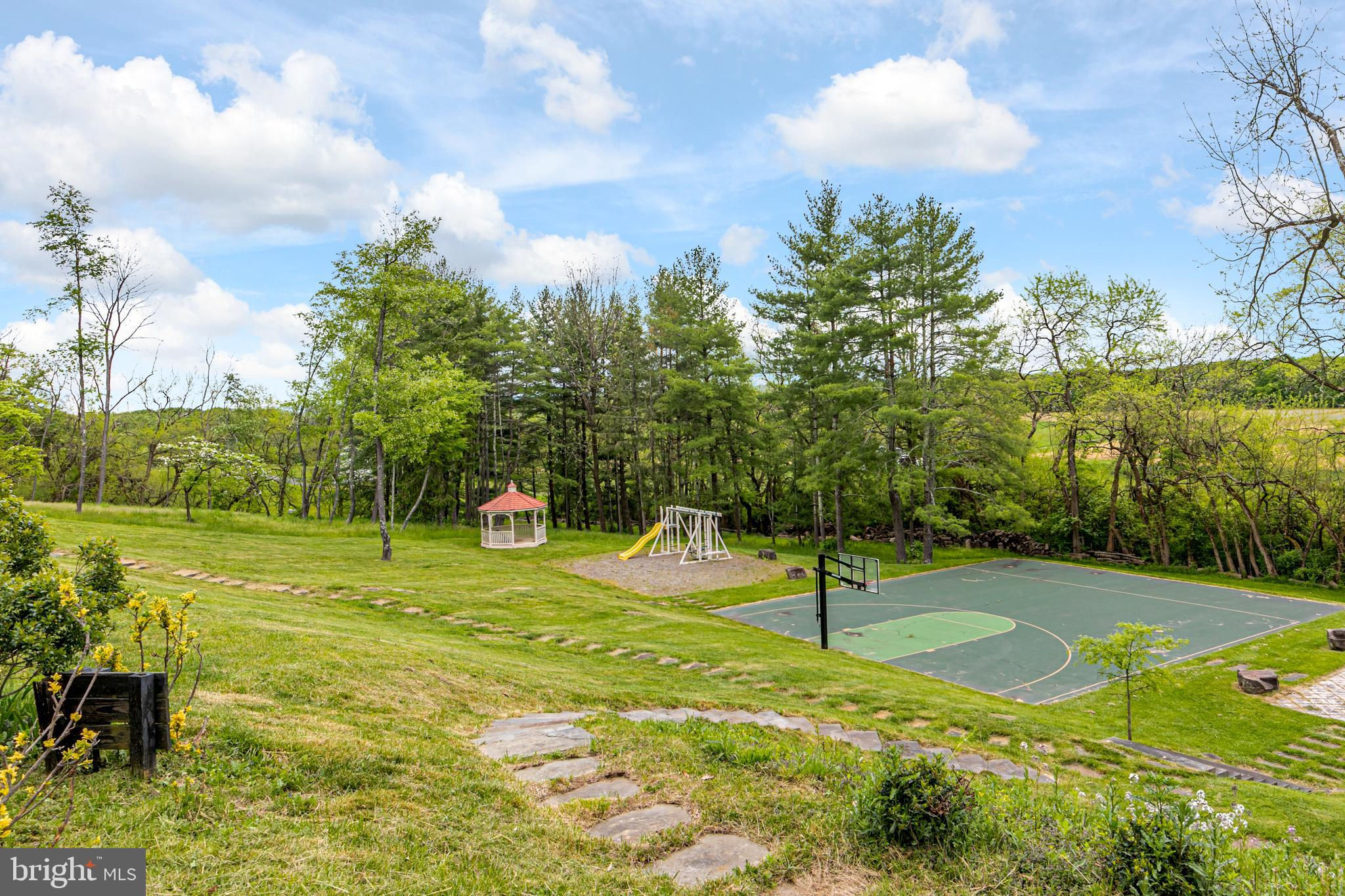 In the picturesque and tranquil rolling hills of Delaware Township, this hidden estate offers a lifestyle sure to please outdoor enthusiasts with a newly lined pool, a basketball court, a bocce court, a resurfaced tennis court, and a putting green. With its gracious gardens, serene views, and park-like surroundings, there’s so much to love about this location. A large, Mediterranean-inspired villa welcomes with a courtyard and a soothing fountain. Inside, the floor plan is designed to take in the scenery with the living room, currently used as the dining room, the family room, a glass-enclosed breakfast room, and a screened porch looking out across a dale of greenery. The kitchen is spacious and bright, adjoined by a large mudroom with custom cubbies for storage and a cleverly hidden laundry space. A home office is handy here and could serve other functions. Upstairs, there are four bedrooms, including two suites, and multiple wrap-around porches that provide breathtaking views of the countryside. The main suite has a dual-sided fireplace shared with a sitting room and a covered pavilion-style deck with steps down to the pool, making it simple to get some morning exercise. The over-the-top basement features a huge media/recreation room with a fireplace, a wine cellar, a gym, a half bath, and a door out to the gardens. Out by the pool, there’s a handy half bath to keep wet feet out of the house. A whole house generator and an automatic security gate with an intercom provide peace of mind.