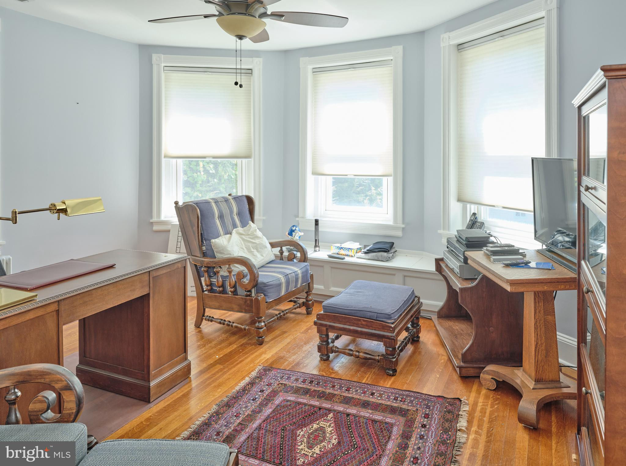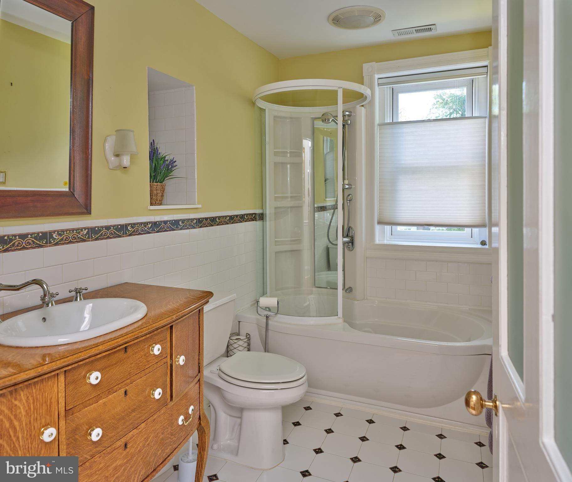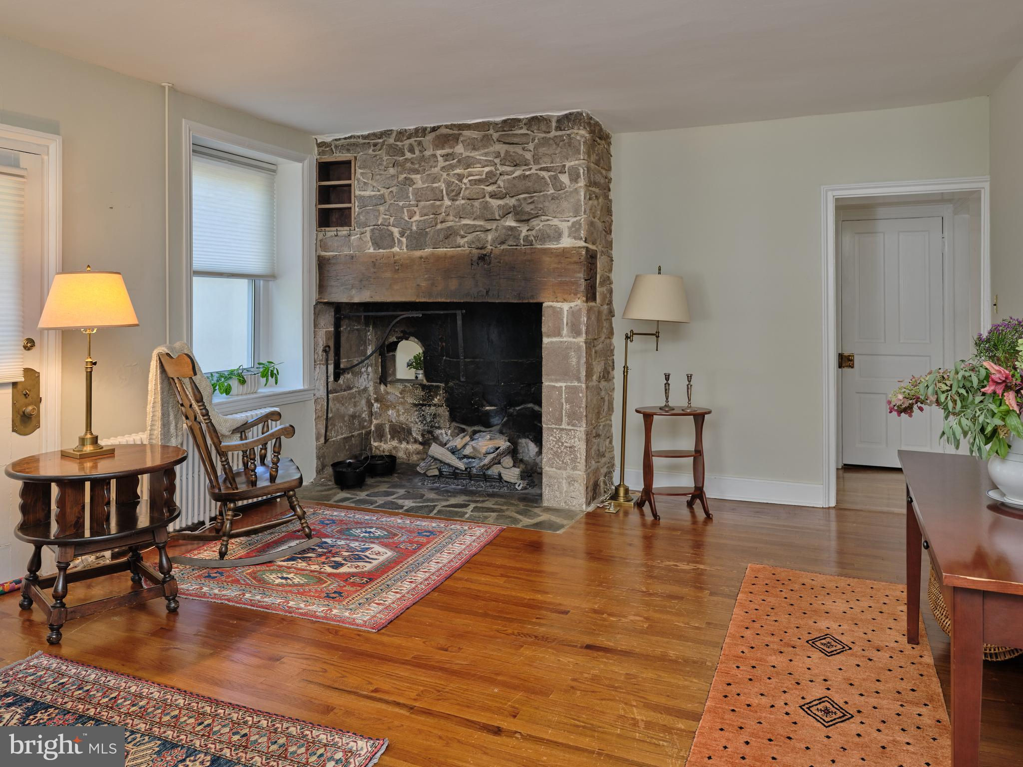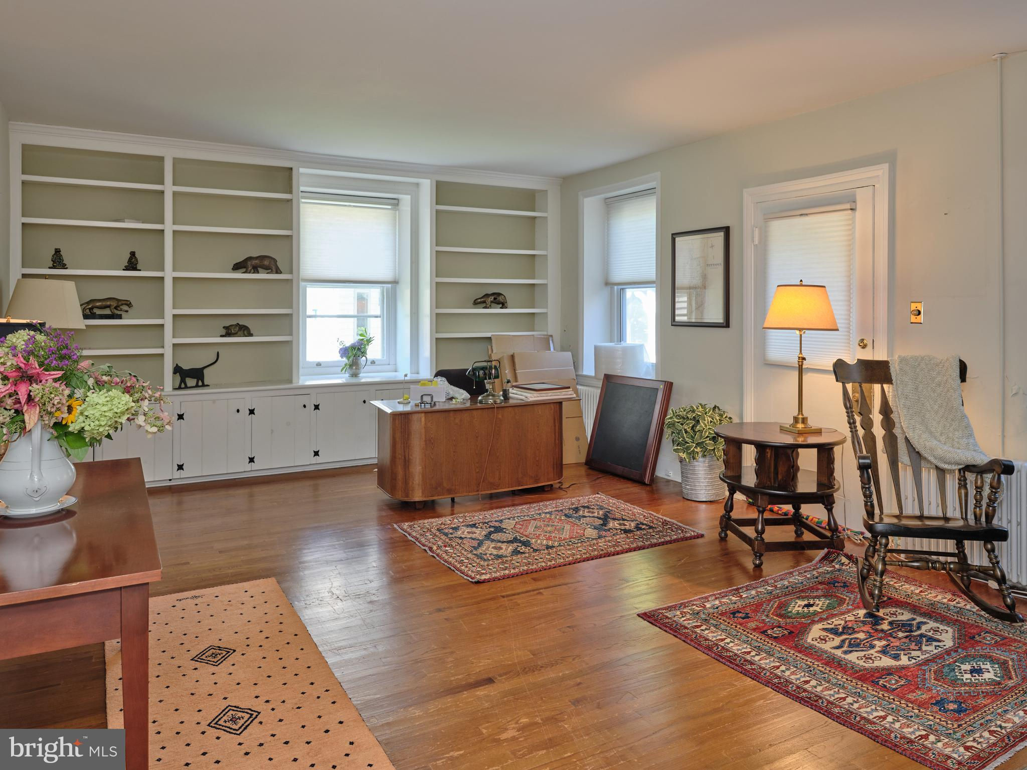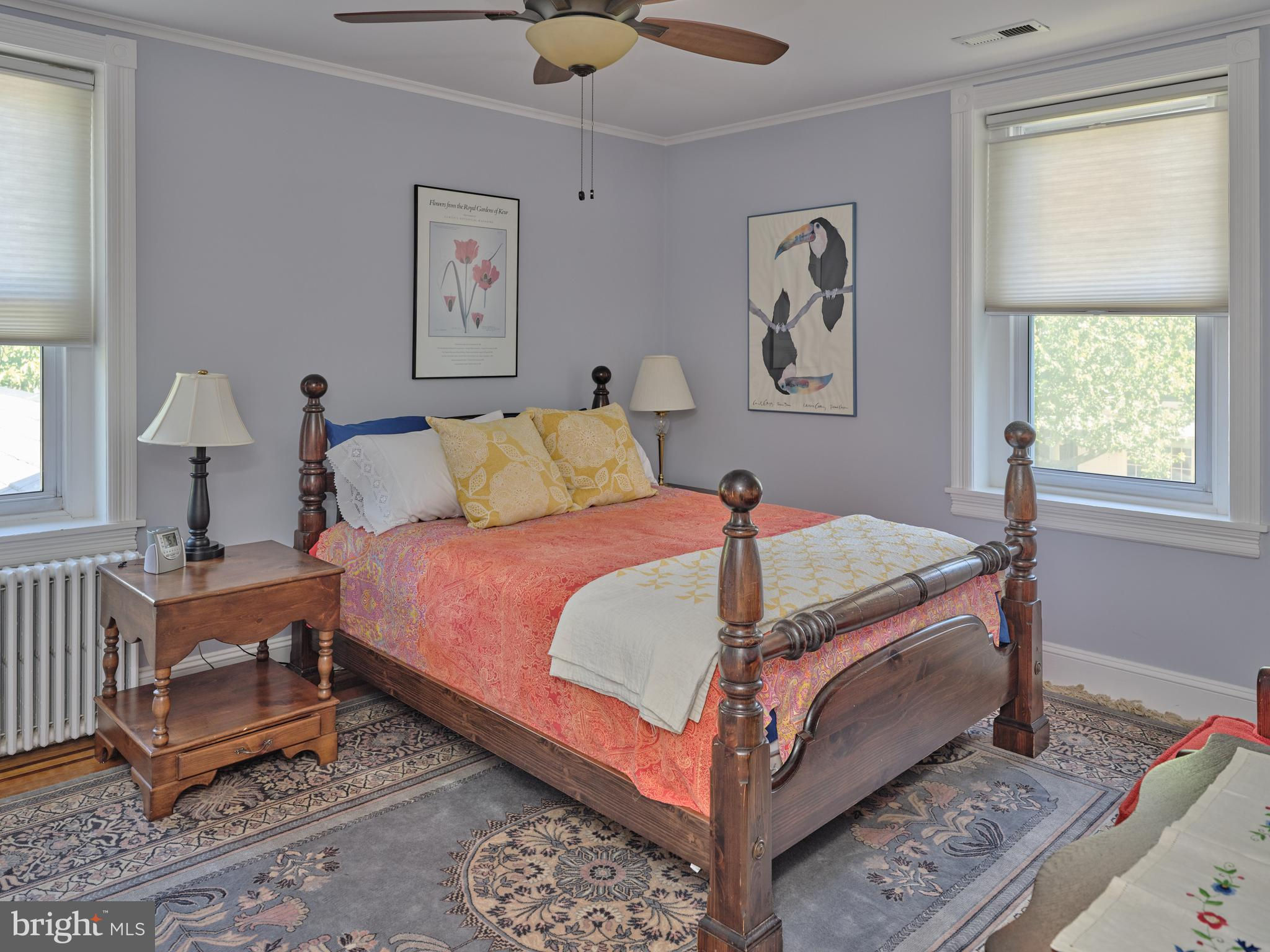 Originally constructed in 1834, consisting of stucco over stone, this handsome home had a 3 story addition in the 1880s, and a breakfast room addition in 1995. The property sits behind a gracious stone wall, accented by wrought iron fencing, with the lot stretching from Penn Street to Mercer Street - where access to the 2 story garage/barn is located. Ideally situated within walking distance to the heart of town - Starbucks is 2 blocks, Rocco's as well, and the ever popular Newtown Theatre is a 7 minute walk. The interior features a traditional floor plan. The living room has a gas fireplace, with a traditional mantel - in a style characteristic of vernacular Newtown style - as well as a built-in china cupboard. Wood floors are found in most of the public rooms - with the exception of the kitchen area, which features comfortable cork flooring. The dining room, part of the 1880s addition, is grand in size and one wall of stone indicates the exterior of the original 1834 construction. A large family room, with access to the rear brick patio, was originally the kitchen - based on the walk-in fireplace. The remnants of the beehive oven are clearly visible in this large fireplace. The kitchen is a gourmet delight - with Miele appliances, including 2 wall ovens, a warming drawer, dishwasher, side by side 48" refrigerator/freezer. A large island houses the gas cooktop and heavy duty drawers can hold an array of pots/ pans and small appliances. The cabinetry is custom with inset doors and soft close drawers. The 1995 breakfast room addition has atrium doors to the brick patio and features multiple skylights with remote controlled shades. This space also features the powder room and the laundry/butler's pantry/mud room. A back stairway off the kitchen leads to the bedrooms. There are 4 bedrooms on this upper level - all with wood floors. The primary bedroom features 2 closets. There are 3 additional bedrooms - one of which features 3 closets with built in drawers, and another with a cedar closet. Two full baths are located on this level - all with brass fixtures. One bath has a jetted tub with curved surround and a custom vanity recommissioned from an oak dresser, and the other bath features a walk in shower with seamless shower doors and a free standing sink with brass legs. The third floor has original flooring, plastered walls in the main room as well as a cedar walk-in closet, large mechanical/storage room, and spacious addition spanning the 1880 addition. This space would lend itself to a great bedroom suite. The view of the house from Penn Street gives the impression that the house does not have a driveway or off-street parking. A special feature of the house is the fact that it fronts on two streets - Penn Street and Mercer Street. The Mercer Street entrance features a very large parking area as well as a large 2 car garage/barn with second level storage. Entry to the rear yard is through the gated fence where a brick walkway leads you to the spacious patio and screed gazebo as well as kitchen and family room entrances. Ideally located within walking distance of all that Newtown Borough has to offer as well as 3 blocks to Septa Bus Line, 5 miles to rail station, and 2 miles to 95/295,