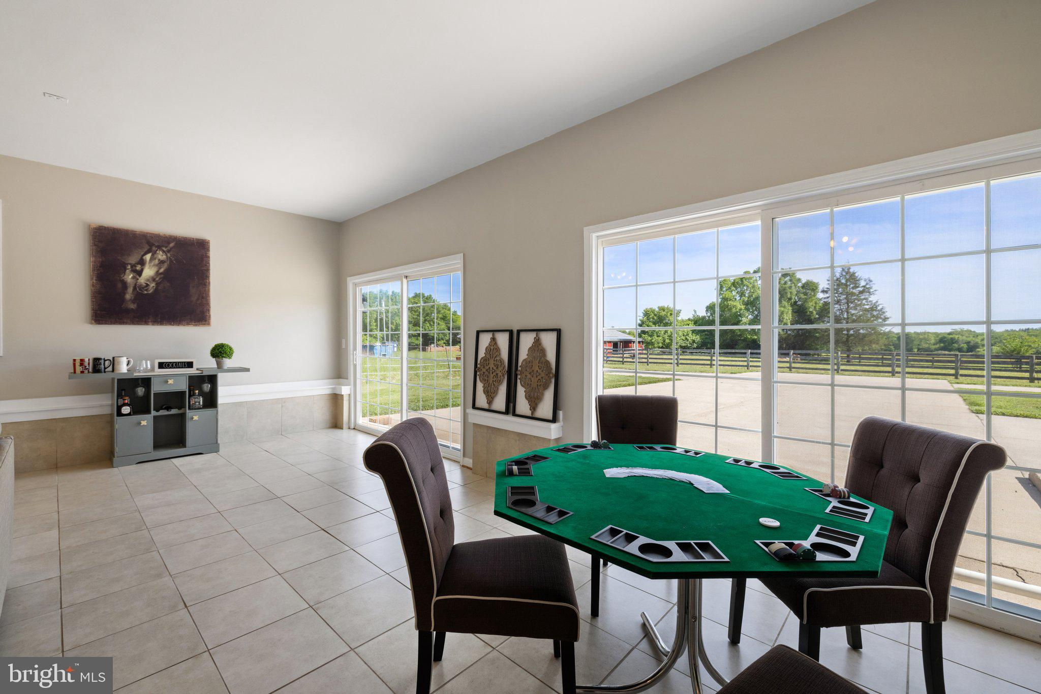 Welcome to your dream equestrian property nestled on 24 acres of picturesque land, offering unparalleled amenities for both horse enthusiasts and those seeking a tranquil countryside retreat. As you enter the property, you'll be greeted by a quality crafted 15-stall barn, featuring an asphalt floor and custom-designed dirt stone stalls with removal partitions to expand stall size, if desired. Each stall boasts 36" x 36" Anderson glass windows that open, providing ample natural light and ventilation for your beloved equine companions. A dedicated 12' x 24' foaling stall equipped with heat lamps ensures the safety and comfort of newborns. The barn, with a new roof installed in 2018 and updated gutters in 2019, also includes essential facilities such as a washing area, dedicated office space, and a tack room for all your equestrian gear storage needs. In addition to the barn, discover the impressive 115' x 200' covered riding arena, constructed in 2017 and never used, offering endless possibilities for riding, instruction, competitions, and more. Featuring 14' x 14' commercial doors, buried downspouts, and commercial-grade insulation, this arena is designed to accommodate various riding disciplines and can also cater to other types of livestock activities. Additional amenities include a 20' x 30' storage barn with a concrete floor, metal roof, and electricity, perfect for equipment storage or potential expansion. The property also boasts several outbuildings, providing ample space for various uses. Nature lovers will appreciate the serene beauty of Slate Run, which meanders through the rear of the property, with the boundary extending to the other side of the creek, offering a peaceful backdrop for outdoor activities and relaxation. The main residence epitomizes comfort and convenience with main-level living featuring three bedrooms and two bathrooms. Enjoy breathtaking pasture views from every room, including the four-season enclosed porch, ideal for unwinding and soaking in the surroundings. A cozy family room with a wood-burning stove and stainless flute sets the ambiance for cozy evenings, while an expansive converted space offers versatile options for entertainment or an additional bedroom, complete with a tile floor and mini-split system. Step outside onto the large patio and embrace outdoor living at its finest, surrounded by lush greenery and tranquility. All sliding doors are 8' with the exception of the front entrance, seamlessly blending indoor and outdoor spaces. The home is adorned with Pella Doors & Windows throughout, ensuring energy efficiency and natural light flow. Recent updates include new kitchen appliances in 2024, along with new gutters and vinyl siding. A new roof was installed in 2018, and all kitchen and bath fixtures are by Moen. Other notable features include attic fans installed in 2018, a primary bath update in 2023, a water softener system, a new hot water heater in 2020, and a new HVAC unit (interior/exterior) in 2011, ensuring comfort and convenience year-round. Home is wired for a whole house generator. Don't miss this rare opportunity to own a truly exceptional equestrian property that combines luxury living with unparalleled amenities in a breathtaking natural setting. Schedule your private tour today and experience the epitome of country living at its finest!