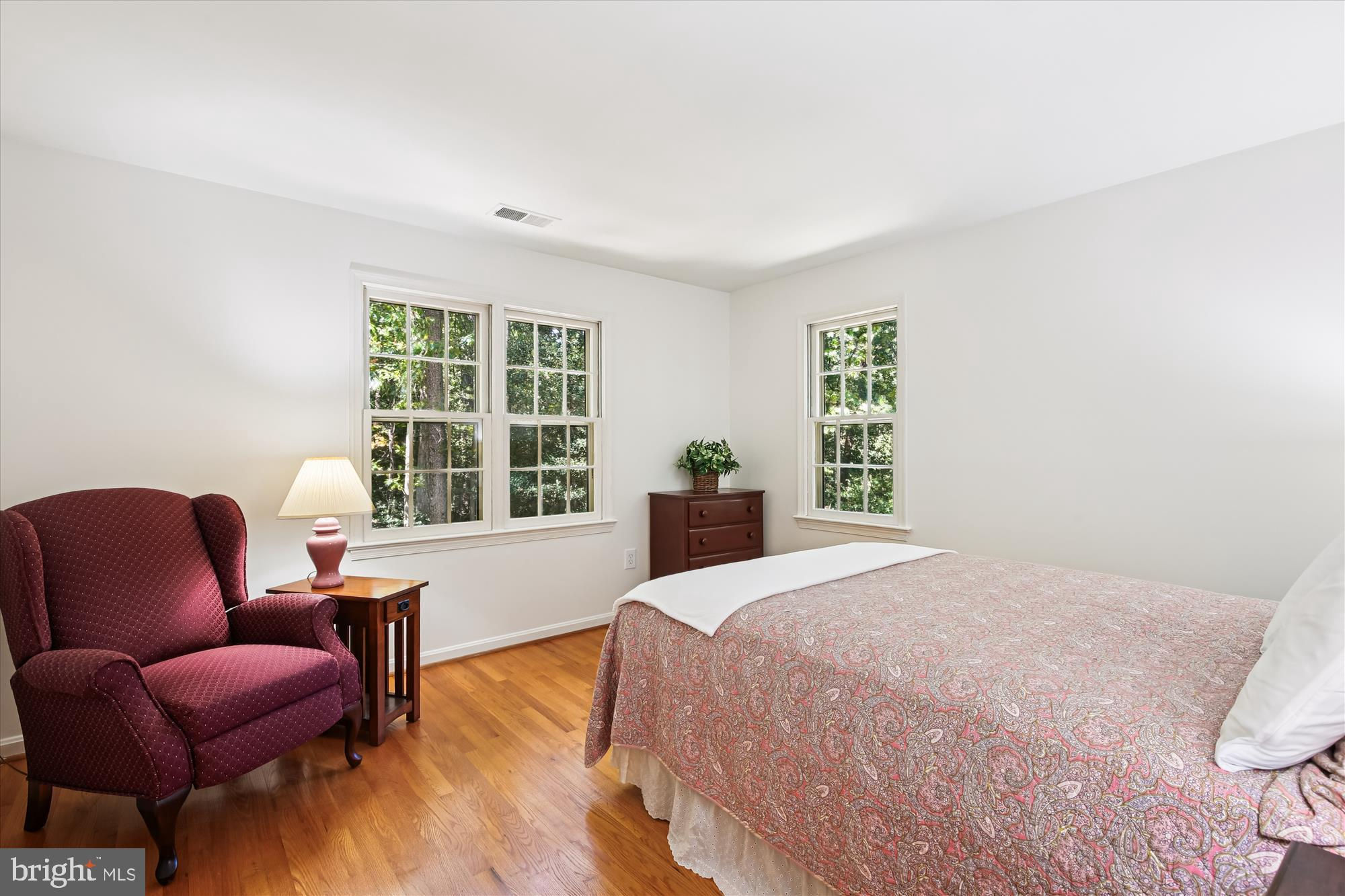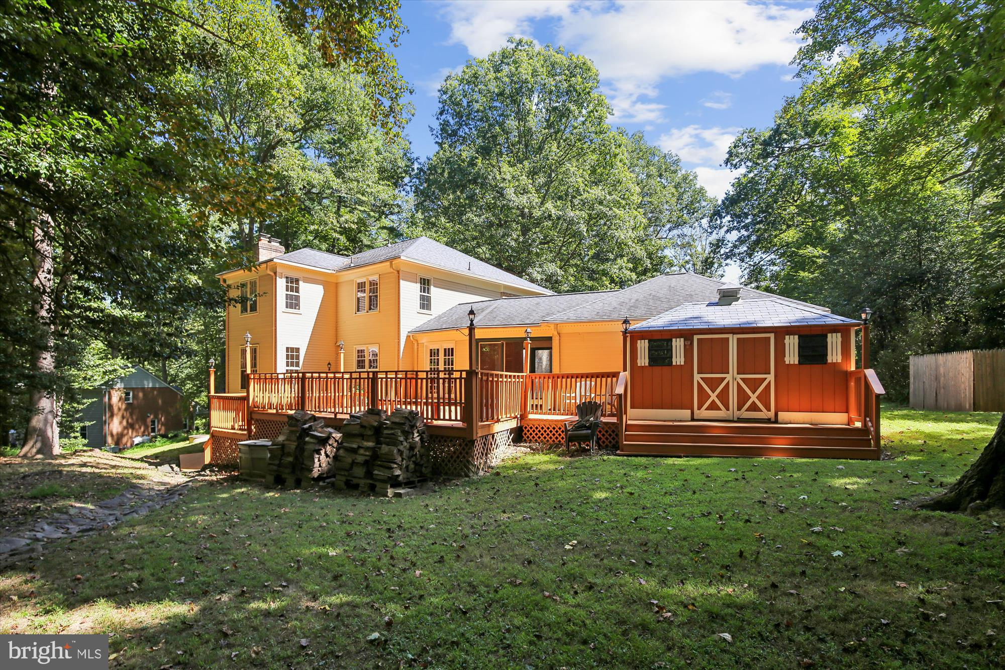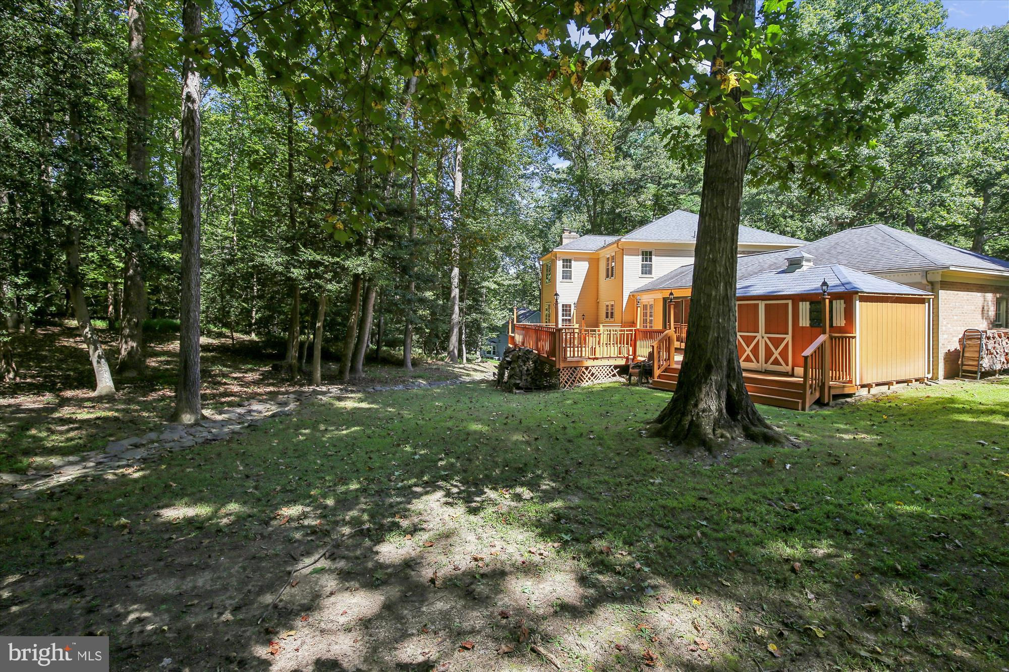Step into your classic dream home, a stunning retreat nestled on a private 0.95-acre lot. This freshly painted and impeccably maintained residence offers nearly 4,900 square feet of comfortable living space with five spacious bedrooms and 3.5 baths. No detail has been overlooked. Enter the elegant two-story foyer onto a gleaming polished porcelain tile floor. From there, the floors transition to beautiful oak hardwood that flows throughout the main and upper levels (with the exception of the bathrooms). The large country kitchen is a chef's delight, featuring brand new quartz countertops, classic oak cabinetry, and views of your serene backyard. It opens onto an expansive rear deck, perfect for outdoor dining and entertaining. A cozy family room with a wood-burning fireplace and brick hearth is the ideal spot to unwind, while large windows throughout the main floor offer tranquil views of the surrounding sylvan retreat. A convenient enclosed breezeway connects the two-car garage to the main house, providing access to both the front patio and the rear deck. The main level also includes a large laundry room that also accesses the breezeway. Upstairs, the primary bedroom is a true sanctuary with multiple closets, a spacious sitting room, and an updated ensuite bathroom. Three additional large bedrooms and an updated hall bath complete the upper level. The finished lower level is an entertainer's dream, featuring an expansive recreation room with a wet bar, perfect for game tables or a home theater. A fifth bedroom with its own ensuite bath makes for a private guest suite, and a large storage room provides plenty of space for your belongings. New LVP flooring flows throughout the rec room and 5th bedroom. Outside, the curb appeal is enhanced by a wide stone paver patio leading to the front door, while the backyard is a private paradise with a multi-level deck, a ground-level patio, and a lush, green lawn surrounded by mature trees. Updates include: fresh paint and quartz counters and LVP flooring lower level in 2025, septic renovation 2024, well renovation 2022, washer /dryer 2020, Jenn-air 5-burner cooktop 2019,chimney refurbishment 2017, hvac and complete attic re-insulation 2016, roof replaced with Certainteed Landmark Pro shingles with transferable warranty 2015, water heater 2014, shutters replaced 2012, hardwood and porcelain flooring installed 2011, hall bath and powder room 2011, primary bath 2009.