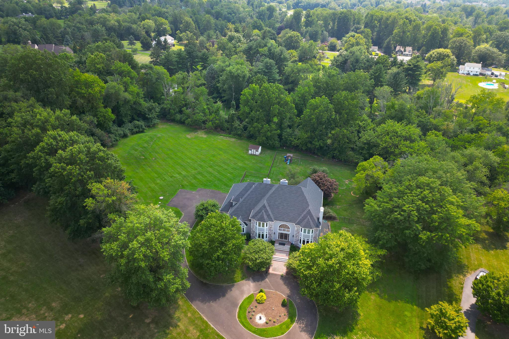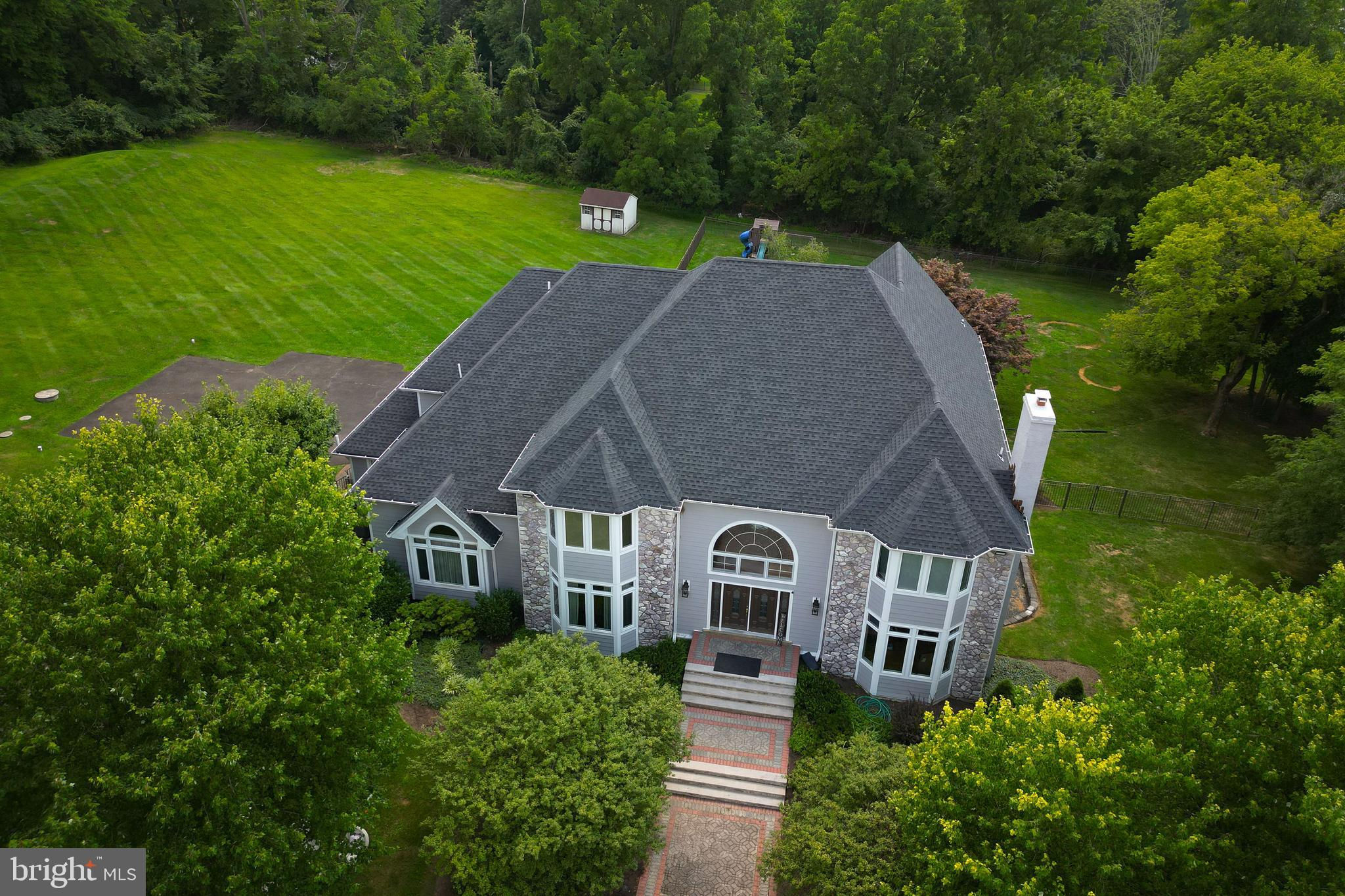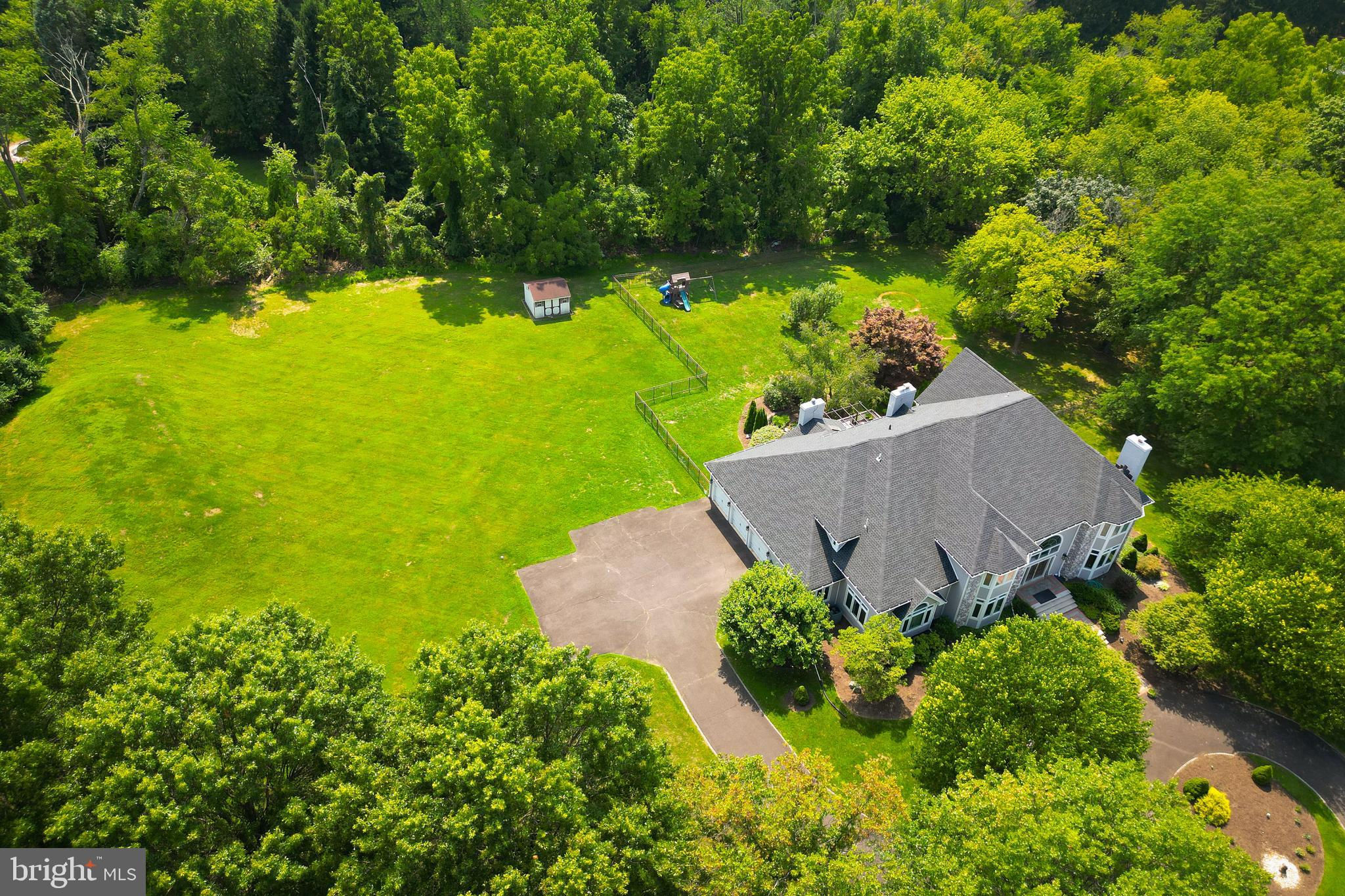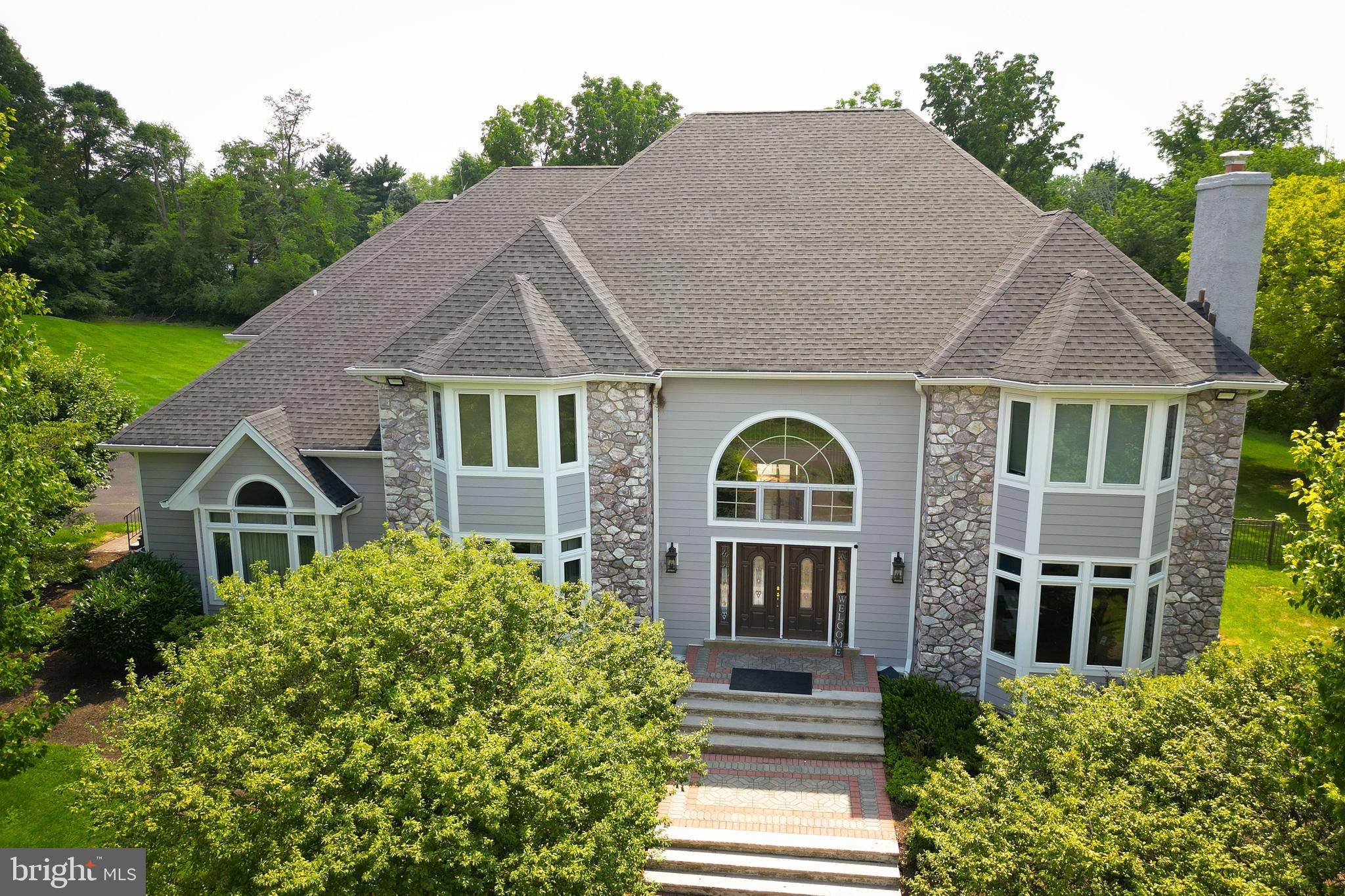 Custom-built 5 Bedroom, 4 Full, 2 Half-Bathroom home nestled on a picturesque 2+ acre lot on a quiet cul-de-sac in Worcester Township. Conversion from Stucco to Hardie Plank Siding with a NEW roof and nearly all new Windows and Doors in 2021/2022. This home combines modern updates with timeless elegance. Step inside to a grand 2-story entrance hall that sets the tone for the rest of the home. The magnificent two-story Family Room features a striking stone fireplace, perfect for cozy evenings. Entertain in style in the formal Living Room and Dining Room, the latter boasting a cathedral ceiling for added grandeur. The updated eat-in Kitchen is a chef’s dream, complete with gleaming hardwood floors, a skylit Breakfast Room, and a second stone fireplace, with sliders leading out to a spacious rear deck overlooking the serene surroundings. The first-floor Owner’s Suite is a true retreat, featuring a cozy Sitting Area, two custom-organized walk-in closets, and a luxurious ceramic tile bath with a Jacuzzi tub. Adjacent to the suite, you'll find a charming Study with an elegant marble fireplace and French doors, offering a private space for work or relaxation. Upstairs, the second floor offers two Bedrooms with renovated, private en-suite baths, along with two additional spacious Bedrooms that share an adjoining Bath, providing ample space for family and guests. The WALK-OUT lower level adds an additional 1500 SF of finished space and is designed for ultimate versatility, making it ideal for multi-generational living. It features a second Kitchen, Laundry and Exercise Rooms as well as a Sauna. This lower level has direct access to a lovely rear terrace complete with a tranquil pond. With its hardwood flooring throughout and freshly painted first floor, this home is move-in ready and waiting for you to make it your own. Don't miss the opportunity to own this exceptional property in a truly spectacular setting!