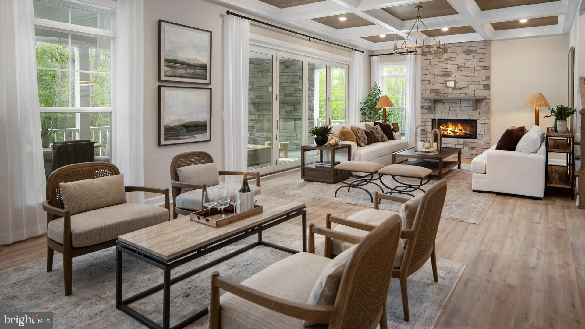Stunning New Construction Single Family Model Home: This home offers a luxury, and modern design with 5 bedrooms, 6 full bathrooms, and 1 half bath. The main level impresses with an open concept layout with soaring 10ft ceilings, creating an airy, inviting atmosphere. At the heart of the home is a true chefs kitchen featuring a massive 13'x7' island, high end GE Profile appliances, a spacious walk-in pantry - ideal for everyday living and entertaining. Indoor, outdoor living with a cozy covered rear porch with a fireplace and open it up for entertaining with a 12' accordion door! A charming front porch adds curb appeal and a welcoming touch, while the walk out basement offers endless potential and full-sized windows for natural light! The Basement offers a stunning open feel with a wet bar, full bath finished media room, and rec area. This home has designer finishes including a designer primary bath with a free-standing soaking tub and big walk-in shower, spacious bedrooms and closets throughout, and a 3-car side entry garage.