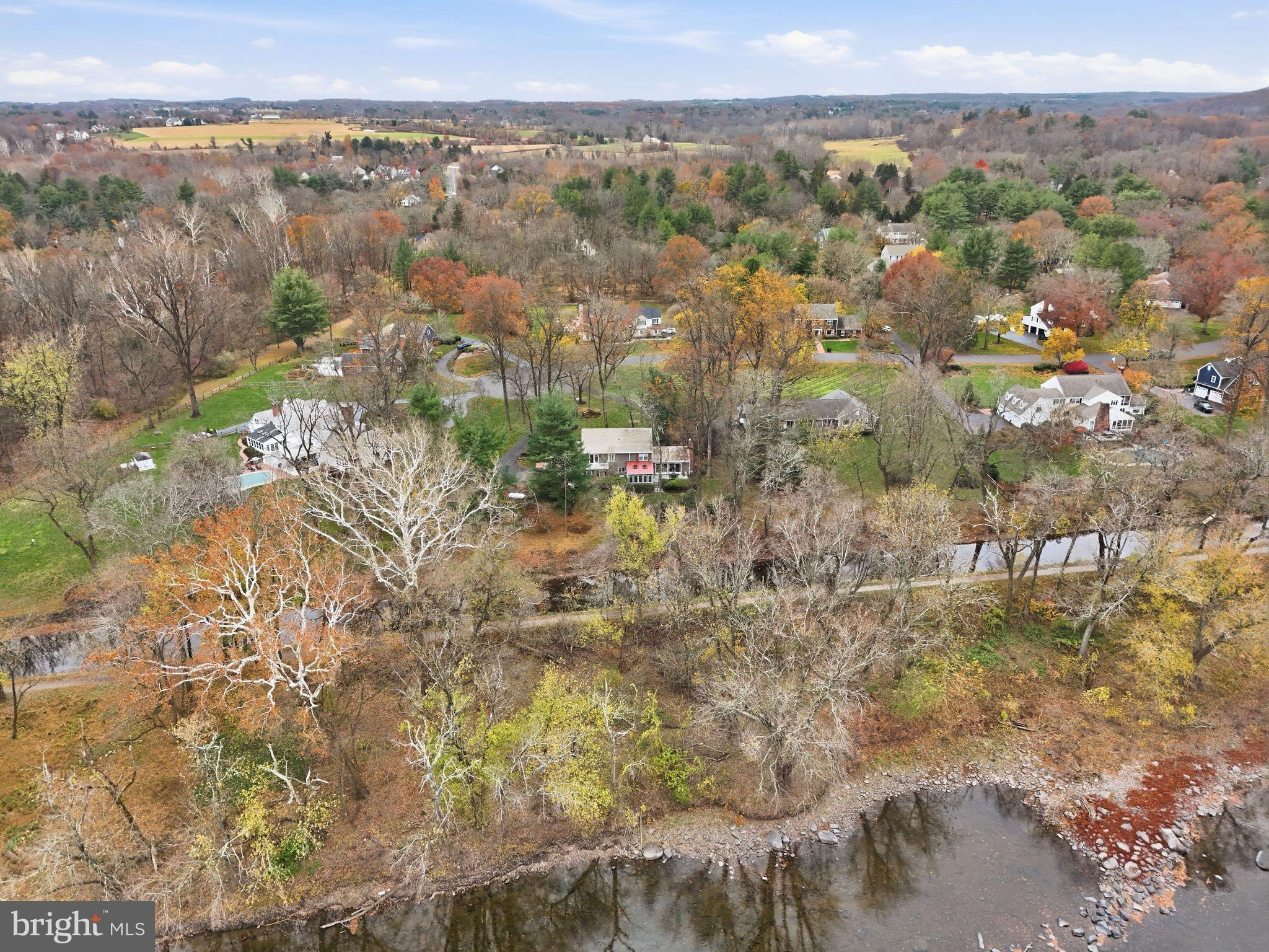 Set on a wooded, private lot at the end of a quiet cul-de-sac, this beautifully crafted cedar-sided and cedar-roofed home offers tranquil living in a quaint, comfortable neighborhood just minutes from New Hope. With views of the Delaware River in the background and the Delaware Canal just steps away, the setting is both scenic and serene.Inside, the home features 5 bedrooms and 3.5 baths across a spacious, thoughtful layout. The foyer opens to a warm and inviting great room with exposed beams and a stone fireplace on one side, and a generously sized living room on the other. Straight ahead, the heart of the home unfolds into a large kitchen with a center island, eat-in area, and easy flow to the sunroom, which leads to a lovely raised patio overlooking the natural landscape. A formal dining room and a large laundry room complete the first floor.Upstairs, three secondary bedrooms share a well-appointed hall bath. The primary suite is a true retreat, offering an en suite bath, a spacious sitting area, a walk-in closet, a walk-in cedar closet, and a private porch perfect for enjoying river views and quiet mornings.The finished basement provides exceptional versatility. One side features a fully updated in-law suite with its own kitchen and bath—ideal for guests or multigenerational living. The other side includes a large recreation room and bar area, providing ample space for entertaining.Car enthusiasts and hobbyists will appreciate the home’s three-car attached garage plus a separate one-car garage with additional storage space and an upper-level storage area.With its natural materials, peaceful surroundings, spacious interiors, and proximity to New Hope, major roadways, and local train stations, this home seamlessly blends comfort, character, and convenience—an exceptional opportunity on the Delaware Canal.