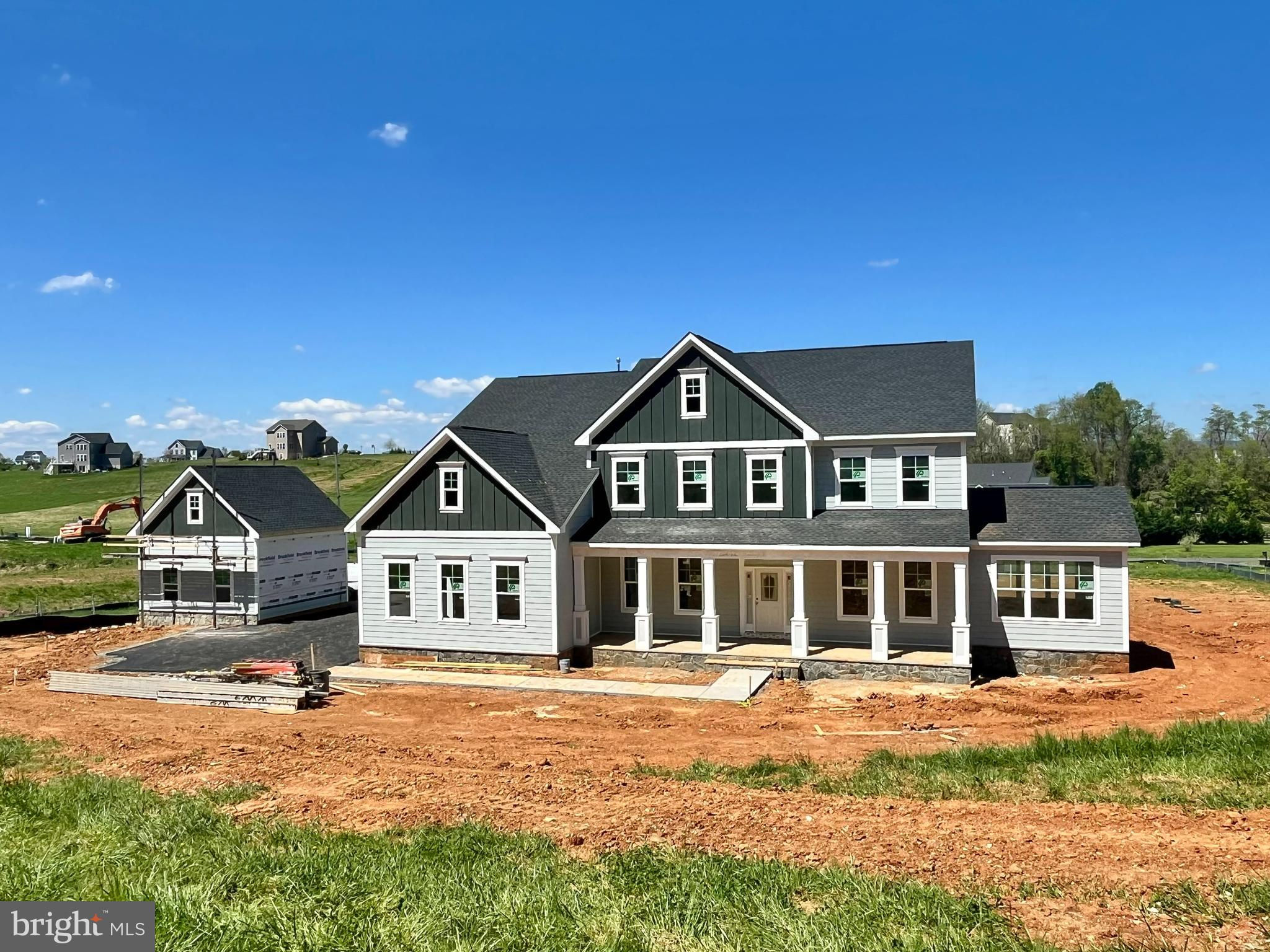 Brand New Hadleigh estate home is under construction for Summer Move In! This incredible home is situated in a cul-de-sac on nearly 4 acres with impressive views of the rolling hills of the Loudoun County countryside i Adjacent to the town of Waterford, you're welcomed home with a front porch with stone stoop and watertable. Enter this immaculate home through the foyer with a dining and living area on each side. The living room gives you access to the bright conservancy, encapsulated with windows. Walking further in the home, you are greeted by the 2 story great room which is centered with a beautiful, stone faced, gas fireplace and is open to the chef inspired kitchen. Outfitted with gourmet stainless steel appliances including hood, a large center island, white cabinets, gorgeous quartz counters and a spacious pantry, this dream kitchen also includes a light filled sunroom where you can enjoy all of your favorite creations. Tucked in the rear of the home is a private, main level guest suite. The hardwood floors through out the main level are complimented by the oak stairs that go to both the upper and lower levels. The upper level features the expansive primary suite which includes a light filled sitting room and a veranda to enjoy your morning coffee or evening book. There are two oversized walk-in closets as you head to the deluxe primary bath which offers an expansive shower with a frameless door and soaking tub. In addition to the conveniently located laundry room equipped with a sink, the upper level also includes 3 secondary bedrooms, one with its own ensuite full bath while the other 2 bedrooms share a Jack and Jill bath. The walk up lower level features 9' walls and is finished with an extended rec room, a 6th bedroom and full bath. Unfinished space for future media room and exercise rooms or extra storage areas. The main level mudroom leads to the attached, side loading 2 car garage. There is an additional 2 car garage that is detached. Don't miss one of the last opportunities to live in this spectacular community enveloped in privacy and scenic views, while still minutes away from shopping, dining and everything you need! Please note home is still under construction and interior photos are to showcase floorplan only