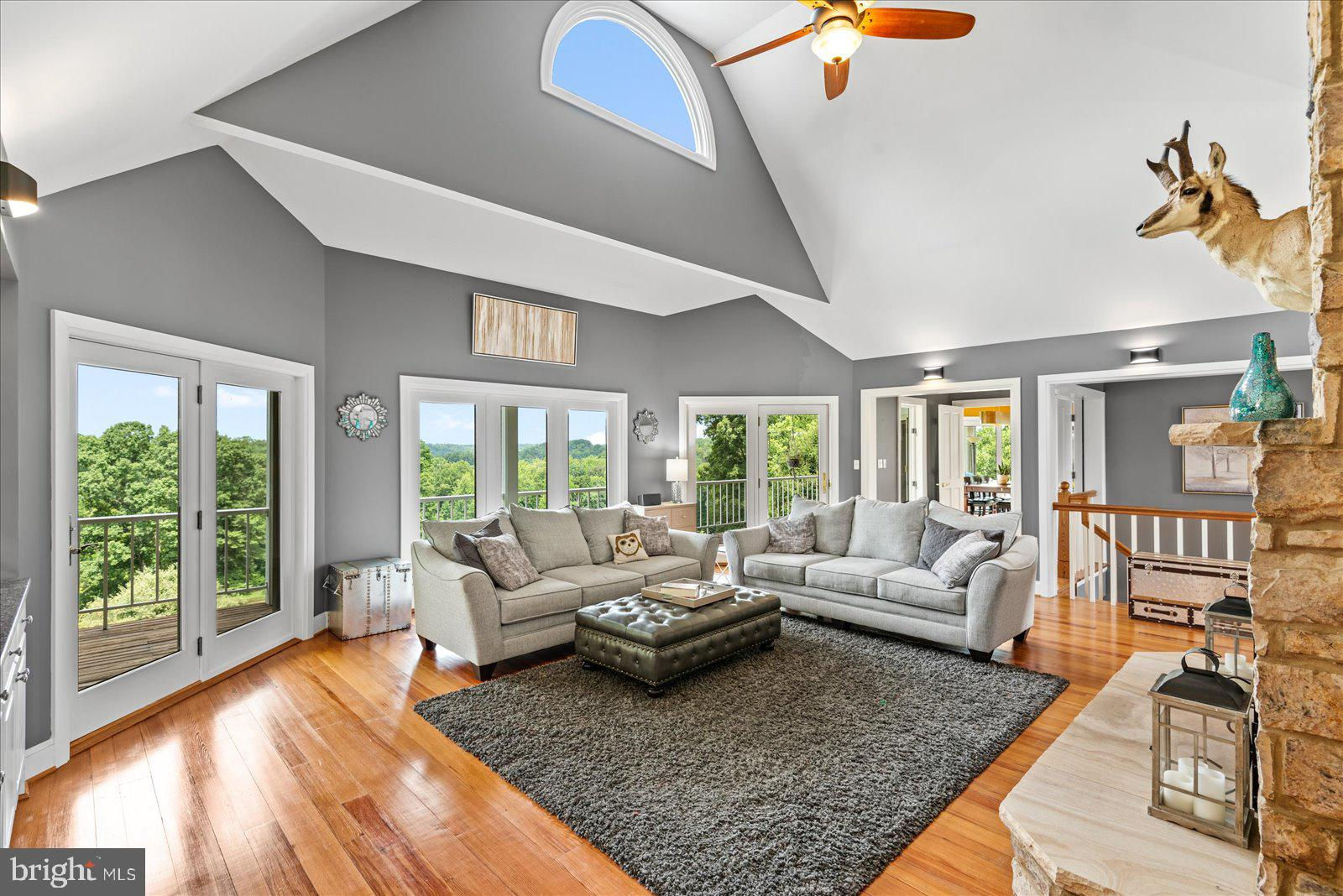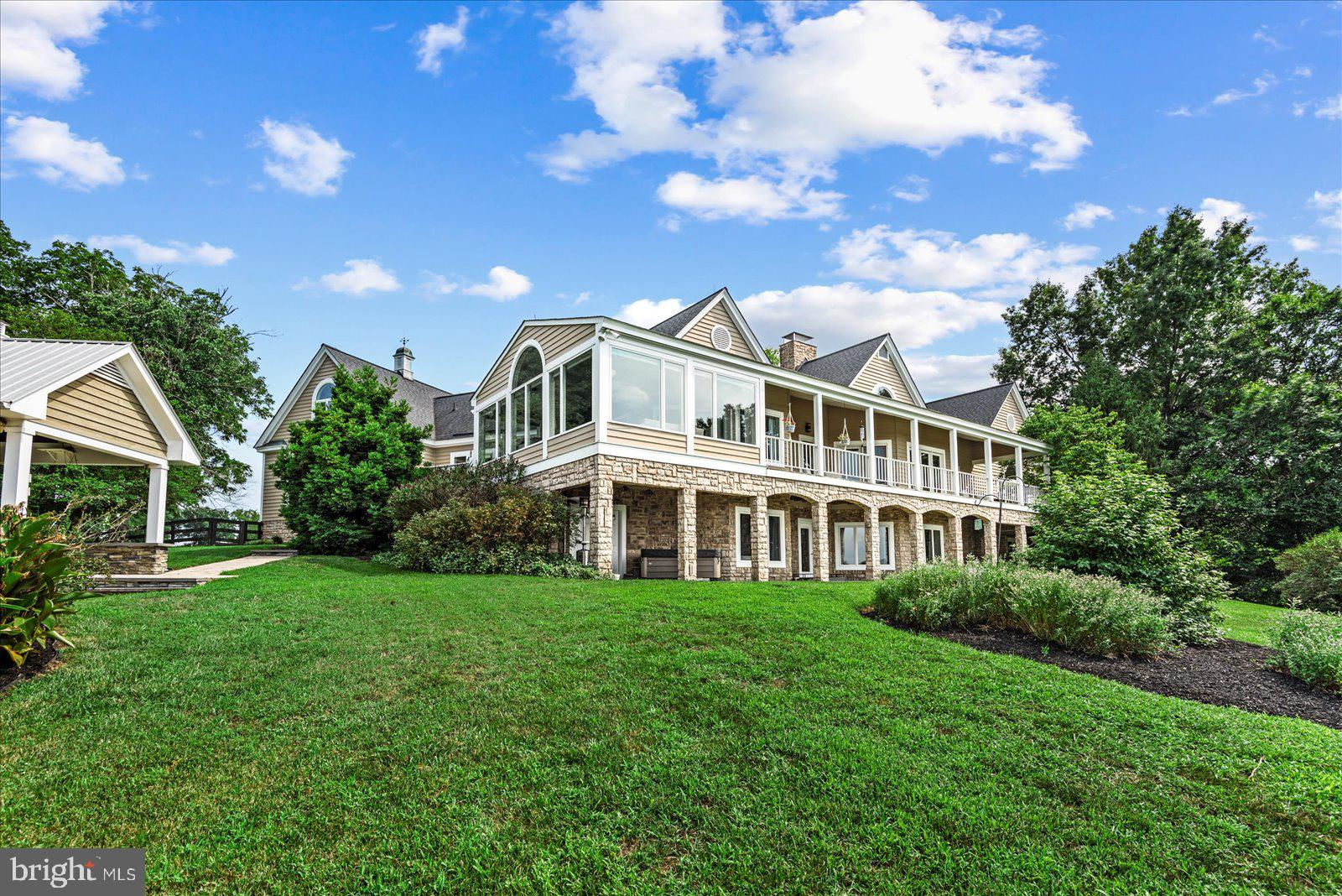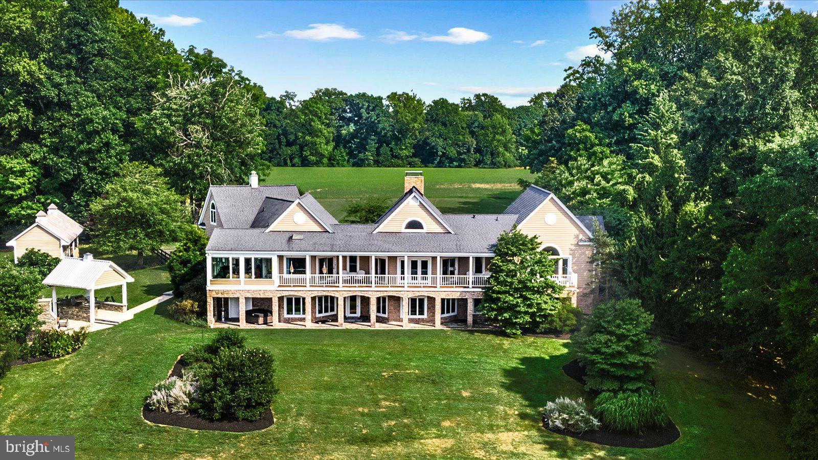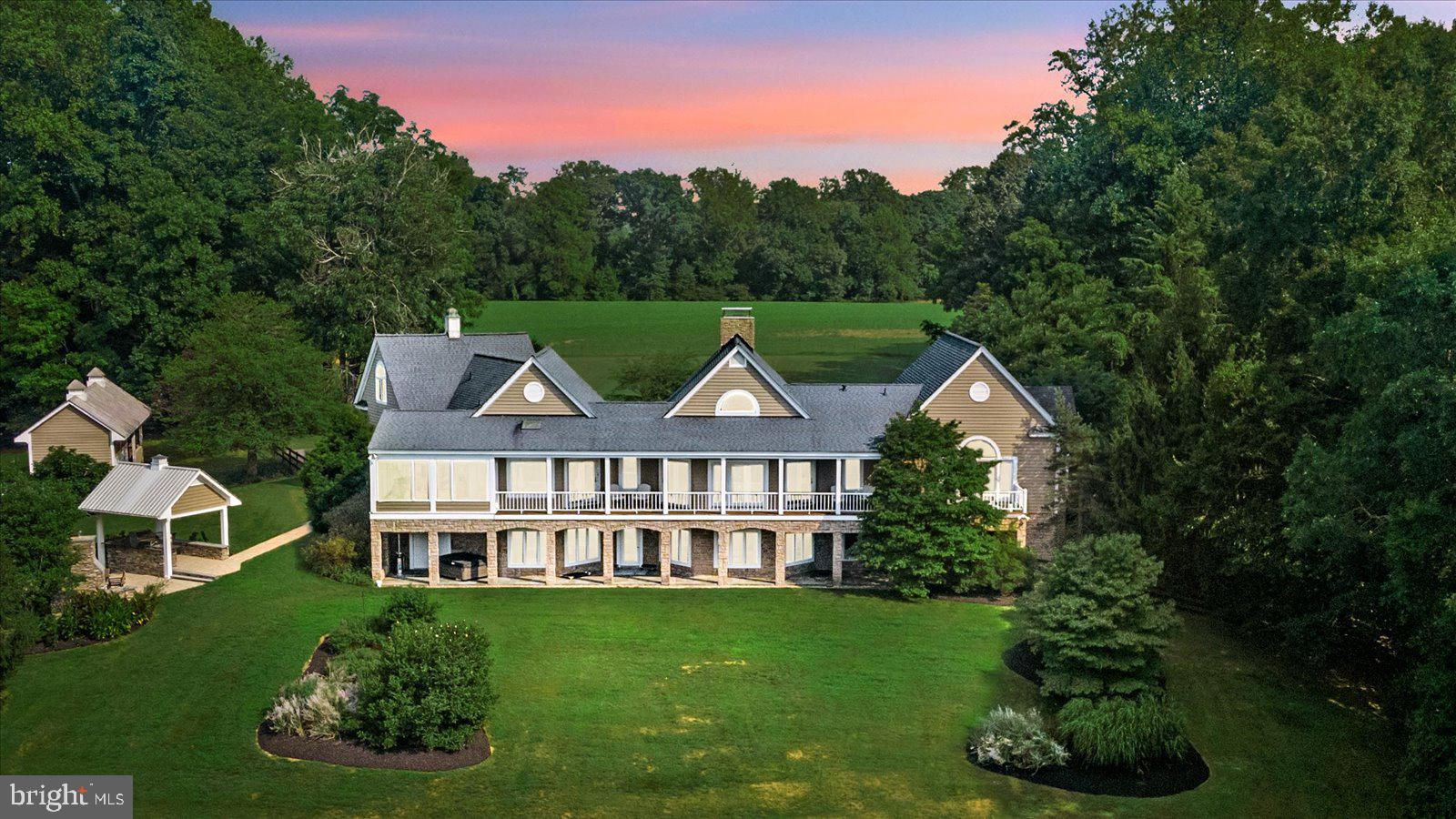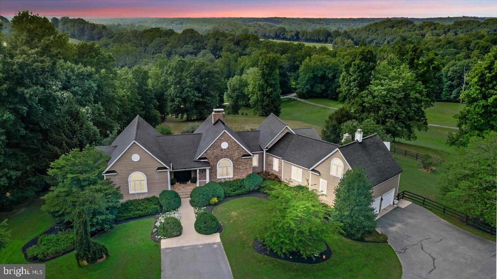 Welcome to 14292 Horseshoe Bridge Road, one of the most beautiful roads in Ashland. A truly custom, executive home with million-dollar views. This very private 12.41 acres home sits high atop a hill overlooking Horseshoe Hill Farm. Centrally located, the property is 3 miles from the center of Ashland, as well as 13 miles to Short Pump and 16 miles to the City of Richmond. The quarter mile drive up to the cedar and stone home make you feel like you are living in the mountains of Charlottesville. Each oversized room is loaded with windows, flooding the home throughout the day with natural light. The rooms are oriented to take full advantage of the beautiful, expansive views. As well, decking running the length of the house, providing for additional outdoor space to spend your mornings. The main floor boasts 13+ foot ceiling height, anchored by beautiful heart of pine flooring throughout. Entertain at your best with the massive living /dining room combination which is divided by a massive floor -to-ceiling fireplace. The kitchen, as well, is large with eat-in area, loads of cabinetry, and a bulter’s pantry. The kitchen is complete with new wine cooler, two refrigerators (one new), two sinks, stainless steel appliances, Wolf cooktop, and granite countertops. The beautiful owner suite has a walk-in closet with make-up table and ensuite bath. The suite opens onto an elevated deck through a wall of glass doors. Remaining rooms on the main floor consist of an over-sized office with built-in bookcases, a panoramic sunroom which overlooks the gorgeous outdoor entertaining space, 2 full bathrooms, a large laundry room with cabinetry and granite. Finally a large guest suite with high ceilings sits over the 2 car garage. The lower level of the home also does not disappoint. A large 2-sided family room with heated floors is separated by a wood burning stove allowing for games as well as relaxing and watching a movie. Three bedrooms are off of the family room, one large enough to be used as a second suite, as well as a full bathroom. Exit through the lower doors to a slate deck which runs the length of the home. At one end you will find access to an attached shop for your projects, as well as a hot tub to appreciate the sunsets. Finally, perched on the hill, the property has a spectacular outdoor entertaining space complete with a large stone fireplace, a full outdoor covered kitchen, and entertaining space. The best sunrises and sunsets come with this property. Entire house security system wired by ADT. Two HVAC units (one new 2024), three hot water heaters (one new), newer roof, and new interior lighting. Internet and cable by Xfinity. Note: Hanover County tax concession for open space. You must see this property to experience the heaven. Book your appointment today.
