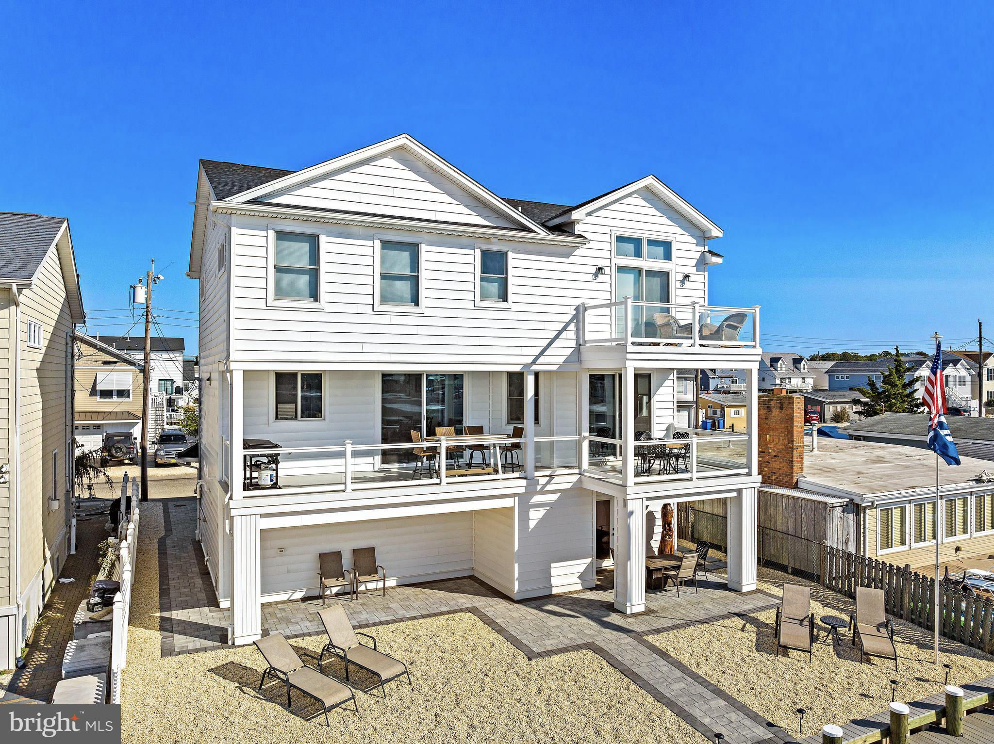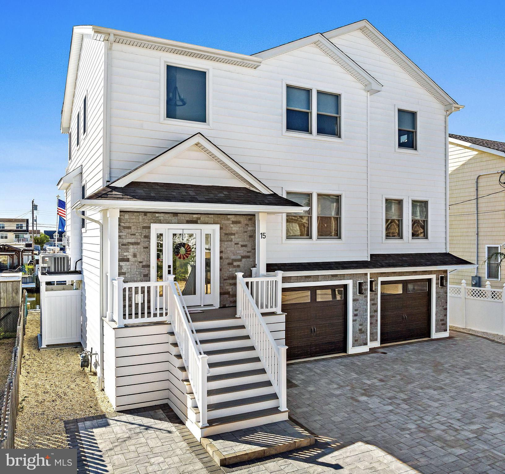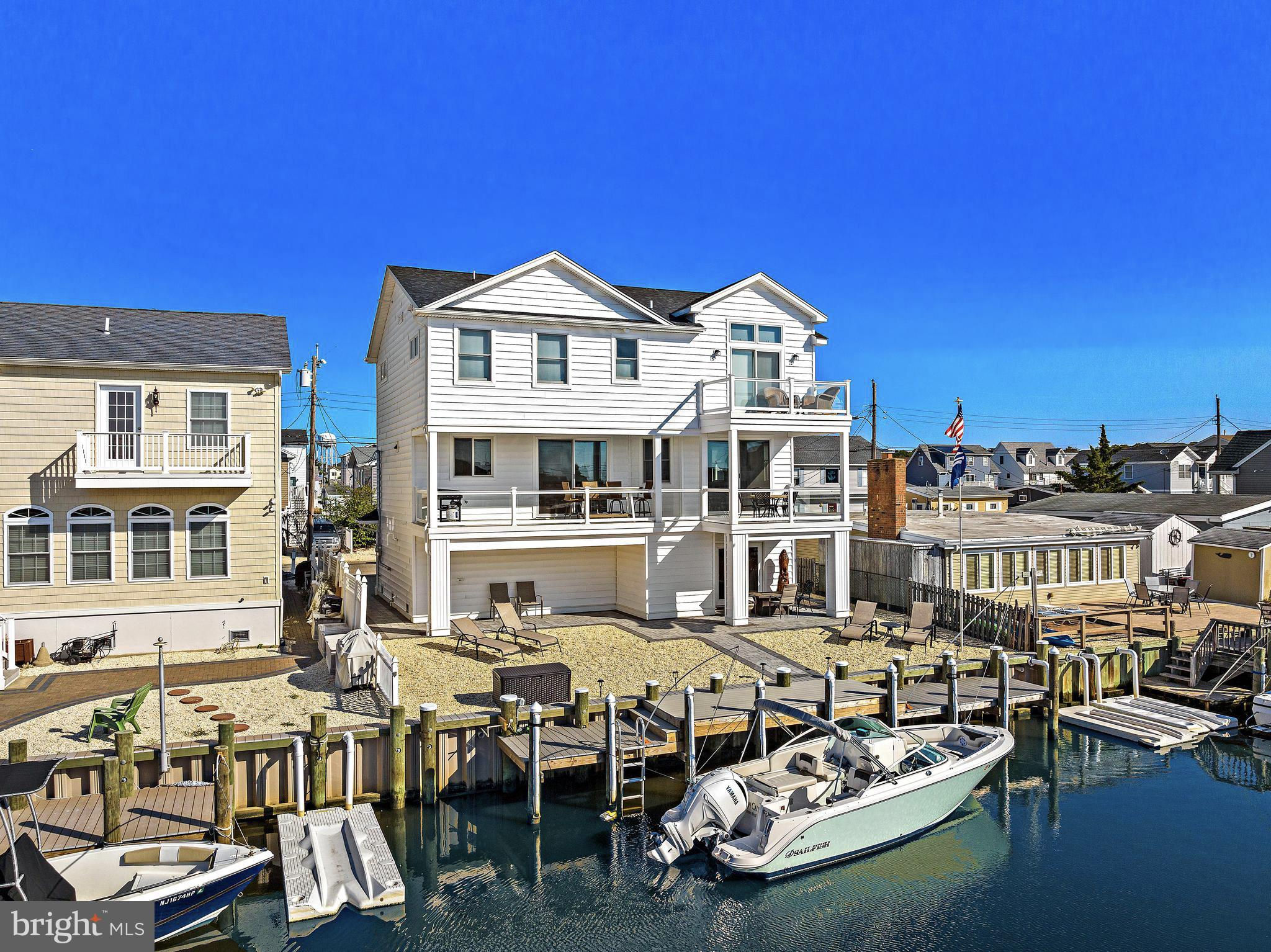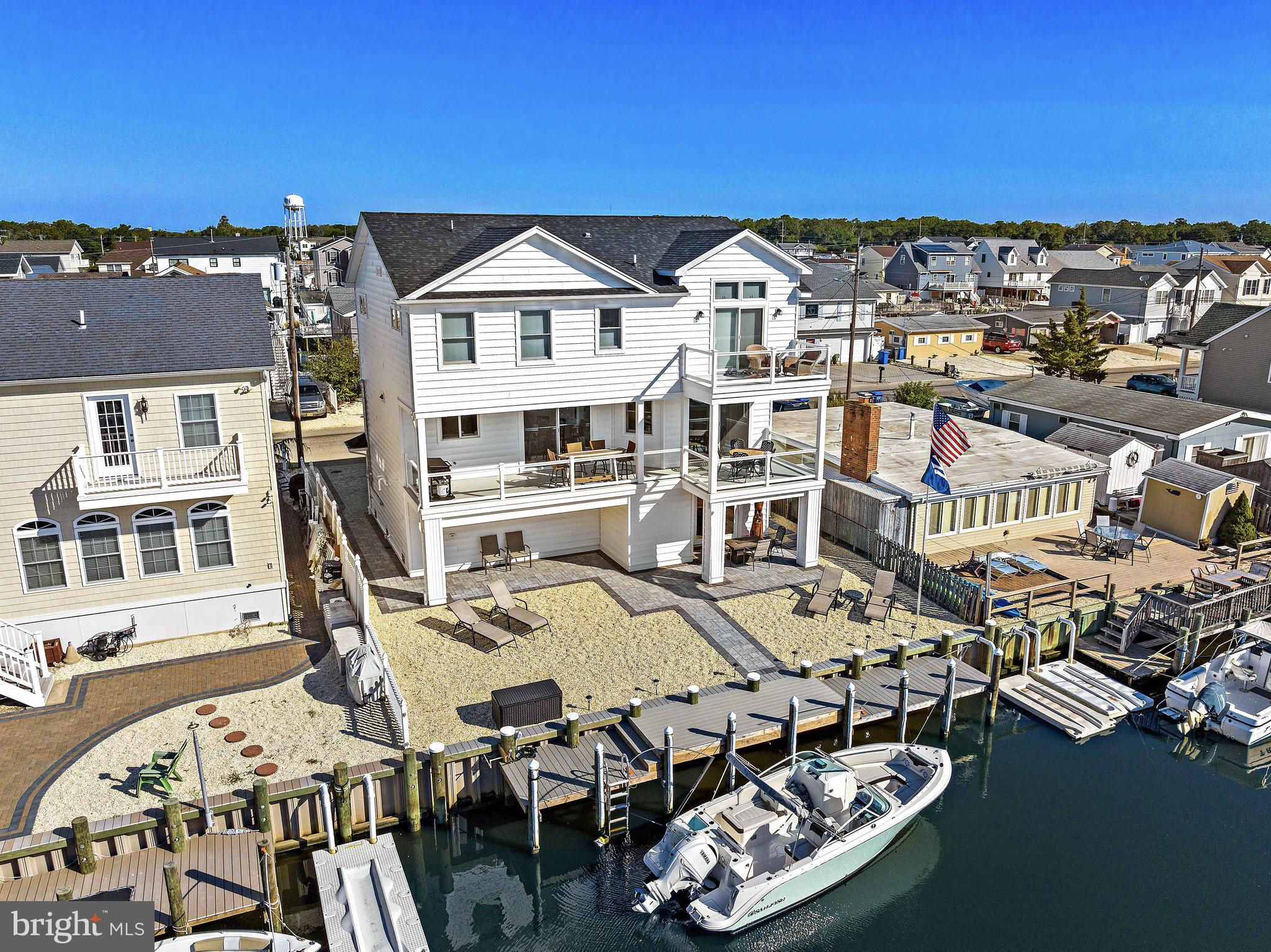 Coastal Contemporary just 1 year young with 5 bedrooms & 3.5 tiled baths located Waterfront in desirable Beach Haven West just minutes to the open bay. This magnificent home boasts numerous features & amenities including designer kitchen w/granite counters, full Thermador SS appliance package, wine bar, and walk-in butlers pantry; spacious family room with granite surround gas fireplace; 9 foot ceilings; luxury plank flooring; dual zone HVAC & tankless gas HWH; ceiling fans w/lights; recessed & pendant lighting; Andersen windows & oversized sliders with custom blinds; ample closets with custom shelving; elegant trim, moldings, shiplap and solid core paneled doors; full laundry room w/sink; vaulted Owners Suite with private balcony; balance of builders Home Buyers Warranty, and offered fully furnished. Enjoy an active outdoor lifestyle on the fiberglass decks with glass paneled railings, covered waterfront patio, direct entry 2 car garage with premium cabinetry, extensive hardscaping, new 40 ft dock & vinyl bulkhead, and outside shower. Convenient to all area recreation, shopping, restaurants, transportation GSP Exit 63, and the best beaches on Long Beach Island. Start your family memories today!