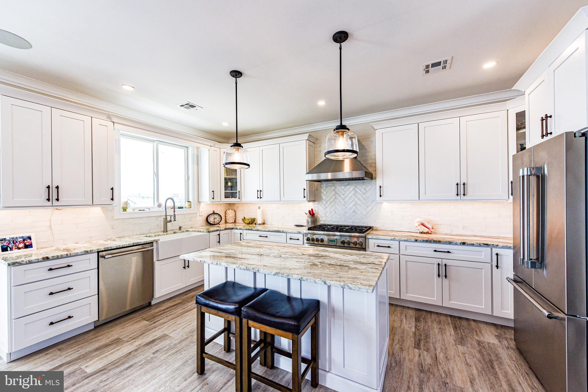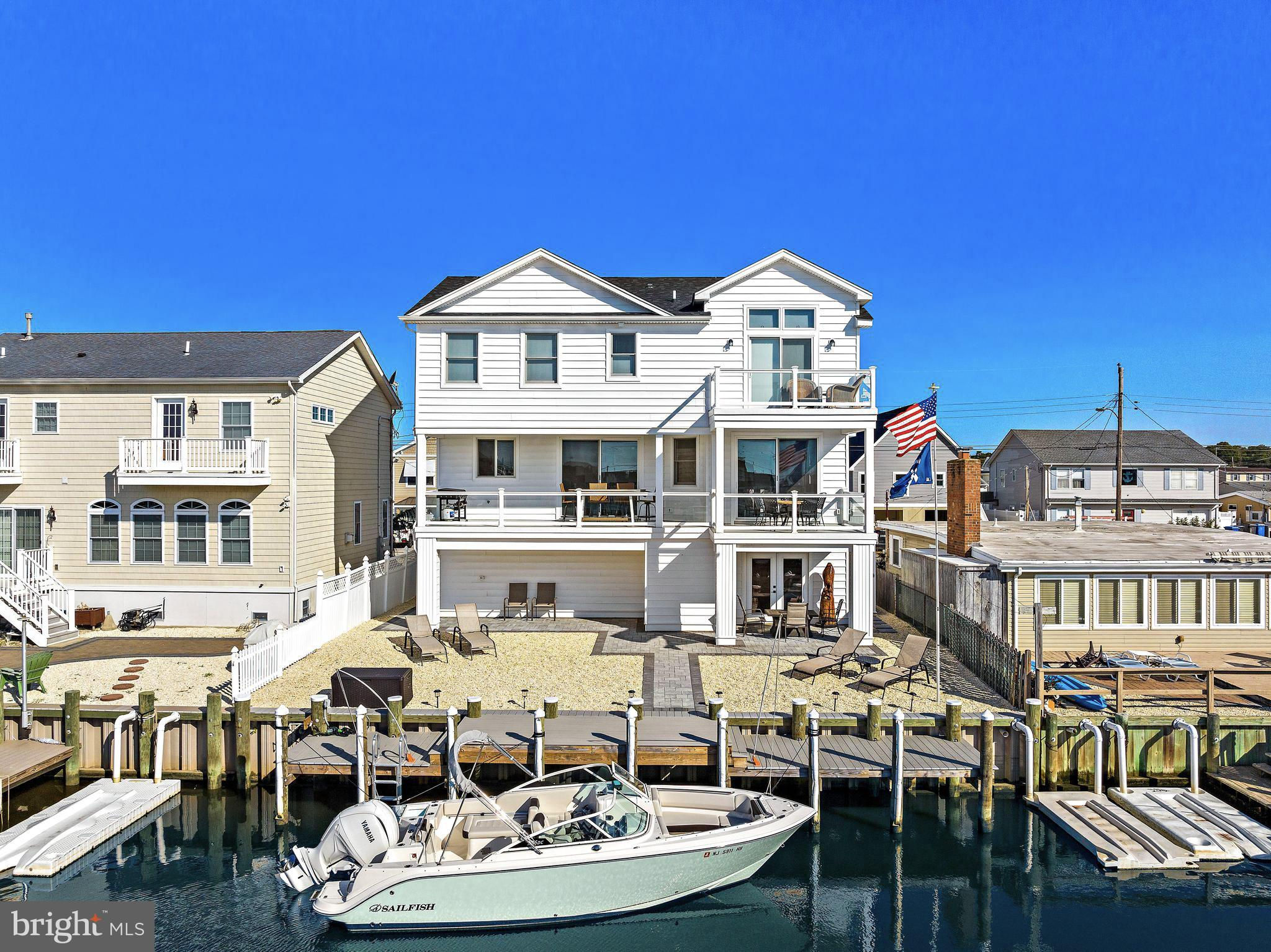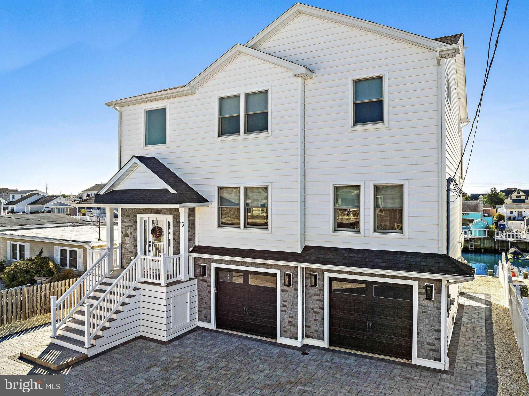Coastal Contemporary just 1 year young with 5 bedrooms & 3.5 tiled baths located Waterfront in desirable Beach Haven West just minutes to the open bay. This magnificent home boasts numerous features & amenities including designer kitchen w/granite counters, full Thermador SS appliance package, wine bar, and walk-in butlers pantry; spacious family room with granite surround gas fireplace; 9 foot ceilings; luxury plank flooring; dual zone HVAC & tankless gas HWH; ceiling fans w/lights; recessed & pendant lighting; Andersen windows & oversized sliders with custom blinds; ample closets with custom shelving; elegant trim, moldings, shiplap and solid core paneled doors; full laundry room w/sink; vaulted Owners Suite with private balcony; balance of builders Home Buyers Warranty, and offered fully furnished. Enjoy an active outdoor lifestyle on the fiberglass decks with glass paneled railings, covered waterfront patio, direct entry 2 car garage with premium cabinetry, extensive hardscaping, new 40 ft dock & vinyl bulkhead, and outside shower. Convenient to all area recreation, shopping, restaurants, transportation GSP Exit 63, and the best beaches on Long Beach Island. Start your family memories today!