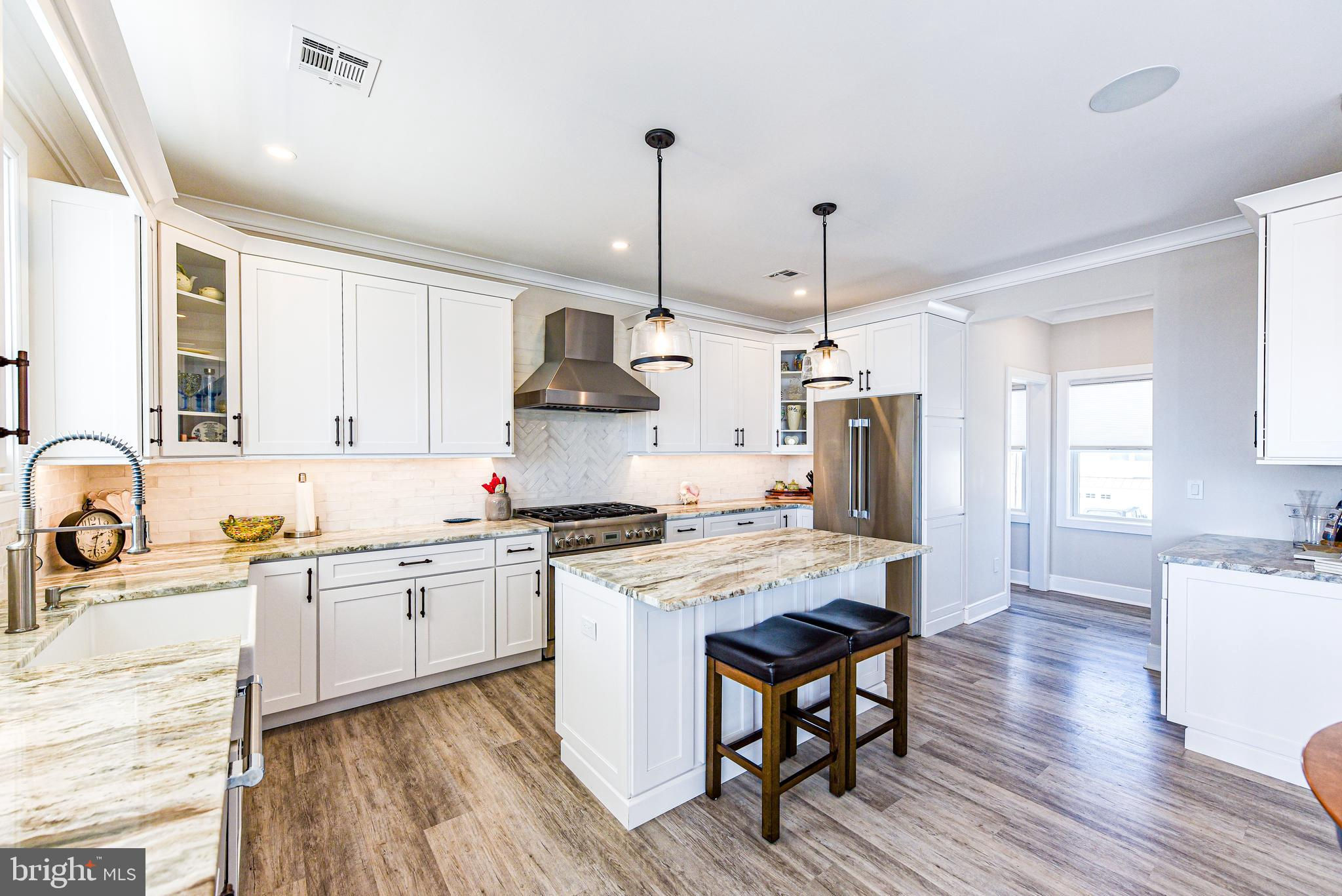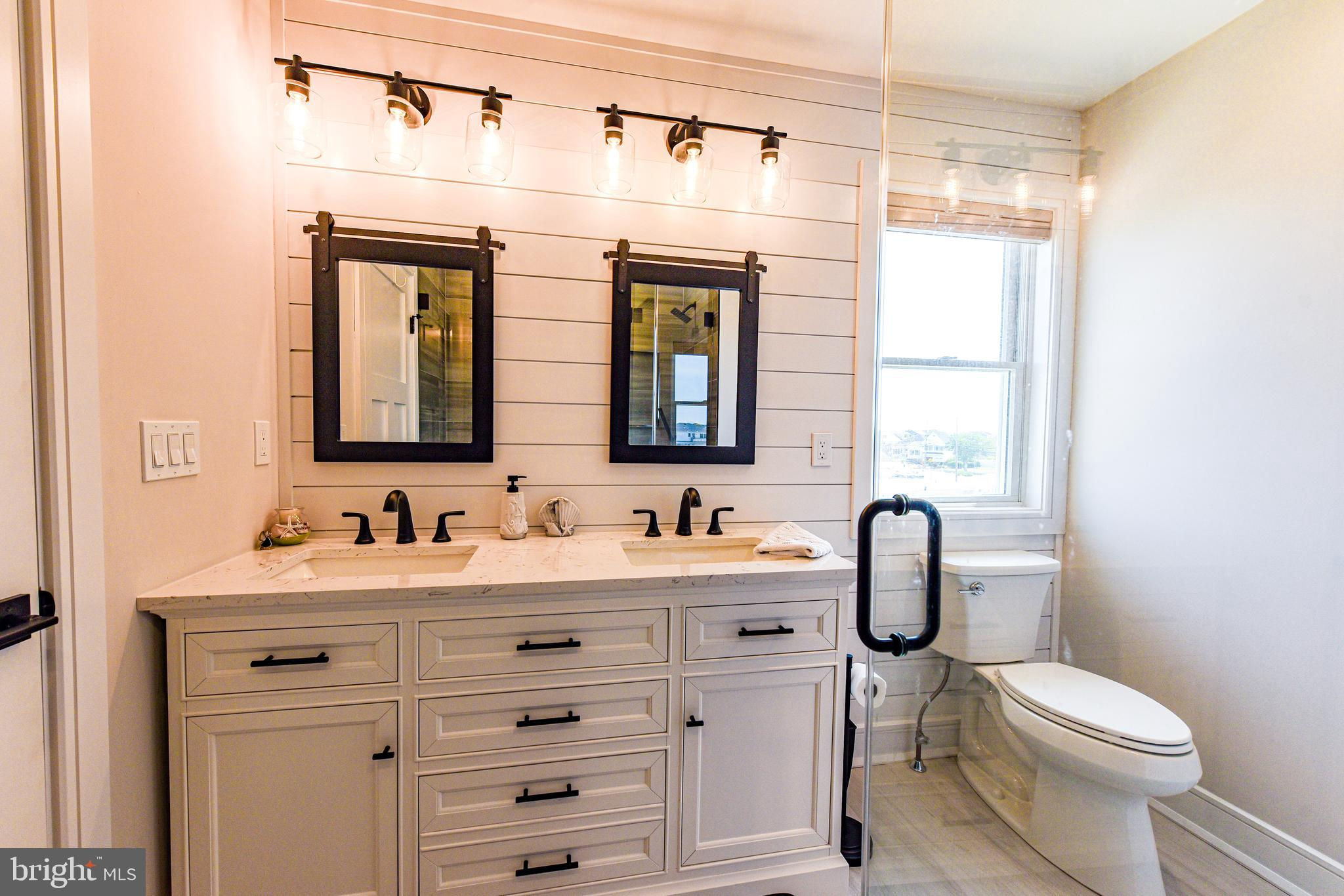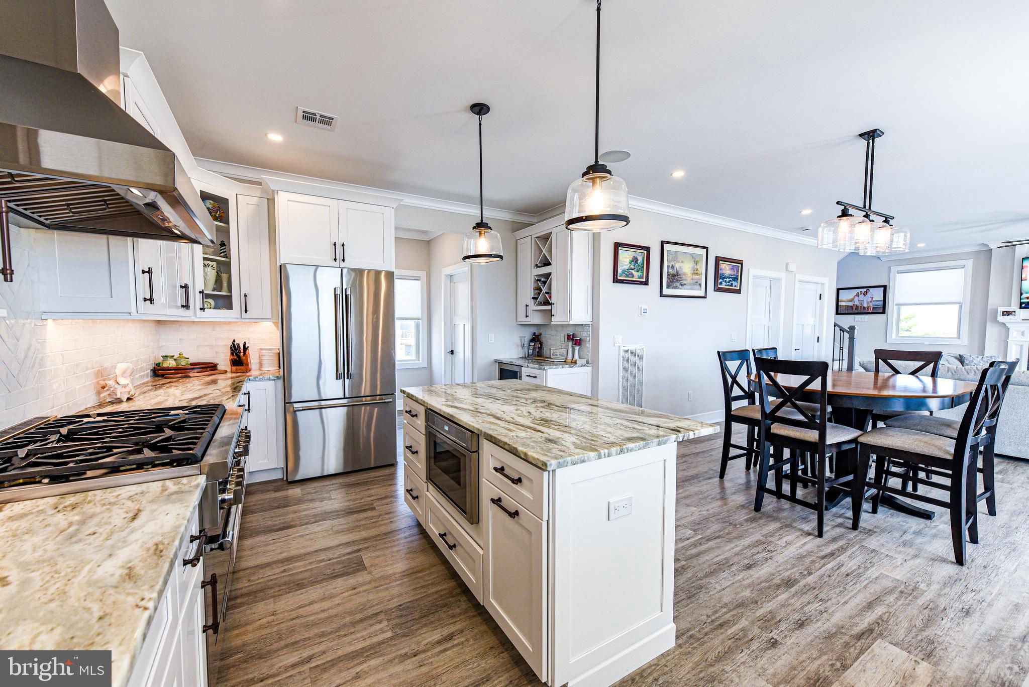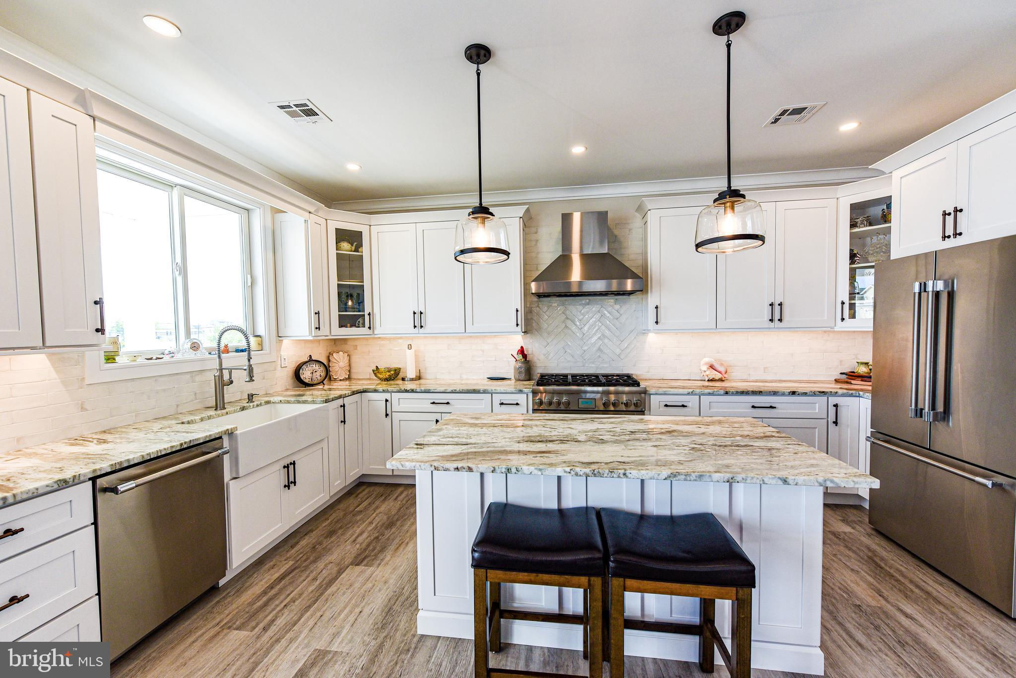 Coastal Contemporary just 1 year young with 5 bedrooms & 3.5 tiled baths located Waterfront in desirable Beach Haven West just minutes to the open bay. This magnificent home boasts numerous features & amenities including designer kitchen w/granite counters, full Thermador SS appliance package, wine bar, and walk-in butlers pantry; spacious family room with granite surround gas fireplace; 9 foot ceilings; luxury plank flooring; dual zone HVAC & tankless gas HWH; ceiling fans w/lights; recessed & pendant lighting; Andersen windows & oversized sliders with custom blinds; ample closets with custom shelving; elegant trim, moldings, shiplap and solid core paneled doors; full laundry room w/sink; vaulted Owners Suite with private balcony; balance of builders Home Buyers Warranty, and offered fully furnished. Enjoy an active outdoor lifestyle on the fiberglass decks with glass paneled railings, covered waterfront patio, direct entry 2 car garage with premium cabinetry, extensive hardscaping, new 40 ft dock & vinyl bulkhead, and outside shower. Convenient to all area recreation, shopping, restaurants, transportation GSP Exit 63, and the best beaches on Long Beach Island. Start your family memories today!