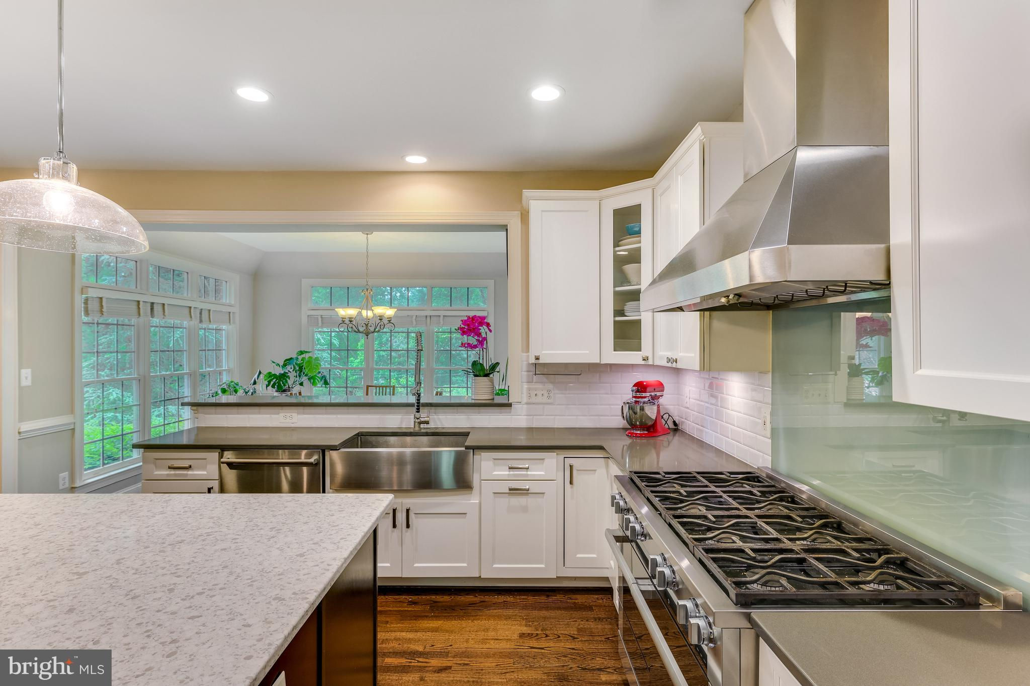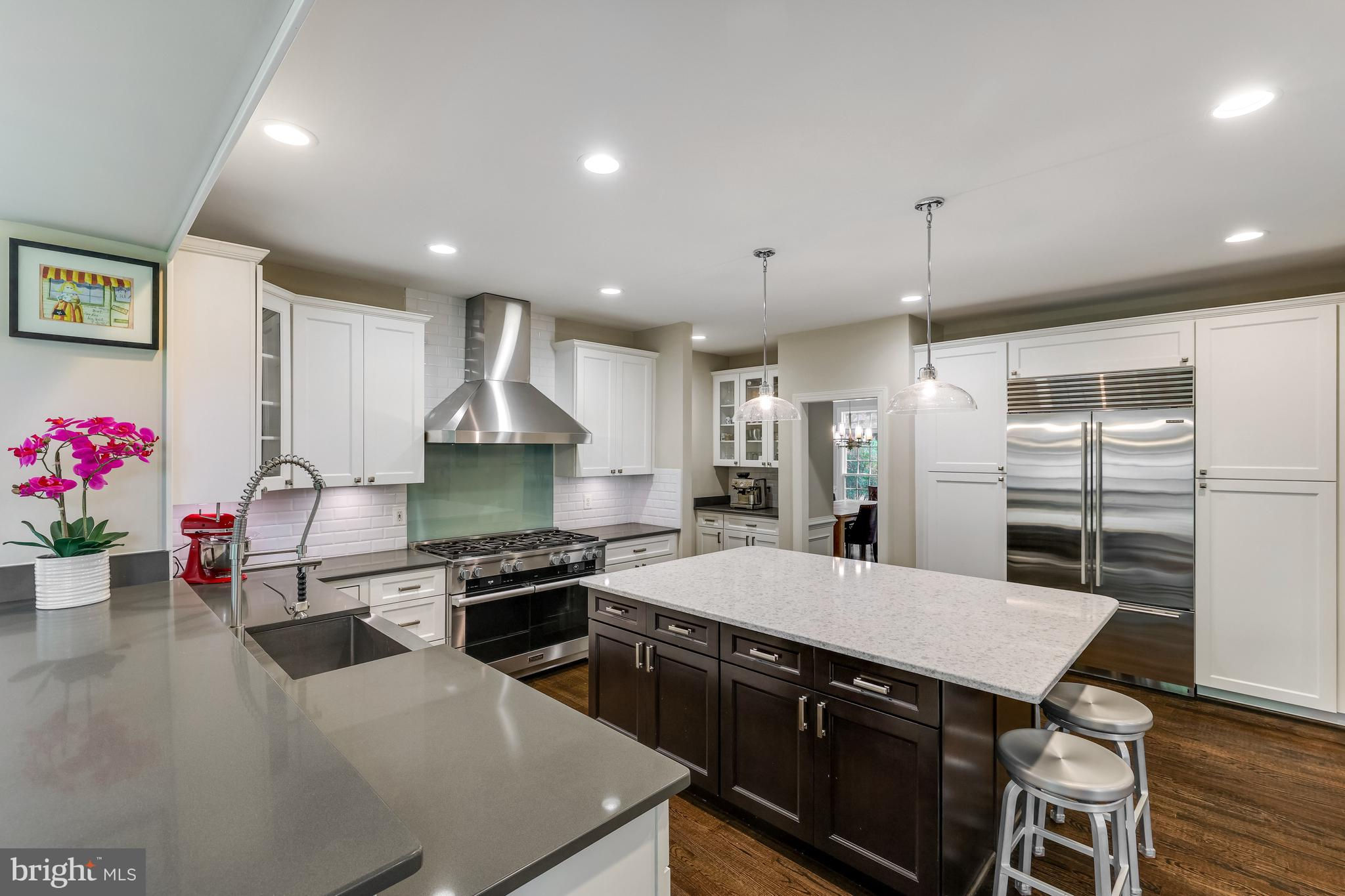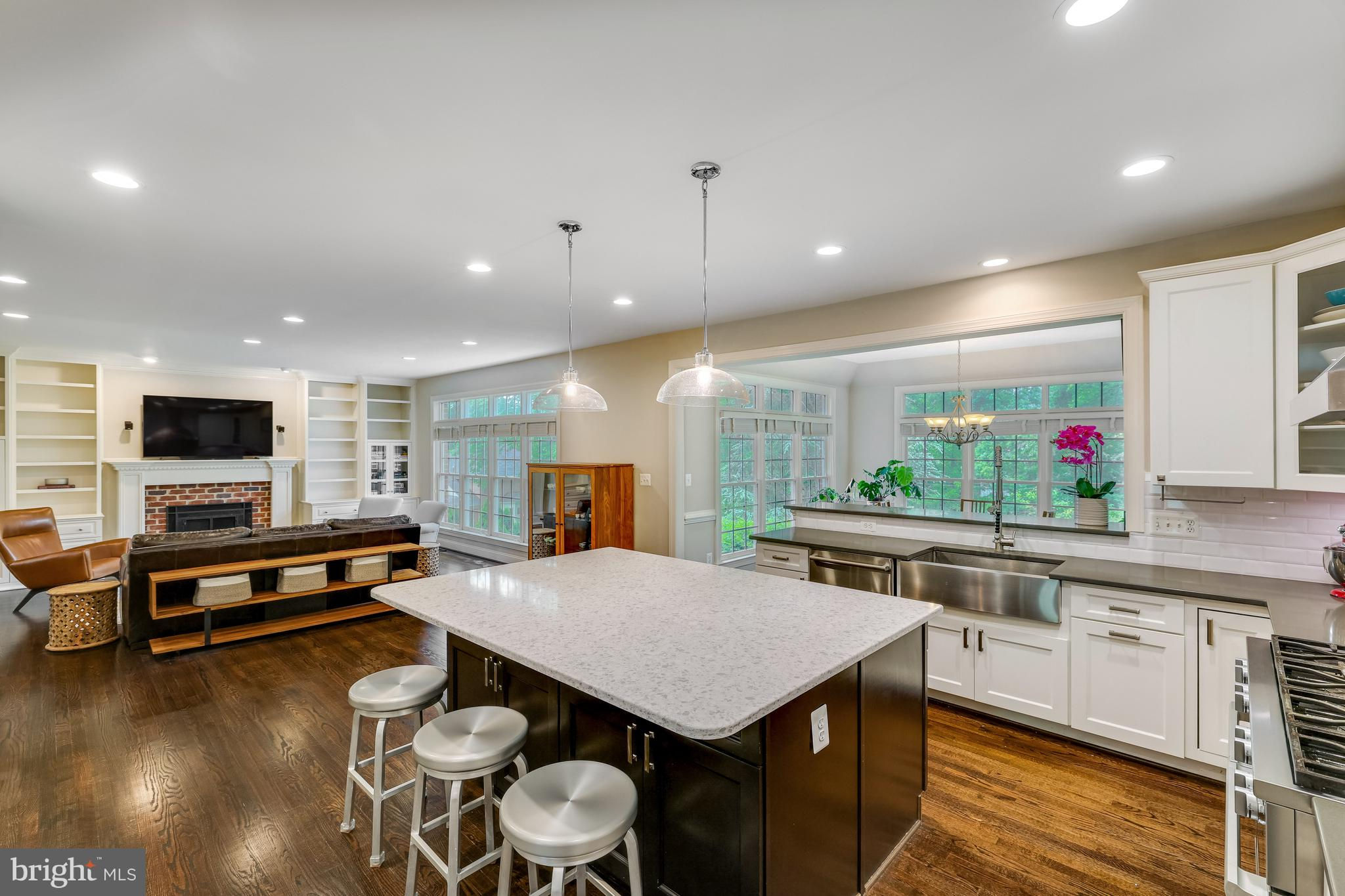 Beautifully renovated 6 Bed, 4.5 Bath home on a professionally landscaped .4 acre lot in sought-after Chesterbrook Farm. The spacious and light-filled entry brings you into this impressively updated home, with high ceilings, hardwood floors throughout the main and upper levels and custom built-ins. The gourmet kitchen was renovated with quartz countertops, Sub Zero fridge and Miele 8-burner range with speed oven/microwave, a stainless farmers sink, breakfast bar, large center island with plenty of additional storage and seating for 5. Attached to the kitchen is a large sunroom - ideal for informal family meals, with direct access to the large deck, overlooking the terraced backyard, with waterfall feature and mature landscaping. A formal living room and dining room, family room with a gas fireplace, home office and powder room complete the main level. On the upper level, there are 5 well-proportioned bedrooms including the primary suite, 3 updated full bathrooms and laundry room. The generously-sized ensuite primary bedroom has a sitting area, large walk-in closet and beautifully renovated bathroom with dual-sink Restoration Hardware vanity, walk-in shower and stand-alone soaking tub. The finished walk-out lower level has a large rec room with a gas fireplace, gym, 6th bedroom and full bath. Additional features include a rear staircase, DaVinci synthetic slate roof with lifetime warranty, oversized 2-car garage and plenty of storage! McLean High School pyramid. Public water/sewer.