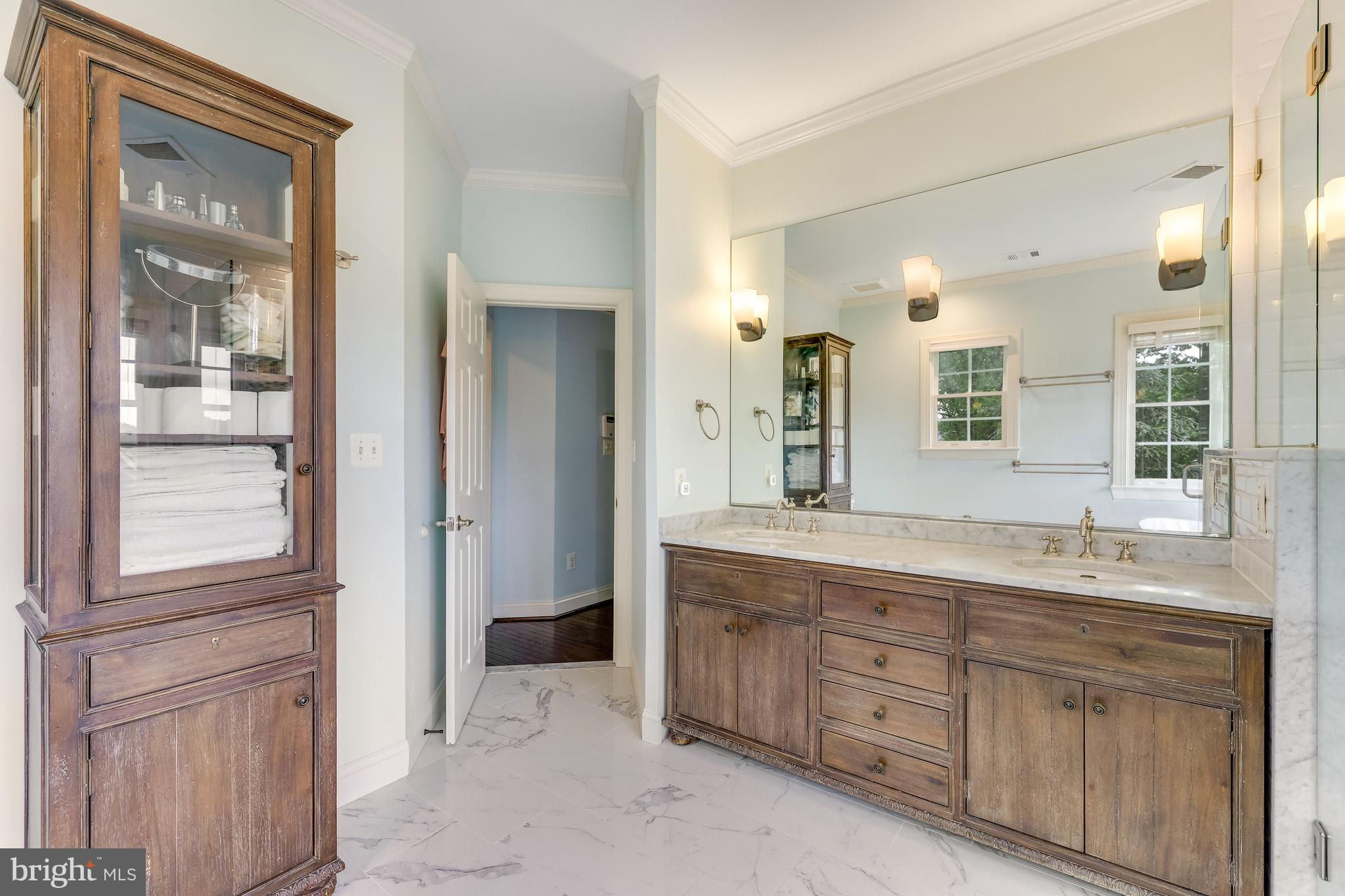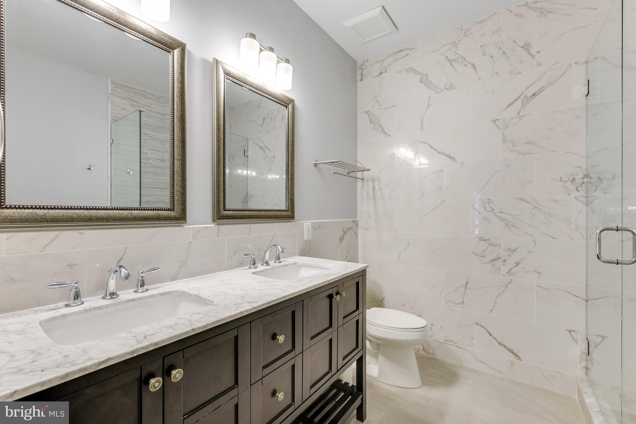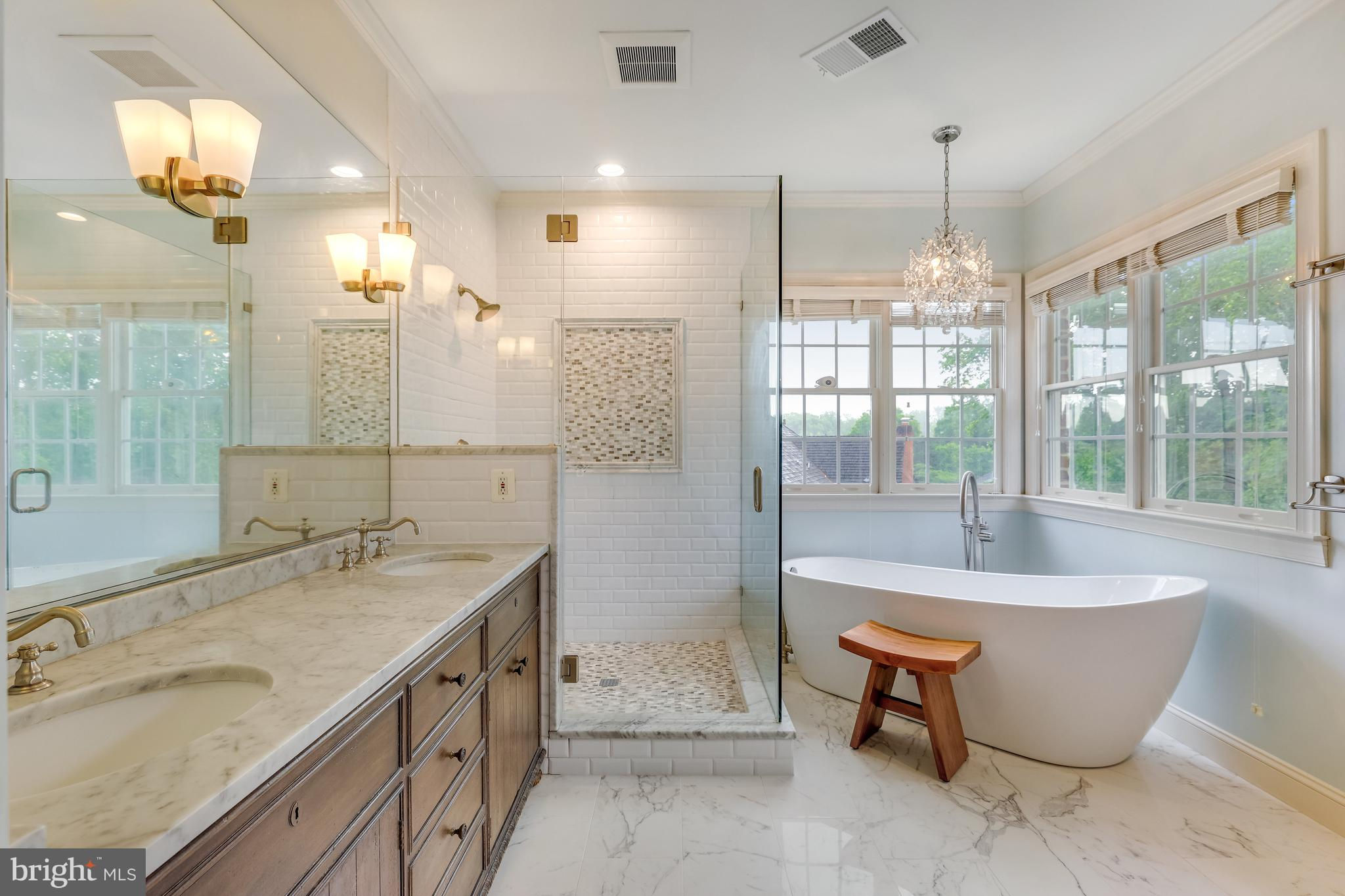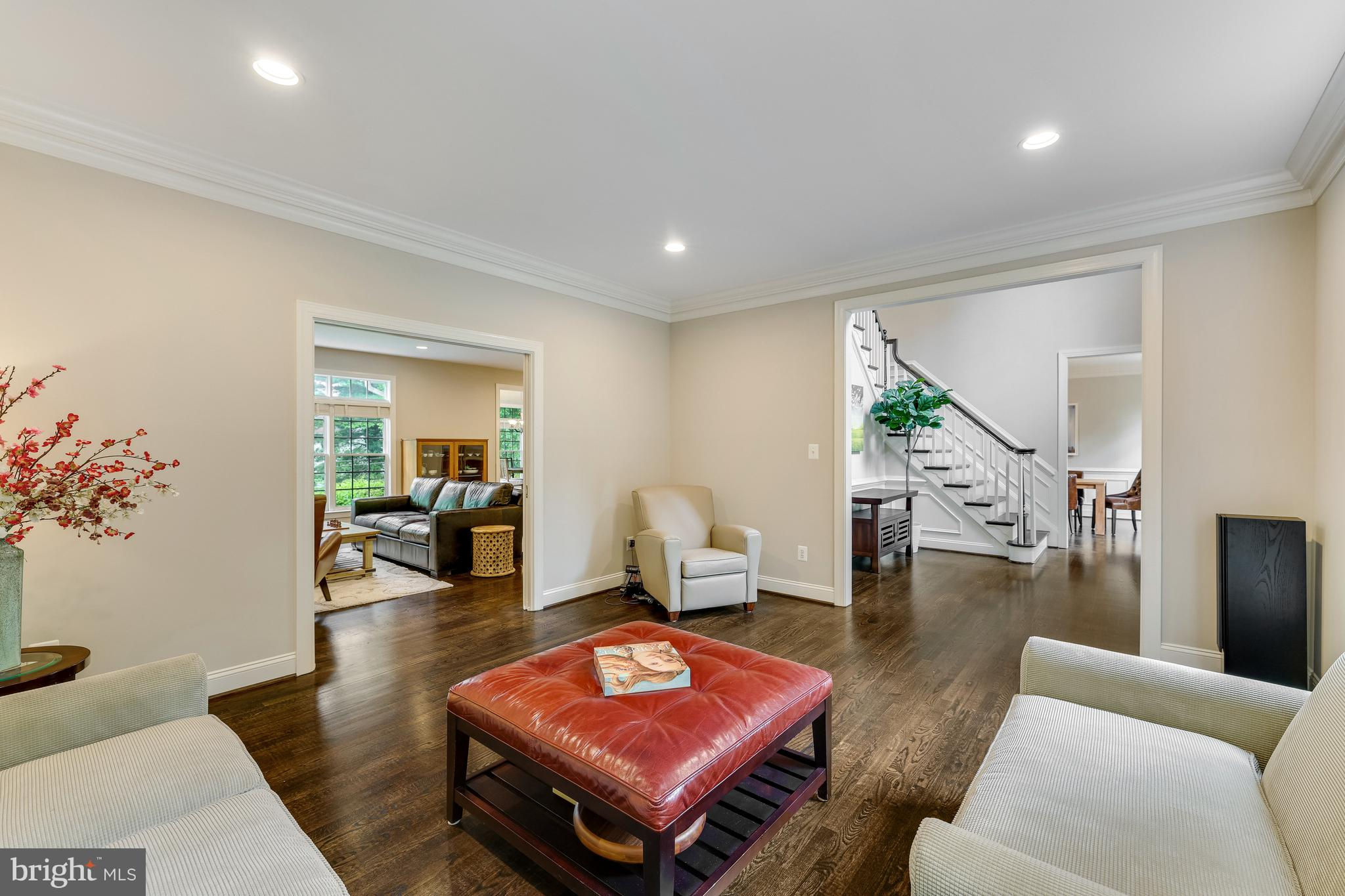 Beautifully renovated 6 Bed, 4.5 Bath home on a professionally landscaped .4 acre lot in sought-after Chesterbrook Farm. The spacious and light-filled entry brings you into this impressively updated home, with high ceilings, hardwood floors throughout the main and upper levels and custom built-ins. The gourmet kitchen was renovated with quartz countertops, Sub Zero fridge and Miele 8-burner range with speed oven/microwave, a stainless farmers sink, breakfast bar, large center island with plenty of additional storage and seating for 5. Attached to the kitchen is a large sunroom - ideal for informal family meals, with direct access to the large deck, overlooking the terraced backyard, with waterfall feature and mature landscaping. A formal living room and dining room, family room with a gas fireplace, home office and powder room complete the main level. On the upper level, there are 5 well-proportioned bedrooms including the primary suite, 3 updated full bathrooms and laundry room. The generously-sized ensuite primary bedroom has a sitting area, large walk-in closet and beautifully renovated bathroom with dual-sink Restoration Hardware vanity, walk-in shower and stand-alone soaking tub. The finished walk-out lower level has a large rec room with a gas fireplace, gym, 6th bedroom and full bath. Additional features include a rear staircase, DaVinci synthetic slate roof with lifetime warranty, oversized 2-car garage and plenty of storage! McLean High School pyramid. Public water/sewer.