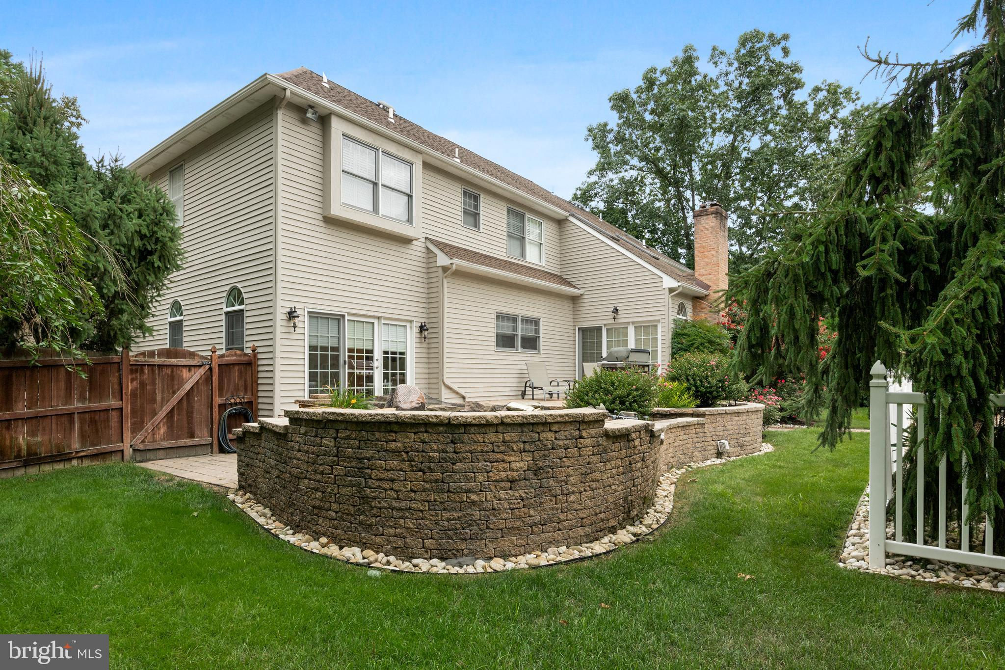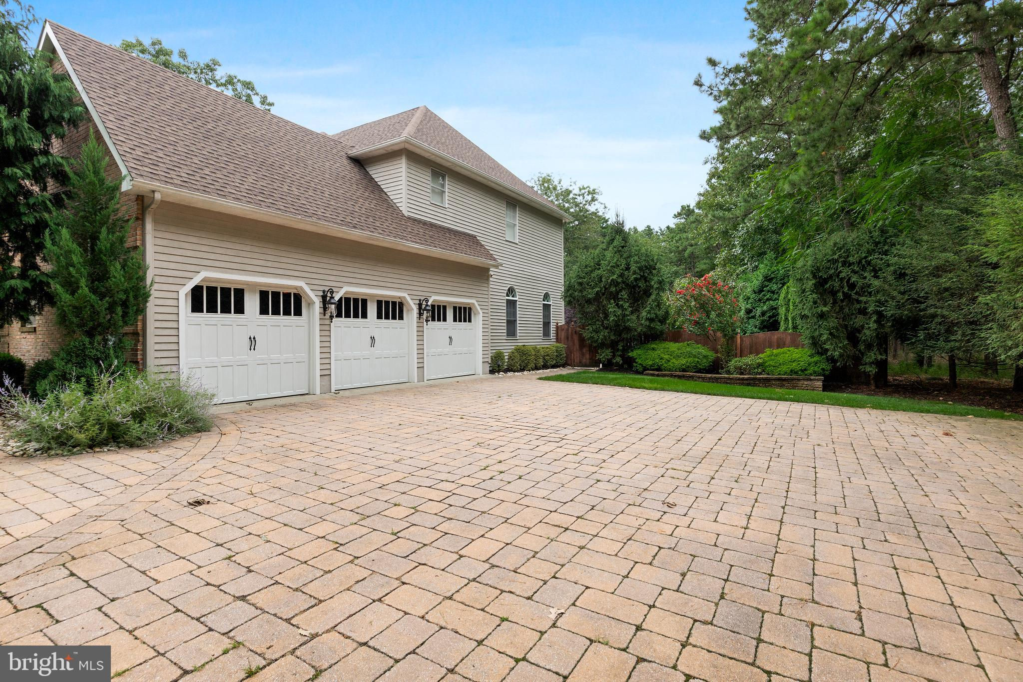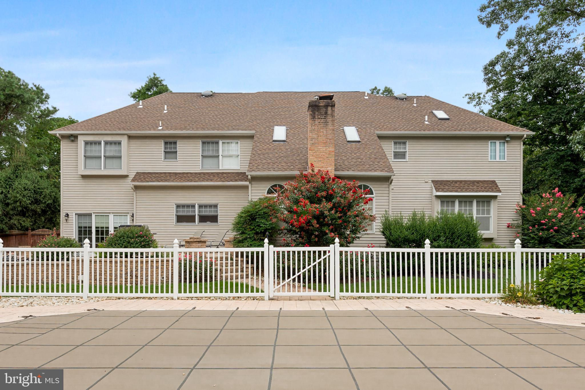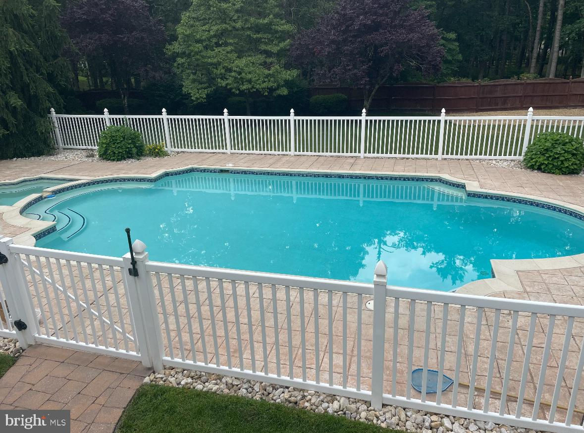This stunning home is located in Little Mill, Medford, offering traditional curb appeal and perfectly manicured landscaping, featuring charming bump-outs and bay windows. The all-brick exterior exudes a classic vibe, while the beautiful, long paver driveway leads to an oversized, side-entry 3-car garage. The backyard is an entertainer's paradise, with a massive paver patio, ample space for gatherings, and a tranquil waterfall with a koi pond. A fenced-in, in-ground pool adds to the outdoor enjoyment during the summer months. Step inside to a grand foyer with soaring ceilings and a majestic staircase that greets you upon entry. At the front of the home, you'll find the formal dining room and living room. The heart of the home is the family room, beautifully decorated with a stone fireplace, cathedral ceilings, and a wet bar. The kitchen is a chef's dream, featuring built-in appliances, a large island/breakfast bar. Adjacent to the kitchen is the informal dining area, perfect for family dinners, and flooded with natural light. You'll find the office has gorgeous custom shelving, and a full bathroom with marble flooring and neutral-painted walls are also on the main floor. Venture upstairs to find the impressive primary bedroom, adorned with tray ceilings and a cozy sitting area with bay windows. The primary bathroom is a dream, featuring marble flooring, a walk-in shower, a soaking tub, and his-and-hers sinks with vanity space. The secondary bedroom has a unique layout, seamlessly blending with its full bathroom. This floor also includes a third and fourth well-appointed bedroom with a shared full bathroom. The expansive basement offers even more living space, complete with a bar area, a sauna, and a full bathroom. This home is truly a masterpiece, offering everything you could possibly need! Schedule your showing now!