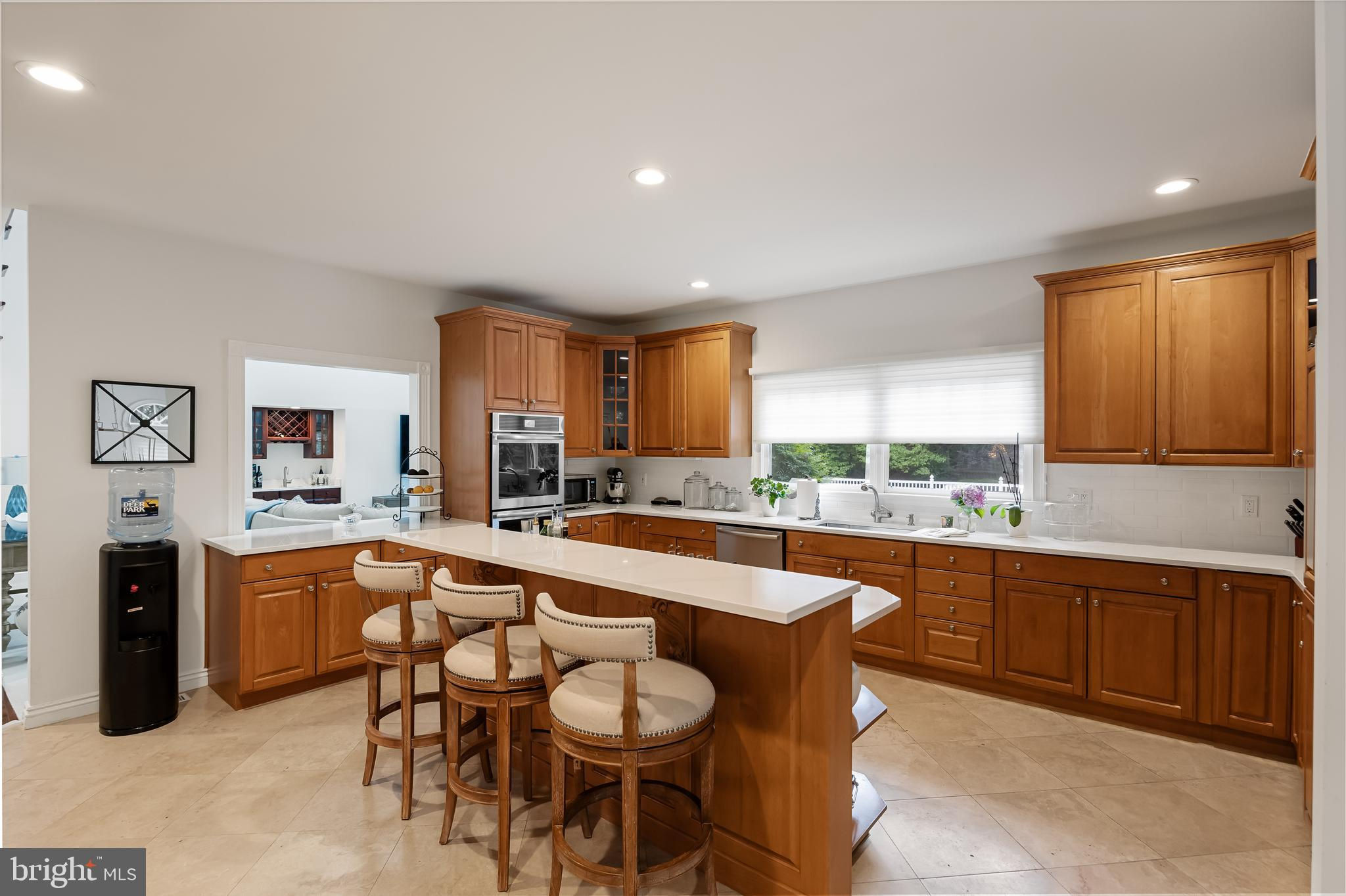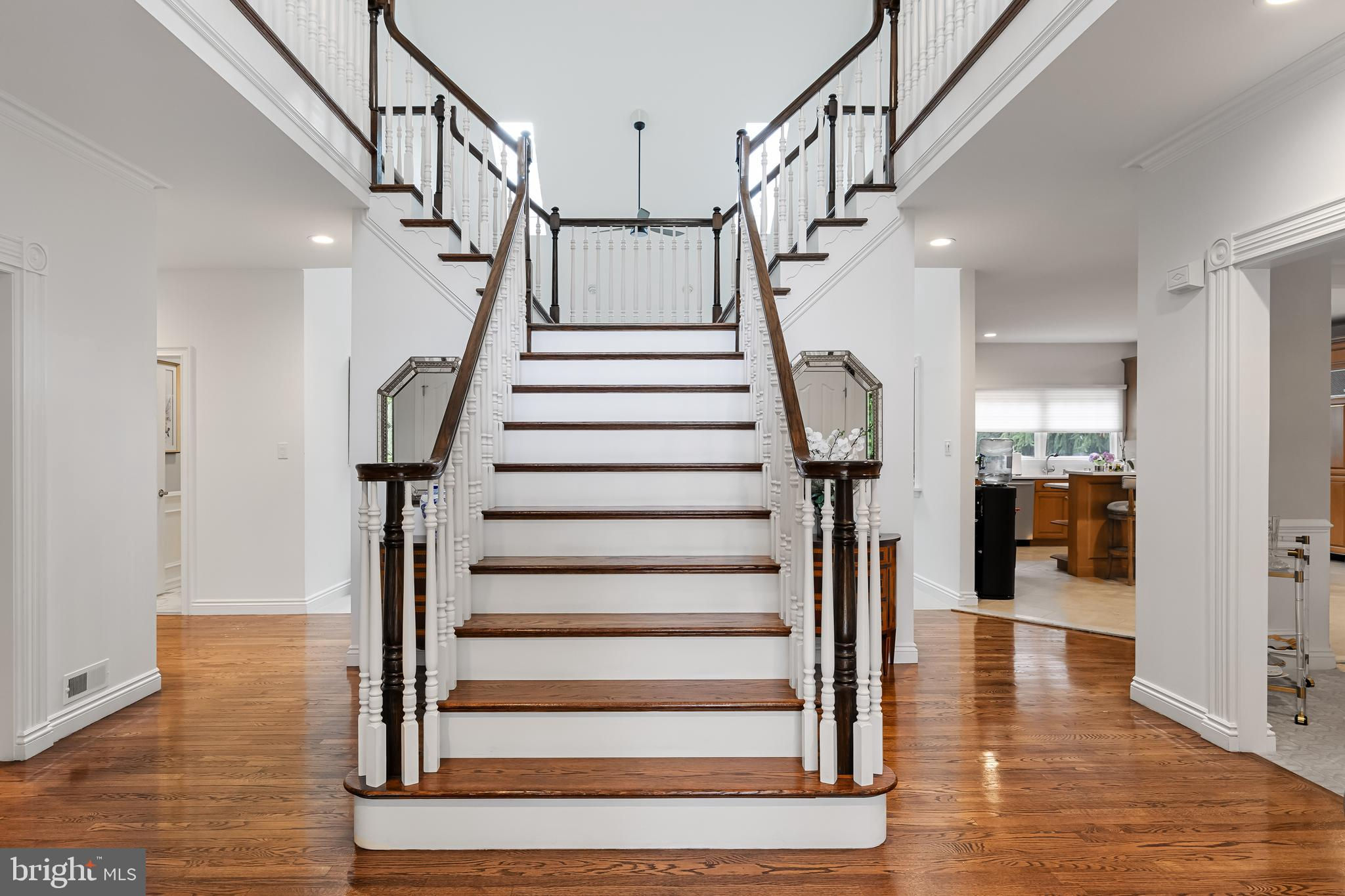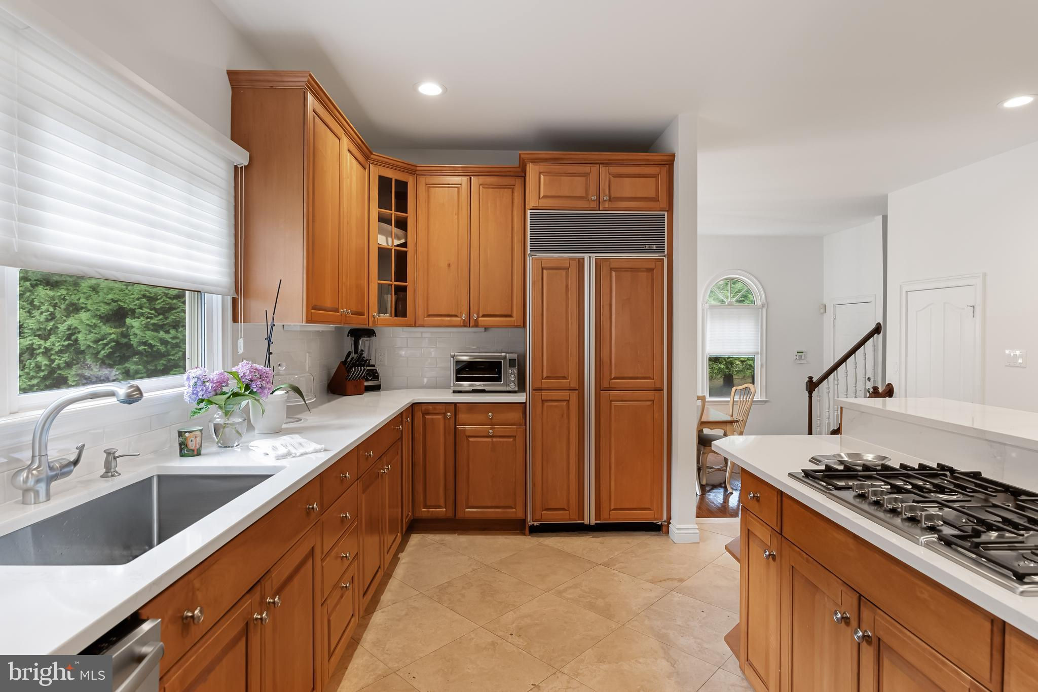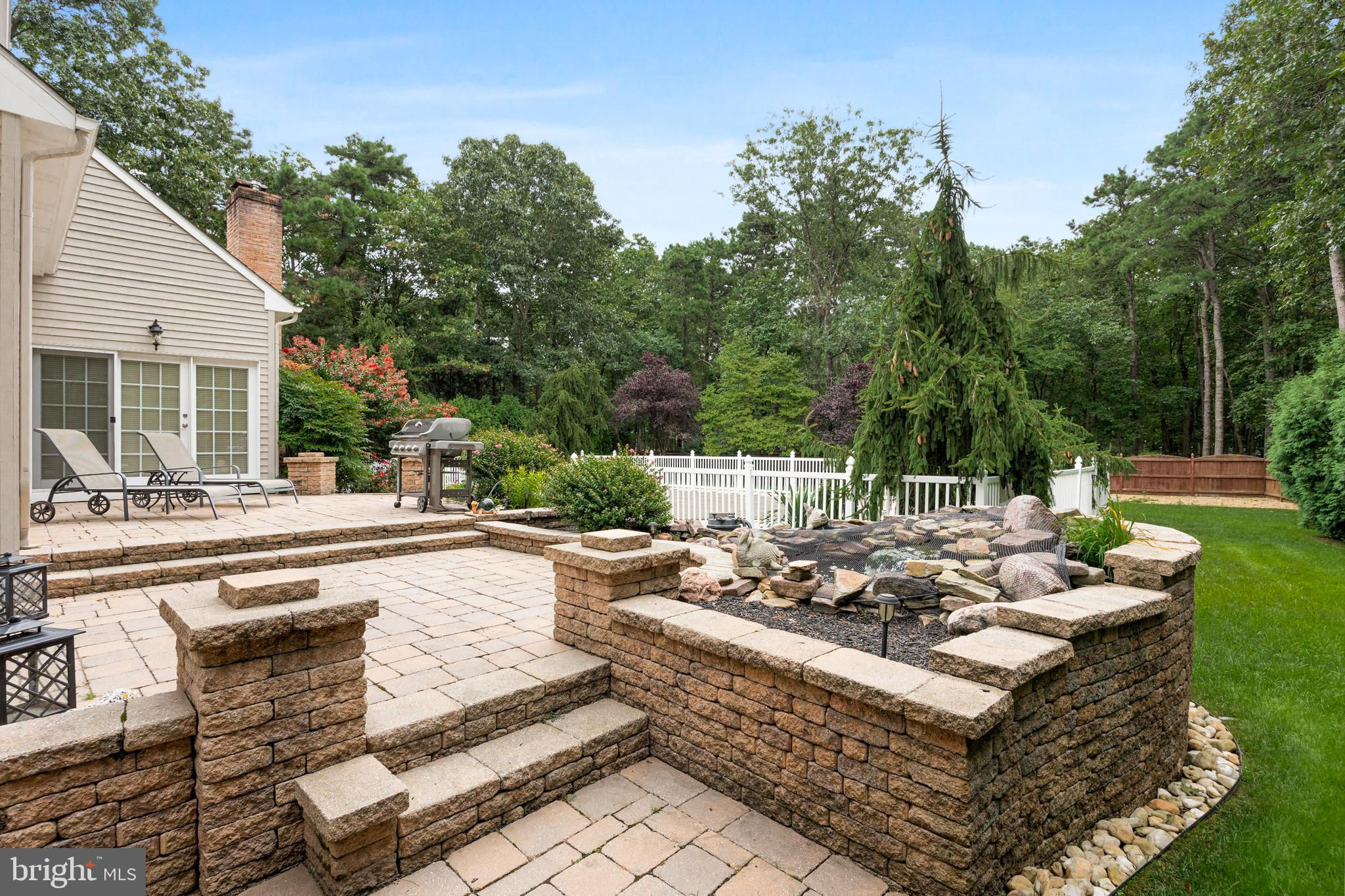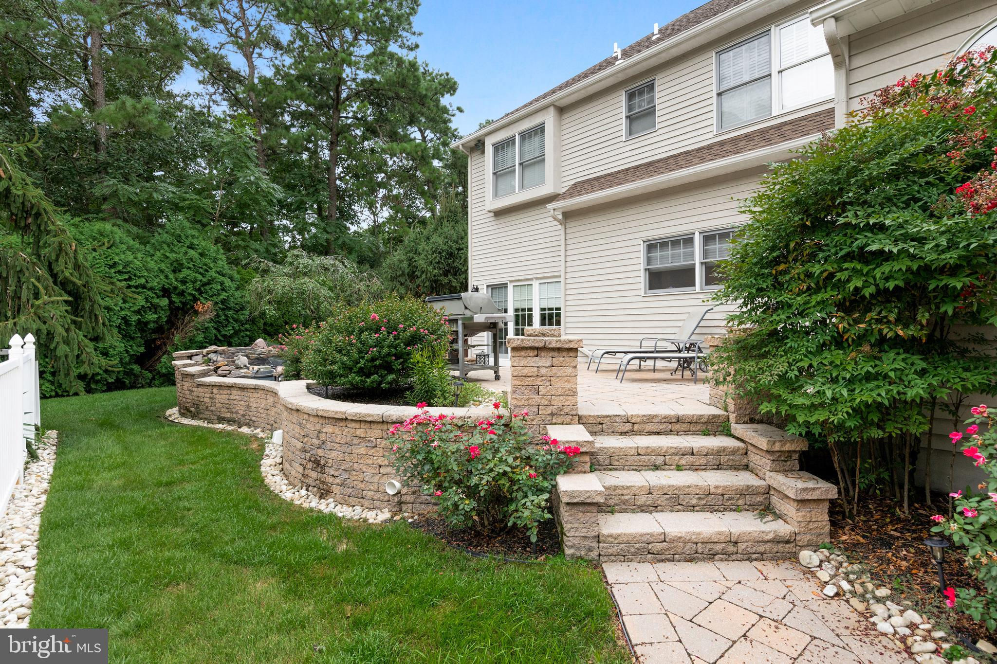 This stunning home is located in Little Mill, Medford, offering traditional curb appeal and perfectly manicured landscaping, featuring charming bump-outs and bay windows. The all-brick exterior exudes a classic vibe, while the beautiful, long paver driveway leads to an oversized, side-entry 3-car garage. The backyard is an entertainer's paradise, with a massive paver patio, ample space for gatherings, and a tranquil waterfall with a koi pond. A fenced-in, in-ground pool adds to the outdoor enjoyment during the summer months. Step inside to a grand foyer with soaring ceilings and a majestic staircase that greets you upon entry. At the front of the home, you'll find the formal dining room and living room. The heart of the home is the family room, beautifully decorated with a stone fireplace, cathedral ceilings, and a wet bar. The kitchen is a chef's dream, featuring built-in appliances, a large island/breakfast bar. Adjacent to the kitchen is the informal dining area, perfect for family dinners, and flooded with natural light. You'll find the office has gorgeous custom shelving, and a full bathroom with marble flooring and neutral-painted walls are also on the main floor. Venture upstairs to find the impressive primary bedroom, adorned with tray ceilings and a cozy sitting area with bay windows. The primary bathroom is a dream, featuring marble flooring, a walk-in shower, a soaking tub, and his-and-hers sinks with vanity space. The secondary bedroom has a unique layout, seamlessly blending with its full bathroom. This floor also includes a third and fourth well-appointed bedroom with a shared full bathroom. The expansive basement offers even more living space, complete with a bar area, a sauna, and a full bathroom. This home is truly a masterpiece, offering everything you could possibly need! Schedule your showing now!