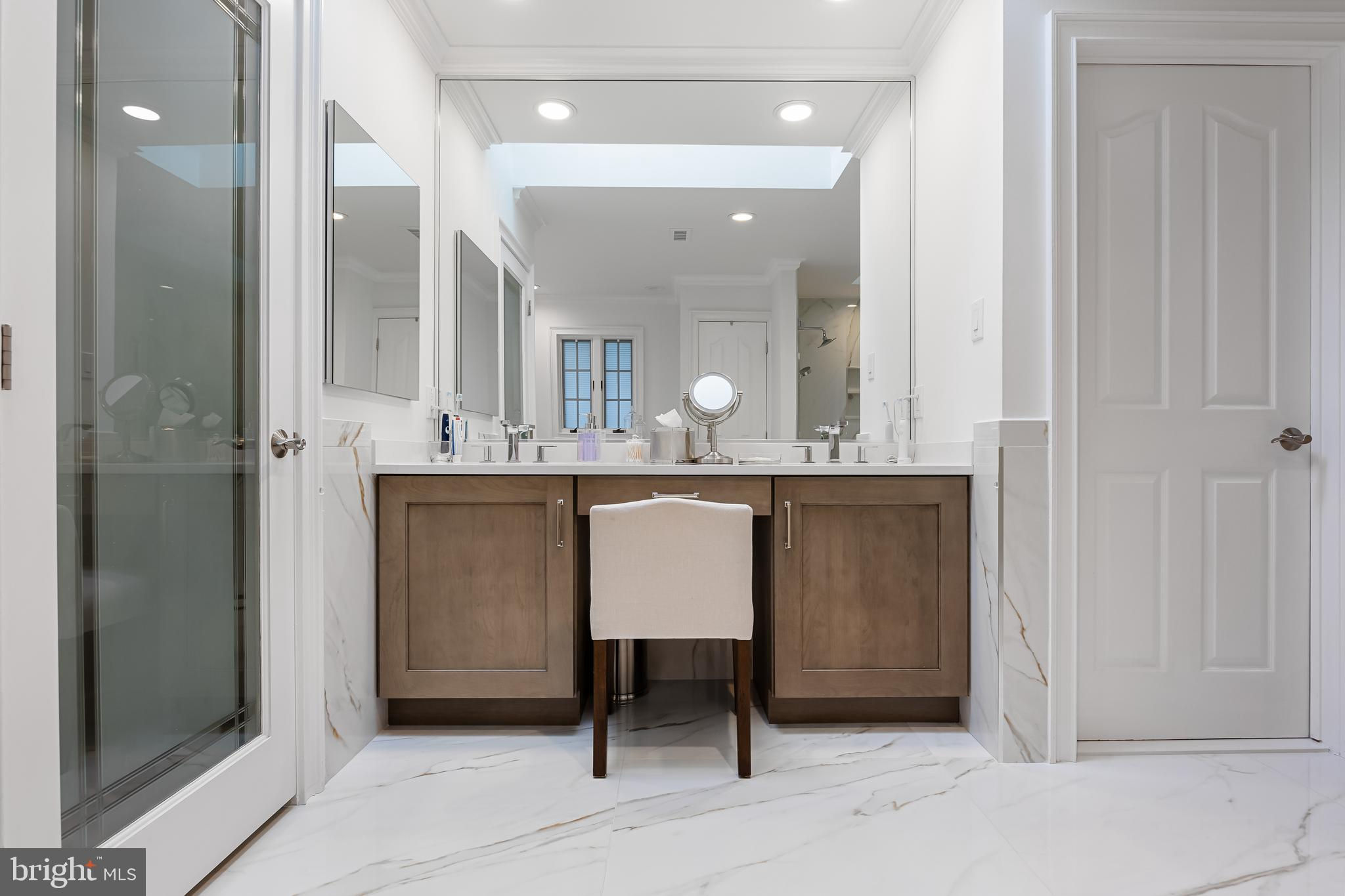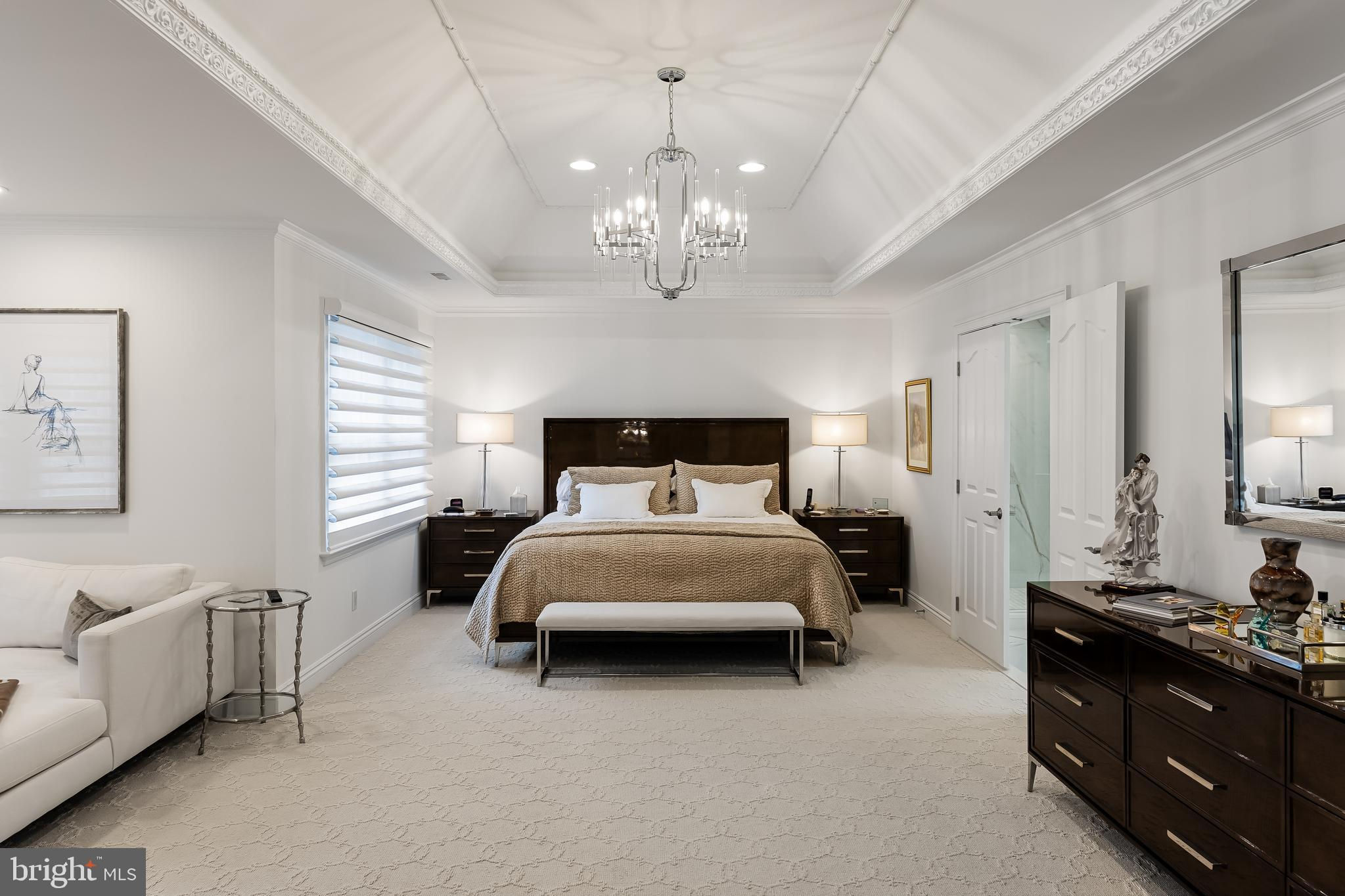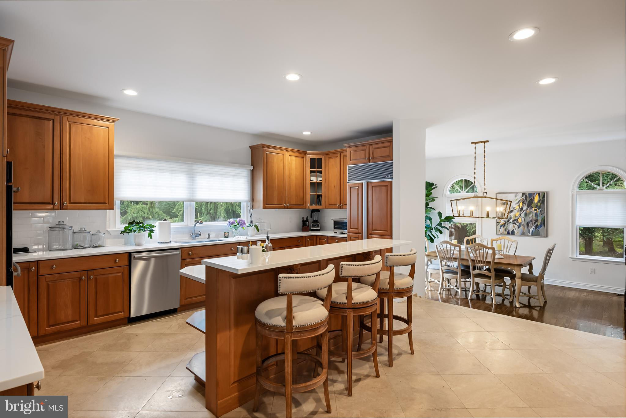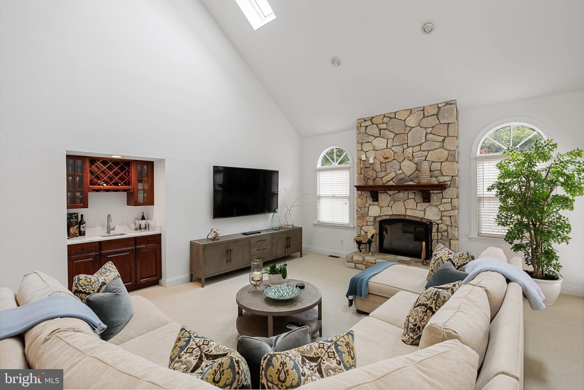 This stunning home is located in Little Mill, Medford, offering traditional curb appeal and perfectly manicured landscaping, featuring charming bump-outs and bay windows. The all-brick exterior exudes a classic vibe, while the beautiful, long paver driveway leads to an oversized, side-entry 3-car garage. The backyard is an entertainer's paradise, with a massive paver patio, ample space for gatherings, and a tranquil waterfall with a koi pond. A fenced-in, in-ground pool adds to the outdoor enjoyment during the summer months. Step inside to a grand foyer with soaring ceilings and a majestic staircase that greets you upon entry. At the front of the home, you'll find the formal dining room and living room. The heart of the home is the family room, beautifully decorated with a stone fireplace, cathedral ceilings, and a wet bar. The kitchen is a chef's dream, featuring built-in appliances, a large island/breakfast bar. Adjacent to the kitchen is the informal dining area, perfect for family dinners, and flooded with natural light. You'll find the office has gorgeous custom shelving, and a full bathroom with marble flooring and neutral-painted walls are also on the main floor. Venture upstairs to find the impressive primary bedroom, adorned with tray ceilings and a cozy sitting area with bay windows. The primary bathroom is a dream, featuring marble flooring, a walk-in shower, a soaking tub, and his-and-hers sinks with vanity space. The secondary bedroom has a unique layout, seamlessly blending with its full bathroom. This floor also includes a third and fourth well-appointed bedroom with a shared full bathroom. The expansive basement offers even more living space, complete with a bar area, a sauna, and a full bathroom. This home is truly a masterpiece, offering everything you could possibly need! Schedule your showing now!