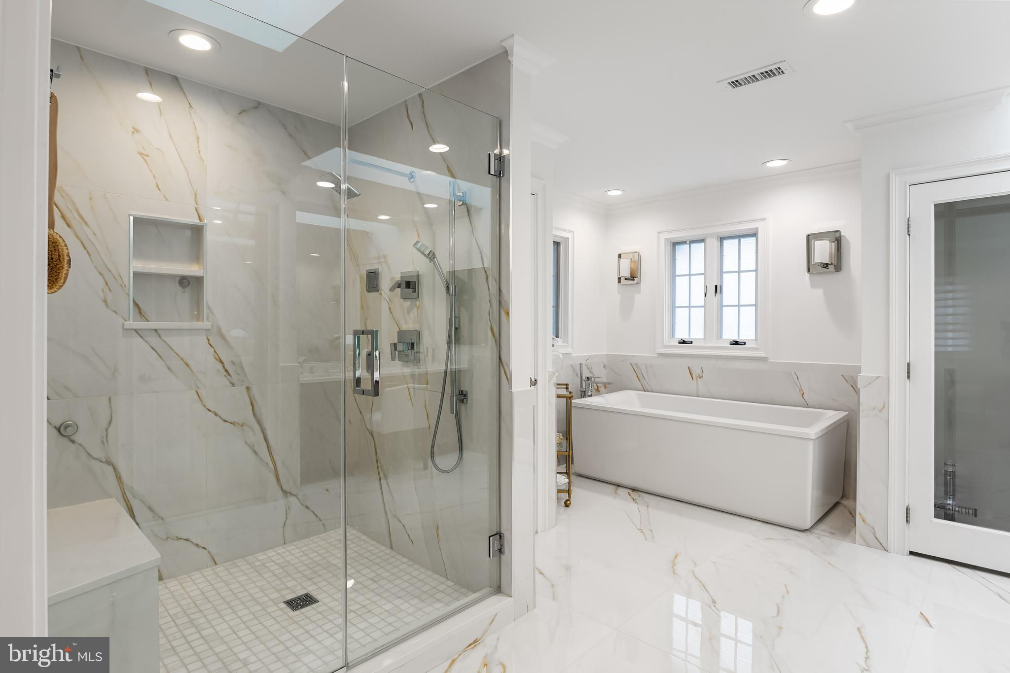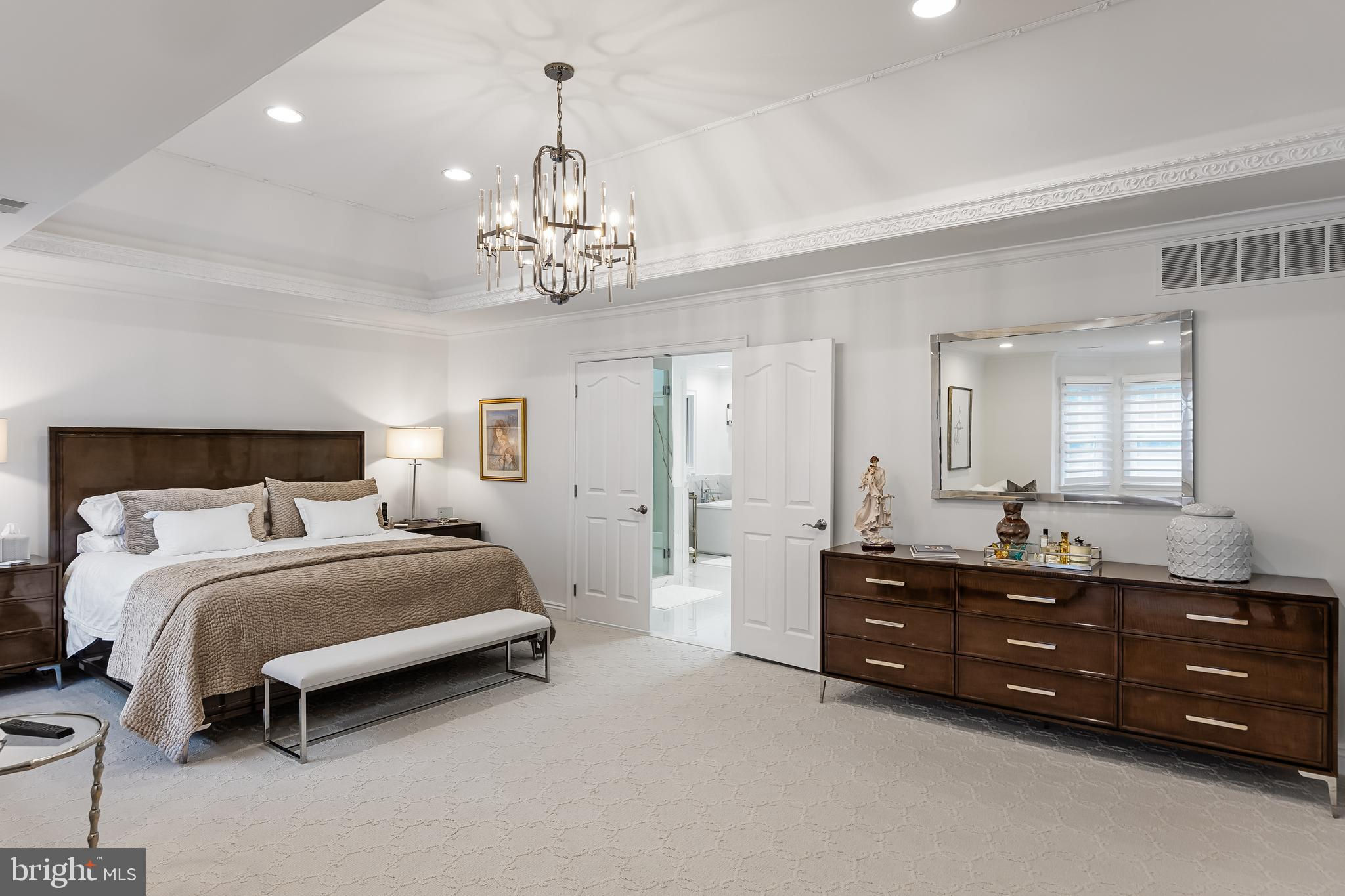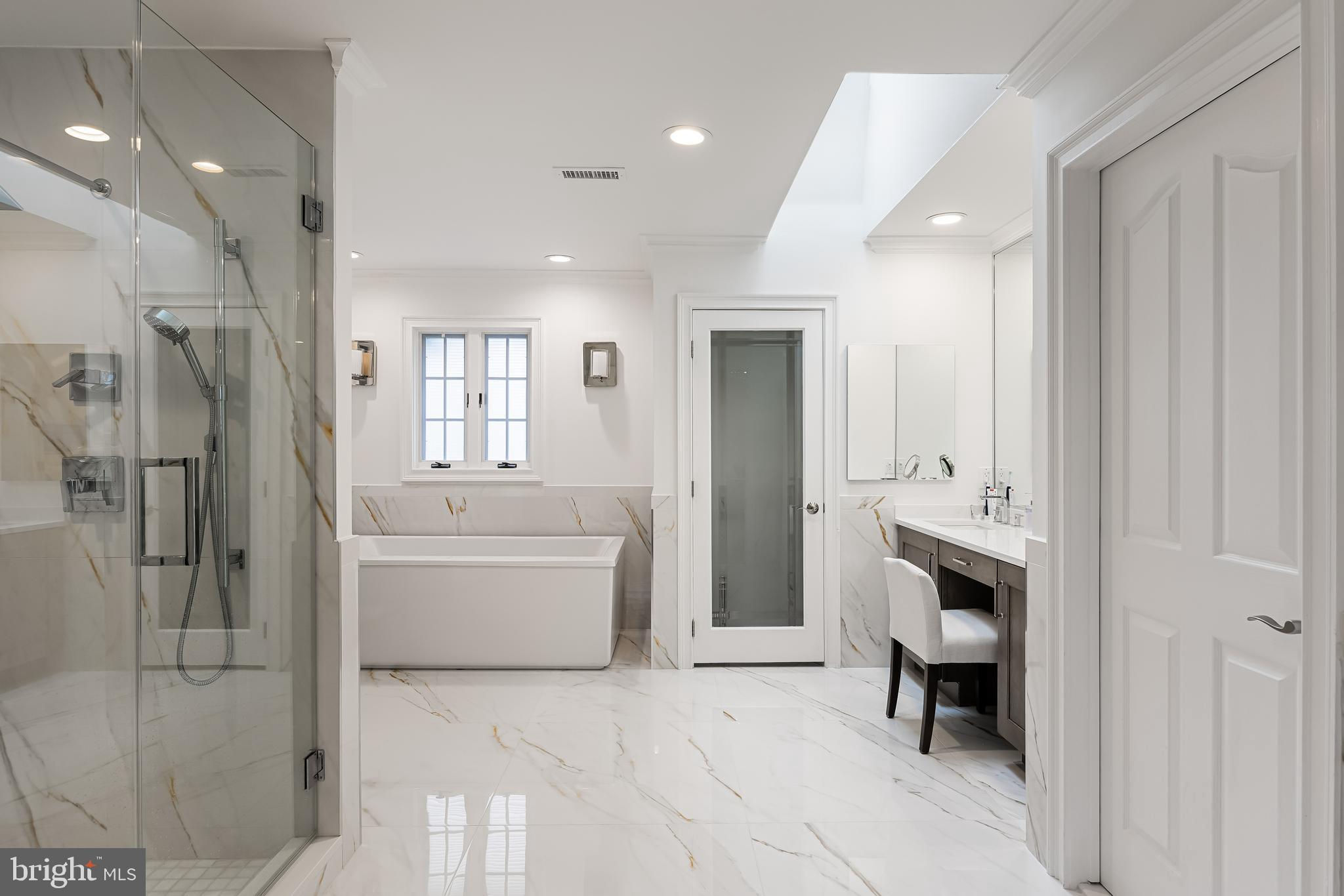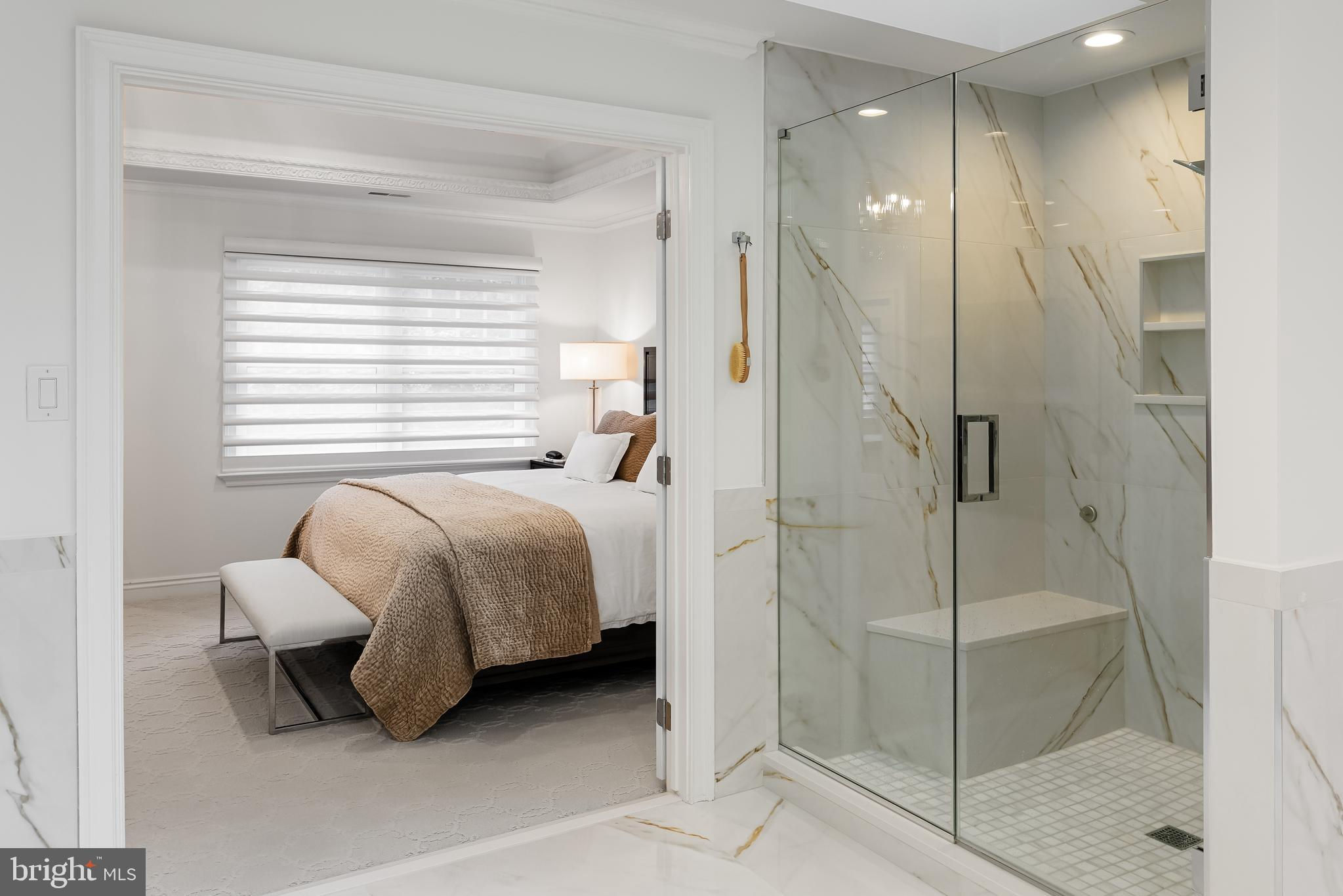 This stunning home is located in Little Mill, Medford, offering traditional curb appeal and perfectly manicured landscaping, featuring charming bump-outs and bay windows. The all-brick exterior exudes a classic vibe, while the beautiful, long paver driveway leads to an oversized, side-entry 3-car garage. The backyard is an entertainer's paradise, with a massive paver patio, ample space for gatherings, and a tranquil waterfall with a koi pond. A fenced-in, in-ground pool adds to the outdoor enjoyment during the summer months. Step inside to a grand foyer with soaring ceilings and a majestic staircase that greets you upon entry. At the front of the home, you'll find the formal dining room and living room. The heart of the home is the family room, beautifully decorated with a stone fireplace, cathedral ceilings, and a wet bar. The kitchen is a chef's dream, featuring built-in appliances, a large island/breakfast bar. Adjacent to the kitchen is the informal dining area, perfect for family dinners, and flooded with natural light. You'll find the office has gorgeous custom shelving, and a full bathroom with marble flooring and neutral-painted walls are also on the main floor. Venture upstairs to find the impressive primary bedroom, adorned with tray ceilings and a cozy sitting area with bay windows. The primary bathroom is a dream, featuring marble flooring, a walk-in shower, a soaking tub, and his-and-hers sinks with vanity space. The secondary bedroom has a unique layout, seamlessly blending with its full bathroom. This floor also includes a third and fourth well-appointed bedroom with a shared full bathroom. The expansive basement offers even more living space, complete with a bar area, a sauna, and a full bathroom. This home is truly a masterpiece, offering everything you could possibly need! Schedule your showing now!