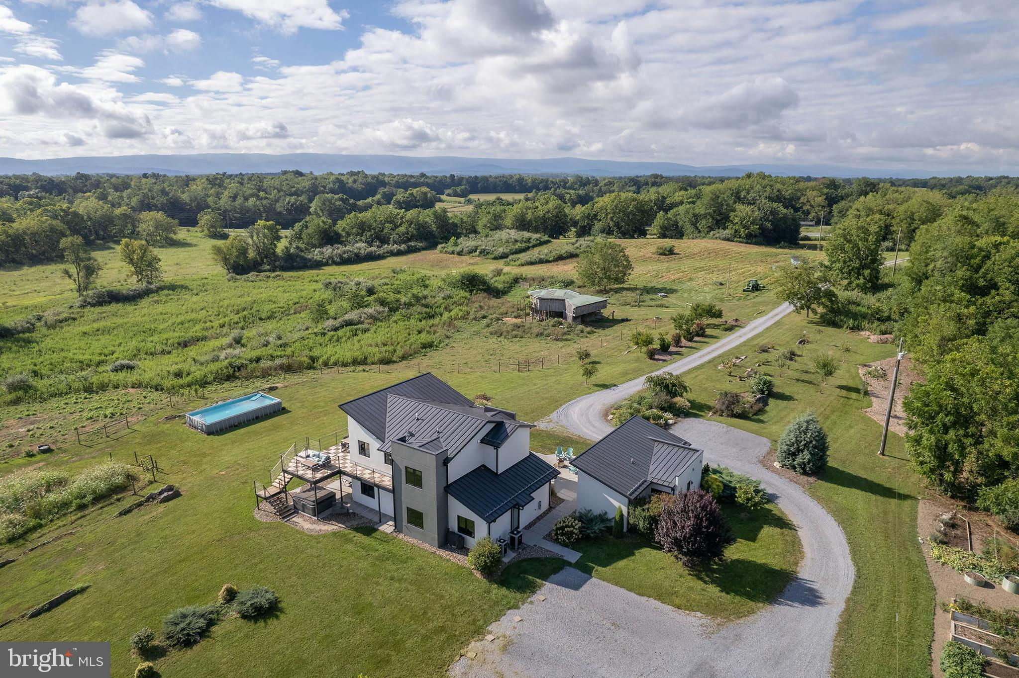 Welcome to the farm where the land has been organically kept, animals have been rotationally grazed, and wildlife abounds! This property has it all! Views, Location, Acreage, Pond, Additional DUR, Home and Cottage! This exceptional property offers over 75 acres of natural beauty, complete with a pond, a stream (Long Marsh Run), 2 high- tensile fenced paddocks, Approx. 30 tillable acres, Old Barn with electric and water spigot and an above-ground pool ( owner can remove) The main residence features 4 bedrooms and 2.5 bathrooms, almost 3000 sq ft, including the cottage. Thoughtfully designed with spacious 9-foot ceilings and a cathedral ceiling in the main living area. Clean, modern finishes include frameless doors solid-core 7-foot doors, all complemented by engineered oak flooring throughout. Adjacent to the main home is a versatile 600-square-foot building complete with a full bathroom—ideal for a private office, guest house, or in-law suite. 1 EXTRA DUR (Dwelling Unit Right) At the heart of the home is a gourmet kitchen designed for serious cooks and entertainers alike. It boasts a Wolf 60" dual-fuel six-burner range with infrared dual griddle and pot filler, a Sub-Zero refrigerator with freezer with built-in ice maker, a Bosch dishwasher, a Kohler Stages 45" stainless steel undermount sink with SilentShield, and a pull-out corner cabinet and drawers, completing this high-end culinary space. Outdoor living is equally impressive, with a 940-square-foot IPE wood wraparound deck and an 892-square-foot covered patio featuring a tongue-and-groove walnut ceiling—perfect for entertaining or simply enjoying the views and serenity. Long Marsh Run flows through the property. Plenty of space for horses, cows etc.. bring your animals! The property offers a rare opportunity to enjoy edible landscaping at its finest, featuring a wide variety of established fruit trees and plantings, including walnut forest right in your own backyard! Imagine stepping outside to harvest fresh produce throughout the seasons—perfect for healthy living, homesteading, or simply savoring nature’s abundance. Efficiency and comfort are built into every aspect of the home. A high-efficiency heat pump with a fresh air make-up energy recovery unit ensures year-round comfort, while a 500-gallon propane tank . The home also features an on-demand propane water heater, with a gas line roughed in for a future grill. Additionally, conduit is already in place for a future garage pad and firepit area. Modern connectivity is no issue thanks to Viper Broadband satellite service which is one option that the owners chose, allowing you to enjoy the best of both worlds: expansive rural acreage with high-end finishes and reliable modern conveniences. This is a rare opportunity to create the lifestyle you’ve been dreaming of—room for animals, space to grow, water features, established orchards, and a home designed to last. Check out our 3-D Tour attached to the listing! PLEASE DO NOT DRIVE UP THE DRIVEWAY WITHOUT AN APPOINTMENT AND YOUR REALTOR**