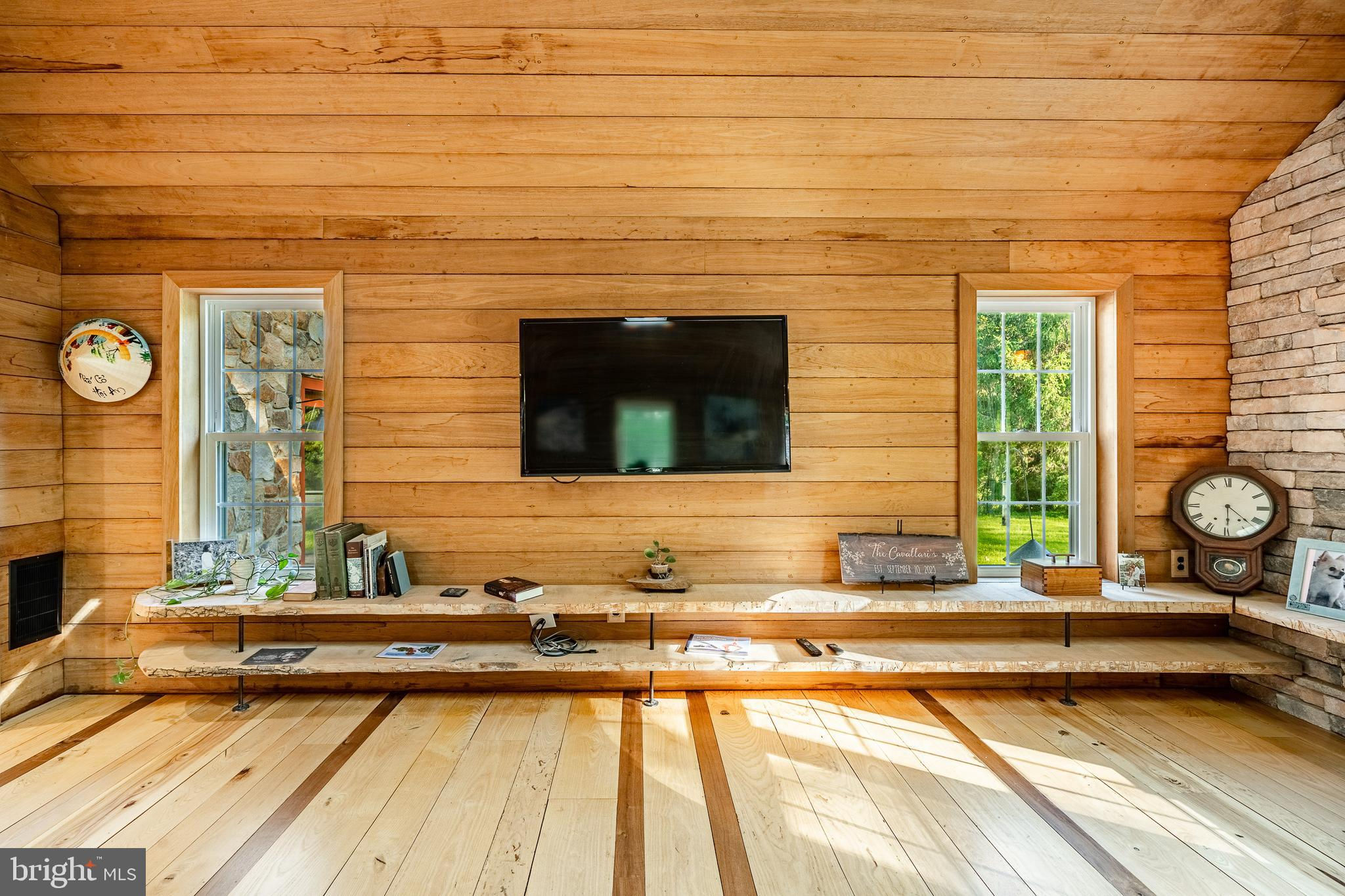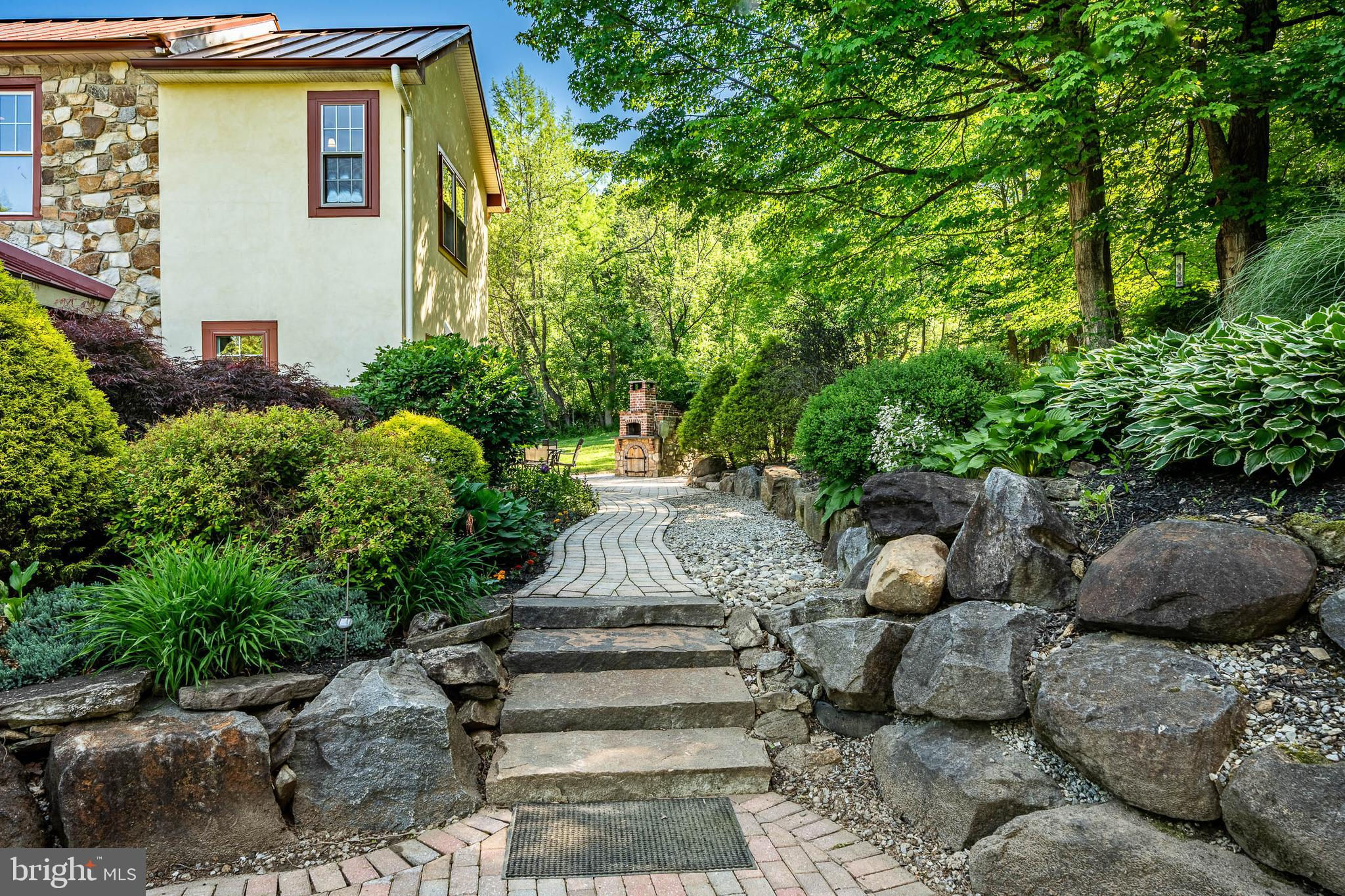 This is a fabulous c.1886 house where the creative owner changed and altered spaces to create the unique home you see today! This is not your average cookie-cutter house plus the property offers three additional living spaces! One living space is above the garage, and two are in the Barn. The extent of the home’s creative character is immediately felt with your first step into the Foyer. The room’s vaulted ceiling is sheathed in reclaimed natural mahogany and the oval shaped room features arched windows and a slate floor with beveled edges. Stone replaces a traditional chair rail and a stone arched doorway welcomes you into the adjoining Great Room and Kitchen. Here, the floors draw your attention as they are perfectly crafted with a rich combination of ash, maple, walnut and mahogany wood. The vaulted ceiling in the Great Room is beautifully sheathed in reclaimed mahogany and the light from three skylights brightens the room. The east end of the Great Room features an incredible dry laid stacked stone wall with an arched window at its center. All of the handsome Kitchen cabinets where made on site and the center island’s countertop is made from a slab of black walnut with a live edge. The kitchen counters are beautiful Italian soapstone. Thanks to several interconnecting rooms, this home is perfect for someone who loves to entertain as there is plenty of space and a wonderful flow. The Dining Room features exquisite mahogany dental crown molding and special woodworking around all of the doors. The next room is the Den which houses the staircase and a cozy gas fireplace. Finishing the main level is the Bar Room which features a wall of custom cabinets surrounding a bar with a wine cooler below. This dramatic space also features four arched windows set in a stone wall. The Powder Room is located here. A door leads to a large mahogany deck with a hot tub - a wonderful location for intimate dinner parties. Upstairs is a wonderful Primary Suite with a fabulous bathroom and walk-in closet. On this level are two additional bedrooms and an updated Hall Bathroom. The upper level hall is also home to the Washer and Dryer. For the chef in the house, there is a wonderful stone and brick pizza oven off the back terrace! Adjacent to the home is a Three Car Garage. One Garage bay has been converted into a home Gym which allows you to workout daily in your own personal gym with a state of the art infrared Sauna. Over the three car Garage is a spacious residential apartment with kitchen/great room, bedroom, and full bathroom. In what was once the Barn, then the workshop for Brandywine Cabinetry, you will now find two apartments. There are two lovely ponds on the property, one of which is stocked with bass and coy while the other has a soothing waterfall. For the young at heart, there is a great tree house. This fine property is truly the work of a creative master craftsman and represents the highest quality workmanship. Additionally, a buyer will enjoy views of the nearby Brandywine Creek. A new owner will also be proud of the fact that parts of the property were featured in a Wyeth painting. All of the home’s mechanical systems have been thoroughly updated with high-end equipment. Located in the highly sought after Unionville-Chadds Ford School District, this wonderful property also enjoys very low taxes!
