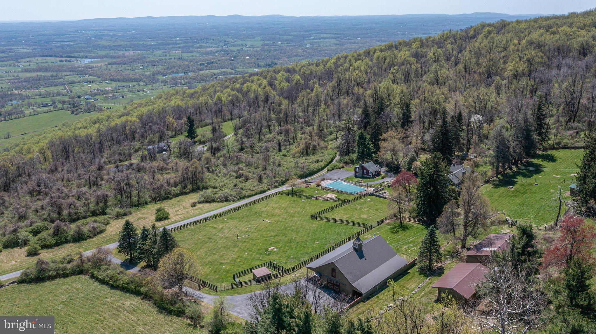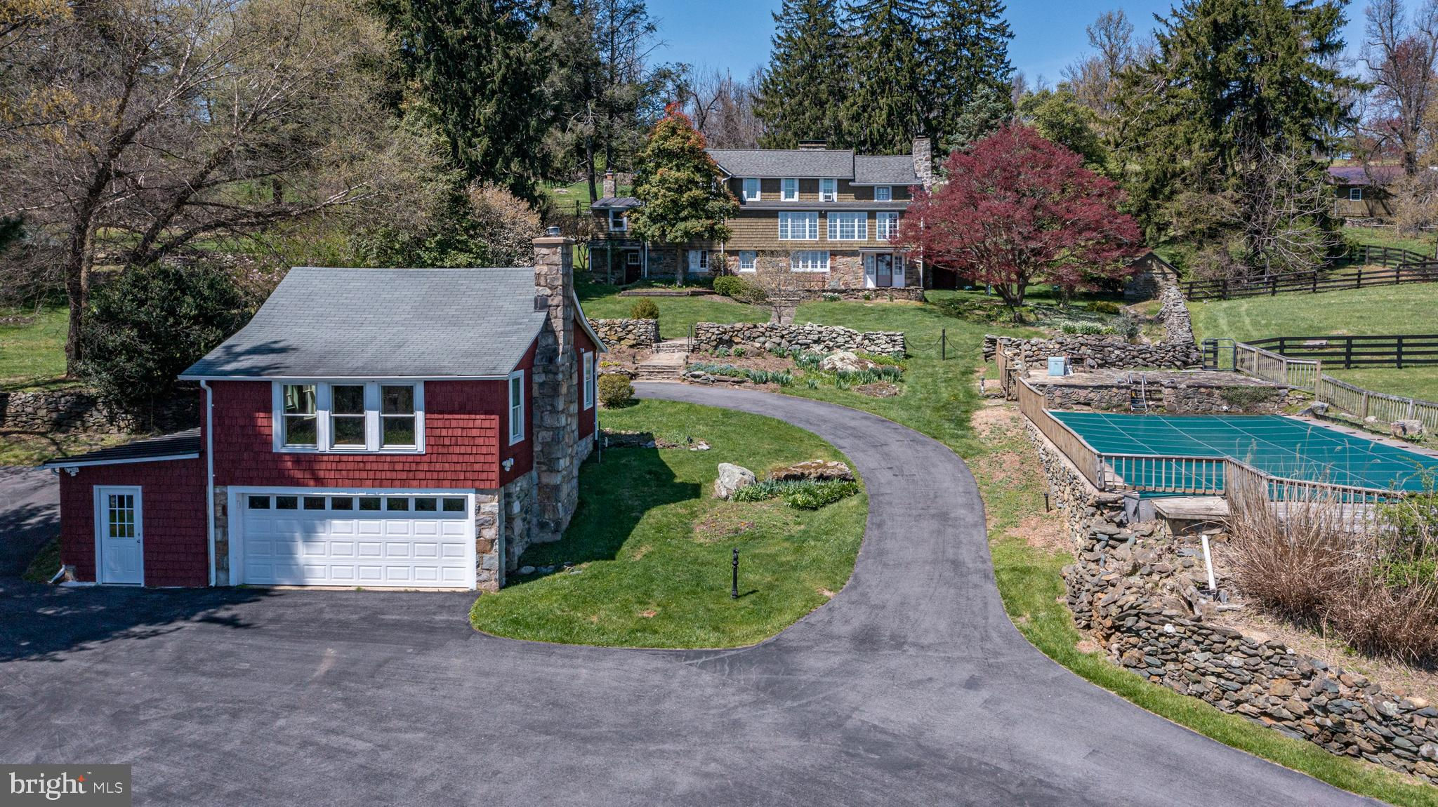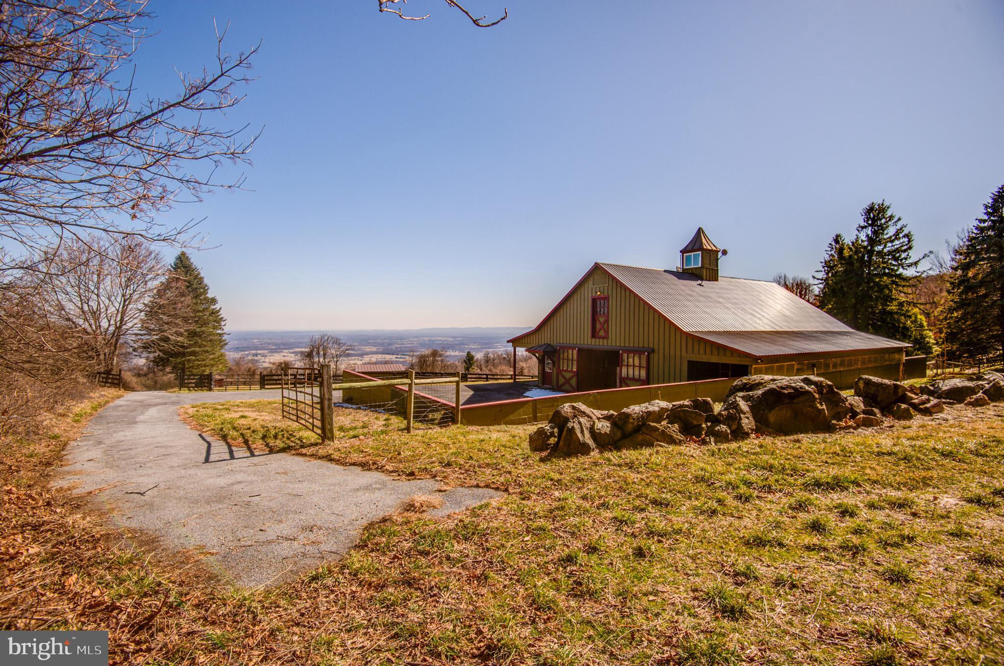 Nestled within the picturesque landscape of historic Bluemont, Virginia and perched high on a hillside, amidst breathtaking vistas, Check Mate Lane awaits. Tucked down a quiet gravel lane, the farm is surrounded by expansive farms, some in conservation. Horse fields and evergreen trees create a natural barrier that provides a sense of seclusion and privacy, yet the farm is less than a five-minute drive to Rt. 7. For commuting, the Dulles Toll Road to Dulles International Airport is a mere 25 minutes away, offering effortless access to the wider world while preserving the serenity of this remarkable retreat. As you approach the farm, stately stone chimneys stand tall, welcoming you to a place where history and modern comfort intertwine seamlessly. Step inside this grand wood and stone residence, and the warmth of antique floors, interior stone walls and rustic overhead beams envelop you, creating a cozy yet refined atmosphere. The main house offers four bedrooms and 2.5 baths, each room exuding its own peaceful aura. Chefs will appreciate the Cherry Bertazzoni range, readers will relish in the sunlit quiet nooks on each level and artists will fall in love with the expansive windows offering a view of one of Loudoun County’s most beautiful valleys. Outdoor living spaces abound at Check Mate Lane beginning with the stone terrace just footsteps from the main residence ideal for al fresco dining amidst the twinkling lights of the valley or enjoying that first cup of coffee as the sun breaks through a morning fog. For nature lovers this is a tranquil and relaxing spot surrounded by flowers and specimen trees and the songs of a wide variety of resident birds. With easy access to the lower-level kitchen, over the years the terrace has been the scene of unforgettable brunches and cocktail parties! Animal enthusiasts will delight in the fantastic barn complex, including a center aisle barn for horses with feed and tack rooms, additional barn with 6 stalls and an equipment shed. A smartly designed system of board fenced paddocks makes this a turnkey facility for move- in day. The quiet country lane offers a "ride out" and above the main barn you find the ideal spot for a future regulation sized grass dressage ring. The existing outdoor buildings could transition to house a woodworking shop, an art or yoga studio or the perfect spot to start your dream beekeeping or crafting your own brew. A dedicated driveway to the barn complex makes day-to-day farm activities easy. For your guests, an adorably designed guest cottage awaits, mirroring the main house's stone chimney and charm and warmth that offers privacy, a wood burning stove, a galley kitchen and full bath. The views from the cottage are as breathtaking as from the main home. Close enough proximity for family and friends, the cottage expands your ability to entertain at the main house. With its own electric meter and parking, it also offers rental income potential or serves as the perfect home office. Whether watching the sunrise from the comfort of picture windows, entertaining on the terrace, gardening in your veggie patch, galloping across the paddocks or exploring nearby attractions such as the towns of Middleburg and Purcellville, hiking on the Appalachian Trail at Bear's Den, or exploring the award-winning vineyards “Sunset Hills” and “50 West” and others. A quick drive into the village of Bluemont to the General Store for an ice cream cone and lively conversation with the “locals” one is reminded of the simple joys and sense of community life in the country can bring! Check Mate Lane is a once in a lifetime real estate opportunity that transcends the ordinary offering a blend of unparalleled views, prime location, privacy and equine and amenities all wrapped up within the grandeur of a period home with guest cottage and acreage. Check Mate Lane exudes a special kind of magic 365 days a year.