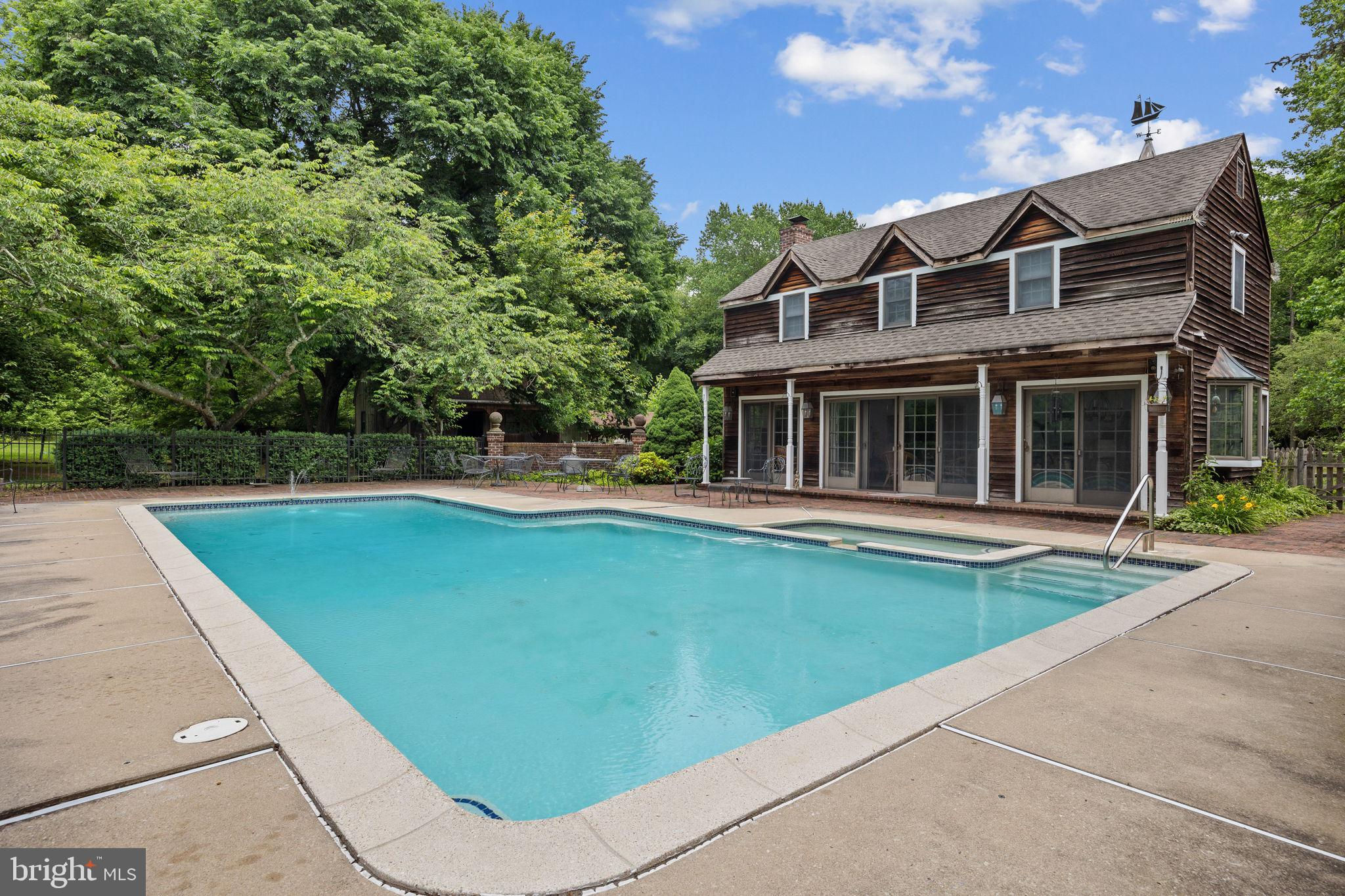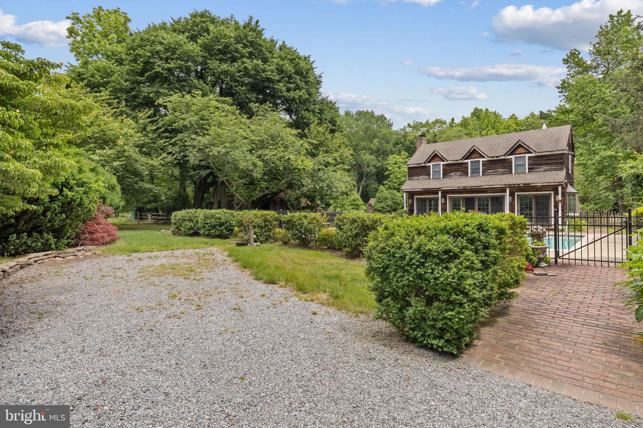 A true original farmhouse located on 23+ acres. Beautifully landscaped with mature trees, boxwoods and gardens. Offering a serene vista of nature. The farmhouse consists of a spacious living room with exposed wood ceiling beams, built in custom made book shelves, and a beautiful brick fireplace that is a highlight of the room. The formal dining room flows from the living room area. This has large windows and a sliding door that opens to a brick side porch. The porch has a custom awning that provides shade and shelter from the weather. This makes it a perfect place to enjoy a summer meal with a view of the gardens and stream. A spacious family room with a sand stone custom, wood burning fireplace, hardwood flooring and full wall of windows that slide open to the brick patio. Another room to enjoy is the kitchen. This is a large room to gather the family and enjoy an eat-in area. The upgraded kitchen offers a bow window with a view. Custom made cabinets, an island, and a side hutch. There is a Wolf gas range and a Subzero refrigerator. The house features hard wood floors throughout and central air. In addition, there are 4 nice sized bedrooms, 2 full bathrooms, an attic, a full basement, and a useful mudroom that opens to a large brick patio perfect for grilling. The property also offers a gorgeous "Swim-Mor" customized pool with a jacuzzi. To accompany the pool area is very popular interior designed, best described as a "Coastal Grandmother Style" pool house. This coastal style offers light color palettes, airy spaces, and a relaxed lifestyle vibe. It features a brick fireplace, open living and dining area, with an upstairs guest bedroom, and a full bathroom. A great place to welcome in the summer. A detached, oversized garage with a second floor has many options for storage. This building is heated. This listing includes additional acreage. (2001, 2003, 2005 Kirkwood Gibbsboro Rd. in Voorhees Twp. and Block 1.01-QFarm in Gibbsboro Borough). Taxes listed do not reflect additional acreage nor does the assessment value listed include the additional acreage.