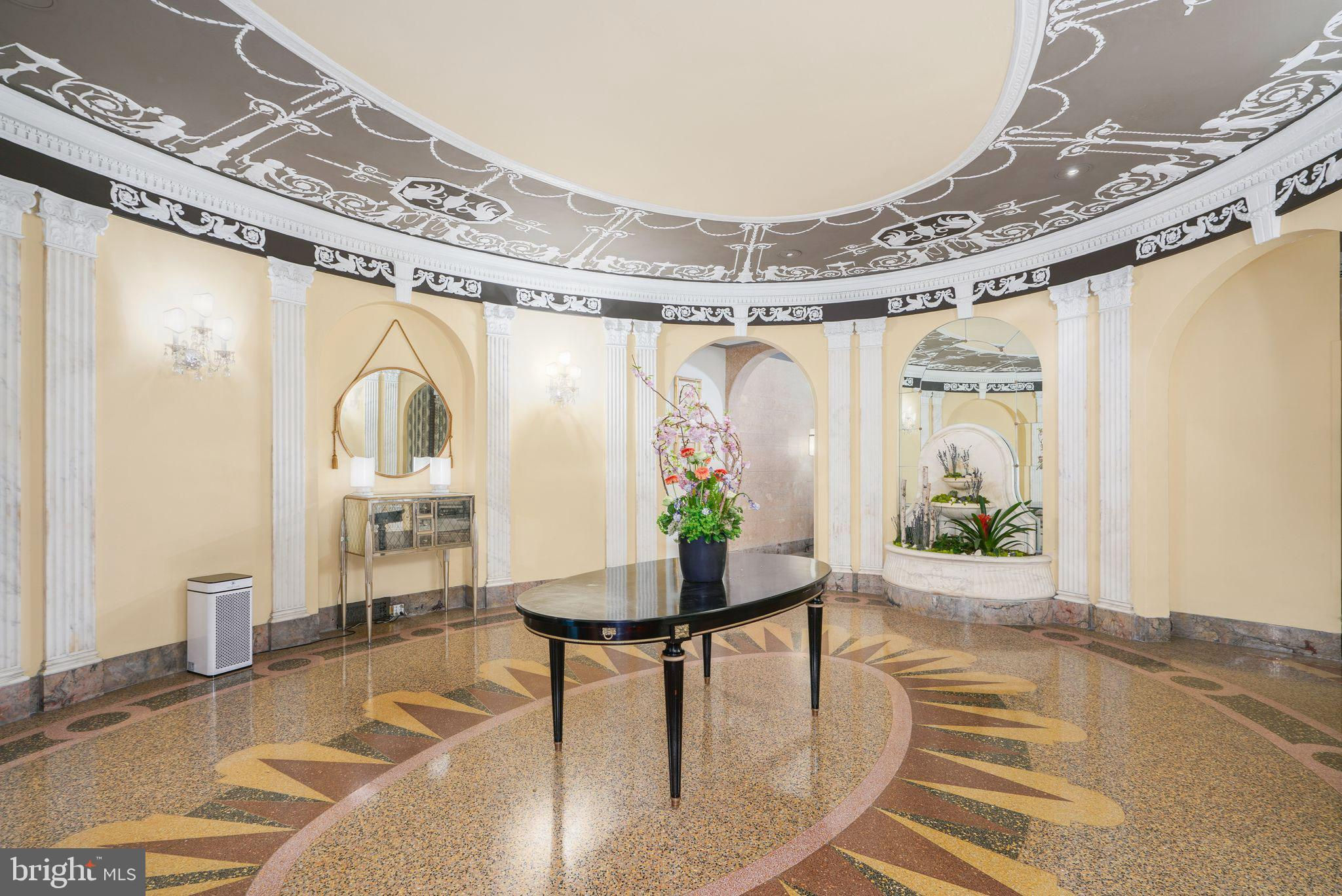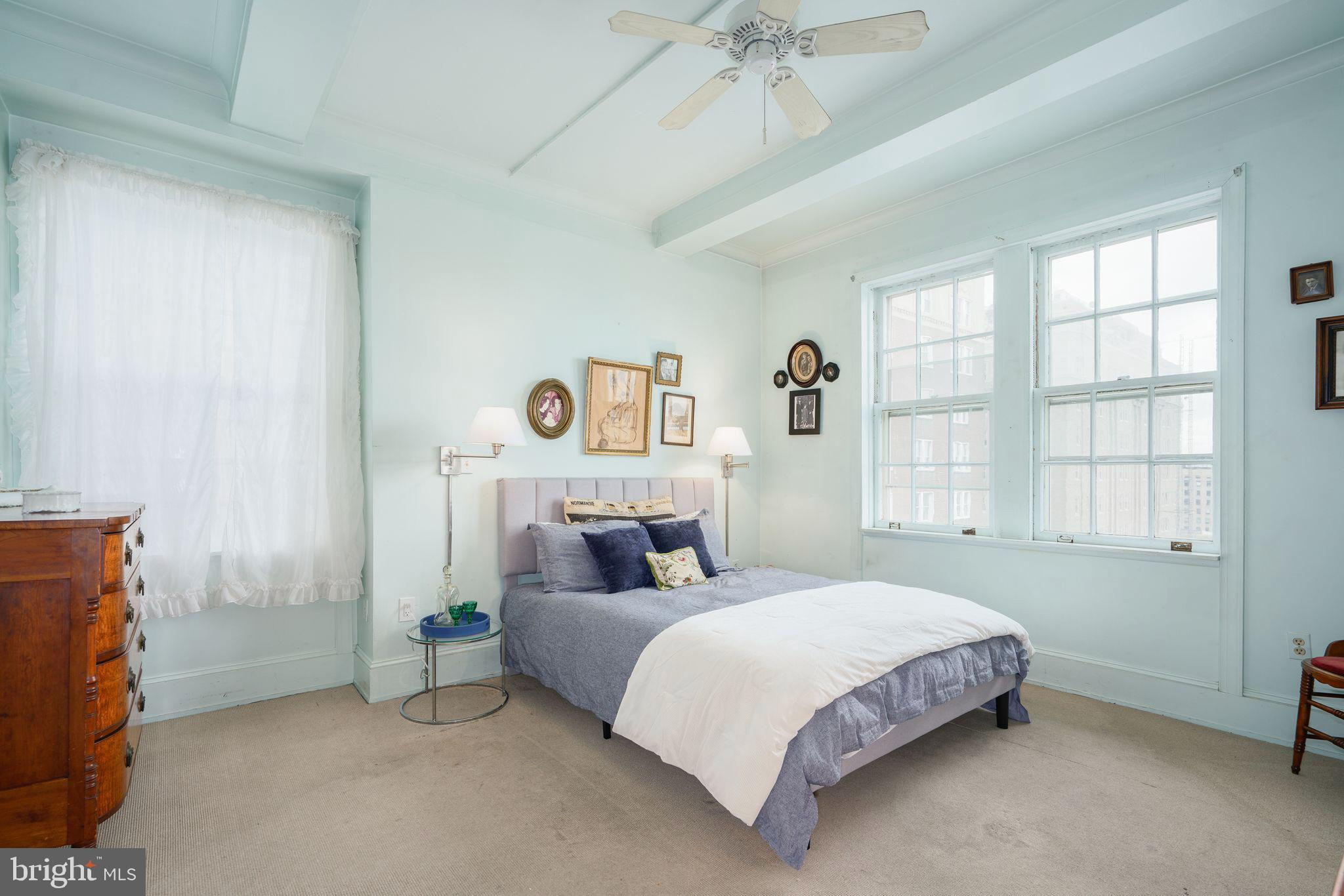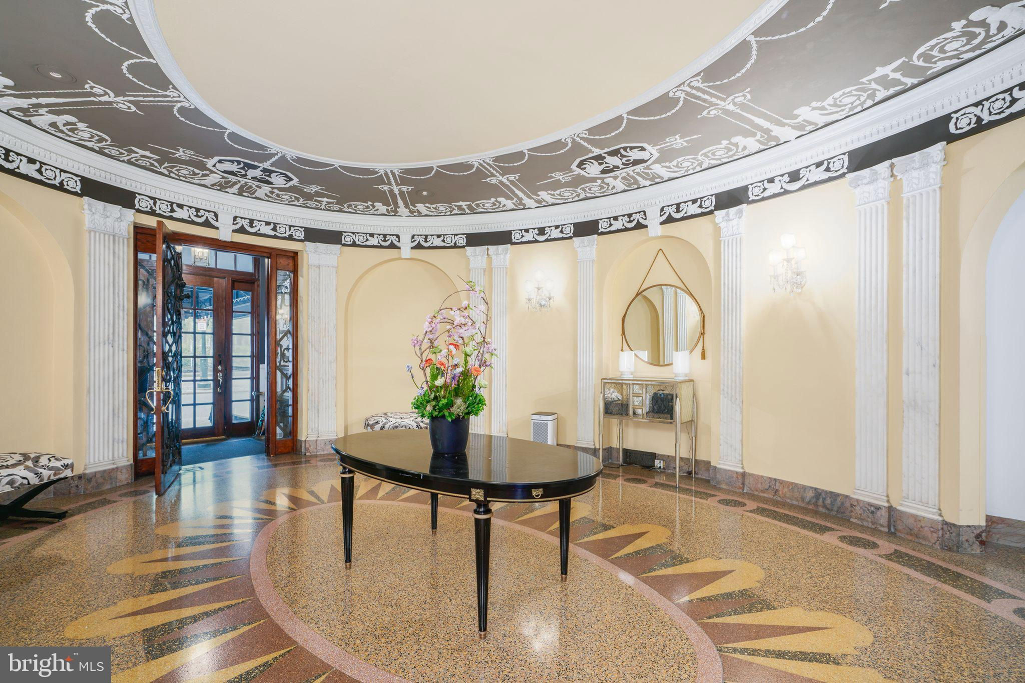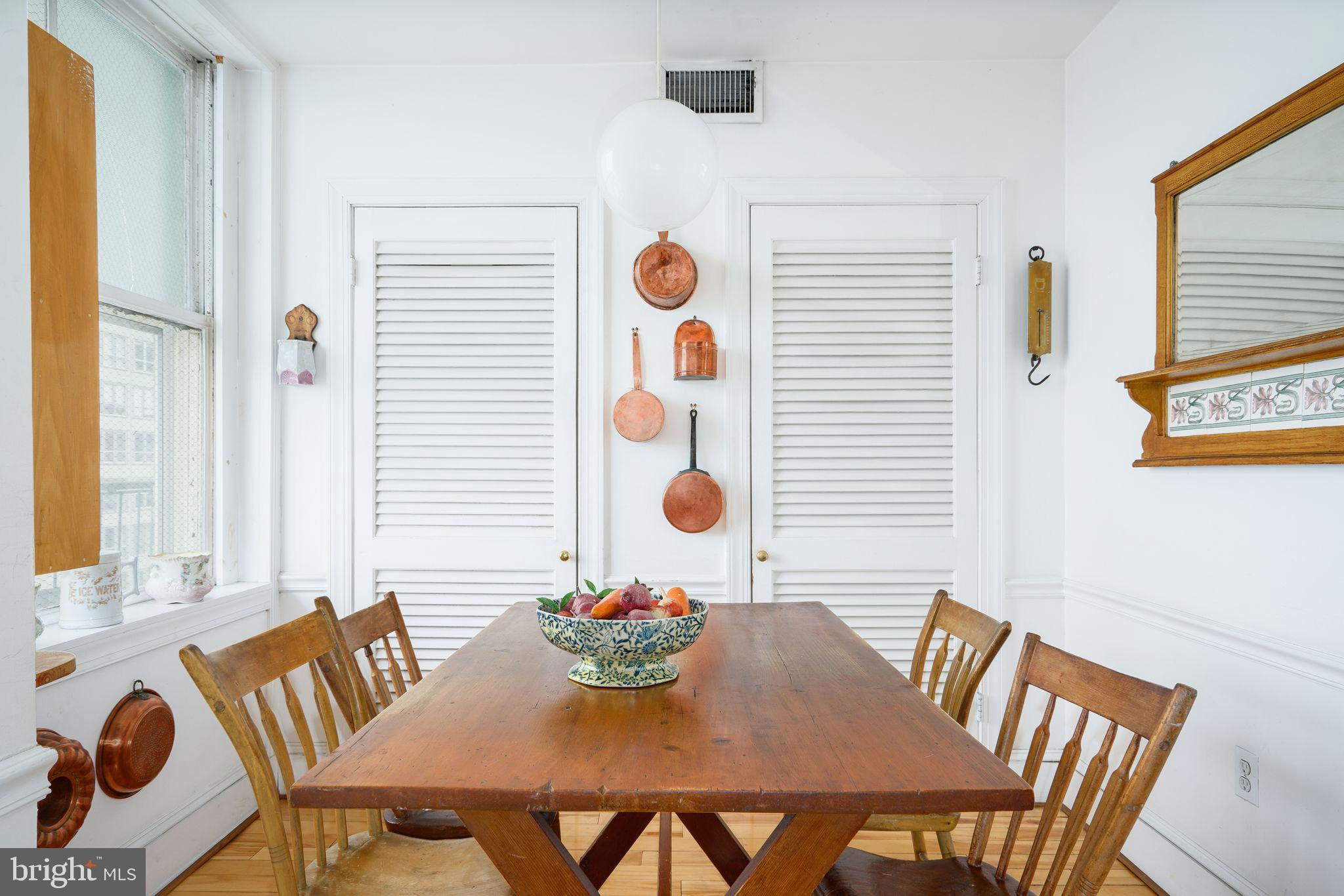 This beautiful 2,197 square foot 12th floor pre-war apartment feels like HOME. Enter pretty foyer with large coat closet, chandelier and marble floors. Spacious and bright living room with herringbone wood floors and crown moulding open to beautifully appointed formal dining room with windows facing South and West. Door to large eat-in-kitchen with ample cabinetry, China closet and door to sunny terrace. Hallway with door to large laundry room and powder room. Primary bedroom suite features sitting room with built-in millwork bookshelves and desk, closet bar and pocket doors to bedroom. Large walk-in-closet and bathroom with stall shower and marble wainscoting. Spacious 2nd bedroom with en-suite bath with marble floor and tiled tub/shower. 1900 Rittenhouse Square is a boutique building with 24-hour doorman, steps from restaurants, shops and all Rittenhouse Square has to offer.