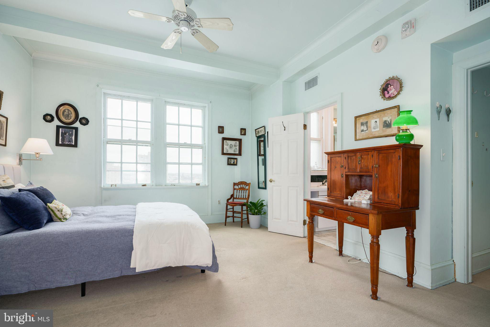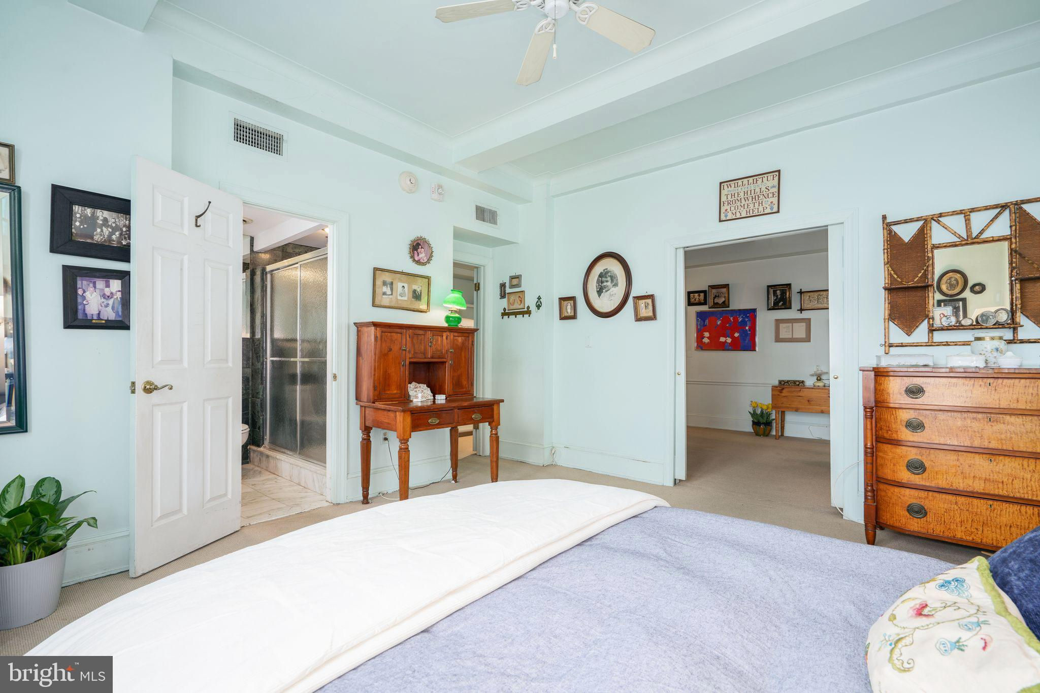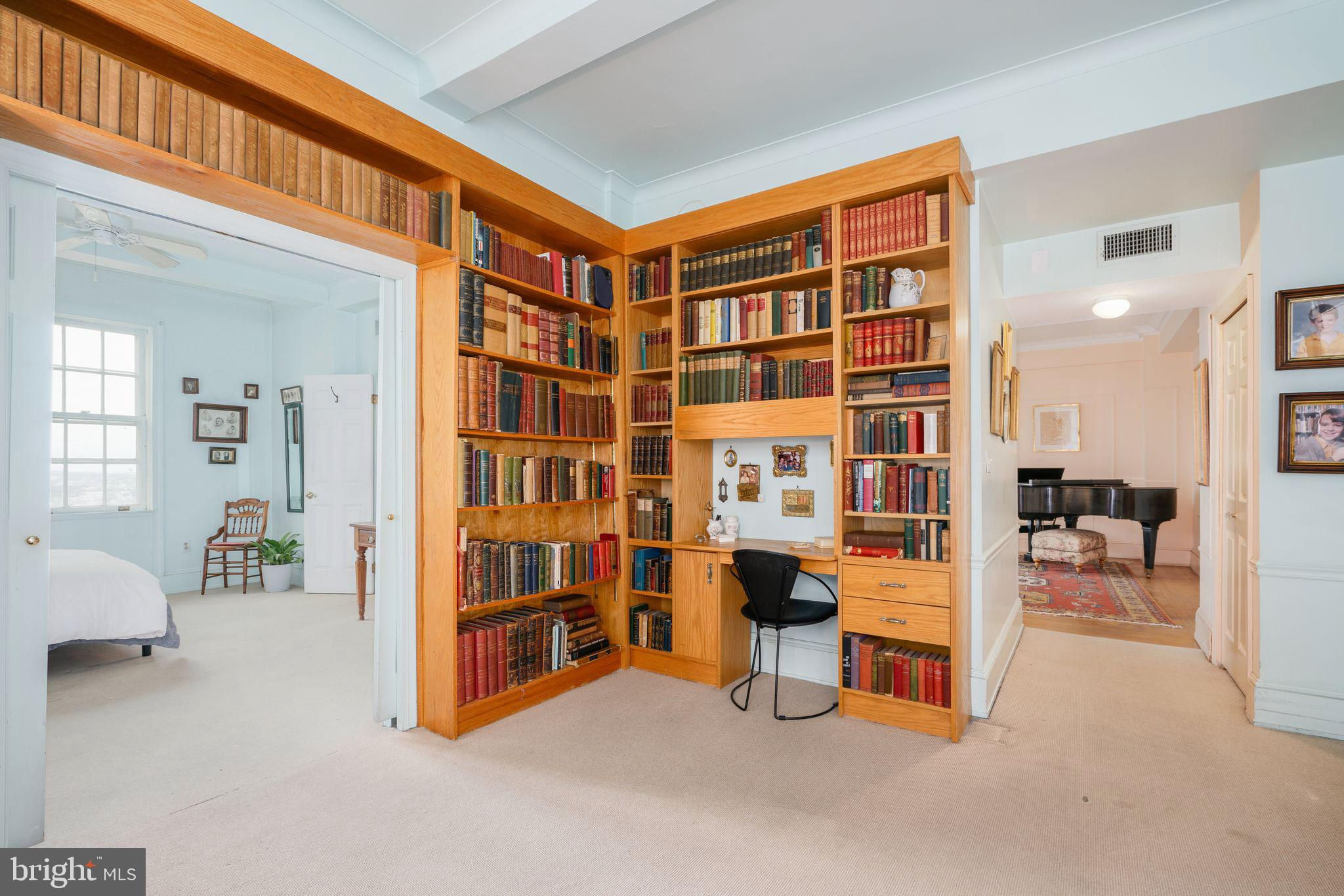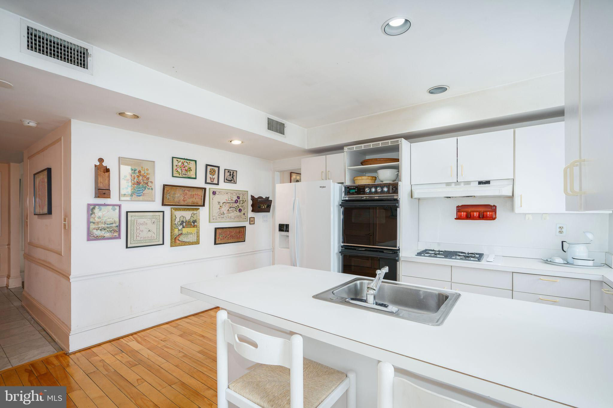 This beautiful 2,197 square foot 12th floor pre-war apartment feels like HOME. Enter pretty foyer with large coat closet, chandelier and marble floors. Spacious and bright living room with herringbone wood floors and crown moulding open to beautifully appointed formal dining room with windows facing South and West. Door to large eat-in-kitchen with ample cabinetry, China closet and door to sunny terrace. Hallway with door to large laundry room and powder room. Primary bedroom suite features sitting room with built-in millwork bookshelves and desk, closet bar and pocket doors to bedroom. Large walk-in-closet and bathroom with stall shower and marble wainscoting. Spacious 2nd bedroom with en-suite bath with marble floor and tiled tub/shower. 1900 Rittenhouse Square is a boutique building with 24-hour doorman, steps from restaurants, shops and all Rittenhouse Square has to offer.