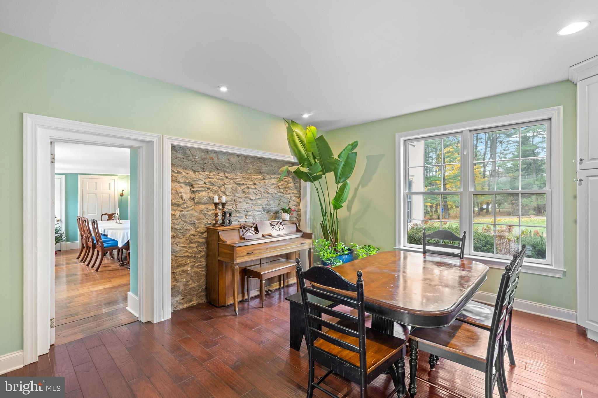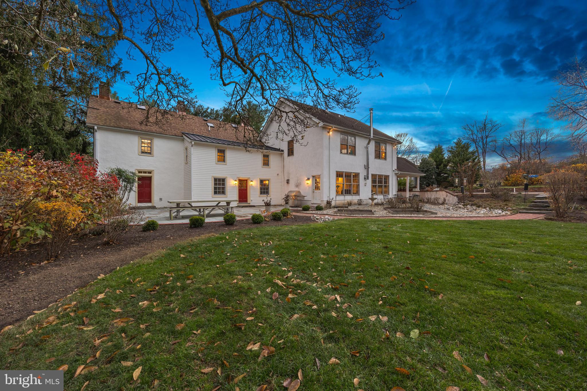 Experience timeless elegance with this stately Chester County farmhouse nestled on over 4.6 acres within the coveted Unionville-Chadds Ford School District. A gated entrance leads you to a classic 1746 stone farmhouse seamlessly enhanced by a 2009 addition, combining historic charm with modern luxury. The original stone farmhouse welcomes you with two distinct entrances: one opening into a living room adorned with deep marble windowsills and a cozy wood-burning fireplace, and the other into an inviting den featuring a brick-surround wood-burning fireplace and a convenient half bath. Adjacent to the den, discover a rustic pub boasting exposed stone walls, a fireplace, a bar, and direct access to a rear patio overlooking perennial tiered gardens, a tranquil fountain, and a sparkling pool—your private oasis. Upstairs, three spacious bedrooms offer scenic countryside views, complemented by a full bath and a large laundry area. The 2009 addition greets you with a charming front porch leading into a front-to-back mudroom, a generous pantry, and a half bath. From here, step out to a patio surrounded by perennial gardens and the inviting inground pool. The mudroom connects to a hallway featuring a full bath and an additional bedroom, flowing into an expansive great room and gourmet kitchen. This space is highlighted by a wood-burning stove, exposed beams, and a striking stone wall. The kitchen is a chef’s dream, equipped with a large island perfect for entertaining, a soapstone farmhouse sink, a 6-burner gas Wolf cooktop, double ovens, a Sub-Zero refrigerator, and two dishwashers. Enjoy casual meals in the cozy breakfast area with stone walls and serene views of the fountain and manicured lawn. The formal dining room in the original section of the house offers an elegant setting for special occasions. Ascend the stairs from the great room to the luxurious primary bedroom suite, complete with a spacious bath, walk-in closet, a sitting area with a gas fireplace, and a private office. A connecting hall with ample closets links back to the stone farmhouse. Outside, the meticulously maintained perennial gardens bloom year-round, complemented by fountains, a pool, a play area, and expansive open spaces for year-round enjoyment. This distinguished farmhouse sits on 4.6 acres offered in its entirety, including two tax parcels. The main house occupies 2.33 acres, while an additional 2.29-acre buildable lot borders 8 acres of open space, presenting exceptional investment potential.
