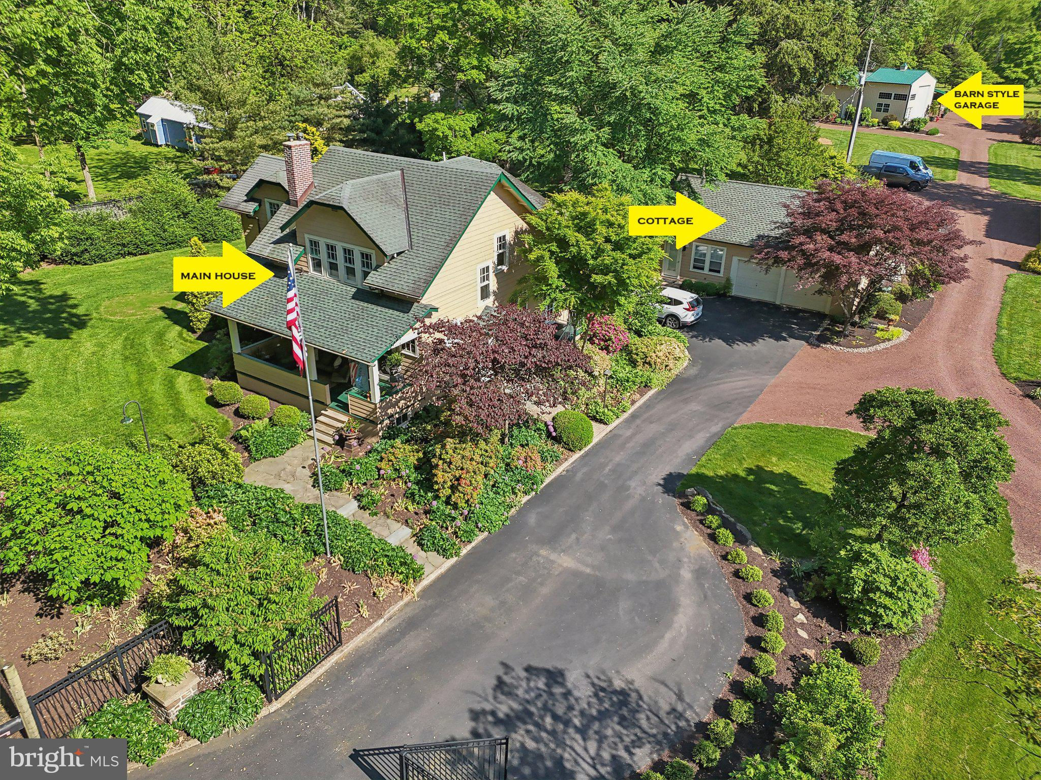 Discover this stunning 6-acre estate in picturesque Bucks County, nestled along the Delaware River and adjacent to D&R Canal State Park with direct access to a 60-mile hiking and biking trail. 1937 River Rd features two distinctive homes, a detached two-car garage with guest cottage, and a standalone, temperature-controlled, barn-style garage with electricity and water, and a covered run-in shed, ideal for horses. Zoned for multigenerational living, commercial opportunities, or creative ventures, this property offers potential rental income or subdivision. The Main House, a meticulously maintained Craftsman Bungalow circa 1930, blends original charm with modern updates. Enter through a covered porch into sunlit, multi-level living spaces boasting seasonal views. French doors lead from the dining room to a spacious deck. The kitchen features custom cabinetry, Quartz countertops, a glass backsplash, and stainless-steel appliances. A full bathroom is conveniently located on the main level. Upstairs, find a primary bedroom with ensuite bath, plus two additional bedrooms and a hall bath. Adjacent to the Main House, the "Garden House" functions as a versatile commercial space with two luxurious guest suites, each equipped with private baths and kitchenettes. The "Garden View" suite showcases a cathedral ceiling, kitchenette, and patio access. Professionally landscaped grounds feature a deer fence, gated entries, and a whole-house generator, enhancing the property's appeal. Conveniently located near Frenchtown, NJ, and equidistant from Easton, PA, and New Hope, PA, with easy access to New York City and Philadelphia. This magnificent property represents true beauty and offers a versatile investment opportunity. Explore the attached video tour to truly experience this exceptional property. Conveniently located near Frenchtown, NJ, and midway between Easton and New Hope, PA, with easy access to New York City and Philadelphia. Property is being marketed as - multi-family - including two parcels - 03-003-188-001 and commercial 03-003-188-002. Commercial is also being marketed as Commercial for Sale and can be sold individually - PABU2073388