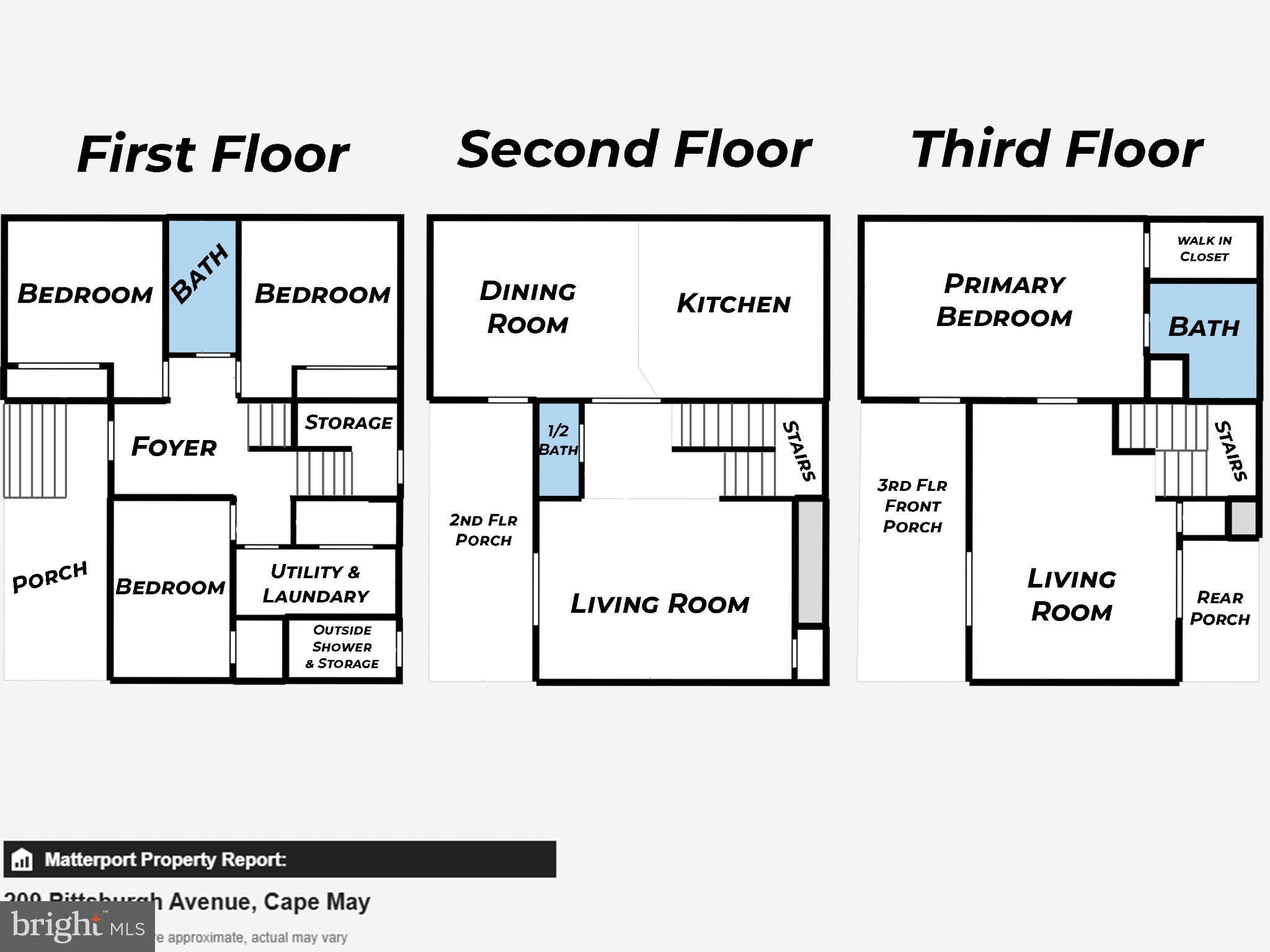 Welcome to 209 Pittsburgh Avenue, located in the esteemed eastern part of Cape May. This exceptional property is a mere two blocks from Cape May’s renowned beaches and boasts the unique advantage of no rear neighbors. This three-story residence offers a total of four bedrooms, two-and-a-half bathrooms, and a total of four covered porches. Situated on a generously sized 60’ x 125’ lot, the home encompasses approximately 2,604 square feet of meticulously designed living space. Upon arrival, a thoughtfully designed, wide U-shaped driveway provides efficient off-street parking for multiple vehicles. Entering the home via the main entrance on the first-level porch, you are greeted by an inviting foyer. This level features three spacious bedrooms, a full bathroom, a dedicated laundry room with a utility closet, and a convenient rear entryway with additional storage beneath the staircase. Ascending to the second level, you'll discover the main living space, showcasing an open floor plan that seamlessly connects the living room, a large dining room, and kitchen. The living room is enhanced by a gas fireplace, a storage closet, and a sliding glass door leading to a covered porch. A conveniently located half bathroom is situated between the living and dining areas. The fully equipped kitchen is efficiently designed, ready to inspire any culinary enthusiast in crafting elegant meals. The third level of 209 Pittsburgh Avenue is dedicated entirely to the private primary suite. The third floor opens to a second spacious living room that gives access to both a front deck and back deck overlooking the scenic open space. This expansive retreat includes a large master bedroom, a full bathroom and a generous walk in closet. Outside, the property features a built-in, covered outdoor shower in the backyard, large enough to include storage of gardening and beach accessories. Alongside this, you'll find an open grass area in both the rear and side yards. This versatile outdoor space presents a blank canvas, offering the opportunity to personalize the landscaping to your exact vision. Built on pilings, 209 Pittsburgh Avenue also features a hurricane rated roof. This property has been meticulously cared for by the same owners since its construction and has never been used as a rental property. The sale includes the furniture, with the exception of a few select items and personal belongings. Its well-conceived interior floor plan, multiple porches, and close proximity to the beach make it an ideal location for both personal enjoyment and as a sound investment. Discover the unique investment potential of this property in Cape May, a town celebrated for its year-round appeal and status as a top U.S. travel destination. While most Jersey Shore towns see visitors only in the summer, Cape May's vibrant spring, autumn, and holiday seasons attract a steady flow of guests, meaning there's no true "off-season." This home is perfectly positioned to capitalize on that consistent demand, with a detailed short-term rental income estimate based on the property's existing layout and appeal. Peak summer weeks can command up to $6,200, spring and fall weeks up to $3,800, and winter weeks up to $2,300. Additionally, nightly stay options from mid-September through mid-May can offer flexibility for weekend travelers. This home is ready for its first short-term rental venture, giving you the rare opportunity to customize the guest experience from scratch. Disclaimer: The rental figures provided are estimates and do not guarantee future income. Market conditions can change, and buyers should consult with a professional to assess the property's full potential.