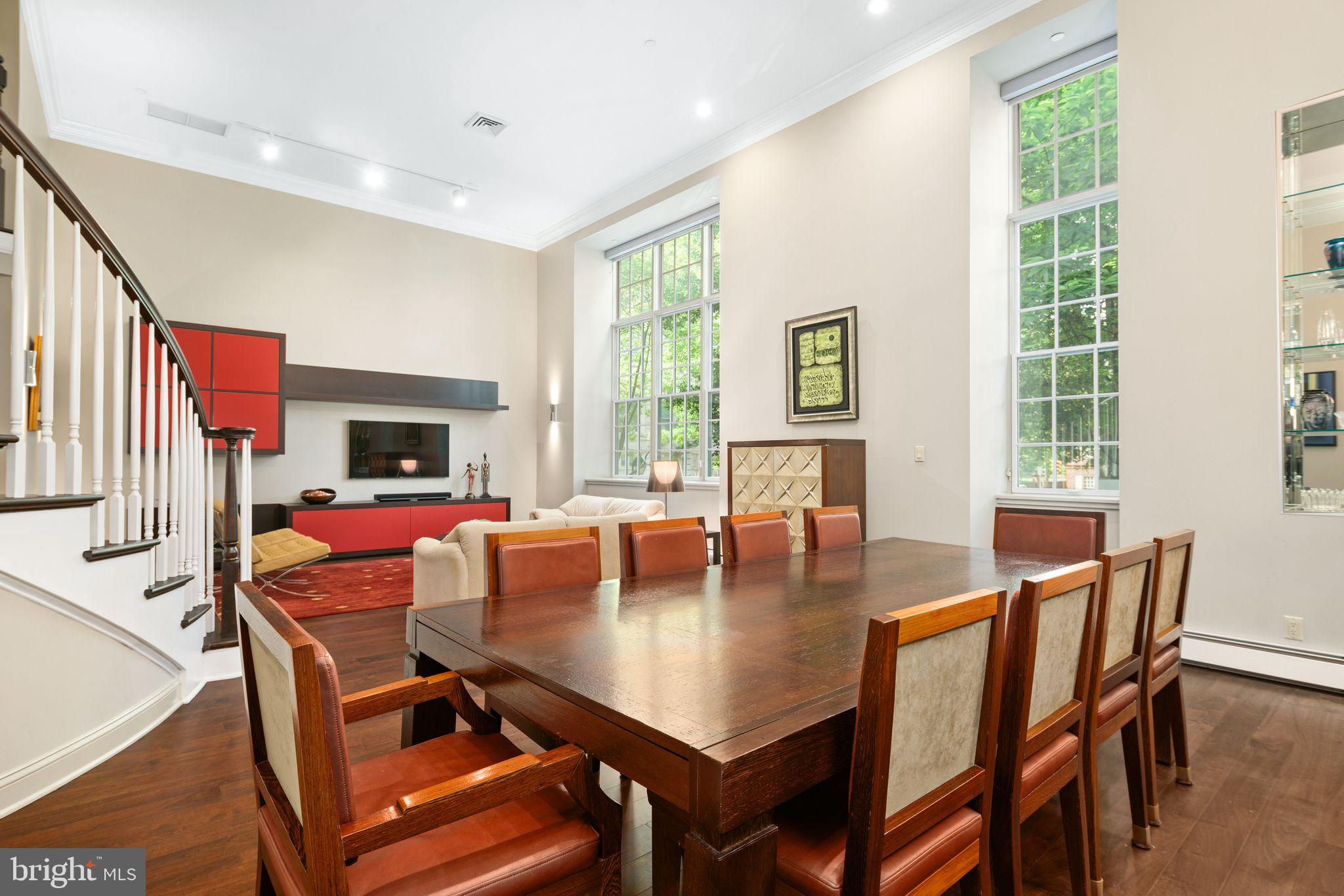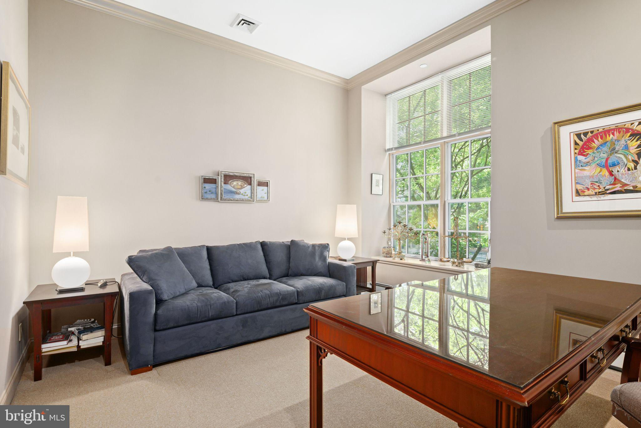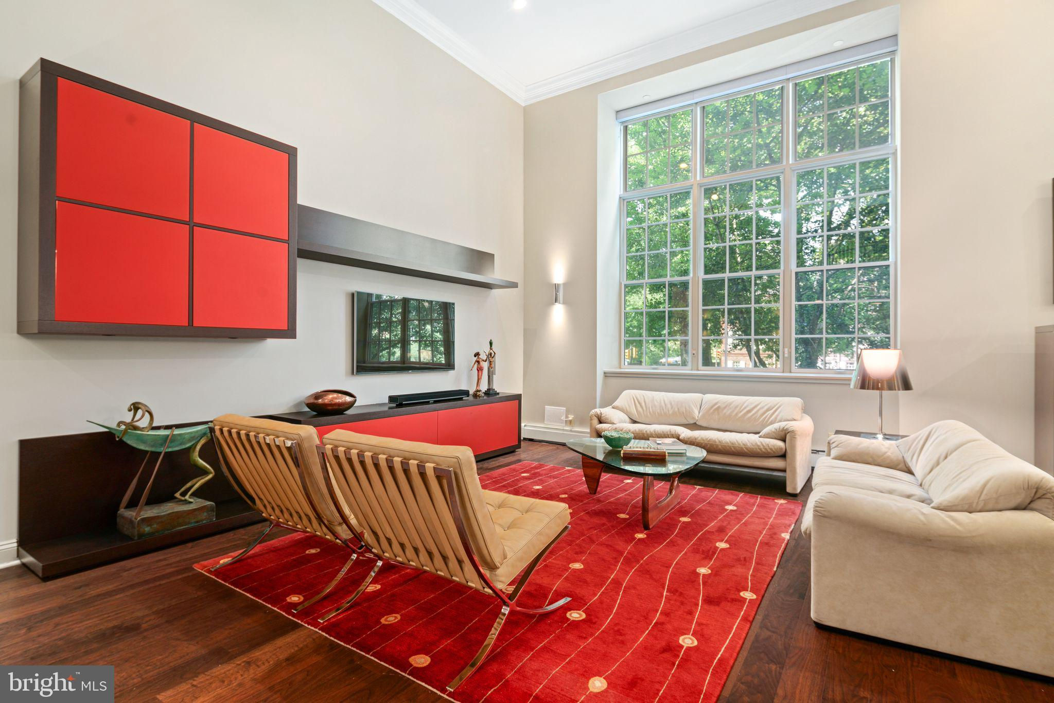 Experience luxurious living in Unit 105, also known as the Buford Manor, the largest of the 23 exclusive units in this distinguished building - The Willings at Independence Park. Nestled in the heart of Philadelphia's most prestigious area, Society Hill, this residence offers the charm and privacy of a town home with the convenience and peace of mind of condominium living. From the moment you enter the Buford Manor, you are greeted by an inviting space that perfectly balances luxury and practicality. A modern chandelier hangs prominently in the foyer, and 3 rooms are located here behind doors designed to blend seamlessly within the foyer. These rooms are a dual coat closet/pantry combination, laundry room, and powder room - setting the stage for functionality that awaits within the rest of the home. Three Bedrooms, 2.5 Bathrooms are located on the lower level, ensuring a private and serene sleeping area. The primary en-suite is equipped with 2 walk-in closets, and adjacent 4-piece bathroom with dual vanity sinks. Flex Space on the upper level can serve as a den or a fourth bedroom, complete with its own bathroom and walk-in closet, perfect for guests or additional living space. Step into a grand and inviting family room, where soaring 14-foot ceilings and a stunning triple bay window create a bright, airy, and sophisticated space perfect for relaxation and entertaining. Crown molding and custom trim add a touch of elegance, drawing the eye upwards and accentuating the room's grandeur. Indulge in culinary excellence in this exquisitely designed gourmet eat-in kitchen, featuring top-of-the-line Wolf and Sub-Zero appliances. This luxurious kitchen seamlessly blends high functionality with elegant aesthetics, making it the heart of the home. The layout was designed for optimal workflow between the refrigerator, range and sink (work triangle) and even has insta-hot water! Elegant, mirrored backsplash adds visual interest and a cohesive design element. An open concept dining area connects effortlessly with the adjacent living and kitchen spaces. Built-in glass shelving niches anchor the dining space, with mirrored backs and crown lighting, provide a stylish way to display decorative items, fine china, or glassware, enhancing the room's visual appeal. There is an evident lighting scheme, as recessed lights and sconces carry throughout the periphery of the unit, highlighting different living areas. Architectural elegance is evident throughout 105, as large Palladian windows are a defining feature, characterized by their grand arched design and classical proportions, bringing a timeless aesthetic to the unit. The half butterfly staircase is a stunning centerpiece, featuring graceful, sweeping curves that evoke the wing of a butterfly, creating a dramatic and elegant visual impact. New HVAC system! Climate controlled storage unit is INCLUDED, and DEEDED GARAGE PARKING SPOT #5 is INCLUDED! This is a rare opportunity to own one of just twenty-three magnificently appointed residences! Broadway level theaters, world-renowned museums, five-star restaurants are all within walking distance from your front doorstep. Strong construction, ornate historic detail (from the late 1800s), accommodating concierge staff and 24-hour doormen is just the beginning of life here. The Willings can allow you to live the life you were always meant to. The staff at the Willings cater to each and every resident special needs and requests, and there is also an on-site manager. For the history enthusiasts, The Willings is actually the home to the largest concentration of original 18th and early 19th century architecture of any area in the United States. The Willings was the original headquarters for the Reading Railroad in 1871 (yes, the Monopoly property), and is named after Thomas Willings, who at the time was one of the wealthiest men in the country. The Willings borders the beautiful courtyard of Old Saint Joseph's Church, built in 1839.