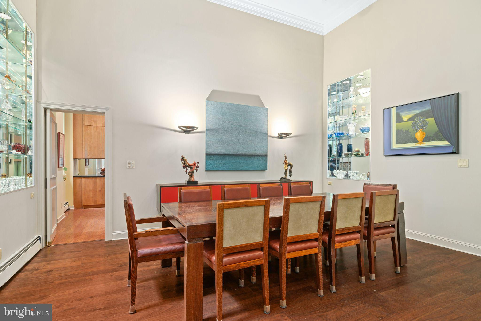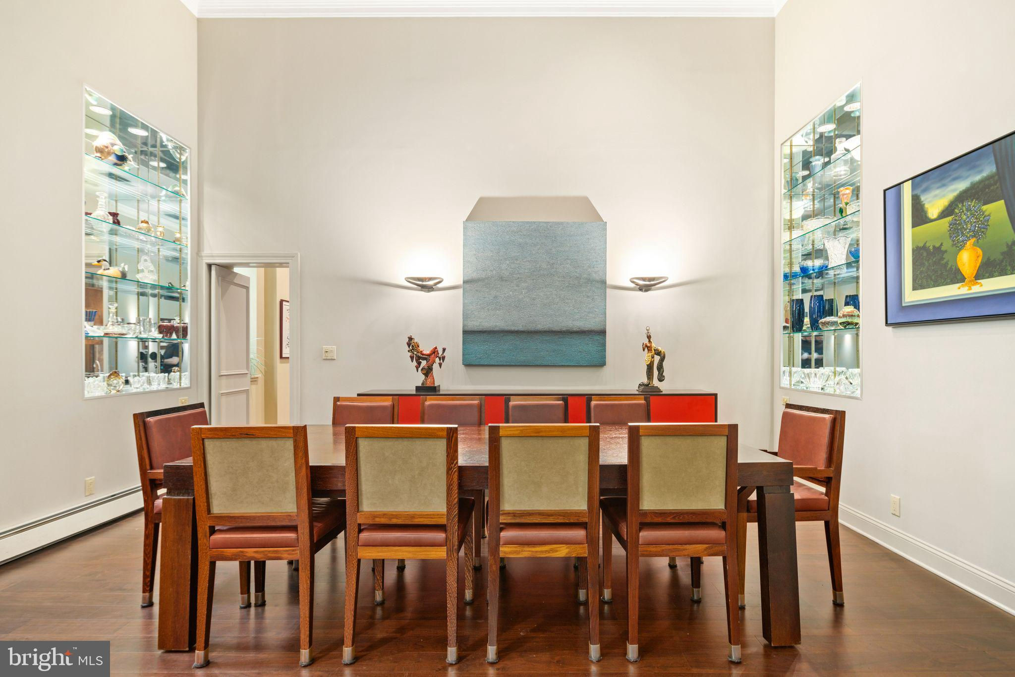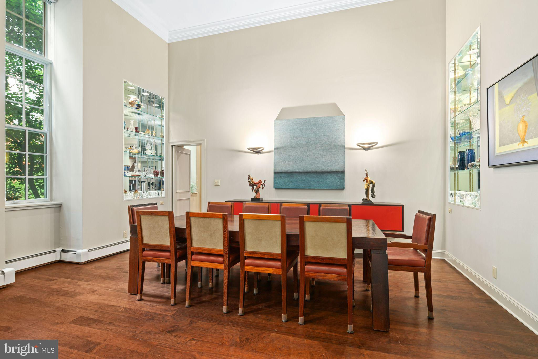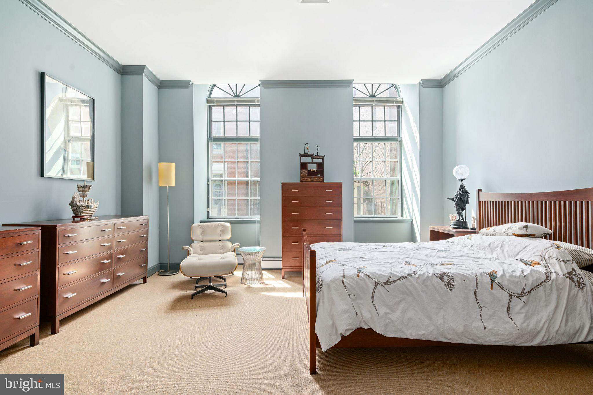 Experience luxurious living in Unit 105, also known as the Buford Manor, the largest of the 23 exclusive units in this distinguished building - The Willings at Independence Park. Nestled in the heart of Philadelphia's most prestigious area, Society Hill, this residence offers the charm and privacy of a town home with the convenience and peace of mind of condominium living. From the moment you enter the Buford Manor, you are greeted by an inviting space that perfectly balances luxury and practicality. A modern chandelier hangs prominently in the foyer, and 3 rooms are located here behind doors designed to blend seamlessly within the foyer. These rooms are a dual coat closet/pantry combination, laundry room, and powder room - setting the stage for functionality that awaits within the rest of the home. Three Bedrooms, 2.5 Bathrooms are located on the lower level, ensuring a private and serene sleeping area. The primary en-suite is equipped with 2 walk-in closets, and adjacent 4-piece bathroom with dual vanity sinks. Flex Space on the upper level can serve as a den or a fourth bedroom, complete with its own bathroom and walk-in closet, perfect for guests or additional living space. Step into a grand and inviting family room, where soaring 14-foot ceilings and a stunning triple bay window create a bright, airy, and sophisticated space perfect for relaxation and entertaining. Crown molding and custom trim add a touch of elegance, drawing the eye upwards and accentuating the room's grandeur. Indulge in culinary excellence in this exquisitely designed gourmet eat-in kitchen, featuring top-of-the-line Wolf and Sub-Zero appliances. This luxurious kitchen seamlessly blends high functionality with elegant aesthetics, making it the heart of the home. The layout was designed for optimal workflow between the refrigerator, range and sink (work triangle) and even has insta-hot water! Elegant, mirrored backsplash adds visual interest and a cohesive design element. An open concept dining area connects effortlessly with the adjacent living and kitchen spaces. Built-in glass shelving niches anchor the dining space, with mirrored backs and crown lighting, provide a stylish way to display decorative items, fine china, or glassware, enhancing the room's visual appeal. There is an evident lighting scheme, as recessed lights and sconces carry throughout the periphery of the unit, highlighting different living areas. Architectural elegance is evident throughout 105, as large Palladian windows are a defining feature, characterized by their grand arched design and classical proportions, bringing a timeless aesthetic to the unit. The half butterfly staircase is a stunning centerpiece, featuring graceful, sweeping curves that evoke the wing of a butterfly, creating a dramatic and elegant visual impact. New HVAC system! Climate controlled storage unit is INCLUDED, and DEEDED GARAGE PARKING SPOT #5 is INCLUDED! This is a rare opportunity to own one of just twenty-three magnificently appointed residences! Broadway level theaters, world-renowned museums, five-star restaurants are all within walking distance from your front doorstep. Strong construction, ornate historic detail (from the late 1800s), accommodating concierge staff and 24-hour doormen is just the beginning of life here. The Willings can allow you to live the life you were always meant to. The staff at the Willings cater to each and every resident special needs and requests, and there is also an on-site manager. For the history enthusiasts, The Willings is actually the home to the largest concentration of original 18th and early 19th century architecture of any area in the United States. The Willings was the original headquarters for the Reading Railroad in 1871 (yes, the Monopoly property), and is named after Thomas Willings, who at the time was one of the wealthiest men in the country. The Willings borders the beautiful courtyard of Old Saint Joseph's Church, built in 1839.