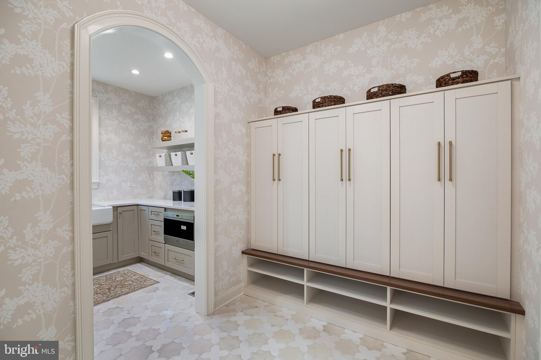211 Wooded WayA timeless Georgetown Classic reimagined for modern living, 211 Wooded Way blends East Coast elegance with refined craftsmanship. Every detail reflects thoughtful design—from bespoke millwork and custom cabinetry to a gourmet kitchen anchored by a statement dairy-table island.The adjoining scullery and butler’s pantry, layered with a neutral floral wallpaper and warm brass accents, elevate everyday function to an art form—the butler’s pantry itself a striking design moment in rich, moody tones. The main-level powder room introduces a warm green, adding a subtle hint of color that complements the home’s warm, layered palette.Throughout, curated lighting and rich finishes create a sense of depth and quiet sophistication. Upstairs, the owner’s suite offers a serene retreat with soft neutral tones, abundant natural light, and a custom built-in makeup vanity that blends beauty and function. A spa-inspired bath and thoughtful architectural details complete the space. Additional flex areas, a finished lower level, and beautifully layered textures throughout complete this one-of-a-kind Main Line residence—where tradition meets tailored luxury.