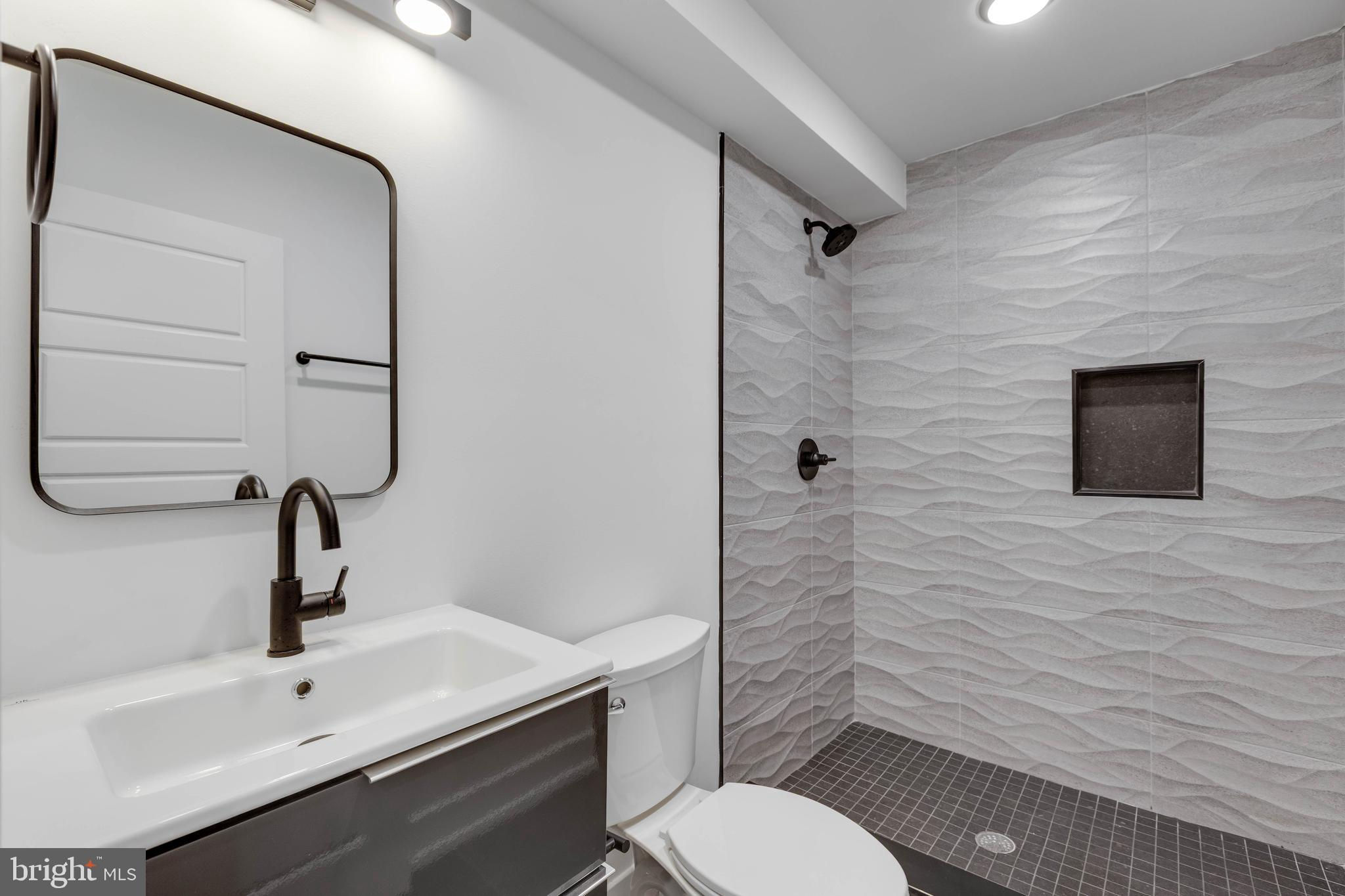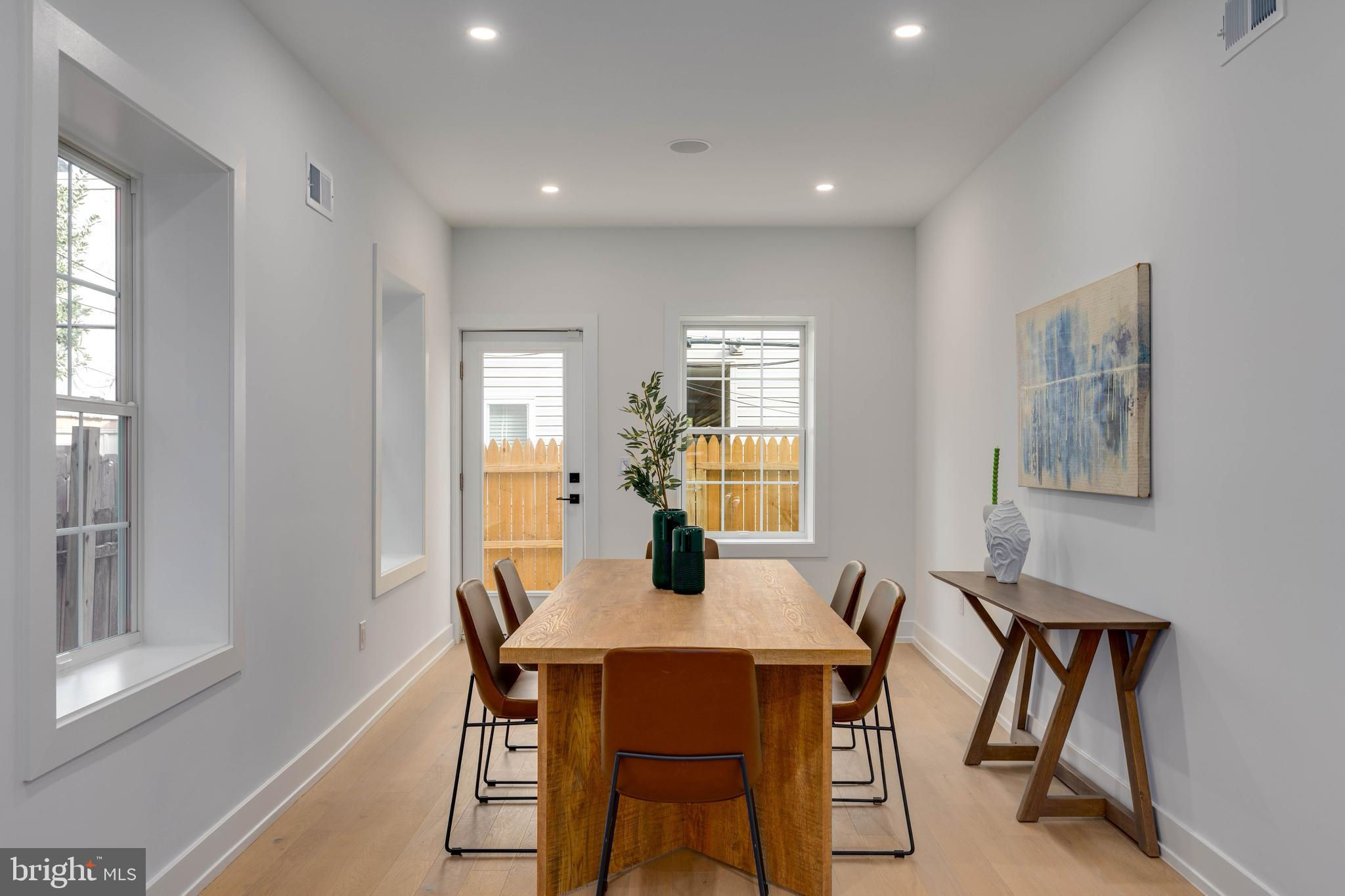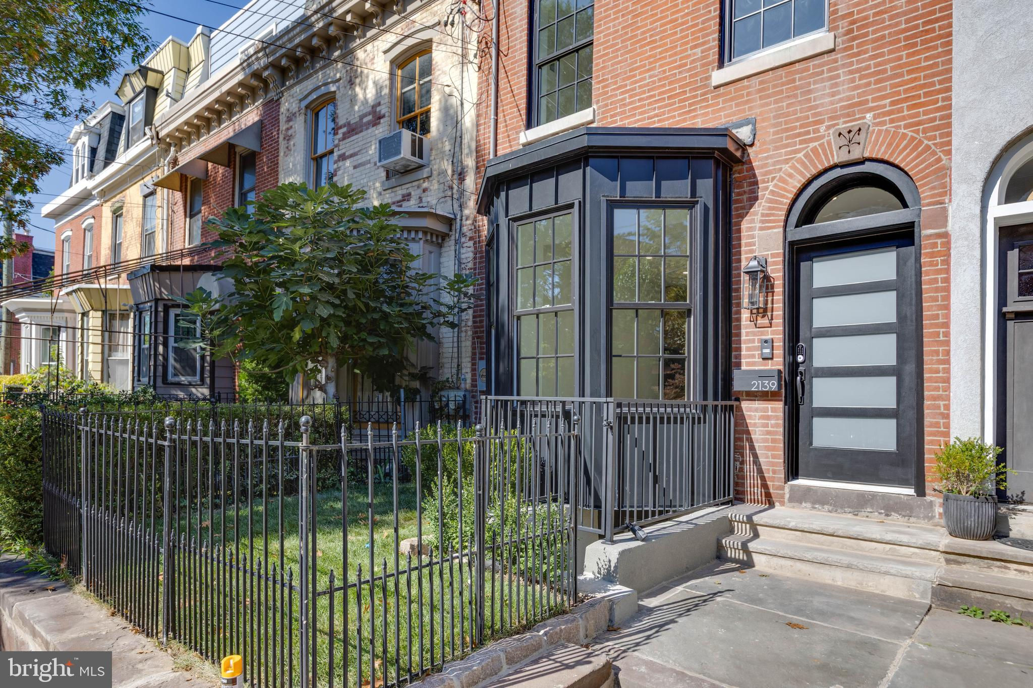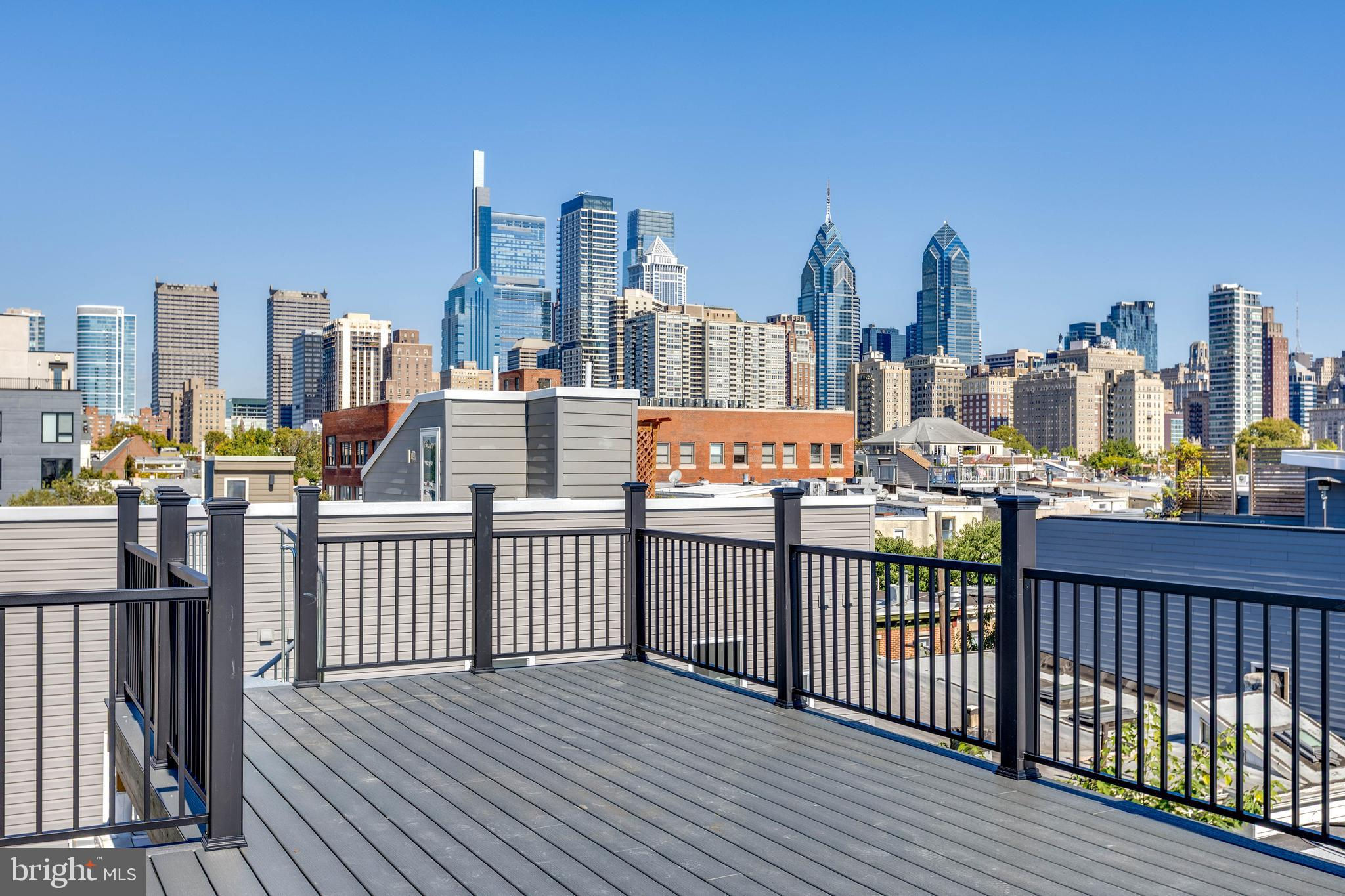 Welcome to 2139 Bainbridge Street, a stunning full gut renovation in the highly sought-after Fitler Square neighborhood, complete with a 10-year tax abatement. This 3-bedroom, 4-bath home blends timeless charm with modern luxury and thoughtful design. The inviting exterior features a large bay window and a cozy fenced-in front yard with grass, setting the tone for what awaits inside. Step through the front door into a bright, open-concept main floor with white oak hardwood flooring throughout. The sleek and modern kitchen boasts warm wood-tone cabinetry, slate-colored granite countertops, and access to a private fenced-in rear yard. The fully finished basement offers tiled flooring and a full bathroom. On the second floor, the primary suite sits at the front of the home, featuring custom his-and-hers closets and a spa-inspired en suite bathroom with a double vanity, rainfall and handheld sprayers, and all Porcelanosa fixtures with Kohler Purist faucets. A bonus room is located at the rear of this level, offering flexibility as a den or office. The third floor hosts two additional bedrooms. The front bedroom includes a custom closet, while the rear bedroom opens to a private balcony and provides access to the roof deck via a spiral staircase. A full hallway bathroom serves both bedrooms. Enjoy breathtaking city skyline views from the expansive roof deck — the perfect spot for evening gatherings or quiet relaxation. Additional highlights include bluetooth speakers throughout, Nest thermostats, and a dual HVAC system for optimal comfort and efficiency. Located on one of Fitler Square’s most desirable blocks, this home offers a rare opportunity to enjoy luxury living just steps from Fitler Square Park, the Schuylkill River Trail, and an array of shops, restaurants, and cafes. With its thoughtful layout, premium finishes, and unbeatable location, this home is truly a gem.