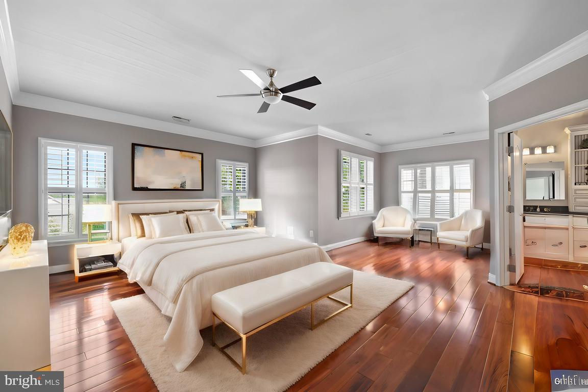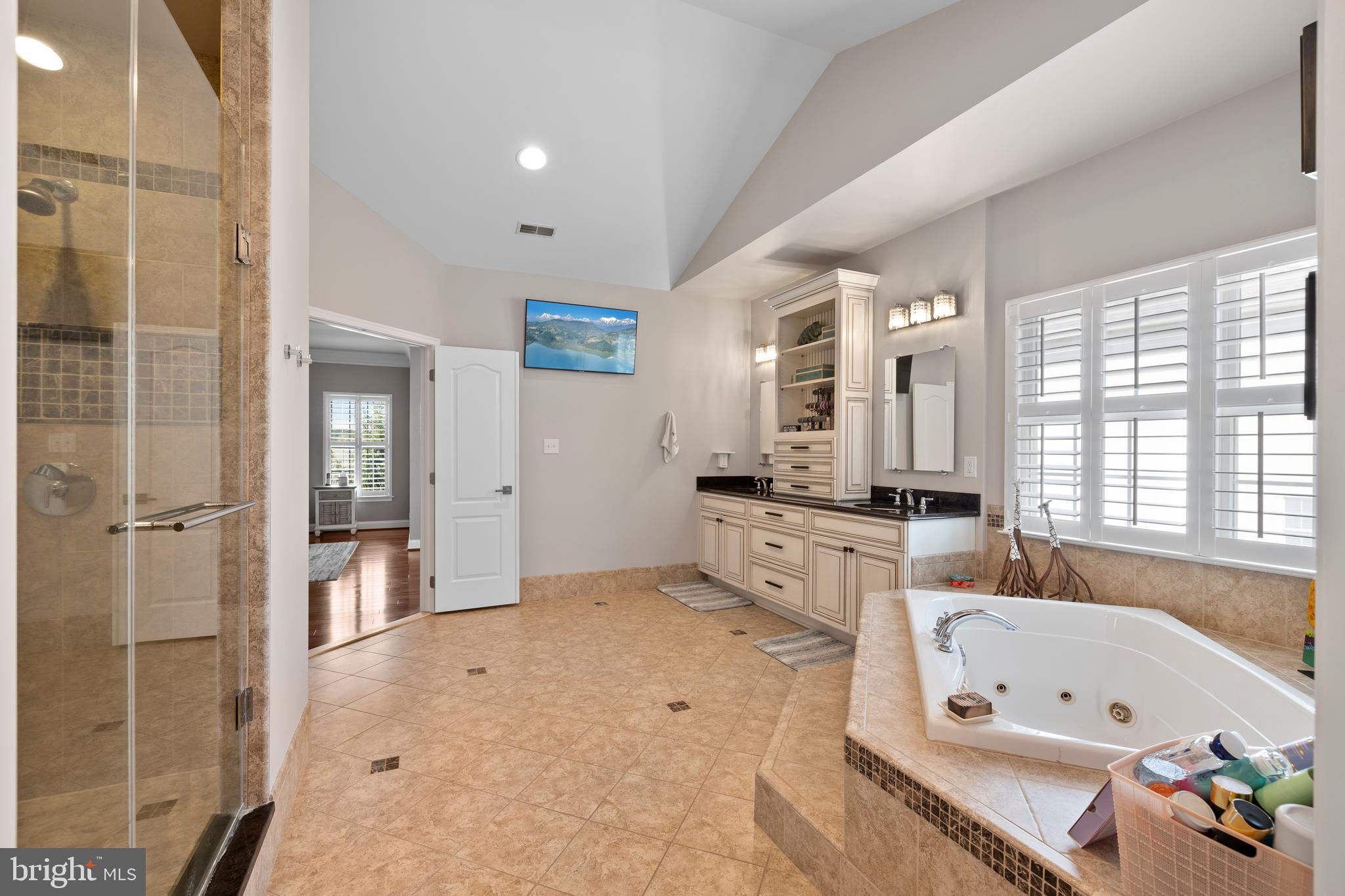 Welcome to 21902 Manor Crest Ln, the crown jewel of this exclusive Toll Brothers community, where unparalleled detail meets meticulous craftsmanship. This all-brick masterpiece, one of the largest homes in the subdivision, offers over 7,000 square feet, enhanced by the finest upgrades & thoughtful customizations. As you enter, the grand foyers' symphony chandelier, gleaming hardwood floors, & custom plantation shutters create a captivating first impression. The expansive floor plan is thoughtfully designed, with each room seamlessly flowing into the next. The main level is perfect for both formal & casual living, featuring an oversized formal dining room, a versatile formal living or sitting room, & a dedicated office that can also serve as an additional guest or au pair suite. The spacious casual living room flows seamlessly into a charming breakfast nook off the kitchen. This level is complete with a convenient half bathroom, a 3-season sunroom, a separate laundry room, & access to an unfinished basement ready for customization. The gourmet kitchen is a chef’s dream, featuring a large island, custom cabinetry, stainless steel appliances including a dual oven, & a discreet butler’s pantry. The adjacent living room, with its vaulted ceiling & oversized windows, invites natural light to flood the space, highlighting the wood-burning, stone-surround fireplace & the 85” mounted Sony 4K television, which conveys to the new owner. The primary suite is a true retreat, offering an expansive bedroom & a spa-like bathroom with dual sinks, custom vanities, a jetted soaking tub, a private dry sauna, a walk-in shower with dual shower heads, a private water room, & an oversized custom walk-in closet. The dual staircases offer effortless access to the second level, where three additional bedrooms await. The secondary bedroom boasts a beautifully renovated en-suite bathroom with a sleek standing shower. The other two spacious bedrooms share a well-appointed hallway bathroom. The unfinished basement offers endless possibilities with its expansive footprint & impressive 9-foot ceilings. The rough-in for a full bathroom & generous square footage make it possible to add multiple bedrooms, a full bathroom, a spacious living area, a state-of-the-art theater room, & ample storage. Whether you envision a luxurious guest suite, a home gym, or an entertainment hub, this basement can accommodate it all. The exterior includes a spacious 3-car garage with ample storage & an additional refrigerator that conveys with the property. Ample surface parking is available for additional vehicles or guests. The enormous 7-inch concrete driveway features extensive water management systems for efficient drainage. At the rear, you'll find a large vinyl deck, a fully wired outdoor audio system, & dual stone patios ideal for both intimate gatherings & grand entertaining. The professionally landscaped grounds with hard-wired perimeter lighting & a beautiful fountain at the front offer a serene atmosphere & exceptional curb appeal. This home is equipped with recently updated major systems, ensuring peace of mind & long-term efficiency. The HVAC system serving the basement & main level was replaced in 2022, while a newer heat pump from 2021 provides climate control for the upper level. The water heater, approximately five years old, offers reliable hot water throughout the home. Additionally, a radon mitigation system & central vacuum are in place, further enhancing the safety & air quality of the property. This home also includes ten professionally monitored 360-degree audio/visual security cameras, a glass break detector, state-of-the-art smoke detectors, & hard-wired perimeter lighting- owned & will be transferred to the new owner for enhanced safety & peace of mind. Located in a highly desirable subdivision, this estate offers easy access to top-rated schools, premium shopping at Clarksburg Outlets, & major commuter routes, including I-270 & ICC Route 200.