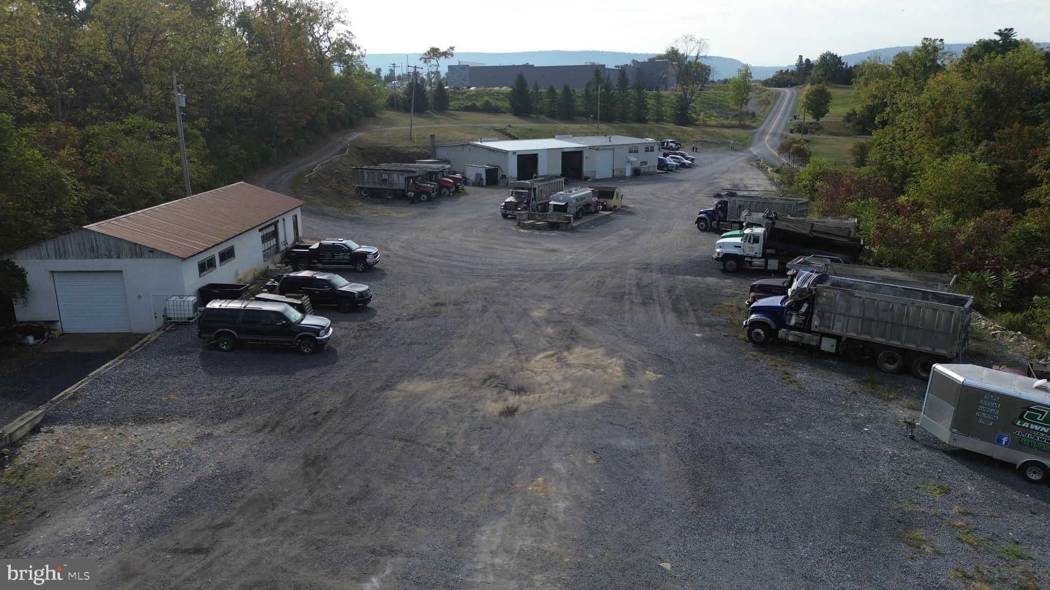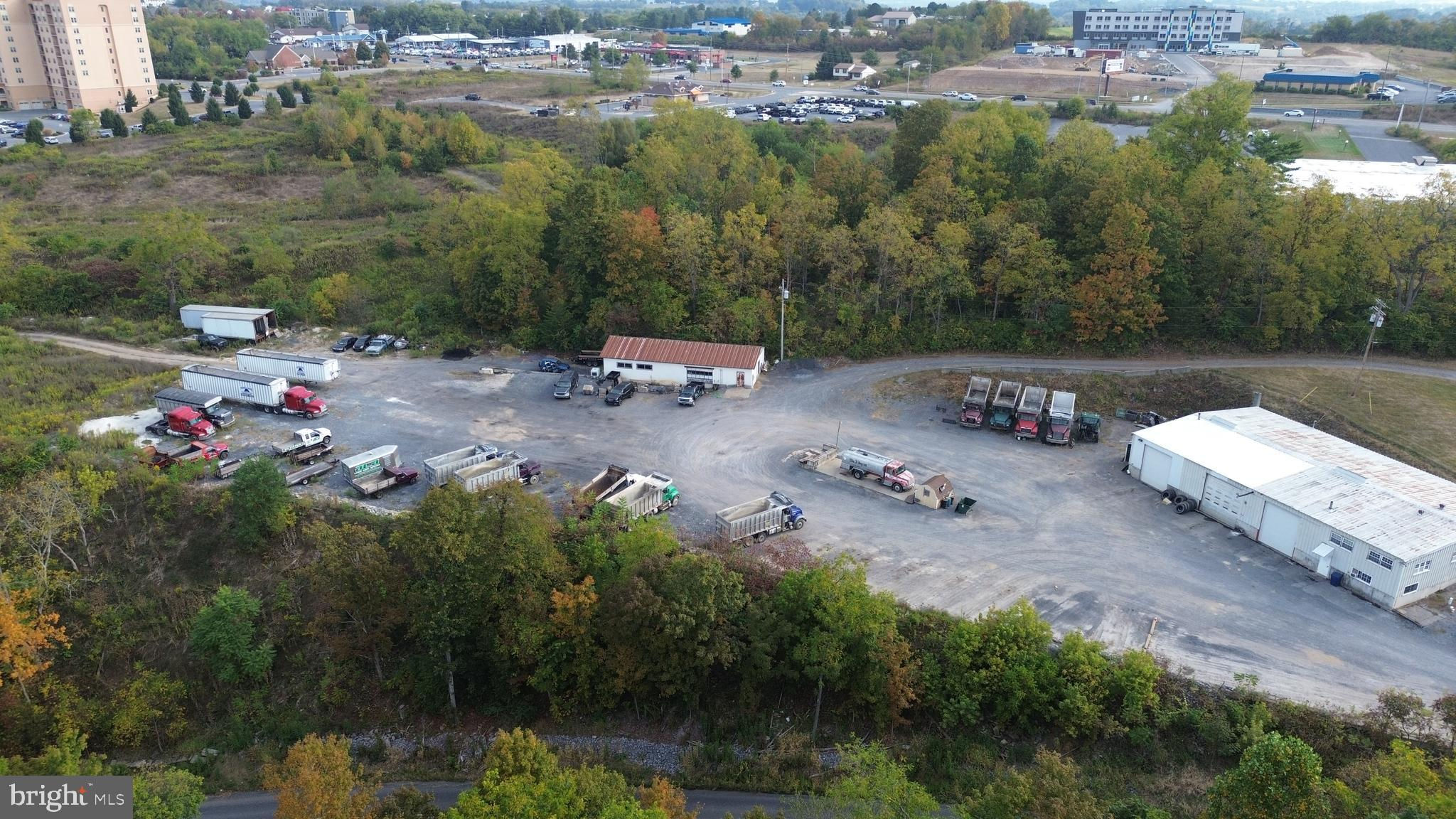 11 acres of prime commercial land located on Paradise Road, Bellefonte adjacent to Interstate 99 and State route 150 (Benner Pike). Parcel offers many uses for this convenient location next to the new Giant grocery store, hotel and Bellefonte Bowling lanes. Great location with 11 acres of land , mostly flat over looking Fisherman's Paradise and I-99 Benner Pike exchange. Property is currently occupied with a trucking company and this operation is not included in the sale, they will be relocating. Ideal opportunity for retail strip mall, mixed use. warehouse or hotel over looking Spring Creek and the beginning of the canyon. Building #1 Main Garage is 60' x 96' on main level and and additional 1440 square feet of office area on the second floor. The main level of the garage has 4320 sq ft of open garage shop with 1440 sq ft. of area to include Parts room, bathrooms, shower area, break room. The second floor office area has 7 operational rooms. Building #2 is a 28' x 64' block building offering 1792 sq ft. Tax card shows an additional building of 28' x 150' which was removed and will be addressed by the Tax assessor in the next billing cycle.