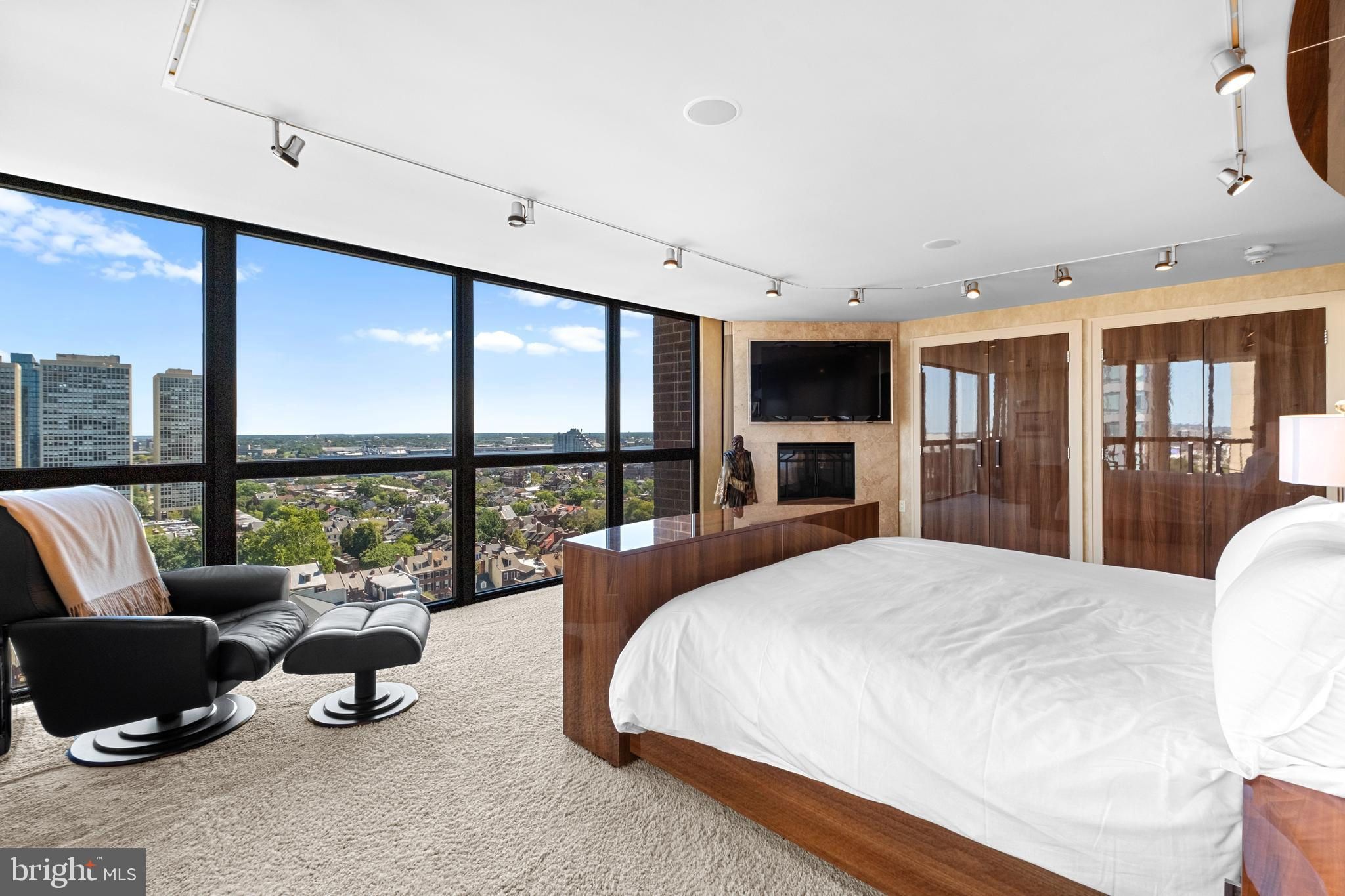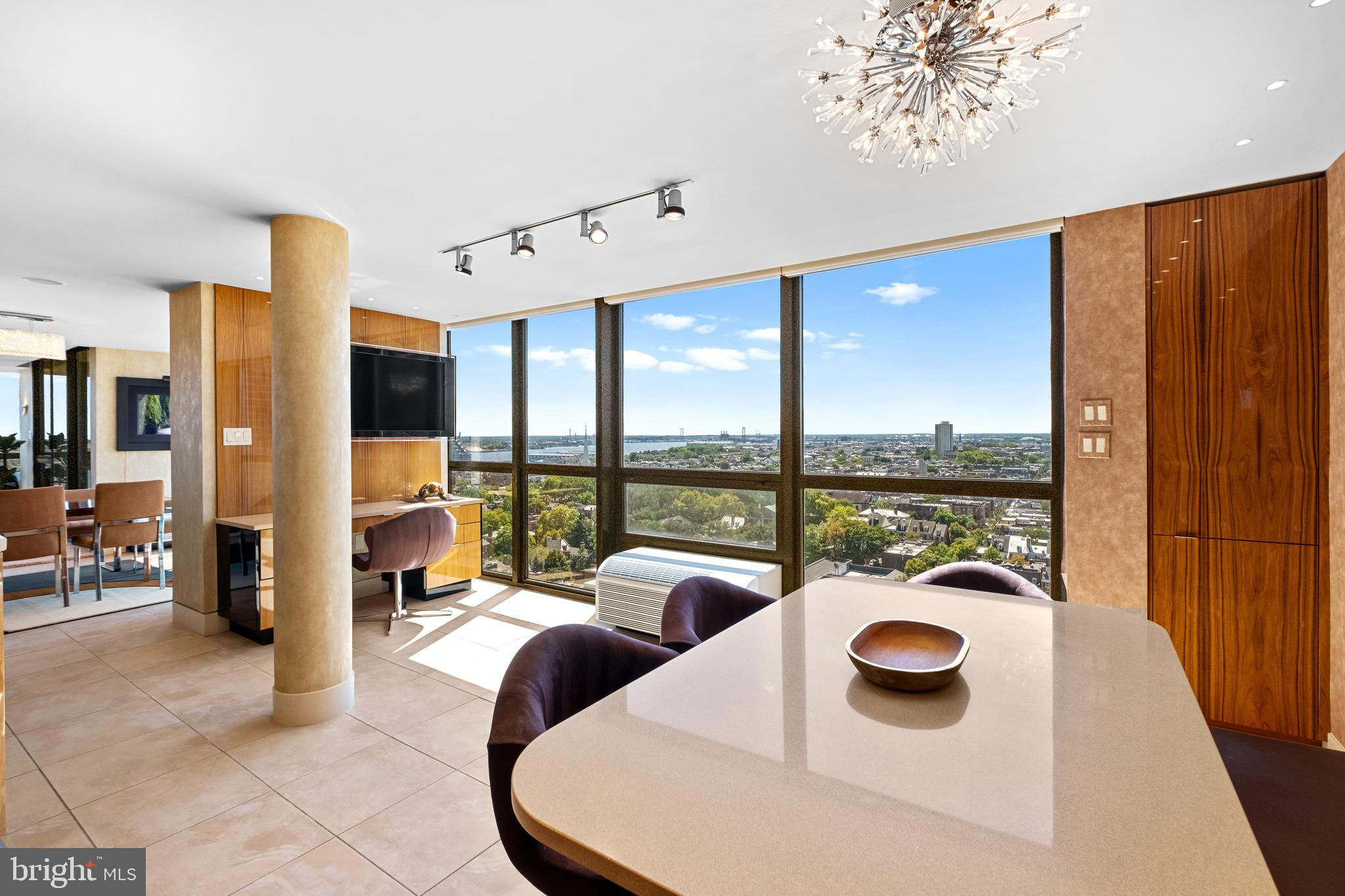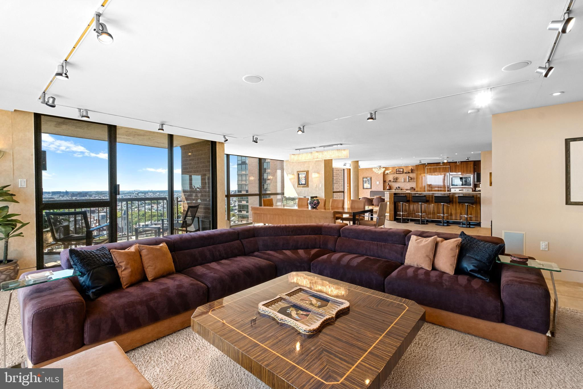 Exceptional residence spanning nearly 4,000ft2 on the 20th floor of Independence Place Condominium on Washington Square Park. Several units were gutted/combined and completely reimagined as this one-of-a-kind home. Floor to ceiling windows and three exposures (South/East/North) allow for incredible natural light and panoramic views. Flexible, open floor plan designed for both larger scale entertaining and more casual, everyday living. The most extraordinary features/finishes throughout, including venetian plaster walls, custom cabinetry, millwork, lacquered wood paneling, doors/trim, integrated lutron lighting system, and recessed baseboard detail. Gallery entry opens to custom kitchen w/ every conceivable amenity:counter seating for four, custom cabinetry, Wolf induction cooktop, paneled subzero refrigerator, metallic Walker Zanger tiled backsplash, breakfast area w/ built-in banquette, and separate office nook. Ktichen opens to dining and living spaces with South and East views, corner fireplace, and wet-bar/walk-in pantry area with under-counter wine storage and refrigerated drawers. Down the hall, two well proportioned bedrooms share a newer, contemporary hall bath. The over-the-top primary suite is outfit with custom furnishings to accentuate southern views, a second fireplace, and features two walk-in closet/dressing areas, two natural stone clad en suite bathrooms w/ steam shower, jetted tub and frameless glass enclosures, a separate lounge area, and an additional gym/studio space with sauna and kitchenette. Thoughtful laundry area w/ full size, side-by-side machines and custom cabinetry is cleverly hidden behind a sliding door system. Private terraces off the living space and primary suite. Remote controlled custom window treatments and Sonos audio throughout. No expense was spared, and every detail has been thoughtfully considered in design/construction. Residents of Independence Place enjoy 24-hour door staff and concierge, newly redesigned lobby, state-of-the-art fitness center, and on-site parking garage with direct lobby access (additional monthly fee). Close proximity to Philadelphia's premier dining, shopping, lifestyle and cultural institutions. Easy highway access into/out of the city.