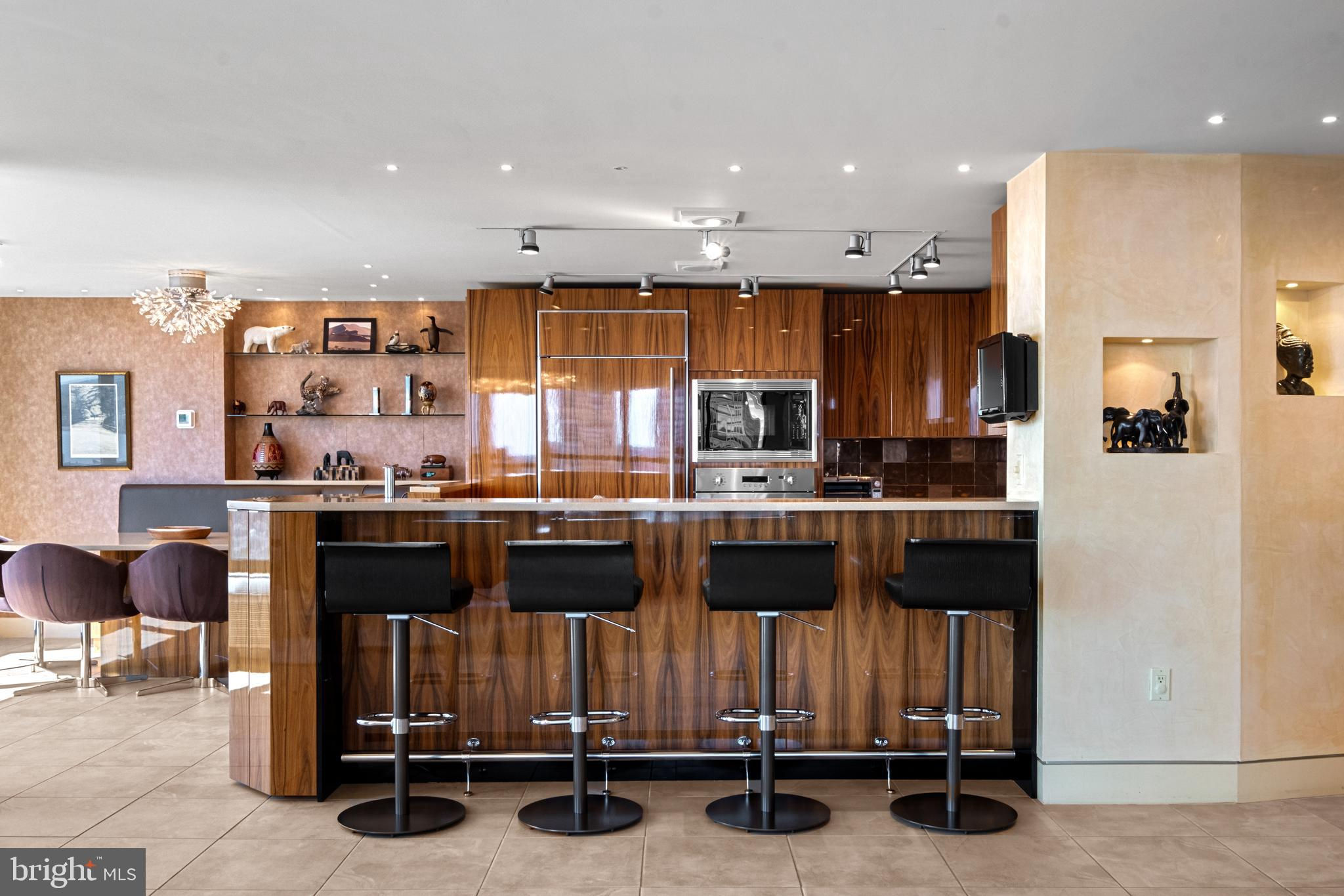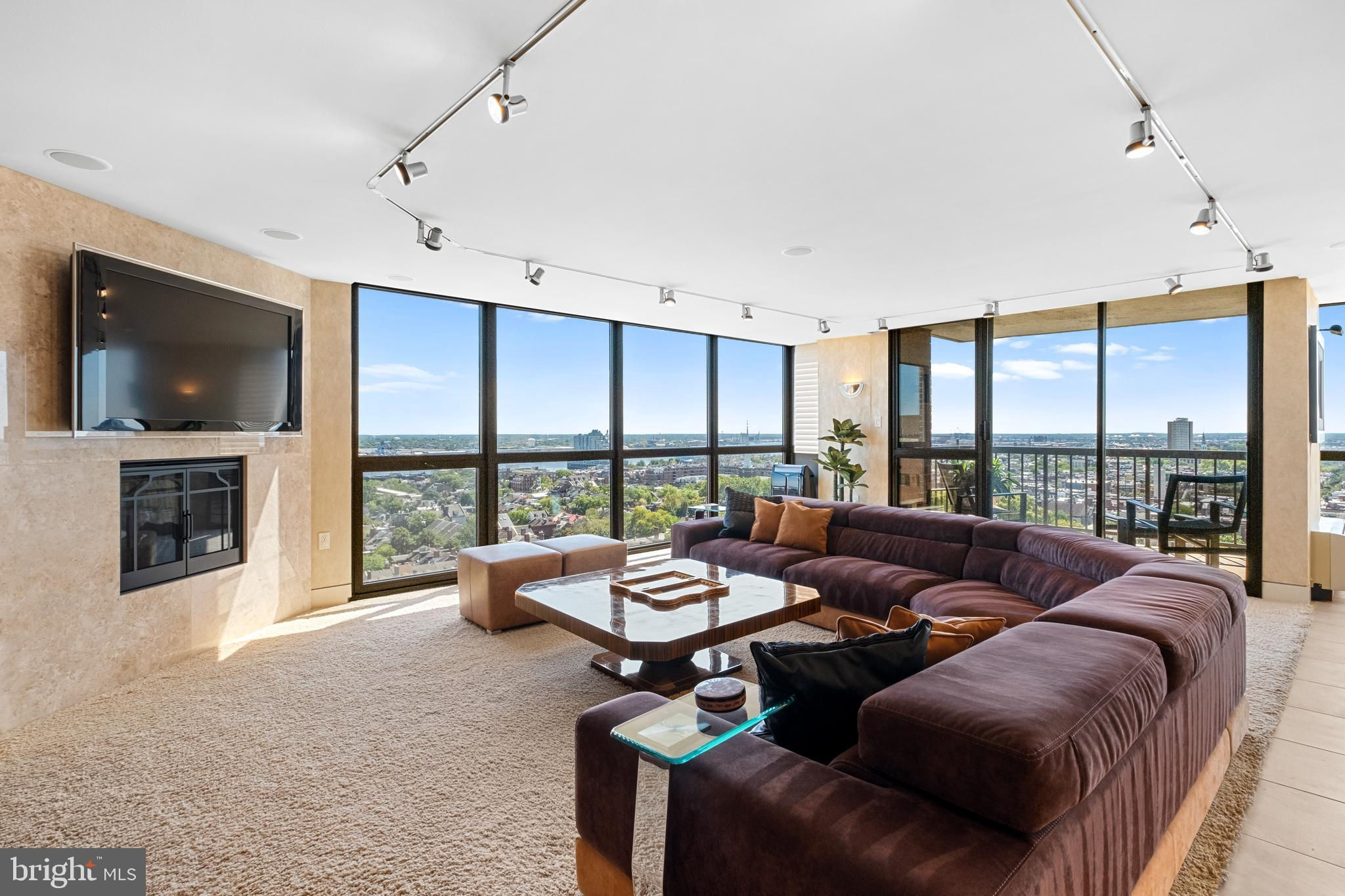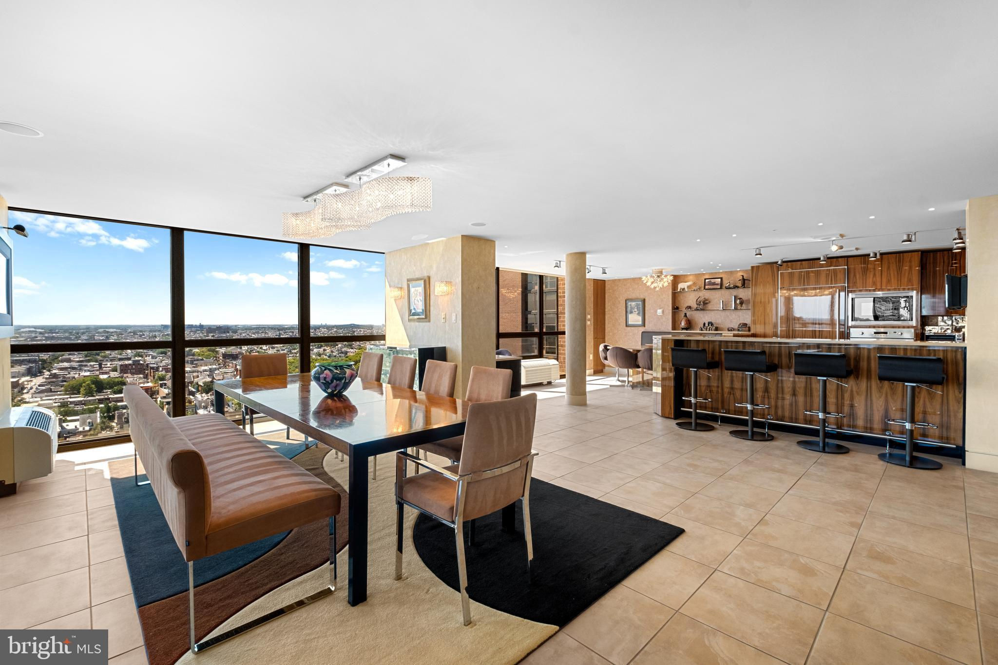 Exceptional residence spanning nearly 4,000ft2 on the 20th floor of Independence Place Condominium on Washington Square Park. Several units were gutted/combined and completely reimagined as this one-of-a-kind home. Floor to ceiling windows and three exposures (South/East/North) allow for incredible natural light and panoramic views. Flexible, open floor plan designed for both larger scale entertaining and more casual, everyday living. The most extraordinary features/finishes throughout, including venetian plaster walls, custom cabinetry, millwork, lacquered wood paneling, doors/trim, integrated lutron lighting system, and recessed baseboard detail. Gallery entry opens to custom kitchen w/ every conceivable amenity:counter seating for four, custom cabinetry, Wolf induction cooktop, paneled subzero refrigerator, metallic Walker Zanger tiled backsplash, breakfast area w/ built-in banquette, and separate office nook. Ktichen opens to dining and living spaces with South and East views, corner fireplace, and wet-bar/walk-in pantry area with under-counter wine storage and refrigerated drawers. Down the hall, two well proportioned bedrooms share a newer, contemporary hall bath. The over-the-top primary suite is outfit with custom furnishings to accentuate southern views, a second fireplace, and features two walk-in closet/dressing areas, two natural stone clad en suite bathrooms w/ steam shower, jetted tub and frameless glass enclosures, a separate lounge area, and an additional gym/studio space with sauna and kitchenette. Thoughtful laundry area w/ full size, side-by-side machines and custom cabinetry is cleverly hidden behind a sliding door system. Private terraces off the living space and primary suite. Remote controlled custom window treatments and Sonos audio throughout. No expense was spared, and every detail has been thoughtfully considered in design/construction. Residents of Independence Place enjoy 24-hour door staff and concierge, newly redesigned lobby, state-of-the-art fitness center, and on-site parking garage with direct lobby access (additional monthly fee). Close proximity to Philadelphia's premier dining, shopping, lifestyle and cultural institutions. Easy highway access into/out of the city.