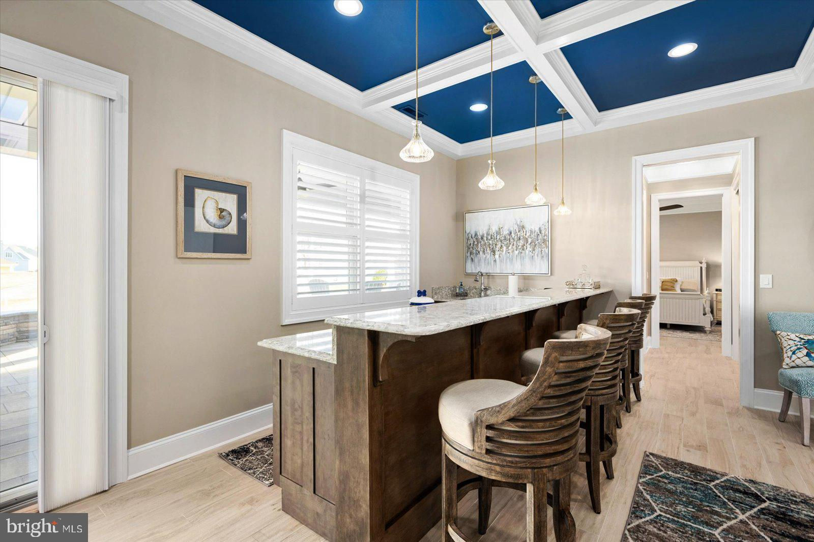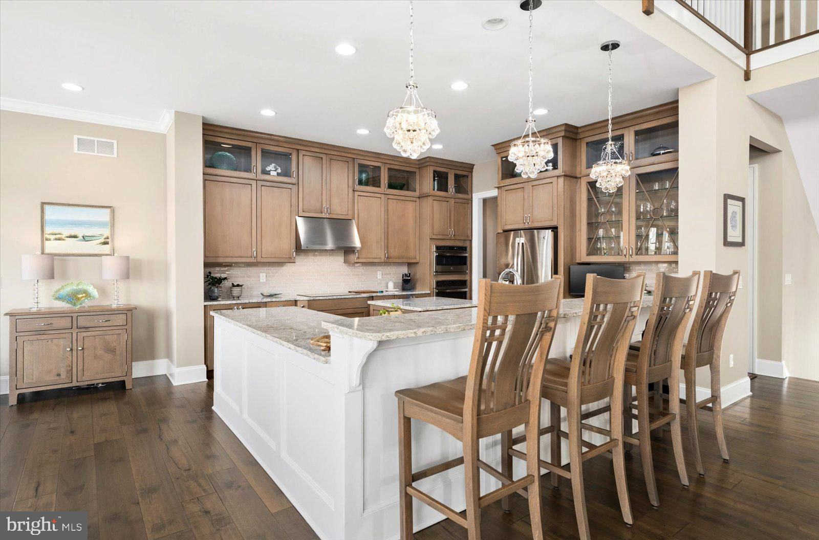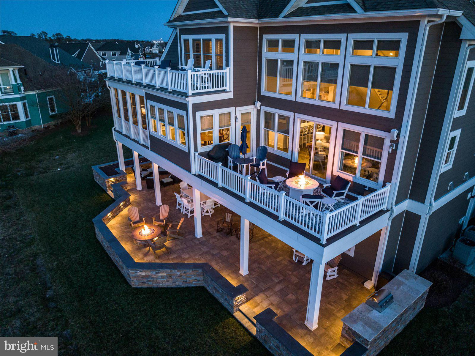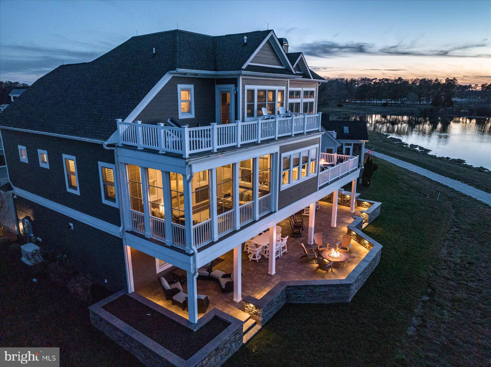 An entertaining oasis, this truly turnkey home is now available and ready for you and your family to enjoy. Delivering fully furnished including recently installed all new custom, hand-crafted furniture throughout the main level. This adds to the already stunning appointments on the other two levels of the home. Other recent improvements include a new 85" premium wall mounted TV in the lower level, Brazilian wood furniture and motorized sunshade in the 3-season room directly off the primary bedroom, and 3 custom made designer sliding glass doors. The luxury upgrades continue including a custom plate glass window in the upstairs studio with motorized blind and motorized window treatments in the dining room to perfectly match the living room. Perched above the 13th hole of the pristine Jack Nicholaus Golf Course this home features water views from all 3 levels. An abundance of outdoor spaces includes an oversized paver patio featuring multiple seating areas, outdoor speakers, a built-in grill, a gas fire pit, LED lighting, and an irrigated planter. Three overhead fans provide relief on warm summer days when friends and family are visiting. Entering the home directly off the paver patio you will be taken back by the lofty ceilings in the ground level entertaining space that includes a full granite bar, living room with a theater feel, and a ground floor guest bedroom with full bathroom. If storage is high on your must have list, this is the home for you, with custom organizers installed in the storage room as well as in the garage and workshop. The garage will be appreciated by car enthusiasts as the current owners added an epoxy floor coating, custom-designed cabinets with slat wall, and 2 new insulated garage doors including tracks, rollers, and ultra quiet smart door openers. Moving upstairs to the main level note the custom carpet runners on the hardwood steps. This level of the home impresses with vaulted cathedral ceilings adorned with millwork, a massive gas fireplace, and stunning custom drapes. The oversized kitchen adds an additional eating area with a stepped-up granite bar that seats four. The chef in your family will appreciate the induction cooktop, abundance of counter space for preparing meals, and oversized pantry. A glass tile backsplash and additional glass fronted cabinets add to this space's "one of a kind" feel. Just off the kitchen, the dining room now features a hand-crafted dining table with matching chairs and motorized blinds. Moving into the 3-season room you will note the quality of the new Brazilian wood furniture and the ease of access to this room from either the great room or primary bedroom. The primary bedroom features two walk in closets with custom organizers and plenty of space allowing for a hand-crafted writing desk for when a moment of creativity strikes. After a day enjoying one or two of the plentiful amenities in the Peninsula or perhaps time spent on the beach, relax, and enjoy a bath in the standalone tub or the gigantic tile shower with rainfall showerhead. The third level of the home is just as impressive as the others, including 2 bedrooms, 2 bathrooms, and a large office. You can reach this level of the home, or any other, by elevator or steps. This entire level features new carpet and hand-crafted furniture that will add to the comfort of your guests. Most impressive from this level are the golf course and water views that can be taken in from the deck just off the guest suite. Currently setup as a studio, but easily converted into a bedroom, this space allows for guest privacy. When it is time for gathering this level features a loft area perfect for family bonding playing board games or watching TV. The large office on this level greets you with oversized windows that flood the room with sunlight. Last, but not least, a whole house generator in case of power outage. Quite frankly, this home is as impressive as the community in which it resides.